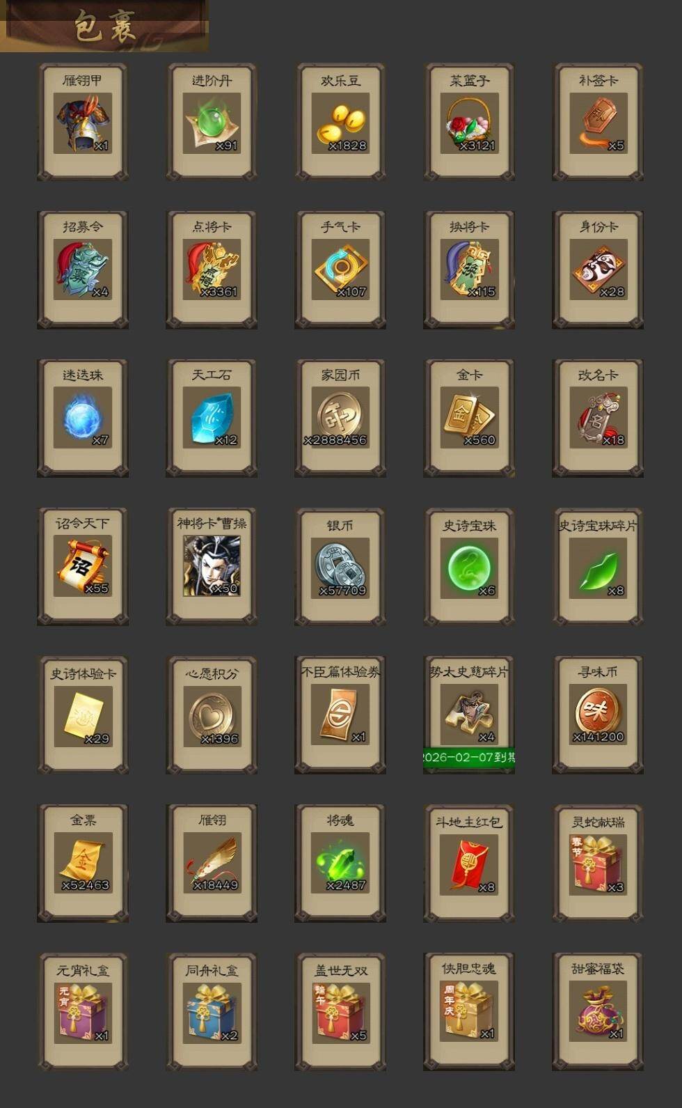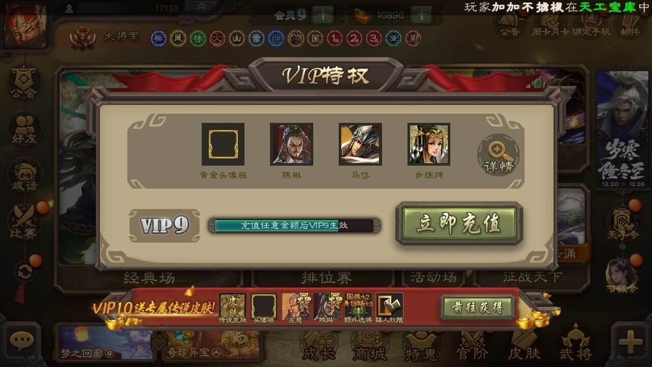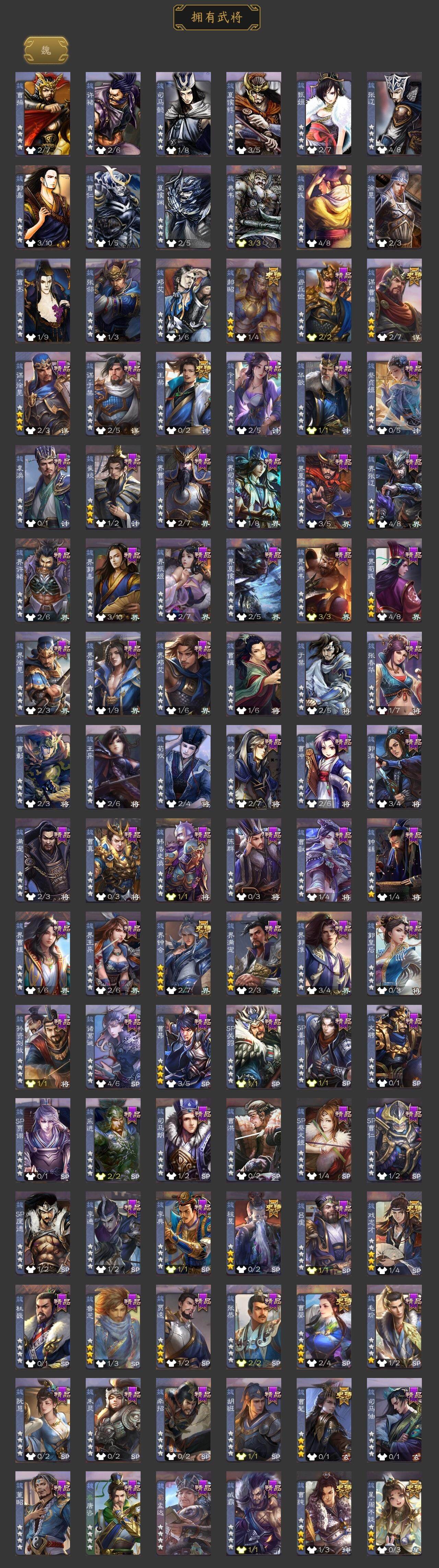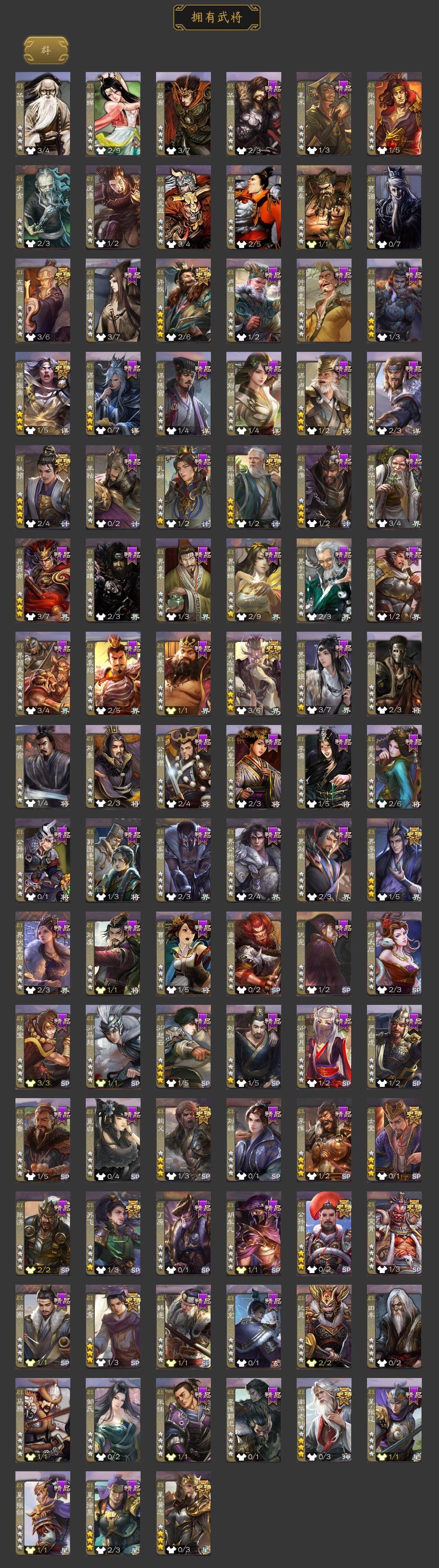 [15373323]【296】官阶:大将军;vip等级:vip9;史诗武将数量:40;动态皮肤数量:30;武将总数:369;史诗宝珠数量:6;将魂数量:2487;神将:5;魏国史诗武将:12;蜀国史诗武将:8;吴国史诗武将:5;群史诗武将:15 神赵云神甘宁神吕蒙神周瑜神诸葛亮曹髦星周不疑王粲谋曹操界钟会郝昭曹婴曹纯戏志才谋赵云谋马超诸葛瞻张星彩沙摩柯谯周花鬘董允周处骆统留赞界徐盛贺齐裴秀左慈张仲景星黄忠苏飞麹义南华老仙界左慈界李儒公孙康杜预谋张角张绣李傕许攸神赵云-战龙在野动态甄姬-明珠耀躯(动态)sp蔡文姬-兔年冬日动态荀彧-驱虎吞狼动态曹婴-兔年春节动态曹纯-虎年春节动态诸葛诞-寿春举义(动态)孟获-祸崇南疆动态费祎-安民护祚(动态)刘备-龙骧麟振动态关羽-明良千古动态马超-虎年冬至动态赵云-明亮千古动态界刘备-龙骧麟振动态关索-虎年七夕动态鲍三娘-柳娇桃艳动态周处-义除三害动态陆逊-龙年七夕动态孙权-永开吴祚动态孙策-虎踞江东动态步骘-鸿笔丽藻动态周瑜-免年清明动态孙尚香-星流霆击动态界孙尚香-星流霆击动态徐盛-破军杀将动态徐氏-琪花瑶草动态刘赞-灵魂歌王动态高览-威显官渡动态杜预-龙吟破竹动态左慈-役使鬼神动态许攸-盛气凌人动态张宝-苍天已死动态