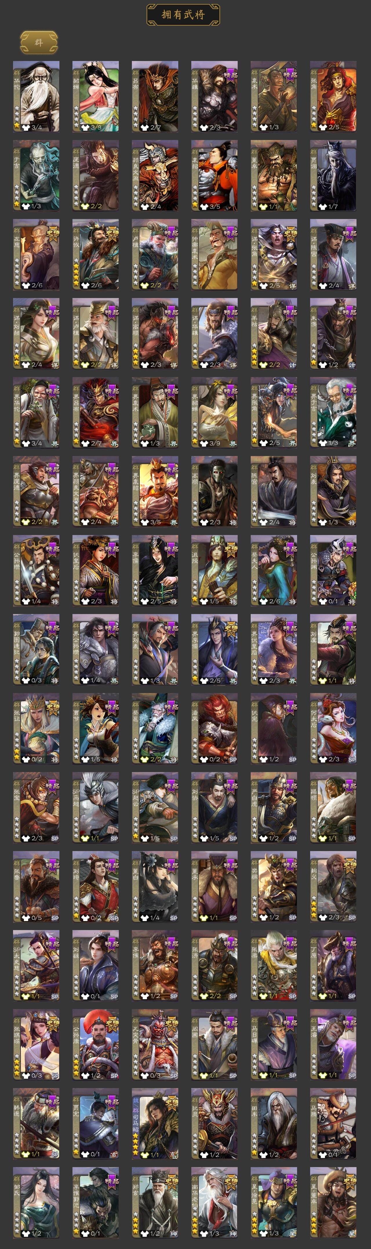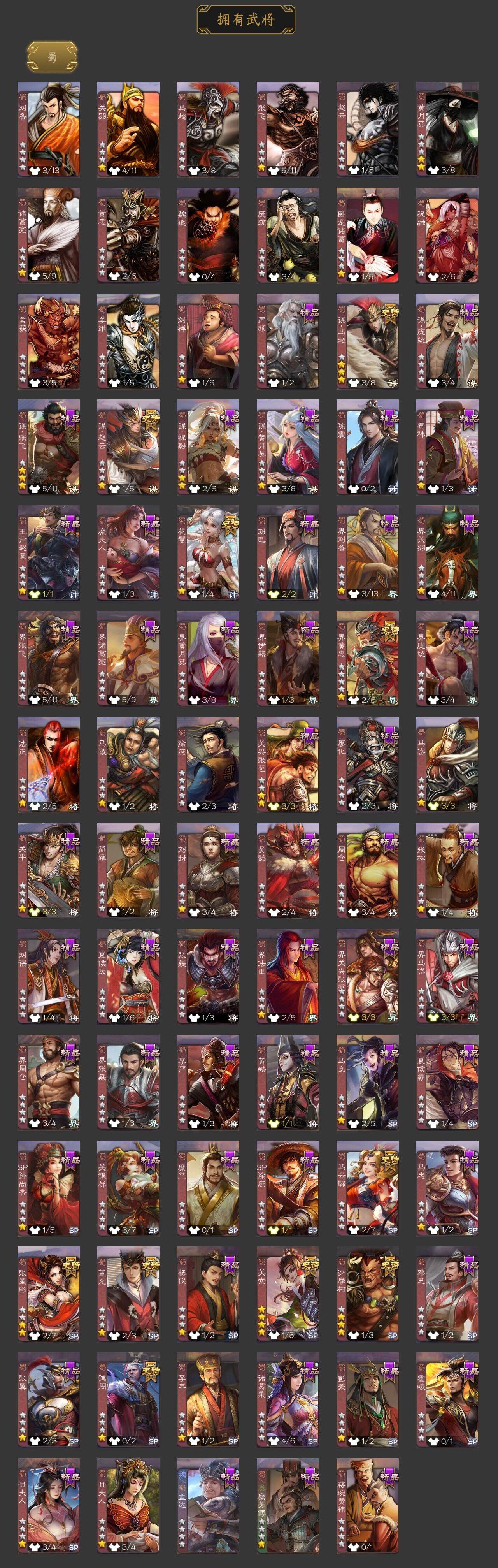 [15373355]【904】官阶:大将军;vip等级:vip9;史诗武将数量:41;动态皮肤数量:46;武将总数:351;史诗宝珠数量:17;将魂数量:2769;神将:3;魏国史诗武将:35;蜀国史诗武将:10;吴国史诗武将:5;群史诗武将:14 神赵云神张辽神吕蒙星周不疑杨修文鸯魏-司马昭界钟会界于禁曹婴曹纯戏志才清河公主关索马云騄谋赵云谋马超张星彩沙摩柯谯周界黄忠花鬘董允周处留赞界朱然界徐盛势陆郁生谋黄月英左慈郑玄张让张琪瑛麹义南华老仙沮授界李儒公孙康谋张角李傕许攸星董卓神吕蒙-心生万象神曹操-天下归心星周不疑-才广志宏动态张昌蒲-龙年端午(动态)钟会-龙年端午(动态)曹丕-气荡山河(动态)星周不疑-龙年清明动态甄姬-明珠耀躯(动态)曹丕-龙年中秋动态sp蔡文姬-兔年冬日动态邓艾-神兵天降动态钟会-谋谟之勋动态界钟会-谋谟之勋动态曹昂-竭战麟伤动态曹婴-兔年春节动态王元姬-鼠年冬至动态司马昭-昭威淮南(动态)司马懿-重张区宇(动态)星徐晃-斧引霹雳动态清河公主-魅影萦心动态花鬘-依心缱绻动态刘备-龙御天下动态诸葛亮-龙年限定动态关索-依心缱绻动态马超-虎年冬至动态张星彩-临军对阵动态诸葛果-蛇年限定动态周处-义除三害动态吕蒙-剑起惊澜动态陆逊-龙年七夕动态孙权-兔年中秋动态孙权-永开吴祚动态孙策-虎踞江东动态孙权-牛年七夕动态界孙权-牛年七夕动态徐盛-破军杀将动态刘赞-抗音而歌动态陆逊-蛇年清明动态文鸯-势若万钧动态貂蝉-舞惑群心动态袁绍-声震寰宇动态南华老仙-冠绝天下动态麹义-扬刀立威动态李儒-鸠杀少帝动态界李儒-鸠杀少帝动态左慈-蛇年限定动态