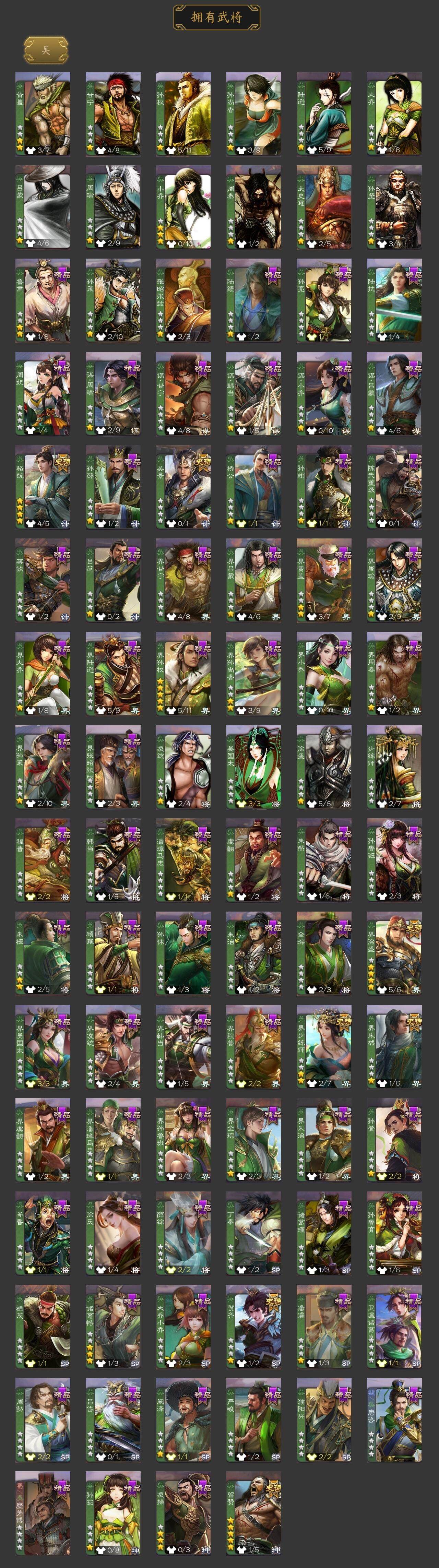 [15373485]【279】官阶:大将军;vip等级:vip10;史诗武将数量:54;动态皮肤数量:44;武将总数:420;史诗宝珠数量:1;将魂数量:5090;神将:8;魏国史诗武将:35;蜀国史诗武将:10;吴国史诗武将:7;群史诗武将:17 神吕布神赵云神陆逊神张辽神荀彧神关羽神吕蒙神周瑜星周不疑王粲杨修王元姬魏-司马昭马钧界钟会界于禁界曹真嵇康郝昭陈琳曹纯戏志才清河公主谋赵云谋马超诸葛瞻赵襄张星彩王平沙摩柯谯周界黄忠花鬘吴景骆统留赞界朱然界徐盛界步练师贺齐谋郭嘉左慈张让星甘宁苏飞司马徽麹义南华老仙沮授界左慈界李儒公孙康卑弥呼谋张角张绣许攸星董卓神太史慈-勇撼日月动态神荀彧-匡汉延祚动态神周瑜-陵光引灵动态星周不疑-才广志宏动态钟会-龙年端午(动态)钟繇-安民护祚(动态)甄姬-明珠耀躯(动态)许褚-虎啸生风动态张辽-登峰陷阵动态界张辽-登峰陷阵动态界许褚-虎啸生风动态钟会-谋谟之勋动态界钟会-谋谟之勋动态曹昂-竭战麟伤动态戏志才-举棋若定动态朱灵-以战破氐动态曹纯-长坂败备动态司马昭-昭威淮南(动态)司马懿-重张区宇(动态)星徐晃-斧引霹雳动态清河公主-魅影萦心动态孟获-祸崇南疆动态费祎-安民护祚(动态)刘备-明良千古动态关羽-明良千古动态马超-西凉雄狮动态张飞-明良千古动态刘禅-猪年端午动态界刘备-明良千古动态界马超-西凉雄狮动态界刘禅-猪年端午动态甘夫人-为君担忧动态卧龙诸葛-火烧博望动态周处-义除三害动态吕蒙-剑起惊澜动态陆逊-龙年七夕动态孙权-猪年端午动态孙尚香-星流霆击动态界孙权-猪年端午动态界孙尚香-星流霆击动态徐盛-破军杀将动态孙鲁育-猪年春节动态刘赞-抗音而歌动态高顺-每战必克动态曹节-龙年中秋动态许攸-火烧乌巢动态左慈-道法显威(动态)高览-威显官渡动态南华老仙-冠绝天下动态麹义-扬刀立威动态张宝-苍天已死动态董白-猪年春节动态苏飞-肝胆相照动态杨彪-忧心国事