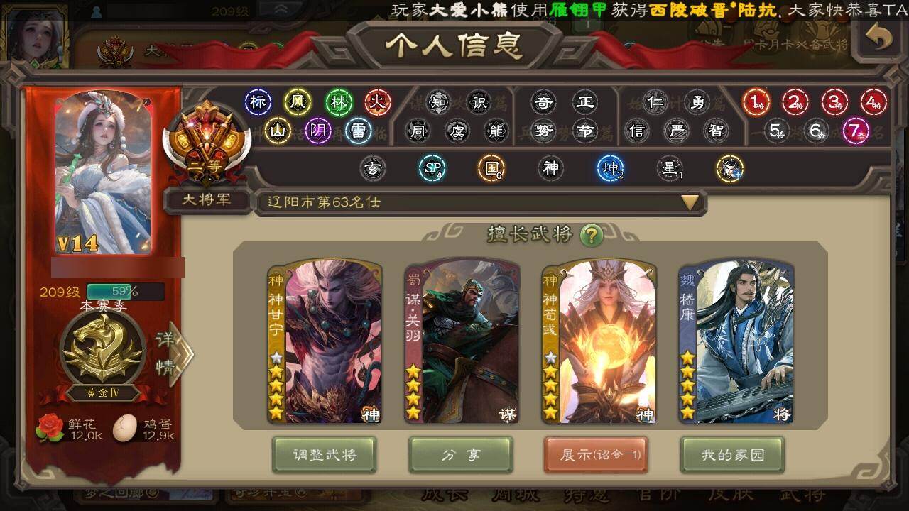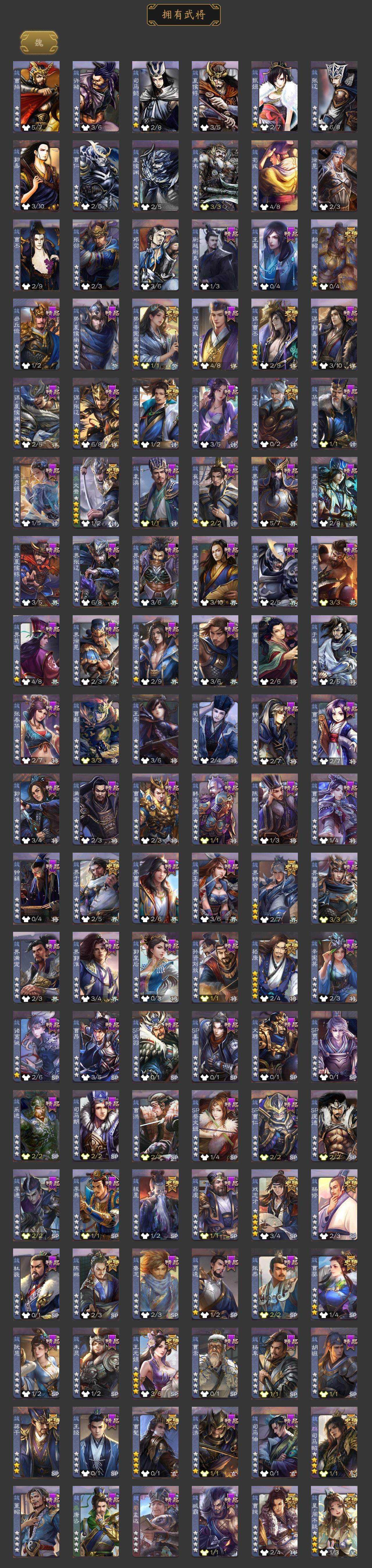 [15374063]【1075】官阶:大将军;vip等级:vip14;史诗武将数量:72;动态皮肤数量:44;武将总数:429;史诗宝珠数量:0;将魂数量:872;神将:9;魏国史诗武将:24;蜀国史诗武将:13;吴国史诗武将:13;群史诗武将:22 神曹操神赵云神司马懿神甘宁神郭嘉神荀彧神华佗神诸葛亮神鲁肃曹髦星周不疑王粲杨修王元姬王凌界钟会界于禁嵇康郝昭陈琳曹婴曹纯戏志才谋曹丕蒋干势辛宪英程昱关索谋诸葛亮马云騄谋赵云诸葛瞻赵襄张星彩王平沙摩柯谯周花鬘董允谋关羽张奋谋陆逊周处孙寒华骆统留赞界朱然界徐盛界步练师贺齐势太史慈文鸯谋公孙瓒十常侍谋貂蝉裴秀左慈张琪瑛星黄忠星甘宁王允陶谦麹义南华老仙沮授界左慈界李儒杜预许攸星董卓sp甄姬兀突骨司马昭神吕蒙神周瑜势夏侯尚sp关羽sp曹仁sp蔡文姬乐进曹昂诸葛诞朱灵文聘sp姜维张春华钟会曹冲郭淮满宠界王异界曹操界司马懿界夏侯惇界张辽界许褚界郭嘉李典曹真韩浩史涣陈群曹叡钟繇司马朗王基李通郭皇后孙资刘放辛宪英吕虔鲁芝蒯越蒯良界典韦界荀彧界徐晃杜畿界曹丕毌丘俭界邓艾张恭贾逵界曹植界曹彰界满宠界郭淮卞夫人华歆蔡贞姬袁涣崔琰杨阜阮慧曹嵩谋荀彧胡班成济王经司马伷谋张辽谋郭嘉谋夏侯渊界曹仁臧霸唐咨董昭sp孙尚香关银屏夏侯霸马良关兴张苞廖化界马岱关平简雍刘封界法正界关兴张苞界刘备界关羽界张飞界赵云界马超sp徐庶吴懿周仓张松刘谌夏侯氏糜竺马忠孙乾李严黄皓吴苋秦宓界黄月英界诸葛亮赵统赵广严颜界伊籍界卧龙诸葛界庞统界孟获界祝融陈到界姜维界刘禅吕凯张翼杨仪界廖化邓芝傅肜费祎糜夫人王甫赵累界周仓刘巴彭羕谋法正谋庞统谋黄月英界张嶷谋张飞吴班李遗诸葛果蒋琬费祎糜芳傅士仁甘夫人鲁肃孙茹凌操大乔小乔诸葛恪诸葛瑾孙鲁育程普韩当潘璋马忠虞翻朱然界周泰界甘宁界吕蒙界黄盖界周瑜界大乔界陆逊孙鲁班朱桓顾雍孙休朱治全琮阚泽孙登