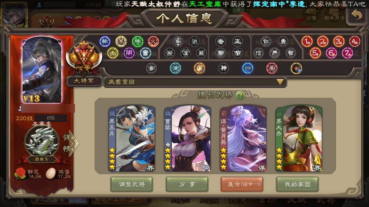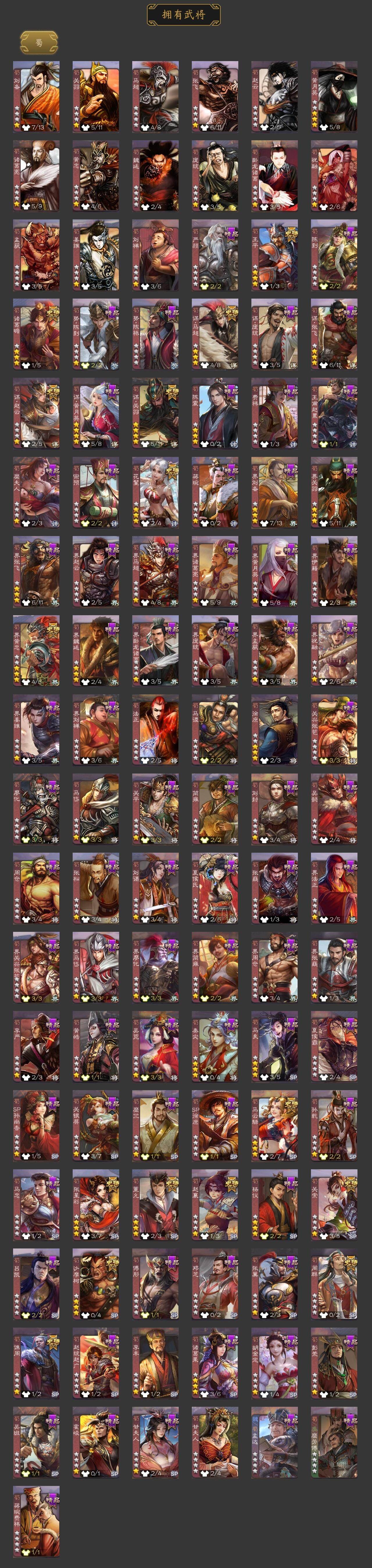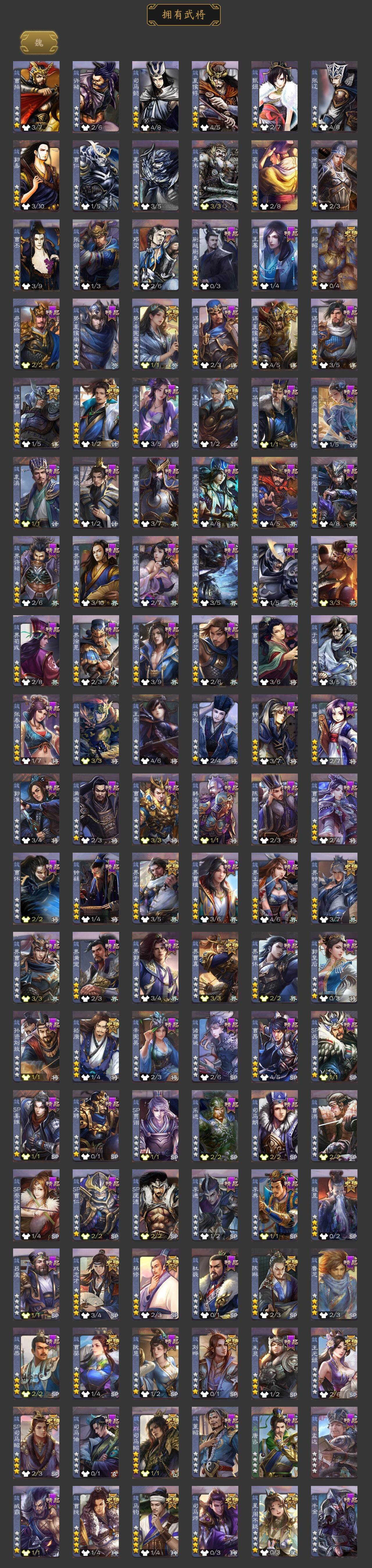 [15374156]【1077】官阶:大将军;vip等级:vip13;史诗武将数量:82;动态皮肤数量:52;武将总数:455;史诗宝珠数量:20;将魂数量:1968;神将:8;魏国史诗武将:22;蜀国史诗武将:15;吴国史诗武将:12;群史诗武将:27 神吕布神赵云神司马懿神陆逊神甘宁神张辽神太史慈神诸葛亮sp司马昭星周不疑谋曹仁王粲杨修王元姬王凌司马师马钧界钟会界于禁界曹真嵇康郝昭陈琳曹婴曹纯戏志才刘晔谋夏侯惇势辛宪英程昱关索马云騄谋赵云谋马超诸葛瞻周群赵襄张星彩王平沙摩柯谯周界黄忠花鬘董允谋关羽谋黄盖谋孙策周处吴景骆统留赞界朱然界徐盛界步练师贺齐势陆郁生势太史慈星魏延界沮授左慈张让张琪瑛星黄忠星甘宁王允陶谦苏飞司马徽麹义庞德公南华老仙祢衡刘焉沮授界左慈界李儒杜预卑弥呼许攸星董卓兀突骨士燮司马昭神吕蒙神周瑜势夏侯尚sp关羽sp曹仁sp蔡文姬乐进曹昂诸葛诞朱灵文聘sp姜维张春华钟会曹冲郭淮满宠界王异界曹操界司马懿界夏侯惇界张辽界许褚界郭嘉李典曹真韩浩史涣陈群曹叡曹休钟繇司马朗王基李通郭皇后孙资刘放辛宪英界甄姬吕虔鲁芝蒯越蒯良界典韦界荀彧界徐晃杜畿界曹丕毌丘俭界邓艾张恭界曹植界曹彰界满宠界郭淮卞夫人华歆蔡贞姬袁涣崔琰阮慧谋徐晃谋于禁界曹休司马伷牛金界夏侯渊界曹仁臧霸唐咨董昭势陈到sp孙尚香关银屏夏侯霸马良关兴张苞廖化界马岱关平简雍刘封界法正界关兴张苞界刘备界关羽界张飞界赵云界马超sp徐庶吴懿周仓张松刘谌夏侯氏糜竺马忠孙乾李严黄皓吴苋秦宓界黄月英界诸葛亮赵统赵广严颜界伊籍界卧龙诸葛界庞统界孟获界祝融陈到界姜维界刘禅胡金定吕凯张翼杨仪界廖化邓芝傅肜界简雍陈震费祎糜夫人王甫赵累界周仓宗预蒋琬彭羕谋庞统谋黄月英界张嶷谋张飞吴班霍峻诸葛果界魏延蒋琬费祎糜芳傅士仁甘夫人势陈祗鲁肃孙茹凌操大乔小乔诸葛恪诸葛瑾孙鲁育程普韩当潘璋马忠虞翻朱然