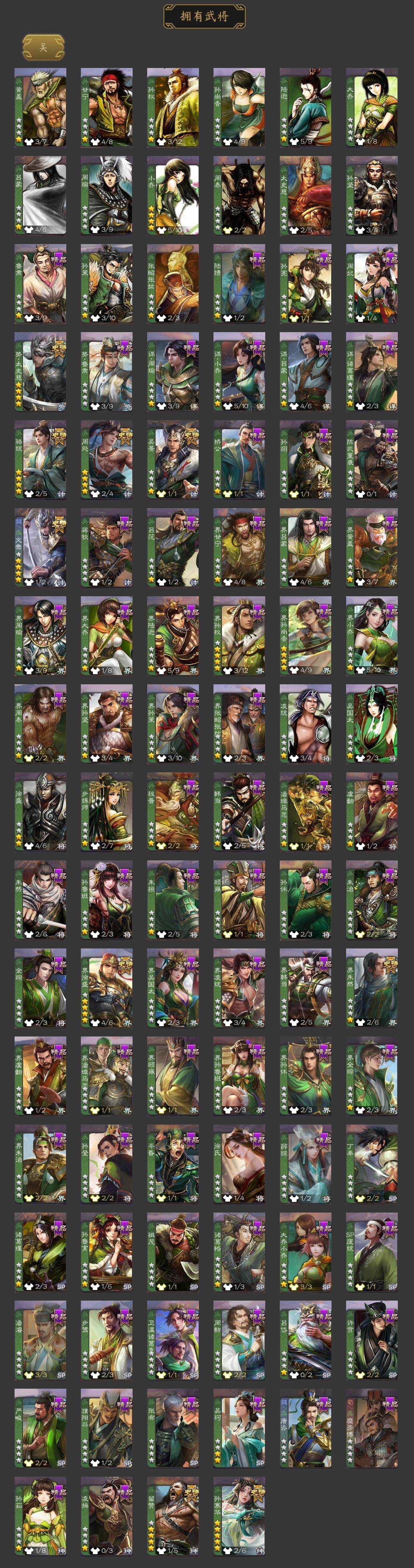[15481151]【1092】官阶:大将军;vip等级:vip14;史诗武将数量:64;动态皮肤数量:67;武将总数:443;史诗宝珠数量:0;将魂数量:3944;神将:7;魏国史诗武将:25;蜀国史诗武将:13;吴国史诗武将:10;群史诗武将:22 神吕布神赵云神张辽神太史慈神孙策神荀彧神诸葛亮曹髦星周不疑王粲杨修王元姬王凌界钟会界于禁界曹真嵇康陈琳曹纯戏志才刘晔程昱谋诸葛亮马云騄谋夏侯氏谋马超诸葛瞻赵襄张星彩王平沙摩柯谯周界黄忠花鬘董允周处吴景孙寒华骆统留赞界朱然界徐盛势太史慈文鸯十常侍左慈郑玄张让星黄忠星甘宁麹义庞德公南华老仙祢衡刘焉沮授界左慈界李儒公孙康卑弥呼谋张角许攸星董卓兀突骨司马昭神吕蒙神周瑜神关羽sp关羽sp曹仁sp蔡文姬乐进曹昂诸葛诞朱灵文聘sp姜维张春华钟会曹冲郭淮满宠界王异界曹操界司马懿界夏侯惇界张辽界许褚界郭嘉李典曹真韩浩史涣陈群曹叡曹休钟繇司马朗王基李通郭皇后孙资刘放辛宪英界甄姬吕虔鲁芝蒯越蒯良界典韦界荀彧界徐晃杜畿界曹丕毌丘俭界邓艾张恭贾逵界曹植界满宠界郭淮卞夫人华歆蔡贞姬袁涣王双崔琰毛玠杨阜阮慧曹嵩谋徐晃谋于禁界曹休牵招胡班成济谋张辽牛金界夏侯渊臧霸唐咨董昭sp孙尚香关银屏夏侯霸马良关兴张苞廖化界马岱关平简雍刘封界法正界关兴张苞界刘备界关羽界张飞界赵云界马超sp徐庶吴懿周仓张松刘谌夏侯氏糜竺马忠孙乾李严黄皓吴苋秦宓界黄月英界诸葛亮赵统赵广严颜界伊籍界卧龙诸葛界庞统界孟获界祝融陈到界姜维界刘禅吕凯张翼杨仪邓芝傅肜界简雍陈震费祎糜夫人王甫赵累界周仓许靖向宠宗预刘巴彭羕谋庞统谋姜维谋张飞吴班霍峻诸葛果界魏延蒋琬费祎糜芳傅士仁甘夫人势陈祗吴珂鲁肃孙茹凌操大乔小乔诸葛恪诸葛瑾孙鲁育程普韩当潘璋马忠虞翻朱然界周泰界甘宁界吕蒙界黄盖界周瑜界大乔界陆逊孙鲁班朱桓顾雍孙休朱治全琮步骘孙登岑昏徐氏薛综