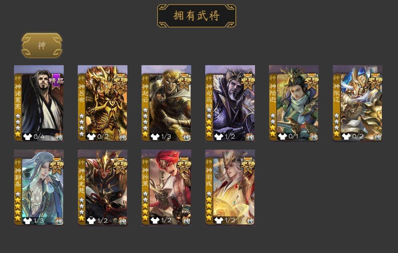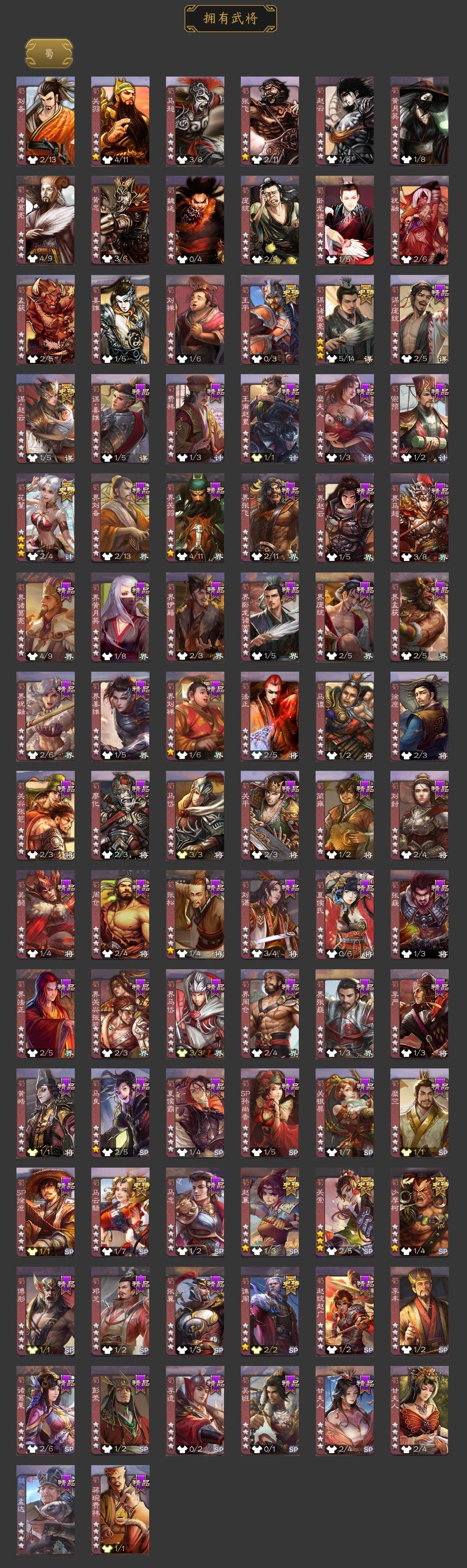 [15512060]【1103】官阶:大将军;vip等级:vip12;史诗武将数量:47;动态皮肤数量:38;武将总数:362;史诗宝珠数量:5;将魂数量:6541;神将:10;魏国史诗武将:28;蜀国史诗武将:9;吴国史诗武将:9;群史诗武将:14 神吕布神赵云神司马懿神陆逊神张辽神郭嘉神太史慈神孙策神荀彧神诸葛亮星周不疑杨修王元姬界钟会曹婴曹纯戏志才程昱关索谋诸葛亮马云騄谋赵云赵襄王平沙摩柯谯周花鬘谋陆逊周处孙寒华骆统留赞界徐盛界步练师文鸯谋公孙瓒十常侍谋貂蝉左慈张让星黄忠麹义沮授界李儒杜预谋张角兀突骨司马昭sp关羽sp曹仁sp蔡文姬乐进曹昂诸葛诞朱灵文聘sp姜维张春华钟会曹冲郭淮满宠界王异界曹操界司马懿界夏侯惇界张辽界许褚界郭嘉李典曹真韩浩史涣陈群曹叡曹休钟繇司马朗李通郭皇后孙资刘放辛宪英界甄姬吕虔鲁芝界典韦界荀彧界徐晃杜畿界曹丕界邓艾张恭界曹植界满宠界郭淮卞夫人蔡贞姬王双崔琰杨阜阮慧界曹休牵招胡班司马孚司马伷谋张辽谋郭嘉界夏侯渊臧霸唐咨董昭sp孙尚香关银屏夏侯霸马良关兴张苞廖化界马岱关平简雍刘封界法正界关兴张苞界刘备界关羽界张飞界赵云界马超sp徐庶吴懿周仓张松刘谌夏侯氏糜竺马忠李严黄皓界黄月英界诸葛亮赵统赵广界伊籍界卧龙诸葛界庞统界孟获界祝融界姜维界刘禅张翼邓芝傅肜费祎糜夫人王甫赵累界周仓宗预彭羕谋庞统界张嶷谋姜维吴班李遗诸葛果蒋琬费祎甘夫人鲁肃孙茹凌操大乔小乔诸葛恪诸葛瑾孙鲁育程普韩当潘璋马忠虞翻朱然界周泰界甘宁界吕蒙界黄盖界周瑜界大乔界陆逊孙鲁班朱桓顾雍孙休朱治全琮阚泽孙登岑昏界孙权界孙尚香潘濬孙亮严畯界孙坚吕岱界张昭张纮卫温诸葛直界吴国太界凌统界程普界潘璋马忠桥公陈武董袭蒋钦界顾雍界孙鲁班谋韩当谋周瑜界全琮界朱治谋小乔界小乔孟达伏完刘协界袁术sp赵云sp貂蝉张宝伏皇后李儒界于吉华雄袁术界华佗界吕布公孙瓒蔡夫人公孙