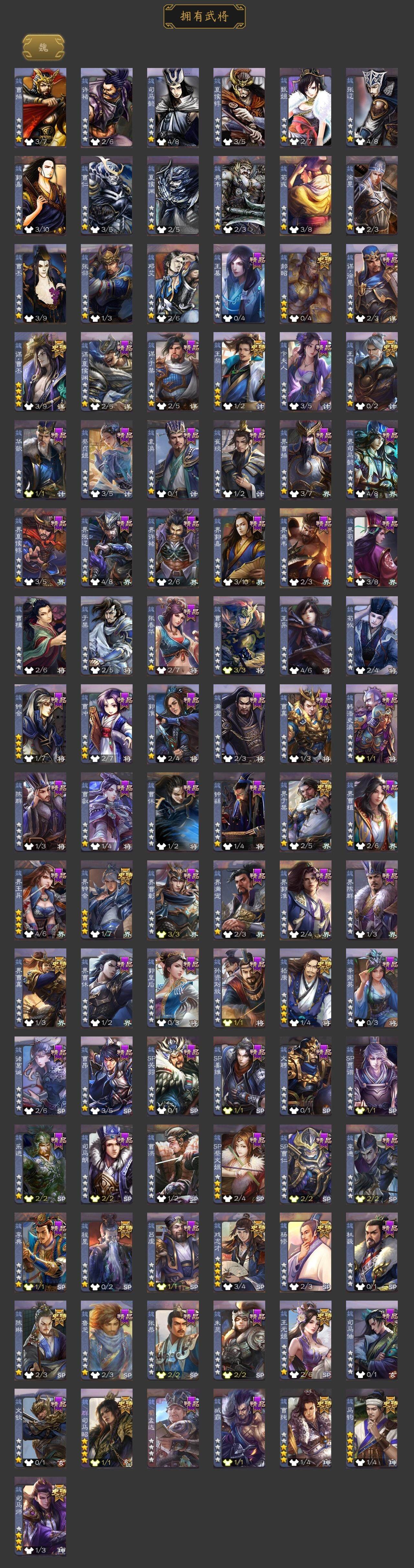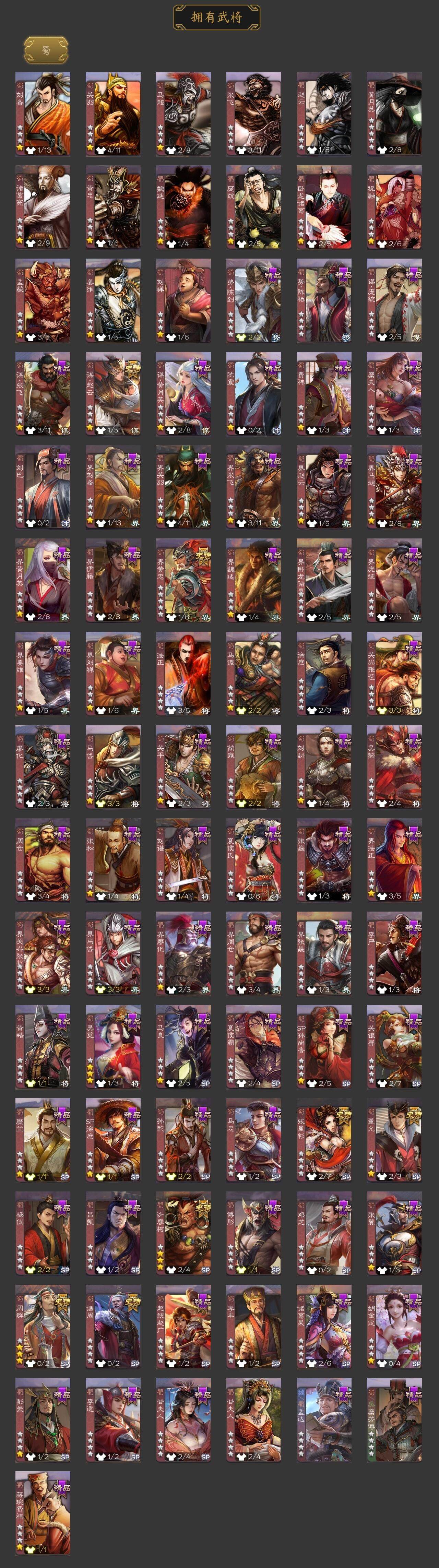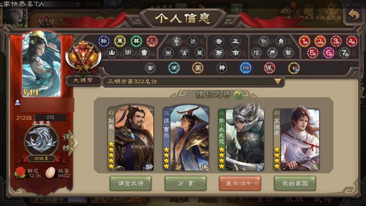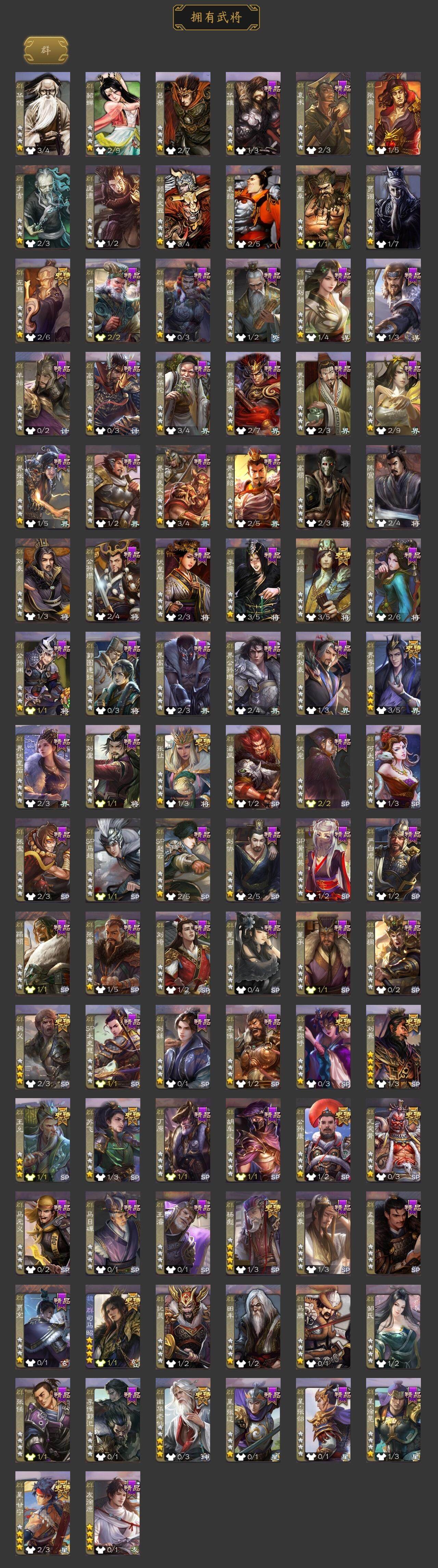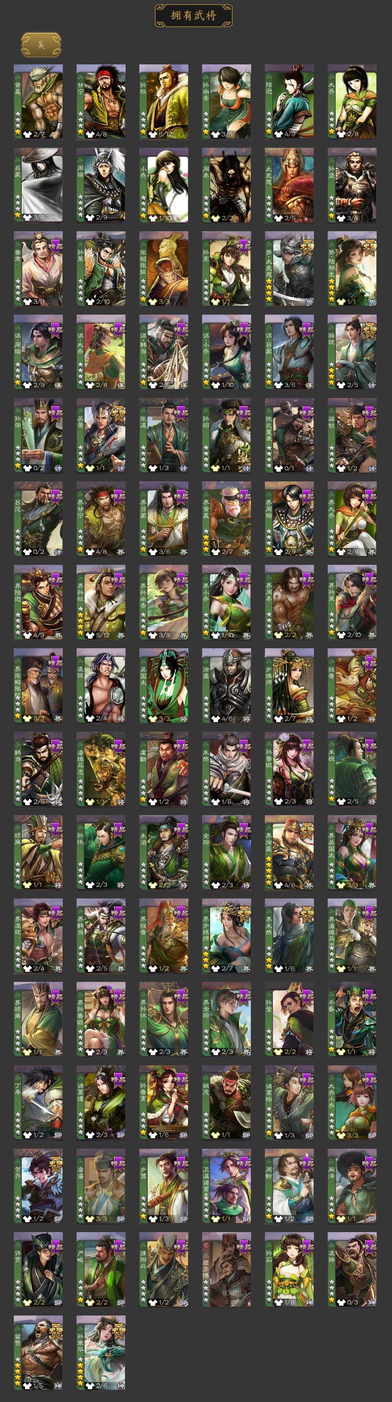 [15512239]【1102】官阶:大将军;vip等级:vip11;史诗武将数量:53;动态皮肤数量:43;武将总数:380;史诗宝珠数量:1;将魂数量:526;神将:5;魏国史诗武将:22;蜀国史诗武将:7;吴国史诗武将:10;群史诗武将:16 神吕布神赵云神陆逊神张辽神太史慈王粲杨修王元姬王凌司马师马钧界钟会界于禁界曹真嵇康郝昭陈琳曹纯戏志才谋曹丕程昱谋赵云周群张星彩沙摩柯谯周界黄忠董允吴景孙寒华骆统留赞界朱然界徐盛界步练师贺齐势陆郁生势太史慈左慈张让杨彪星甘宁王允苏飞麹义南华老仙刘焉沮授界李儒公孙康卑弥呼兀突骨司马昭神吕蒙神周瑜神关羽sp关羽sp曹仁sp蔡文姬乐进曹昂诸葛诞朱灵文聘sp姜维张春华钟会曹冲郭淮满宠界王异界曹操界司马懿界夏侯惇界张辽界许褚界郭嘉李典曹真韩浩史涣陈群曹叡曹休钟繇司马朗王基李通郭皇后孙资刘放辛宪英吕虔鲁芝界典韦界荀彧杜畿张恭界曹植界曹彰界满宠界郭淮卞夫人界陈群华歆蔡贞姬袁涣崔琰谋徐晃谋于禁界曹休司马伷文钦谋夏侯渊臧霸势陈到sp孙尚香关银屏夏侯霸马良关兴张苞廖化界马岱关平简雍刘封界法正界关兴张苞界刘备界关羽界张飞界赵云界马超sp徐庶吴懿周仓张松刘谌夏侯氏糜竺马忠孙乾李严黄皓吴苋界黄月英赵统赵广界伊籍界卧龙诸葛界庞统界姜维界刘禅胡金定吕凯张翼杨仪界廖化邓芝傅肜陈震费祎糜夫人界周仓刘巴彭羕谋庞统谋黄月英界张嶷谋张飞李遗诸葛果界魏延蒋琬费祎糜芳傅士仁甘夫人势陈祗鲁肃孙茹凌操大乔小乔诸葛恪诸葛瑾孙鲁育程普韩当潘璋马忠虞翻朱然界周泰界甘宁界吕蒙界黄盖界周瑜界大乔界陆逊孙鲁班朱桓顾雍孙休朱治全琮步骘阚泽孙登岑昏界孙权界孙尚香潘濬孙亮严畯周鲂界孙策界张昭张纮许贡卫温诸葛直界吴国太界凌统界韩当界程普界潘璋马忠孙邵张温陈武董袭孙翊蒋钦吕范界顾雍界孙鲁班濮阳兴谋韩当谋吕蒙谋周瑜谋大乔界孙休界全琮谋小乔界小乔孟达