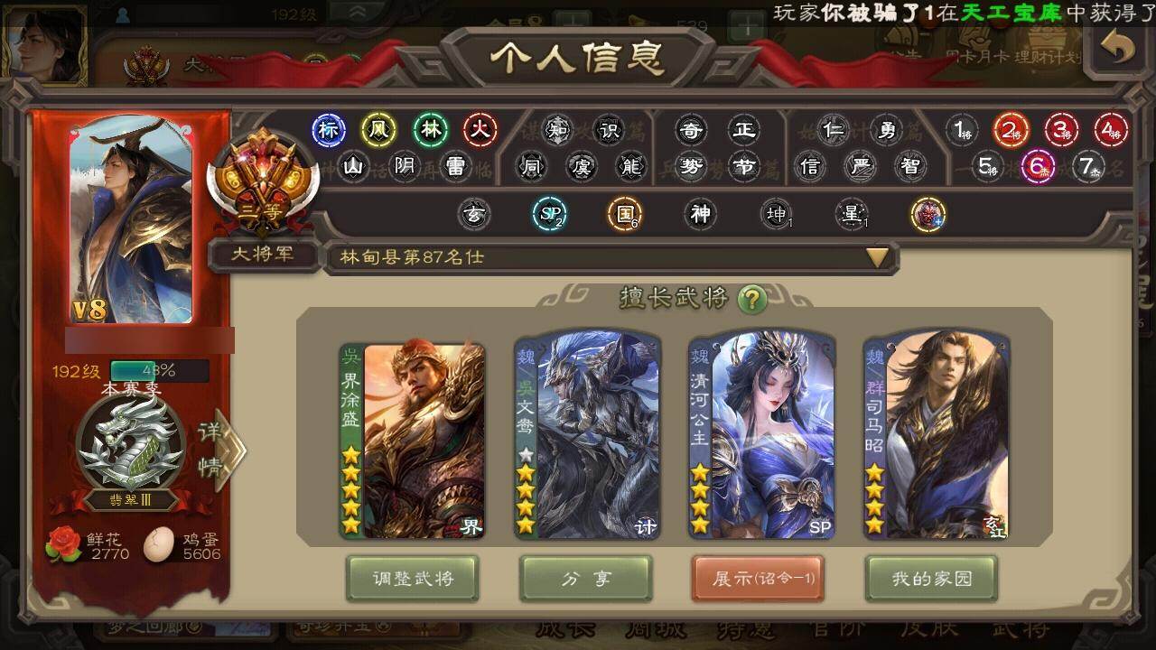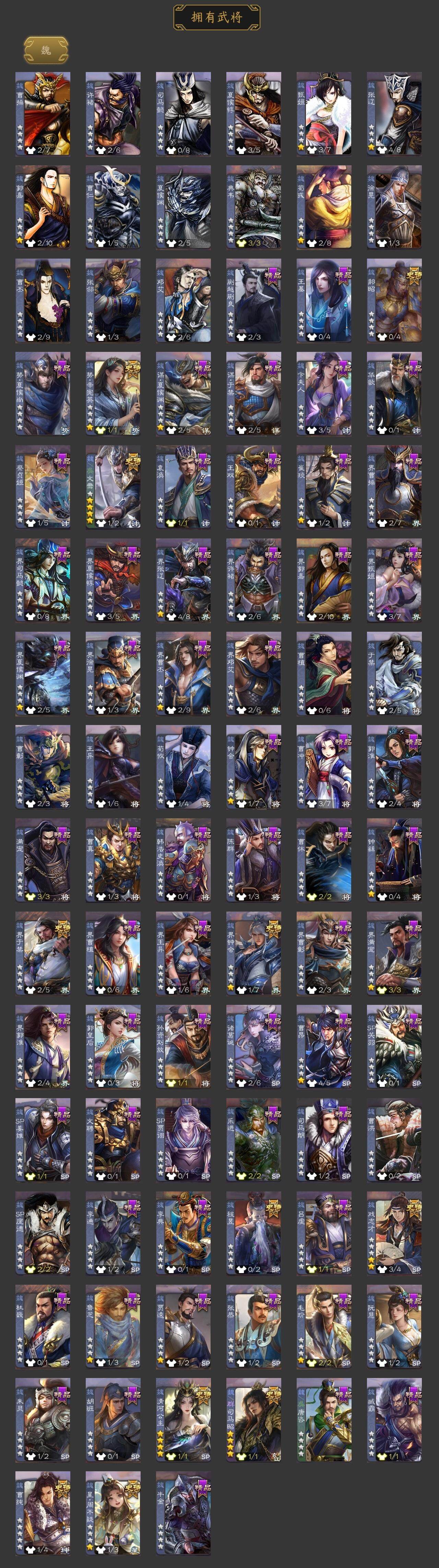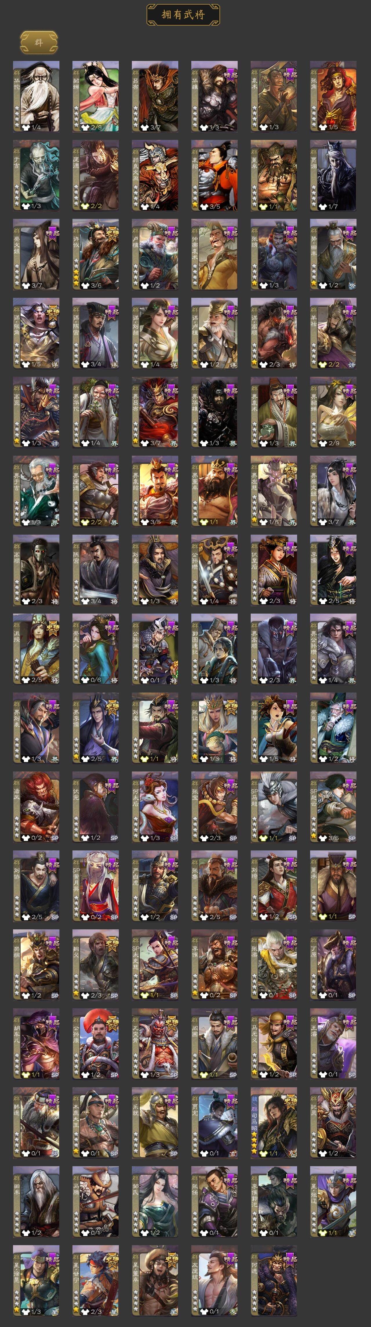 [15513698]【1117】官阶:大将军;vip等级:vip8;史诗武将数量:33;动态皮肤数量:31;武将总数:356;史诗宝珠数量:18;将魂数量:6367;神将:2;魏国史诗武将:14;蜀国史诗武将:6;吴国史诗武将:6;群史诗武将:13 神张辽神诸葛亮星周不疑界钟会界于禁郝昭曹纯戏志才清河公主势辛宪英程昱谋赵云谋马超赵襄沙摩柯界黄忠花鬘吴景界徐盛界步练师势陆郁生文鸯张让星甘宁麹义沮授界左慈界李儒公孙康谋张角许攸星董卓兀突骨司马昭神吕蒙神周瑜势夏侯尚sp关羽乐进曹昂诸葛诞朱灵文聘sp姜维钟会曹冲郭淮满宠界王异界曹操界司马懿界夏侯惇界张辽界许褚界郭嘉李典曹真韩浩史涣陈群曹休钟繇司马朗王基李通郭皇后孙资刘放界甄姬吕虔鲁芝蒯越蒯良界徐晃杜畿界曹丕界邓艾张恭贾逵界曹植界曹彰界满宠界郭淮卞夫人华歆蔡贞姬袁涣王双崔琰毛玠阮慧谋于禁胡班谋夏侯渊牛金界夏侯渊臧霸唐咨势陈到sp孙尚香夏侯霸马良关兴张苞廖化界马岱关平简雍刘封界法正界关兴张苞界刘备界关羽界张飞界赵云界马超sp徐庶吴懿周仓张松刘谌夏侯氏糜竺马忠孙乾李严黄皓界黄月英界诸葛亮严颜界伊籍界庞统界孟获界祝融陈到界姜维胡金定张翼杨仪界廖化邓芝傅肜陈震费祎糜夫人王甫赵累宗预彭羕谋庞统界张嶷谋张飞霍峻诸葛果界魏延甘夫人势陈祗鲁肃凌操诸葛恪诸葛瑾孙鲁育程普韩当潘璋马忠虞翻朱然界甘宁界吕蒙界黄盖界周瑜界大乔界陆逊孙鲁班朱桓顾雍孙休全琮阚泽孙登岑昏界孙权界孙尚香潘濬孙亮严畯周鲂周妃界张昭张纮卫温诸葛直界吴国太界凌统界韩当界程普界虞翻界潘璋马忠孙邵桥公陈武董袭蒋钦吕范界顾雍谋韩当谋吕蒙谋周瑜界全琮界朱治谋小乔张布界小乔友庞统蔡文姬伏完刘协界袁术sp赵云张宝界华雄伏皇后李儒界于吉华雄袁术界华佗界吕布公孙瓒蔡夫人公孙渊郭图逢纪张鲁严白虎sp黄月英刘虞曹节蔡邕界貂蝉sp太史慈张梁卢植刘琦李傕界庞