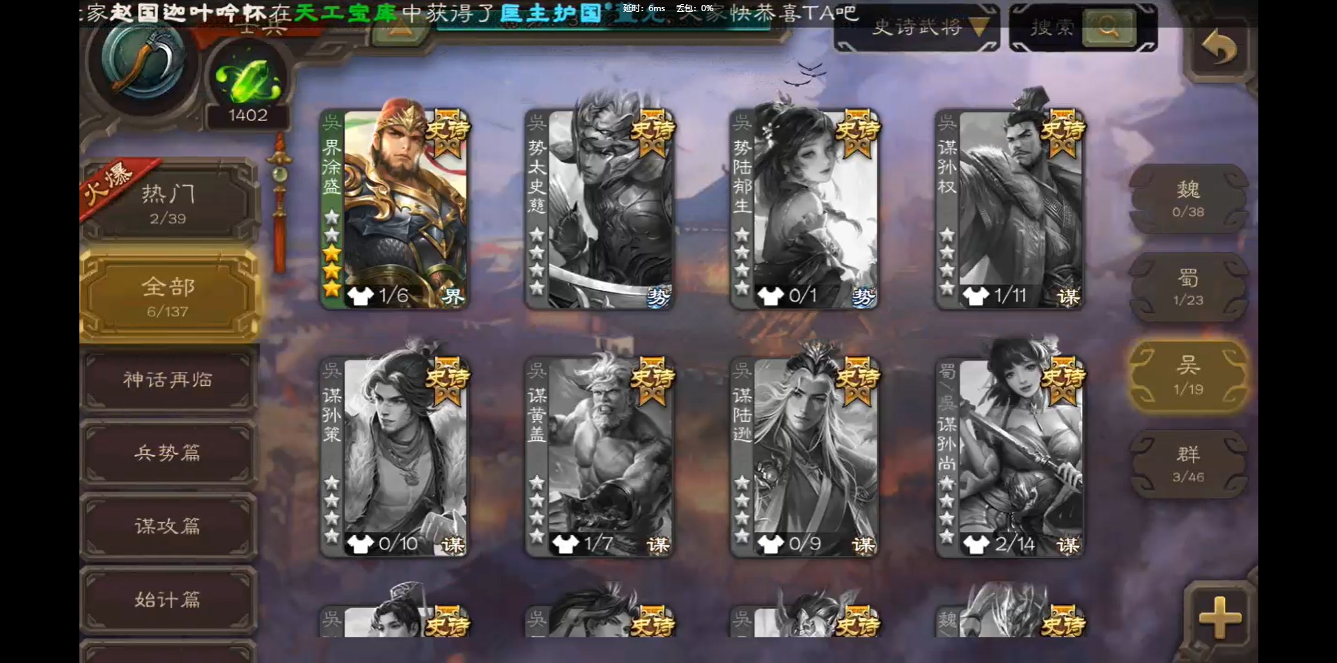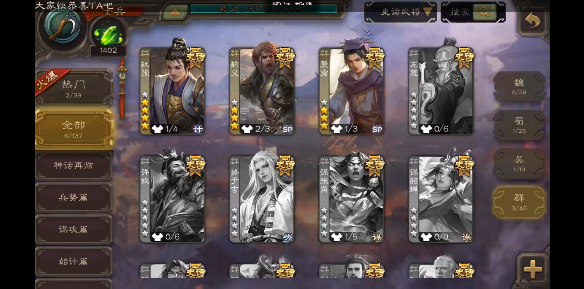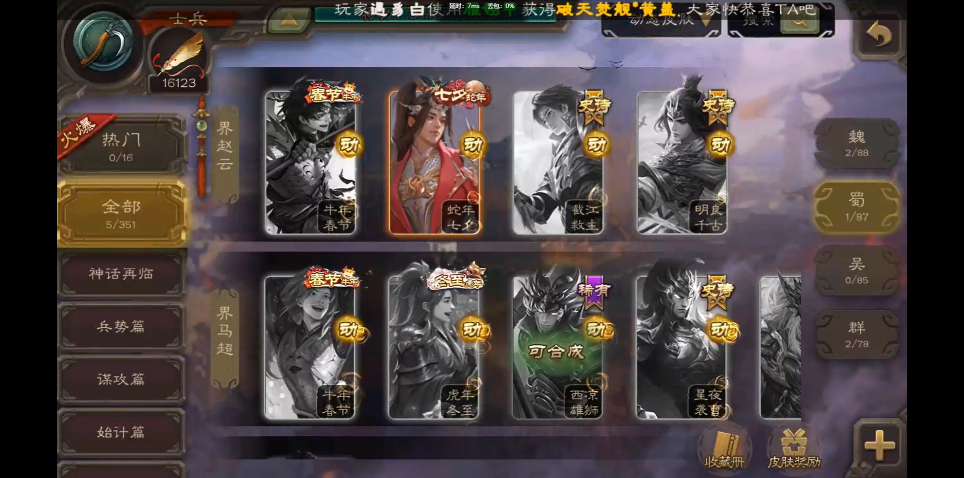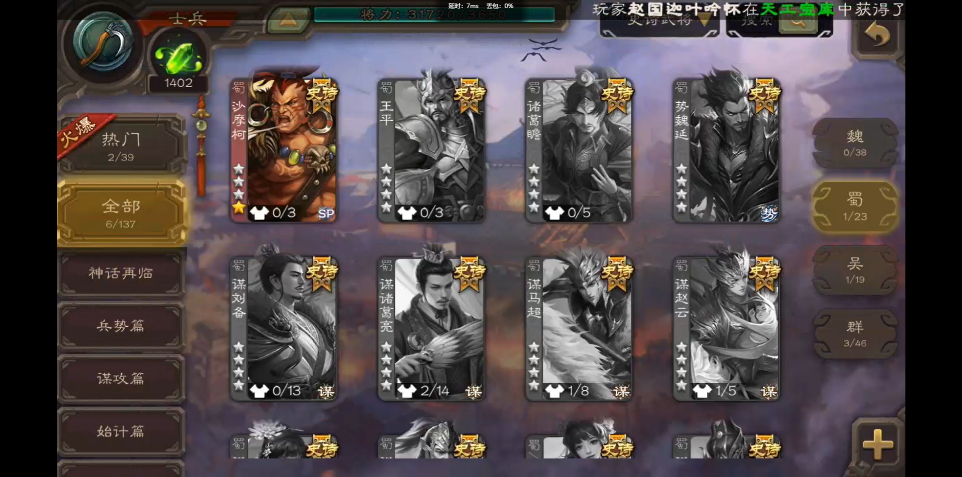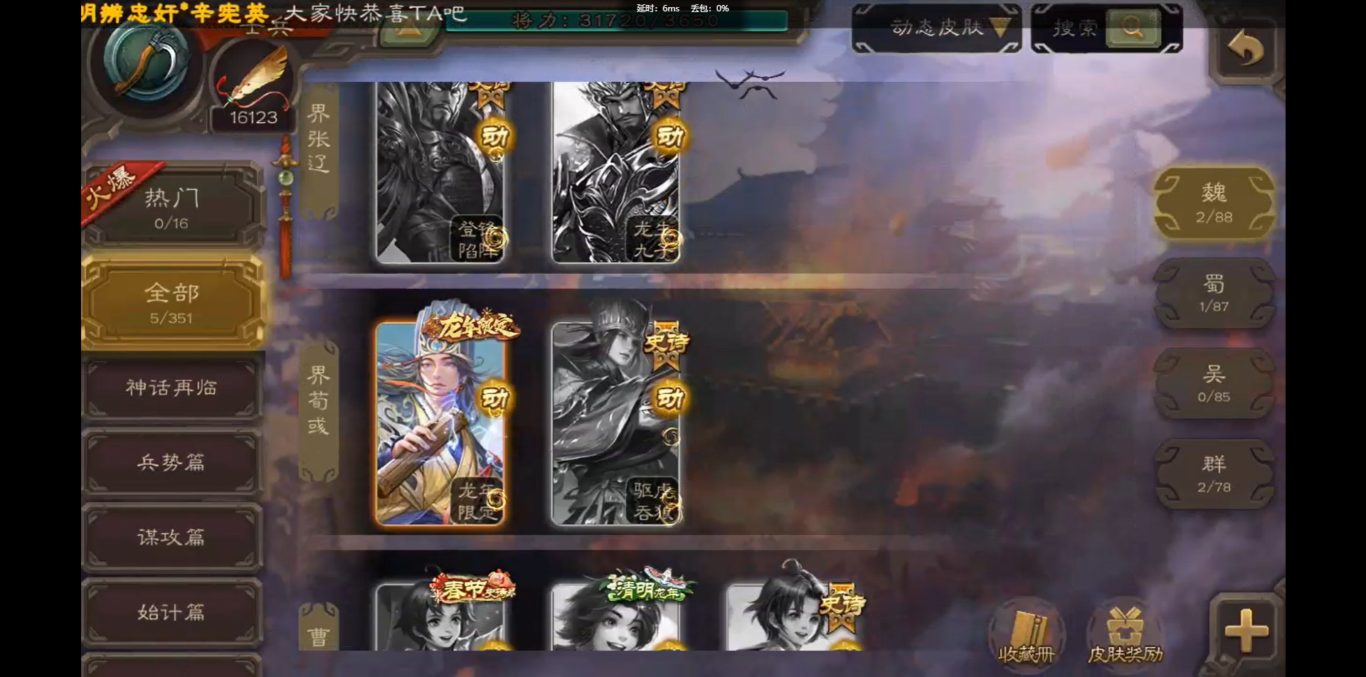 [16295492]vip5 士兵 164武将 5动态皮肤 6史诗武将 【神将】:神吕布 【魏国武将】:甄姬司马懿许褚夏侯惇郭嘉曹仁曹操张辽 【蜀国武将】:沙摩柯 【吴国武将】:界徐盛 【群国武将】:裴秀麹义杜预