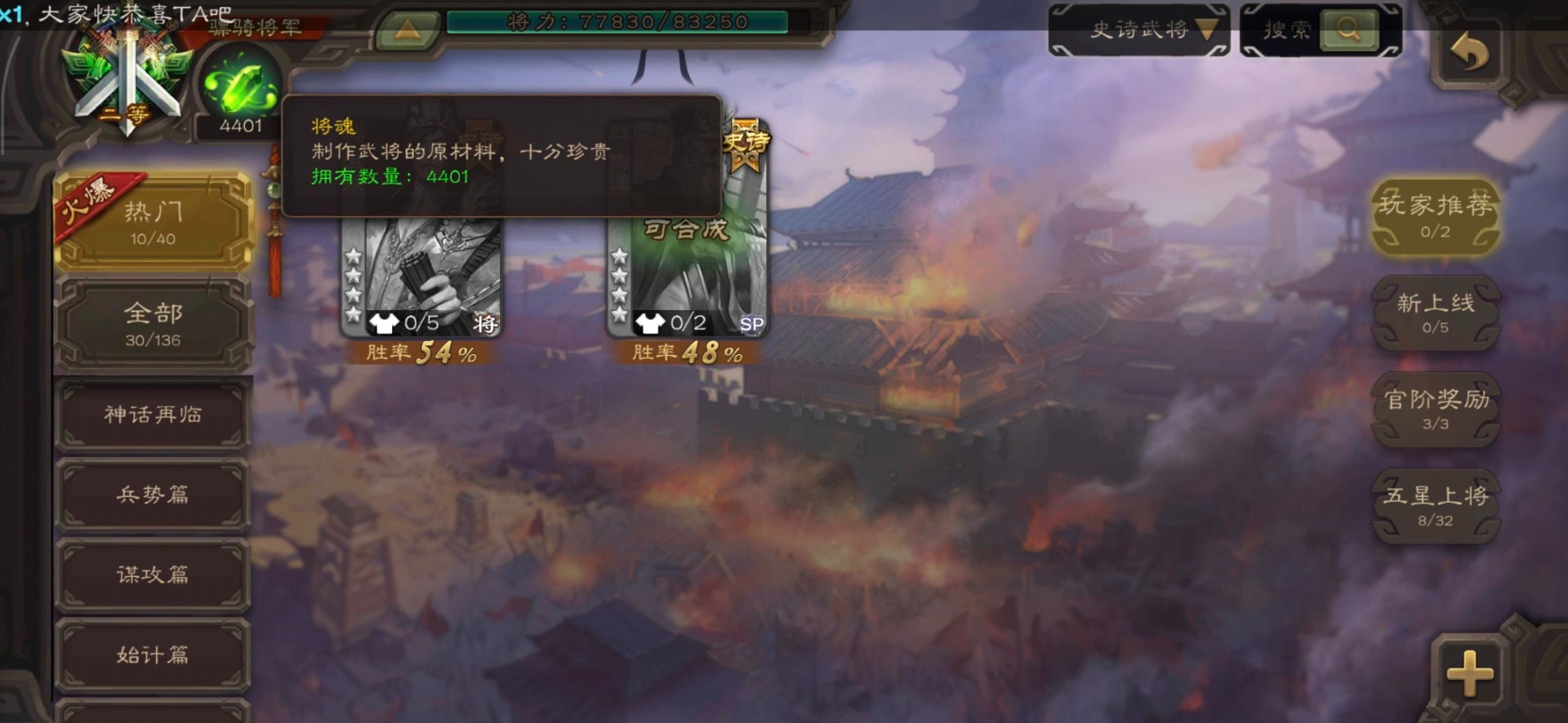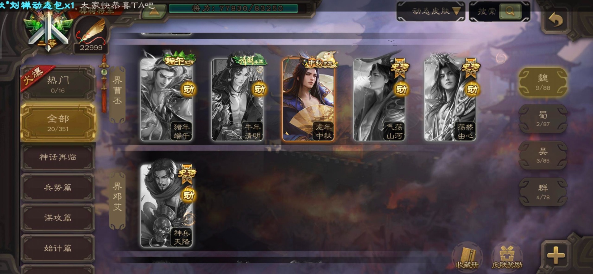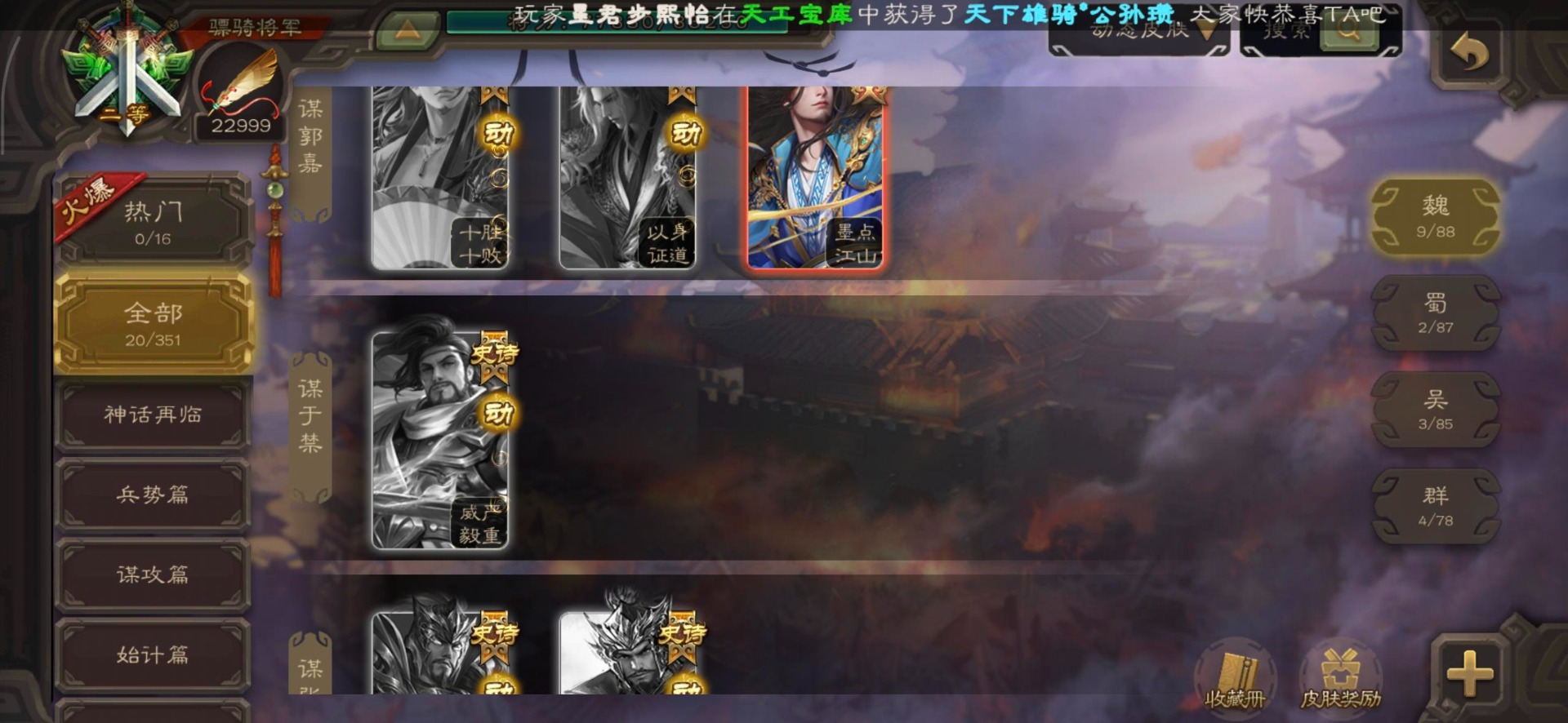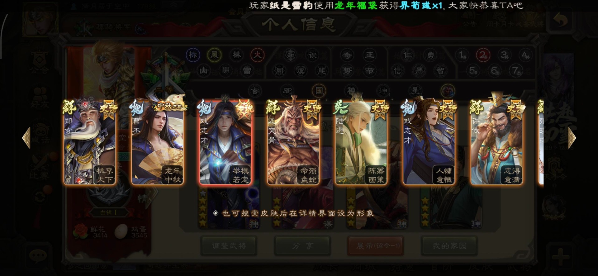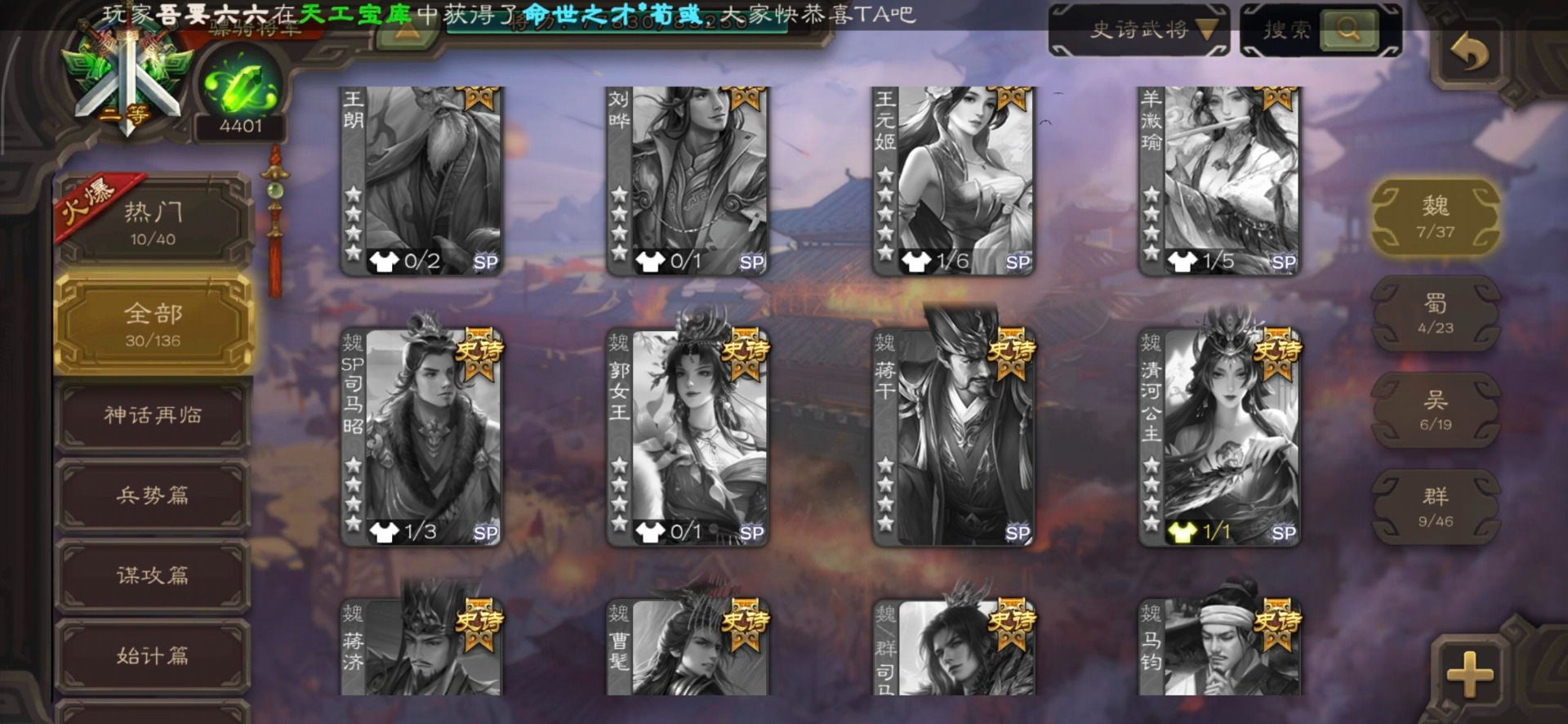 [16295575]vip8 骠骑将军 278武将 20动态皮肤 30史诗武将 【魏国武将】:星周不疑界钟会郝昭程昱曹婴曹纯戏志才于禁界夏侯惇曹彰界张辽曹植李通界许褚吕虔界荀彧界郭嘉张恭王异sp贾诩