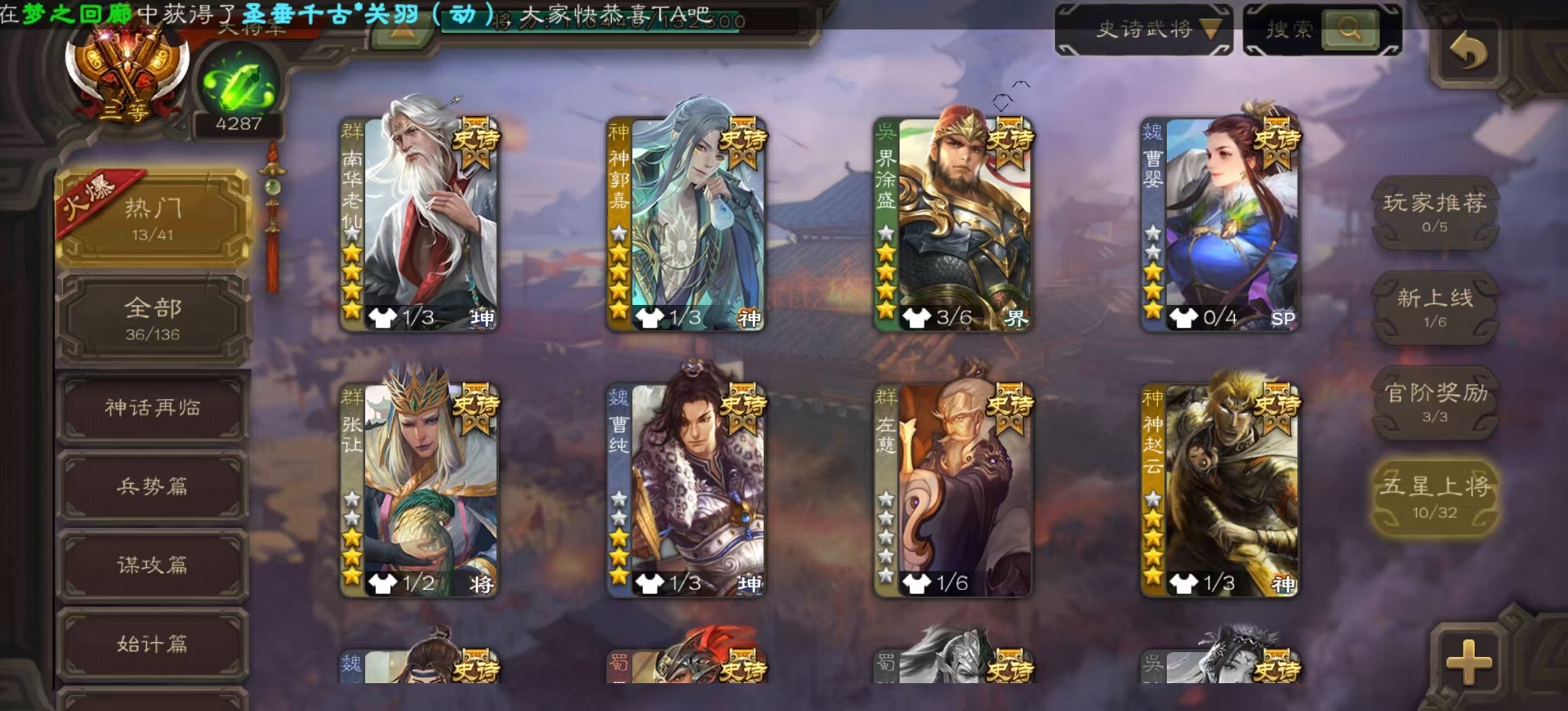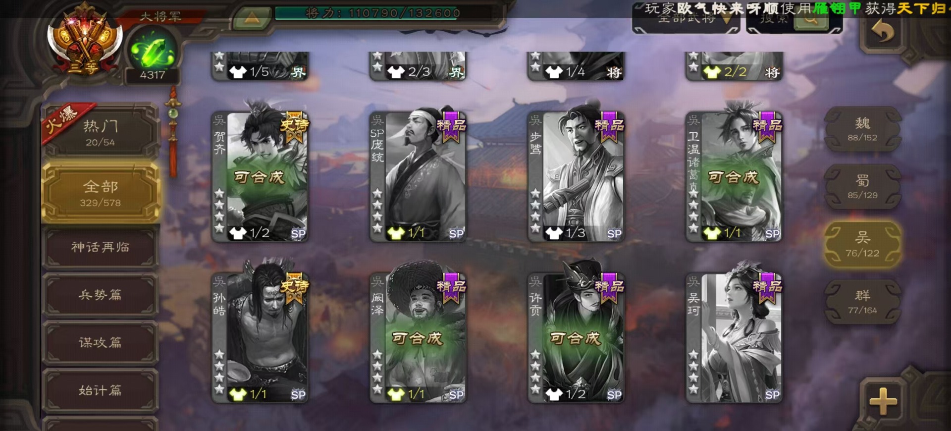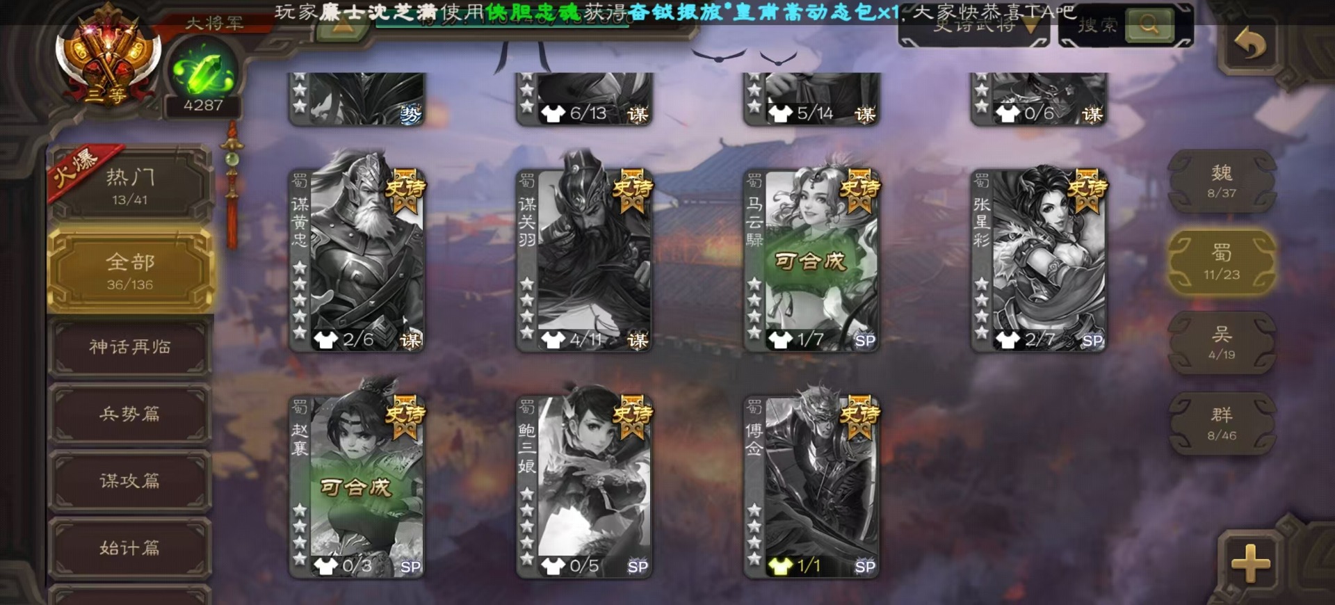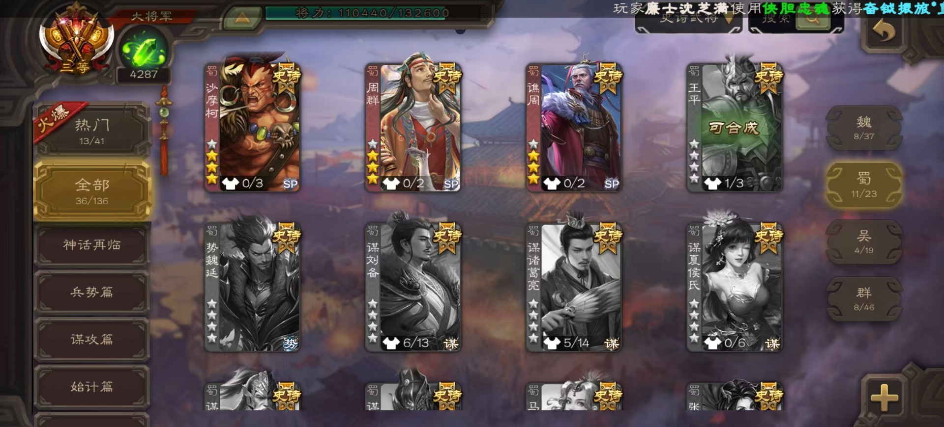 [16295583]vip8 大将军 329武将 40动态皮肤 36史诗武将 4宝珠 【神将】:神吕布神赵云神陆逊神张辽神郭嘉神太史慈 【魏国武将】:星周不疑界钟会程昱陈琳曹婴曹纯戏志才 【蜀国武将】:蜀-谋孙尚香谋赵云谋马超诸葛瞻周群沙摩柯谯周界黄忠花鬘关索董允 【吴国武将】:势陆郁生吴-谋孙尚香吴景界徐盛 【群国武将】:皇甫嵩左慈张让兀突骨苏飞麹义南华老仙界李儒