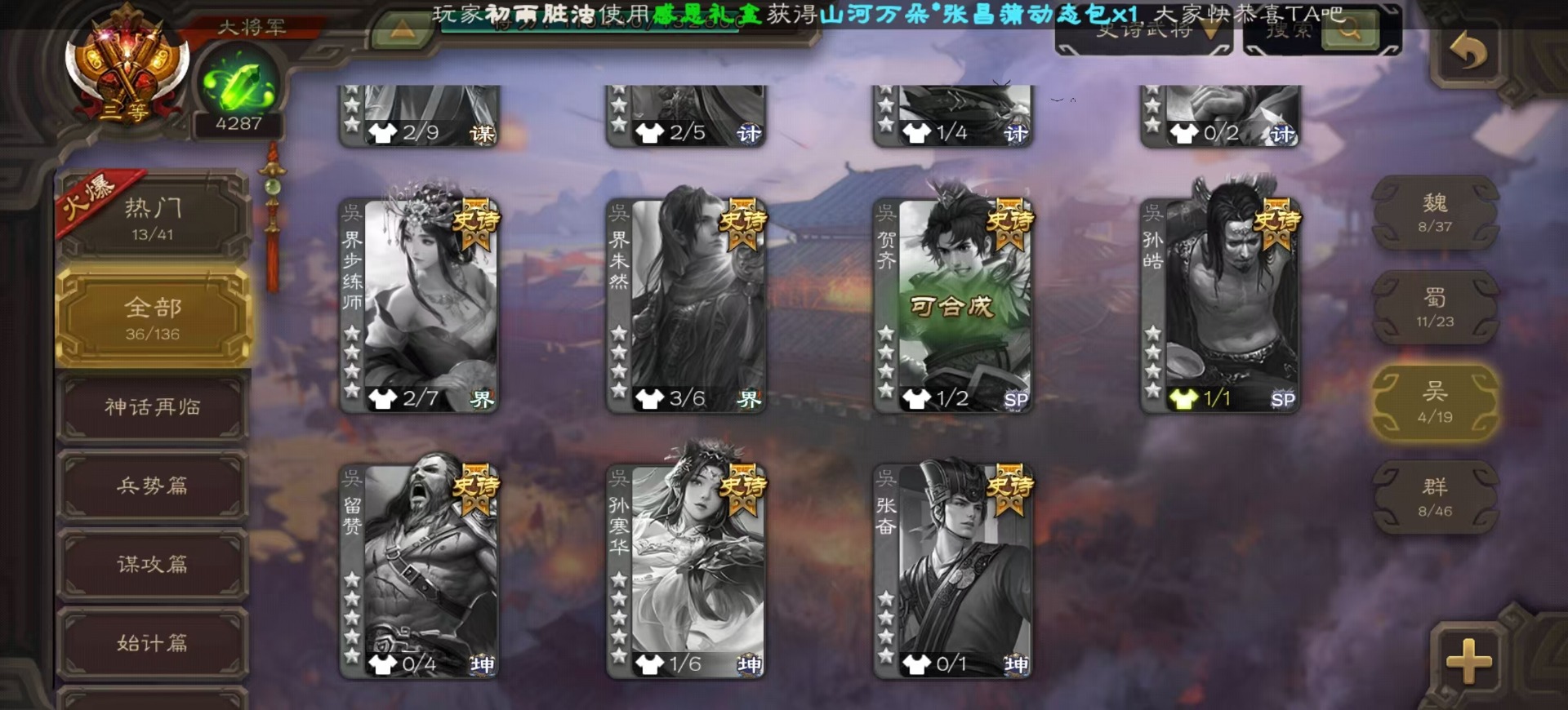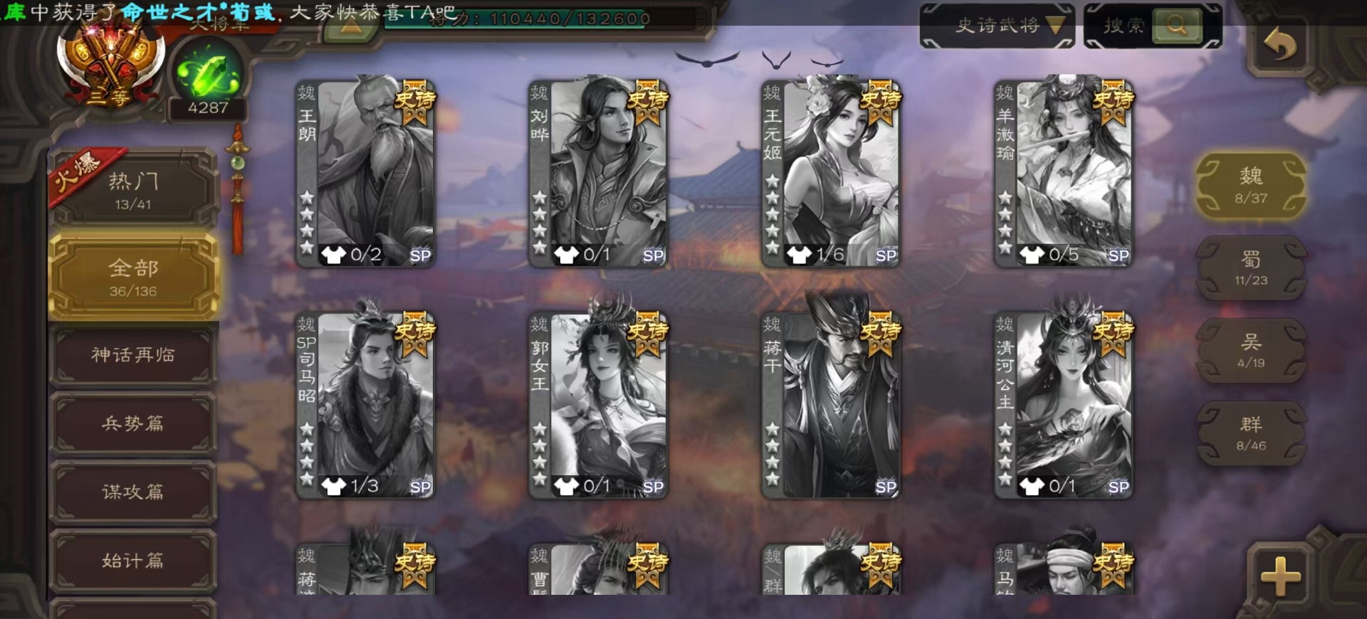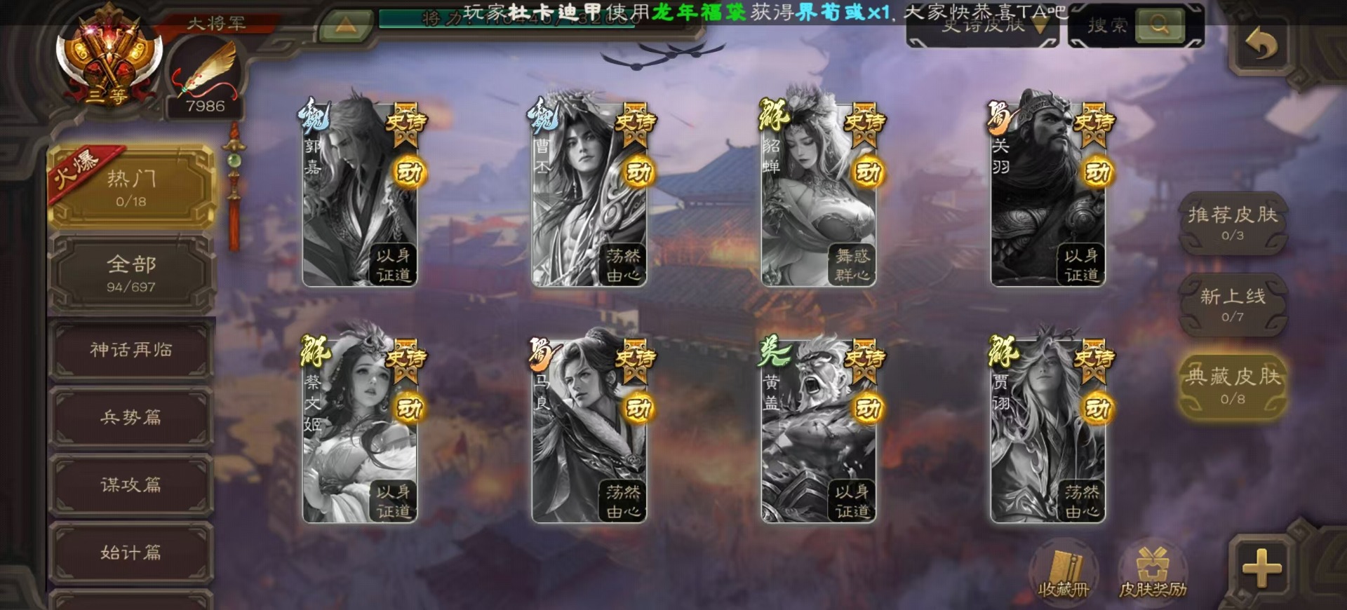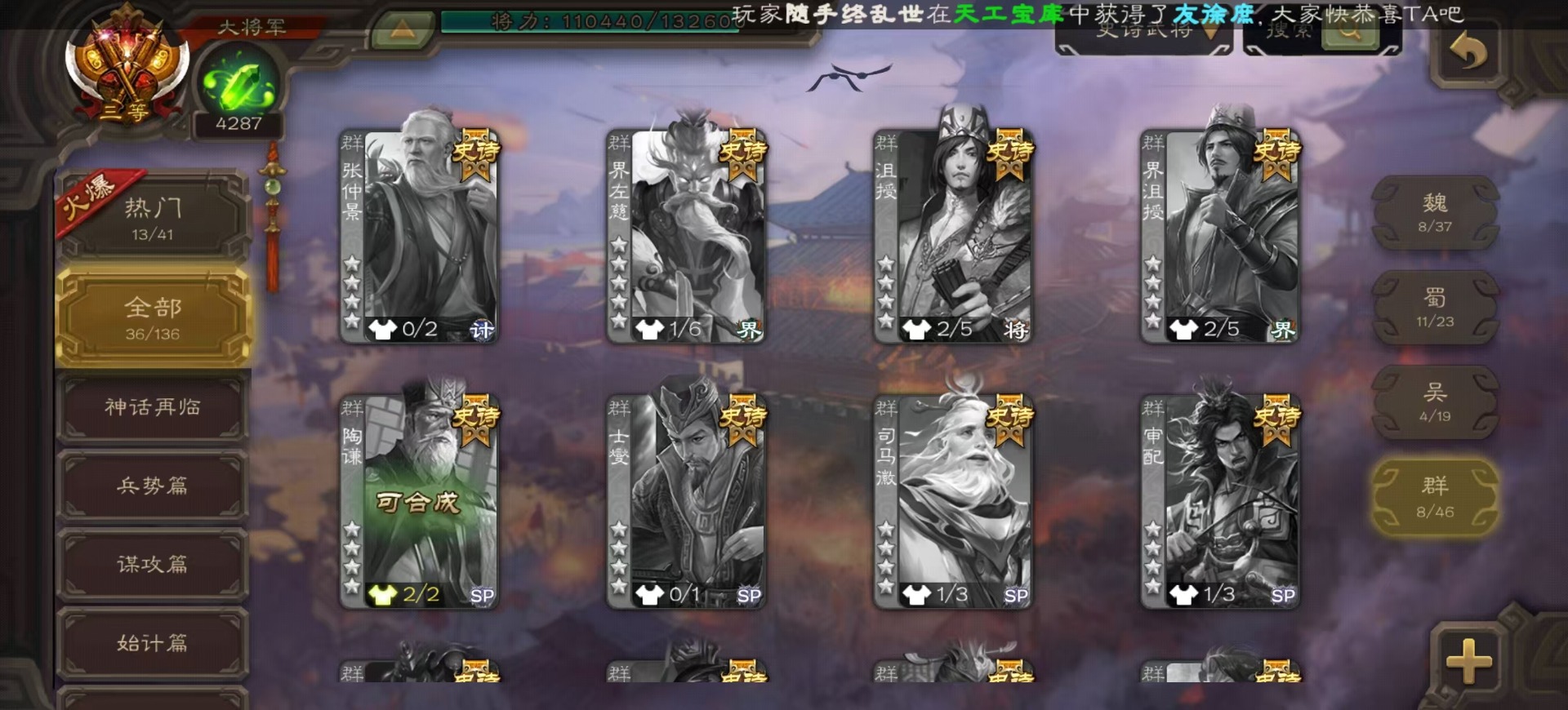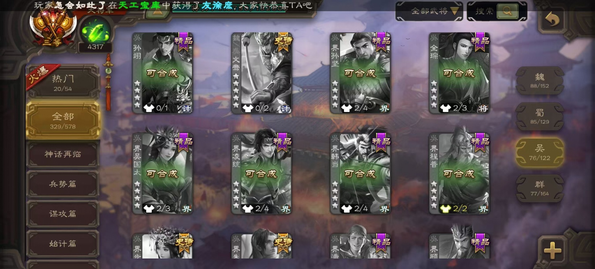 [16295583]vip8 大将军 329武将 40动态皮肤 36史诗武将 4宝珠 【神将】:神吕布神赵云神陆逊神张辽神郭嘉神太史慈 【魏国武将】:星周不疑界钟会程昱陈琳曹婴曹纯戏志才 【蜀国武将】:蜀-谋孙尚香谋赵云谋马超诸葛瞻周群沙摩柯谯周界黄忠花鬘关索董允 【吴国武将】:势陆郁生吴-谋孙尚香吴景界徐盛 【群国武将】:皇甫嵩左慈张让兀突骨苏飞麹义南华老仙界李儒