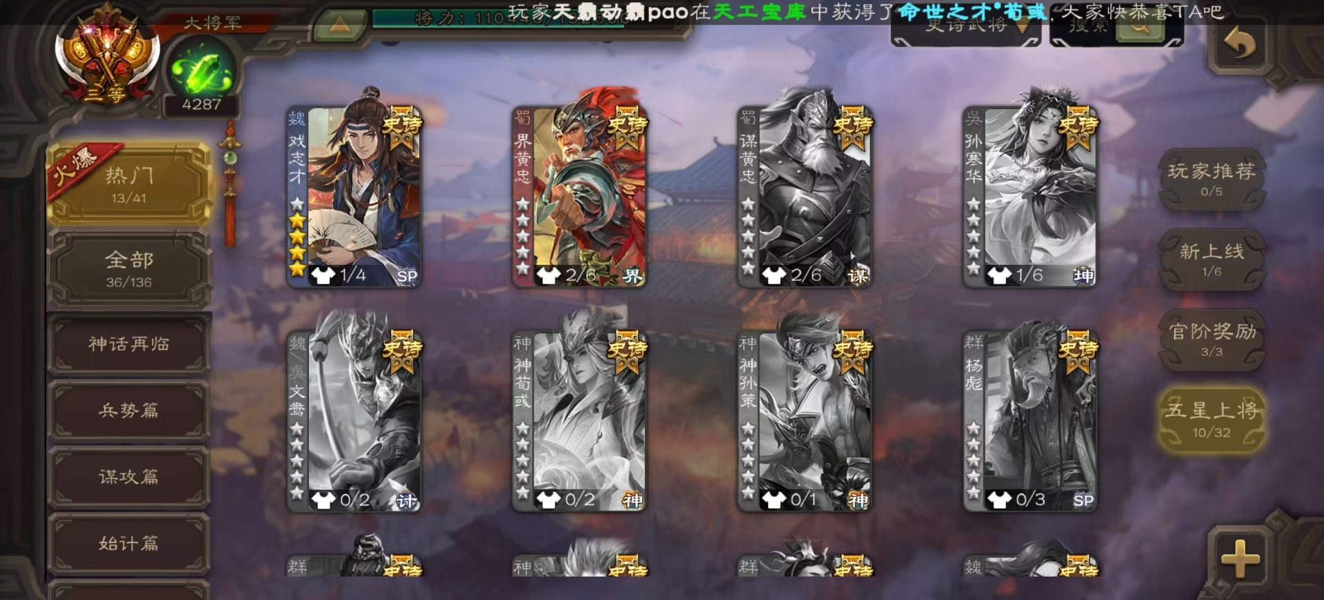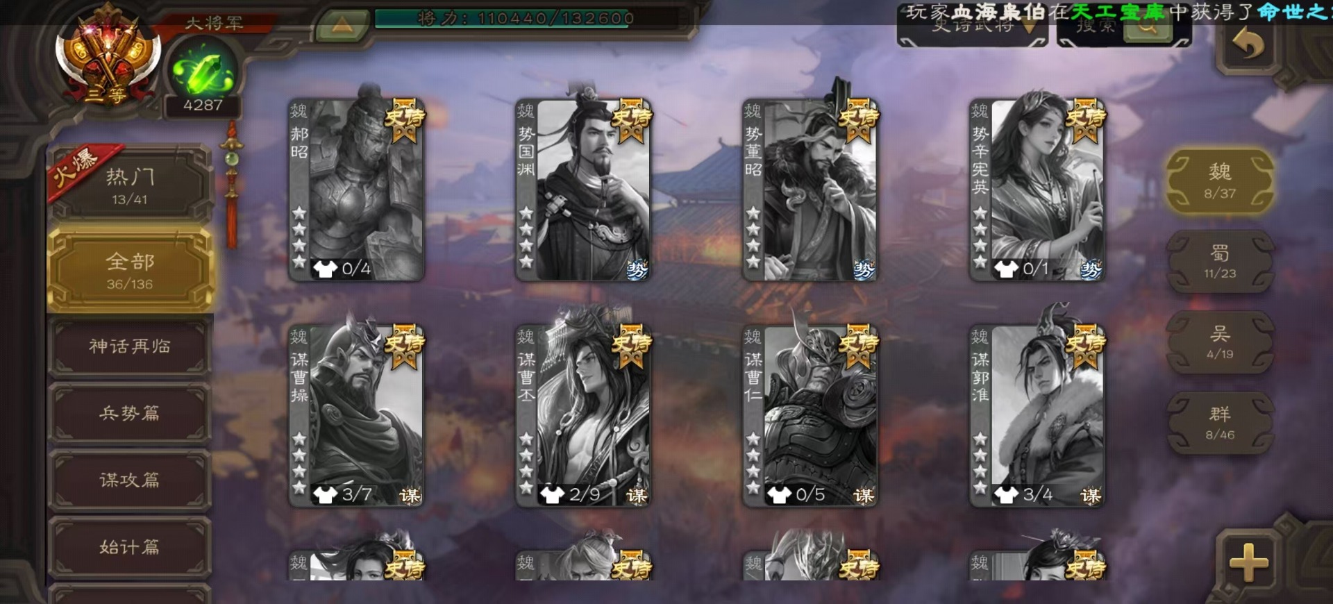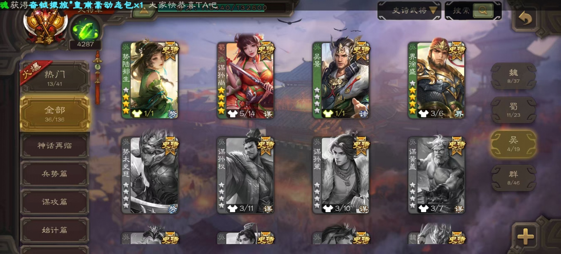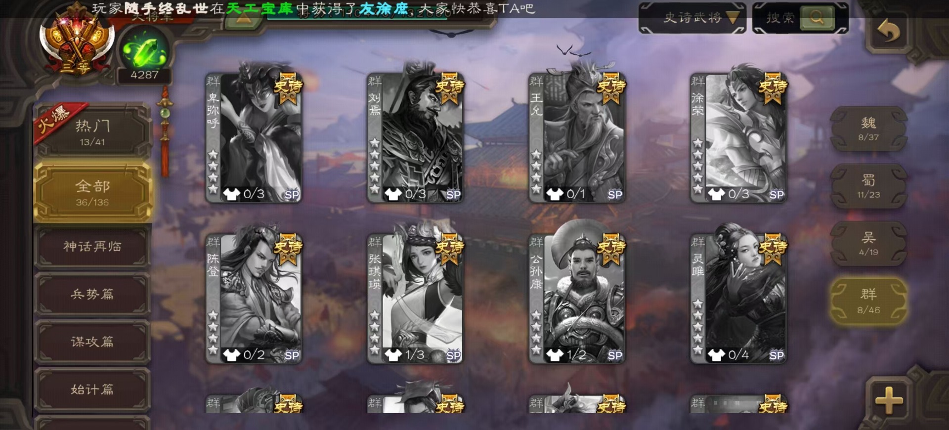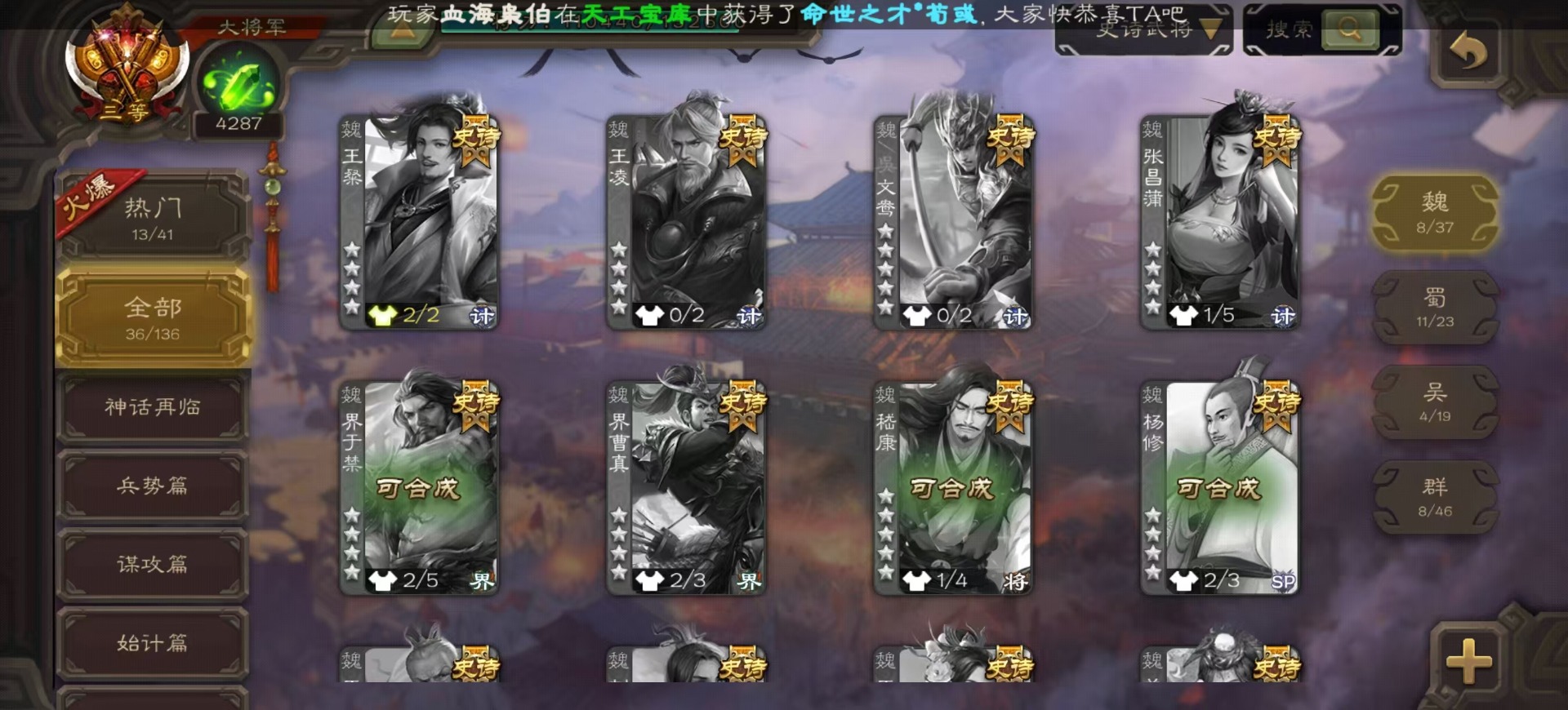 [16295583]vip8 大将军 329武将 40动态皮肤 36史诗武将 4宝珠 【神将】:神吕布神赵云神陆逊神张辽神郭嘉神太史慈 【魏国武将】:星周不疑界钟会程昱陈琳曹婴曹纯戏志才 【蜀国武将】:蜀-谋孙尚香谋赵云谋马超诸葛瞻周群沙摩柯谯周界黄忠花鬘关索董允 【吴国武将】:势陆郁生吴-谋孙尚香吴景界徐盛 【群国武将】:皇甫嵩左慈张让兀突骨苏飞麹义南华老仙界李儒