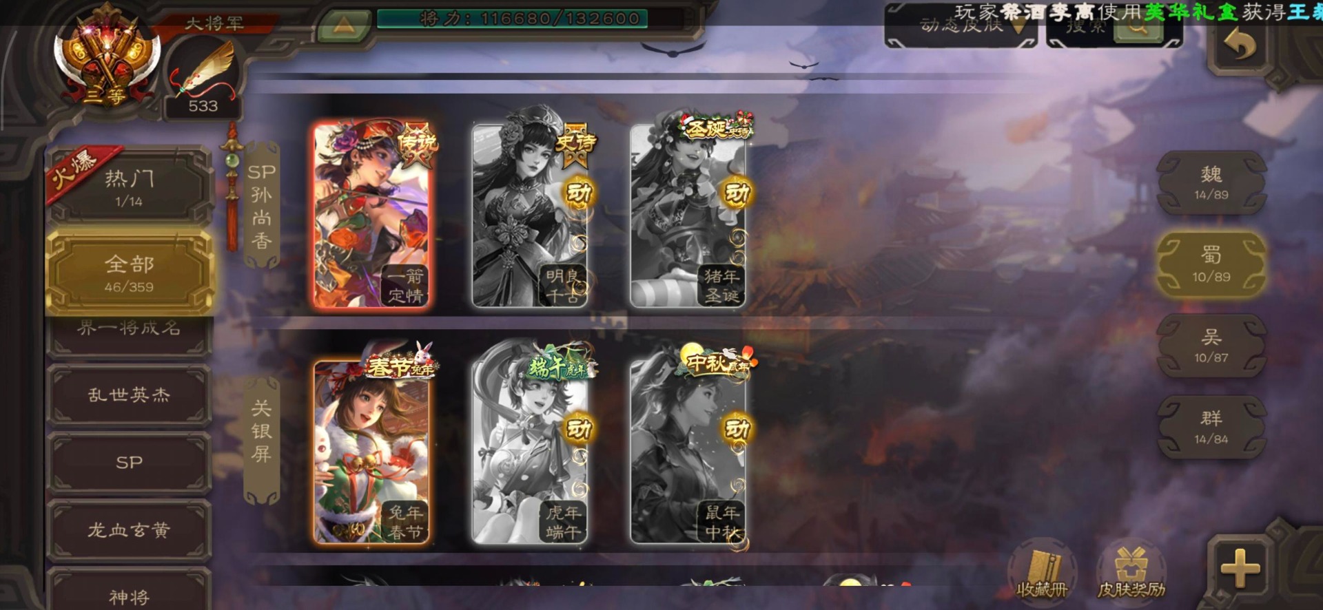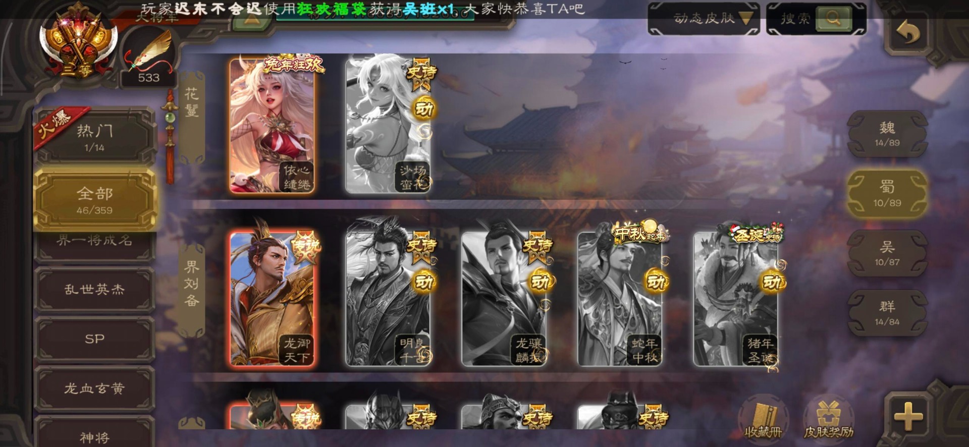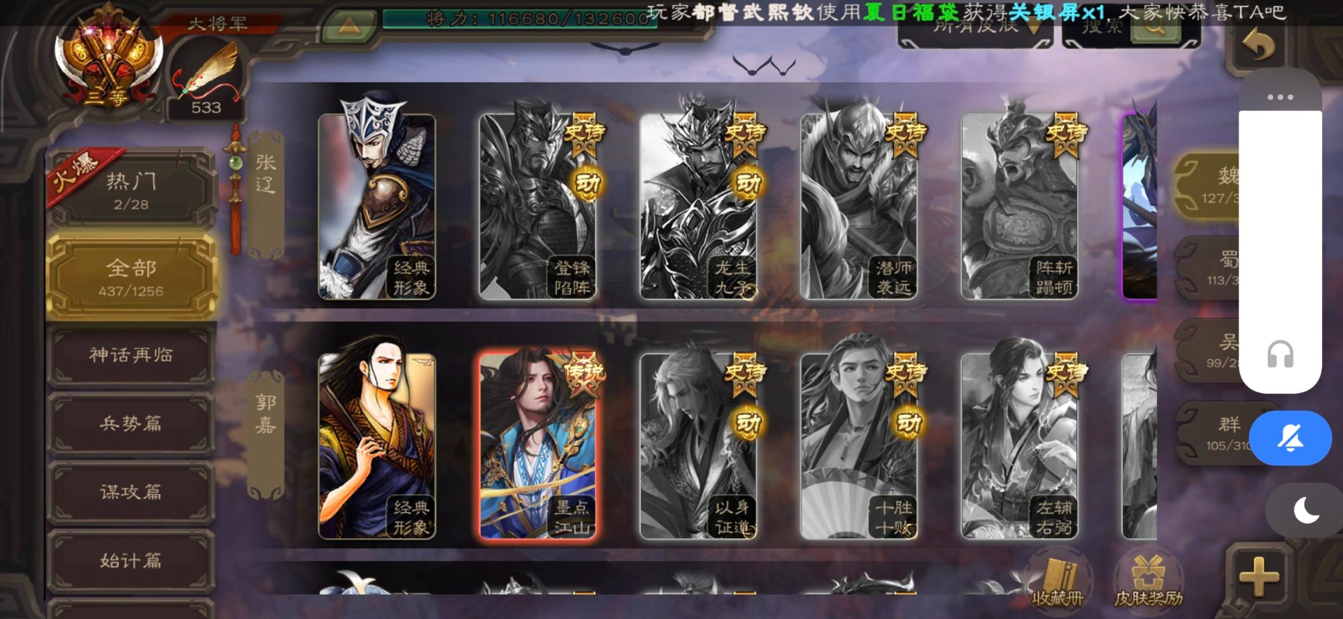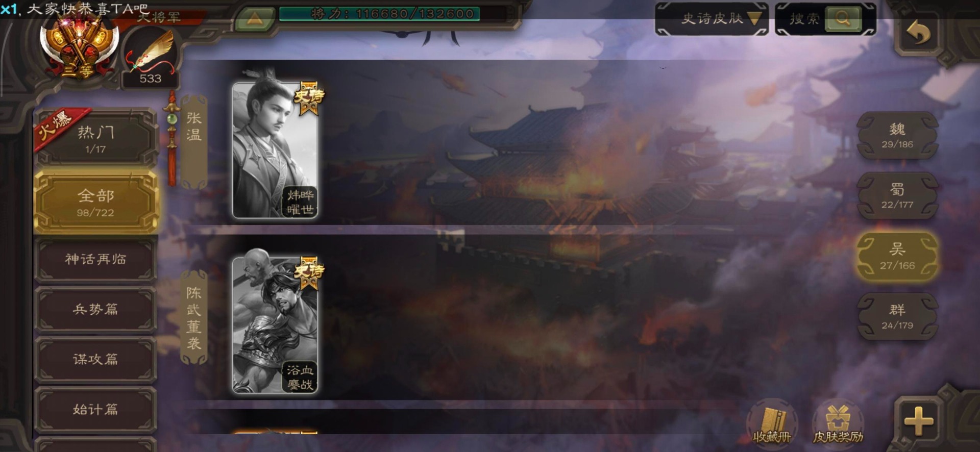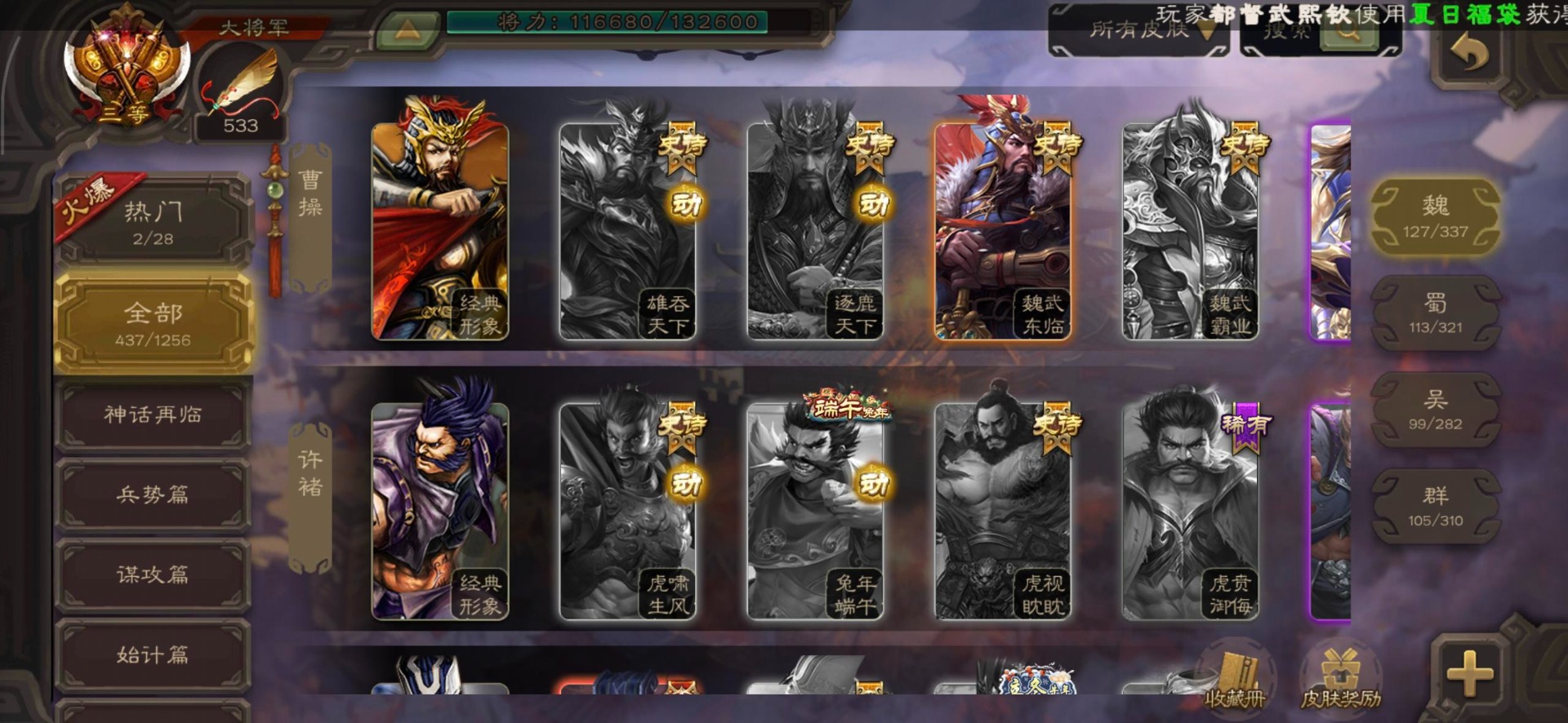 [16303485]vip8 大将军 350武将 46动态皮肤 40史诗武将 41宝珠 【魏国武将】势·钟会清河公主势辛宪英星周不疑王元姬程昱陈琳曹婴曹纯戏志才 【蜀国武将】谋诸葛亮谋赵云谋马超诸葛瞻张星彩沙摩柯谯周花鬘董允谋关羽 【吴国武将】势太史慈势陆郁生界徐盛 【群国武将】群-司马昭界沮授左慈张让星甘宁兀突骨麹义南华老仙沮授界左慈界李儒谋张角公孙瓒