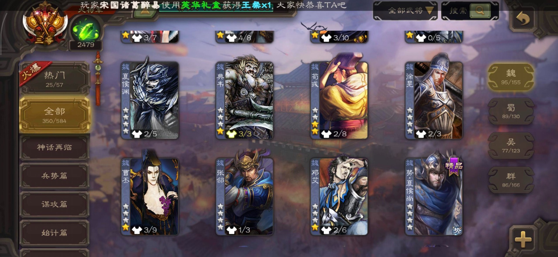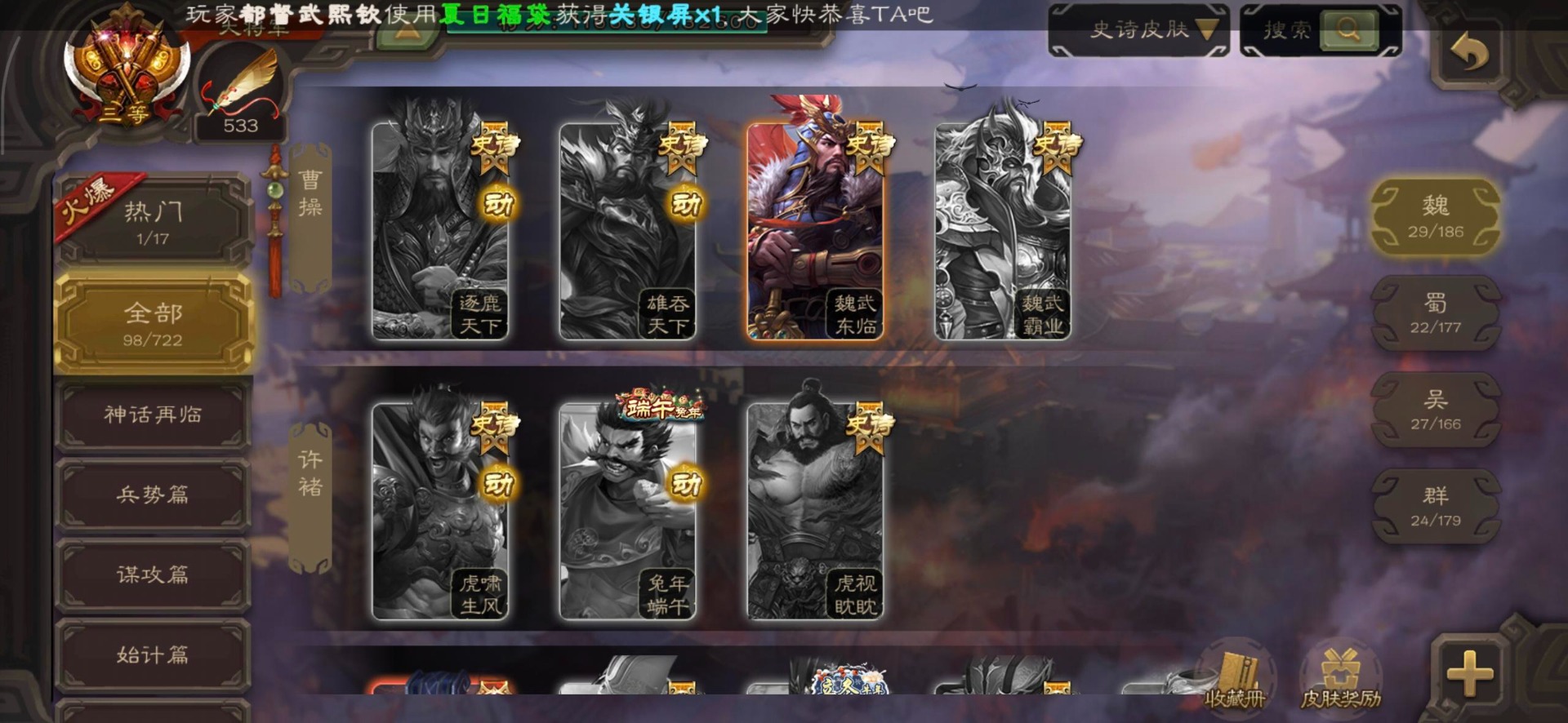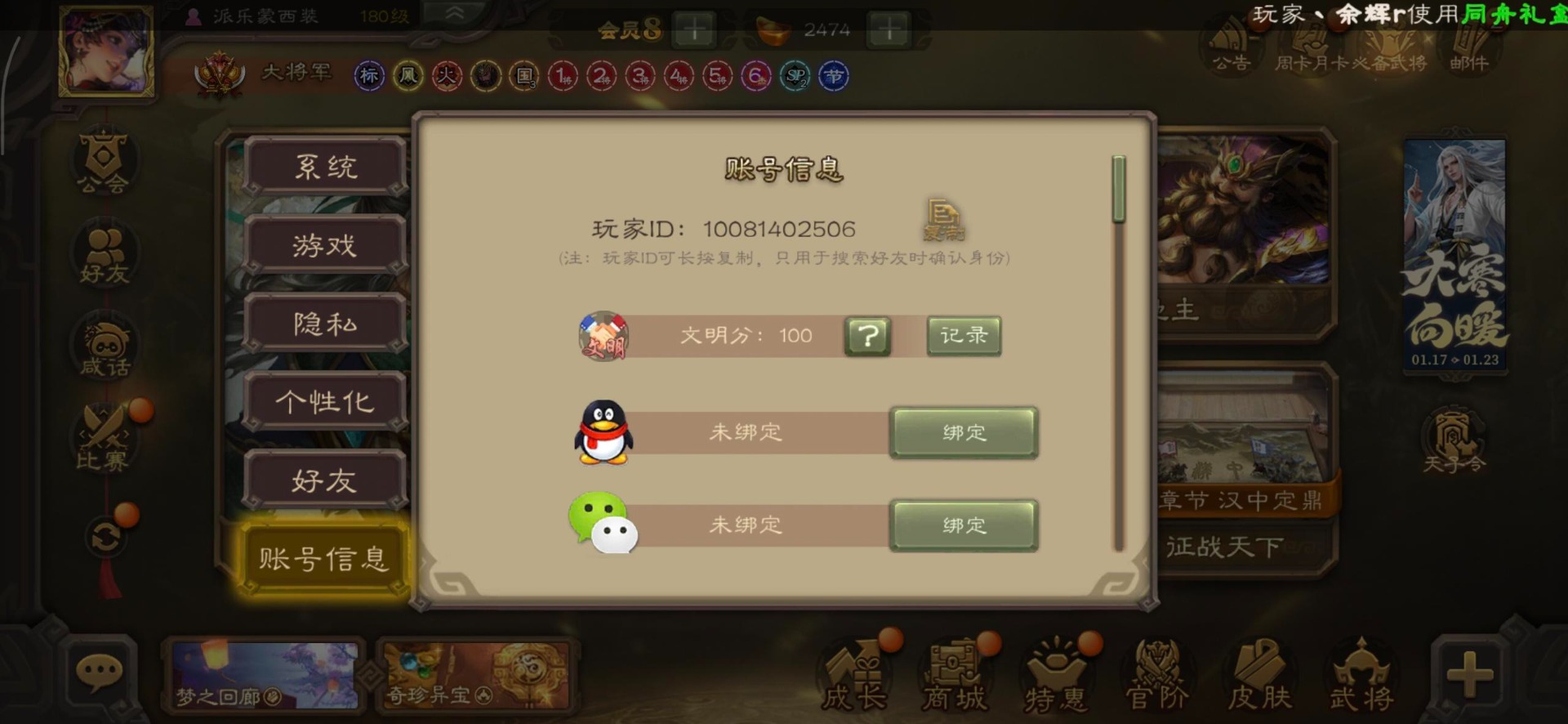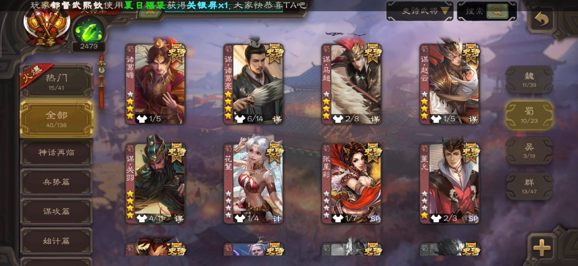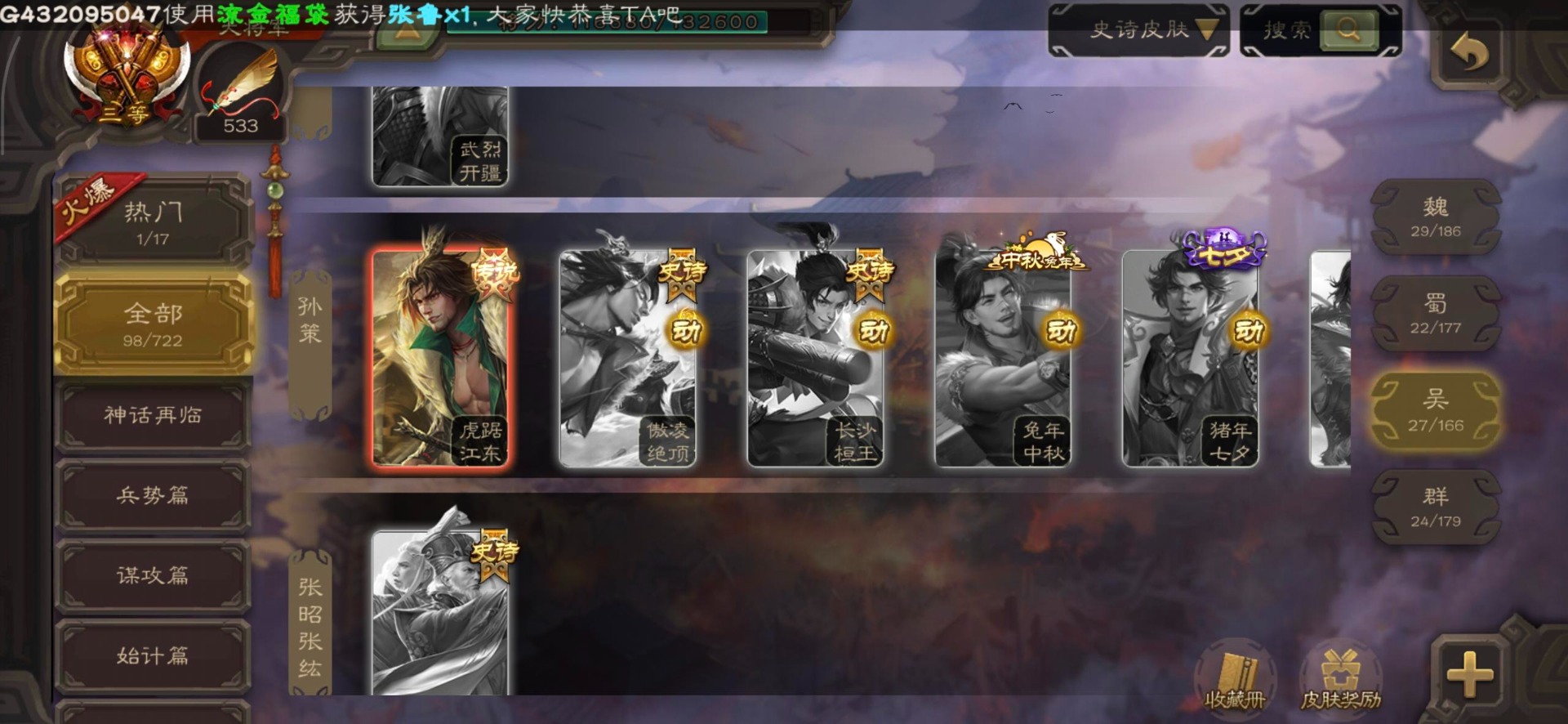 [16303485]vip8 大将军 350武将 46动态皮肤 40史诗武将 41宝珠 【魏国武将】势·钟会清河公主势辛宪英星周不疑王元姬程昱陈琳曹婴曹纯戏志才 【蜀国武将】谋诸葛亮谋赵云谋马超诸葛瞻张星彩沙摩柯谯周花鬘董允谋关羽 【吴国武将】势太史慈势陆郁生界徐盛 【群国武将】群-司马昭界沮授左慈张让星甘宁兀突骨麹义南华老仙沮授界左慈界李儒谋张角公孙瓒