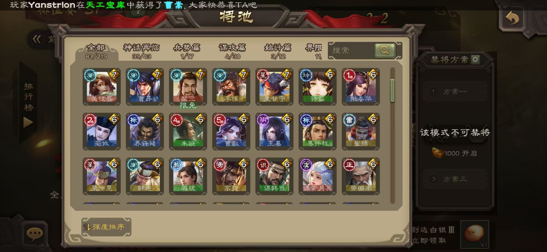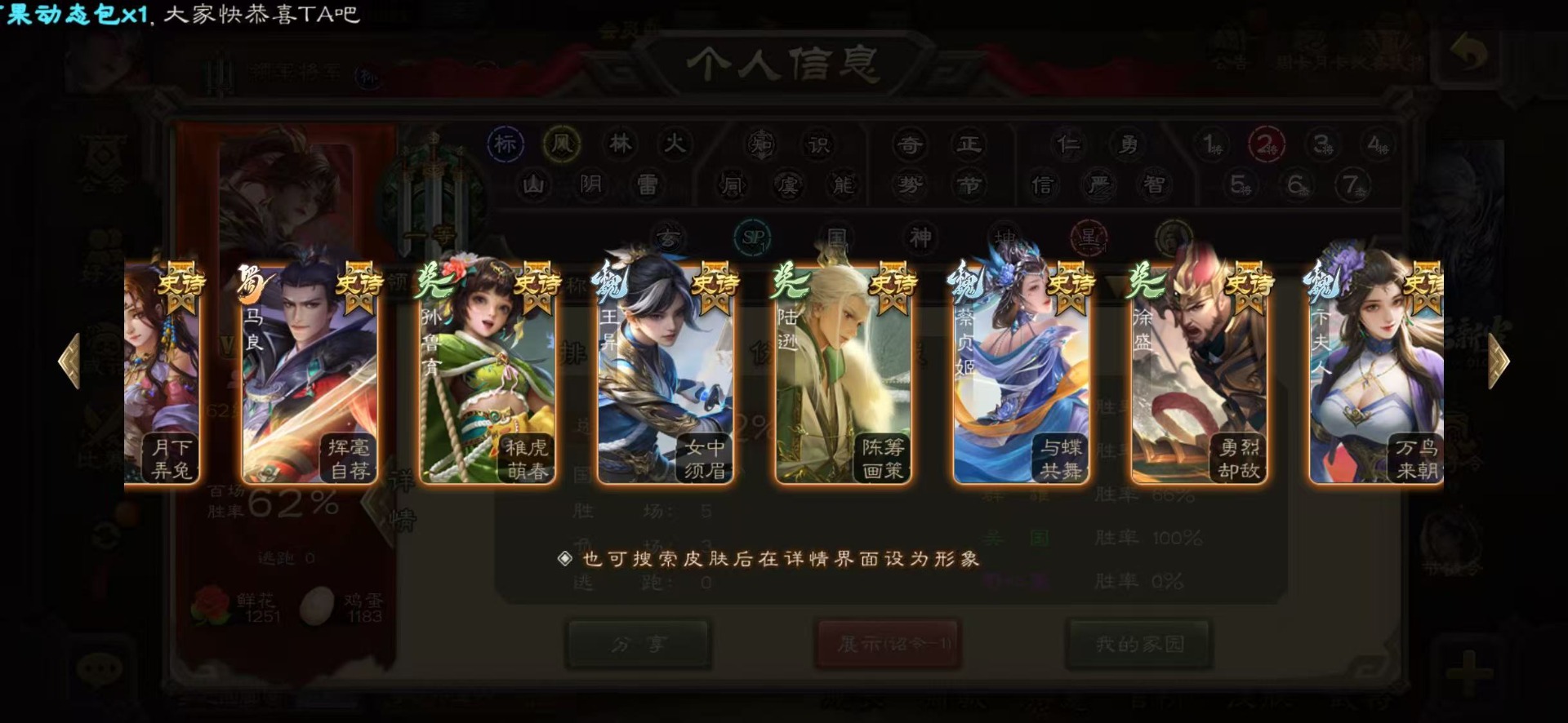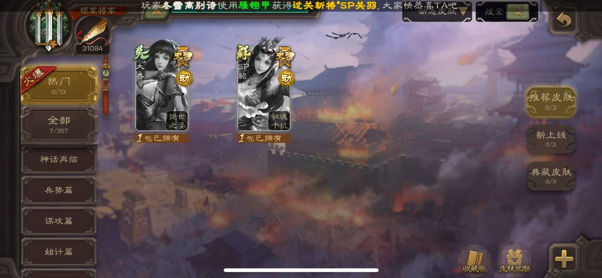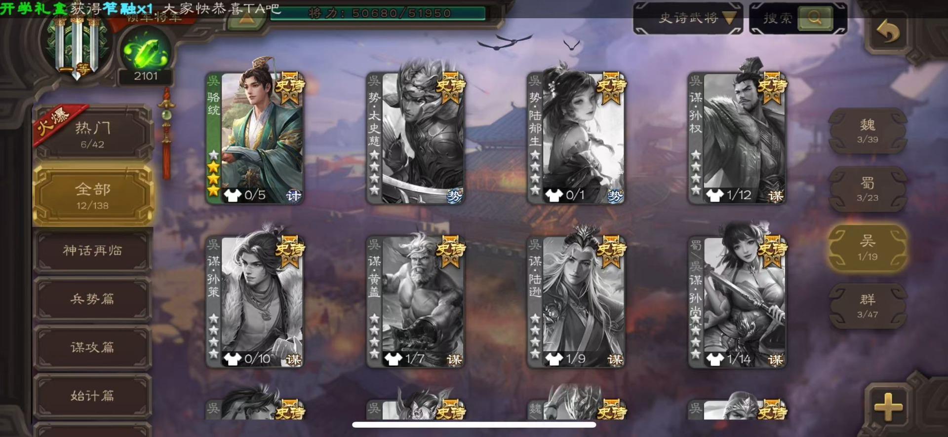 [16324316]vip6 领军将军 228武将 7动态皮肤 12史诗武将 44宝珠 【神将】神赵云神张辽 【魏国武将】程昱曹纯戏志才 【蜀国武将】谋赵云界黄忠花鬘 【吴国武将】骆统 【群国武将】界沮授左慈星甘宁