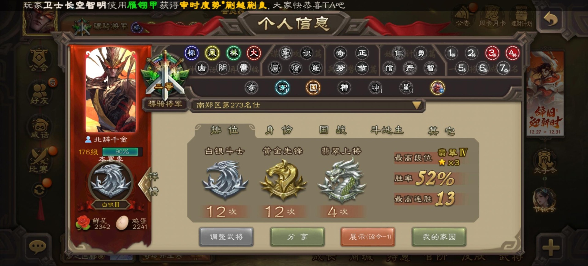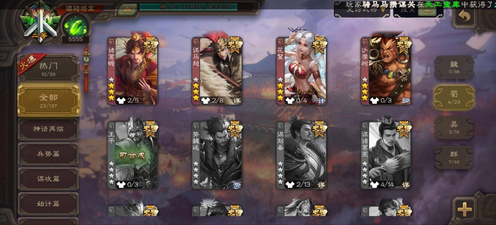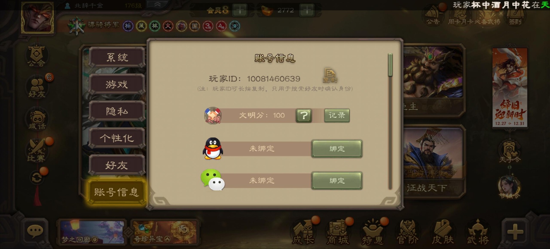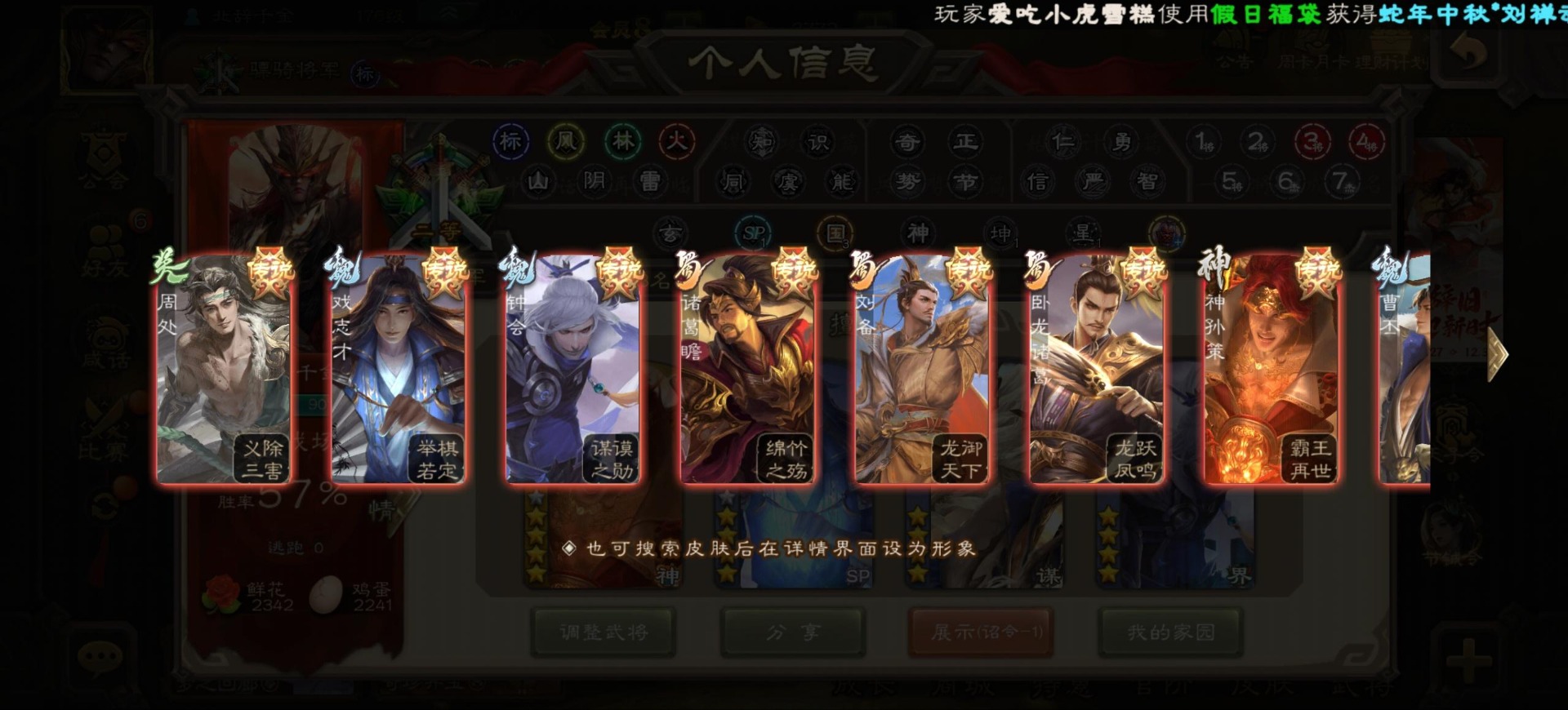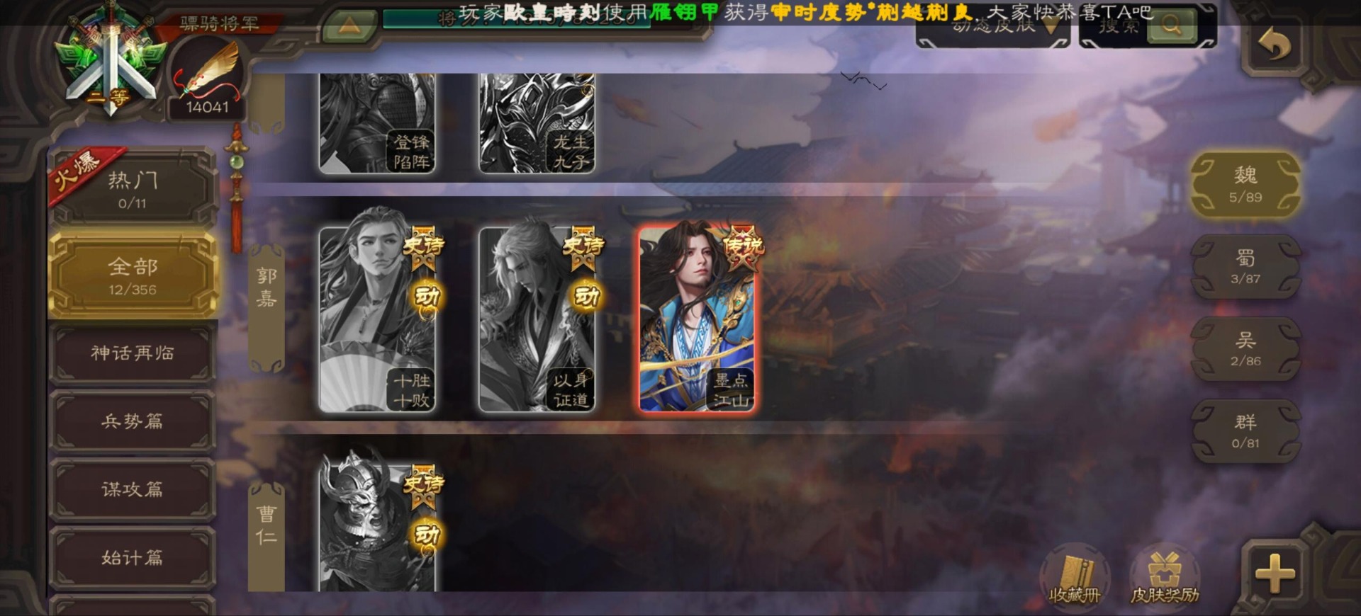 [16334299]vip8 骠骑将军 273武将 12动态皮肤 23史诗武将 【神将】神赵云神张辽神孙策 【魏国武将】杨修界钟会界曹真程昱曹纯戏志才谋曹丕甄姬司马懿许褚夏侯惇郭嘉曹仁曹操张辽 【蜀国武将】谋马超诸葛瞻沙摩柯花鬘 【吴国武将】孙皓界徐盛 【群国武将】左慈张让星黄忠兀突骨沮授界左慈界李儒