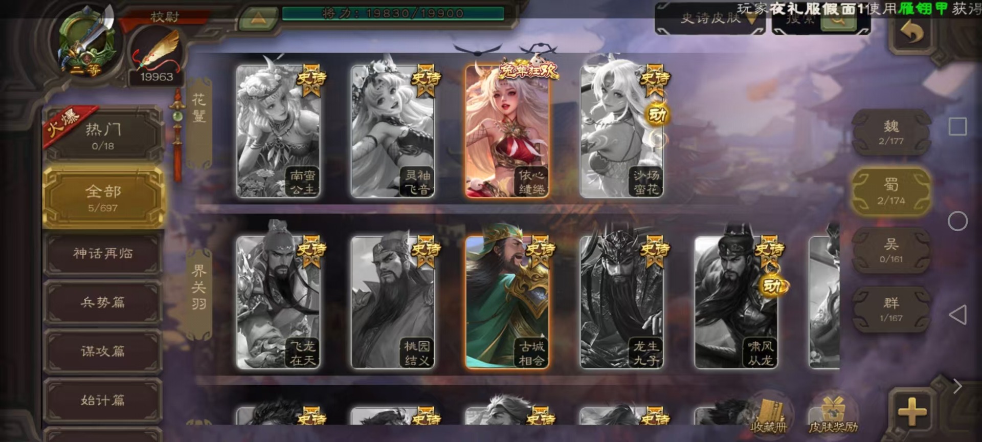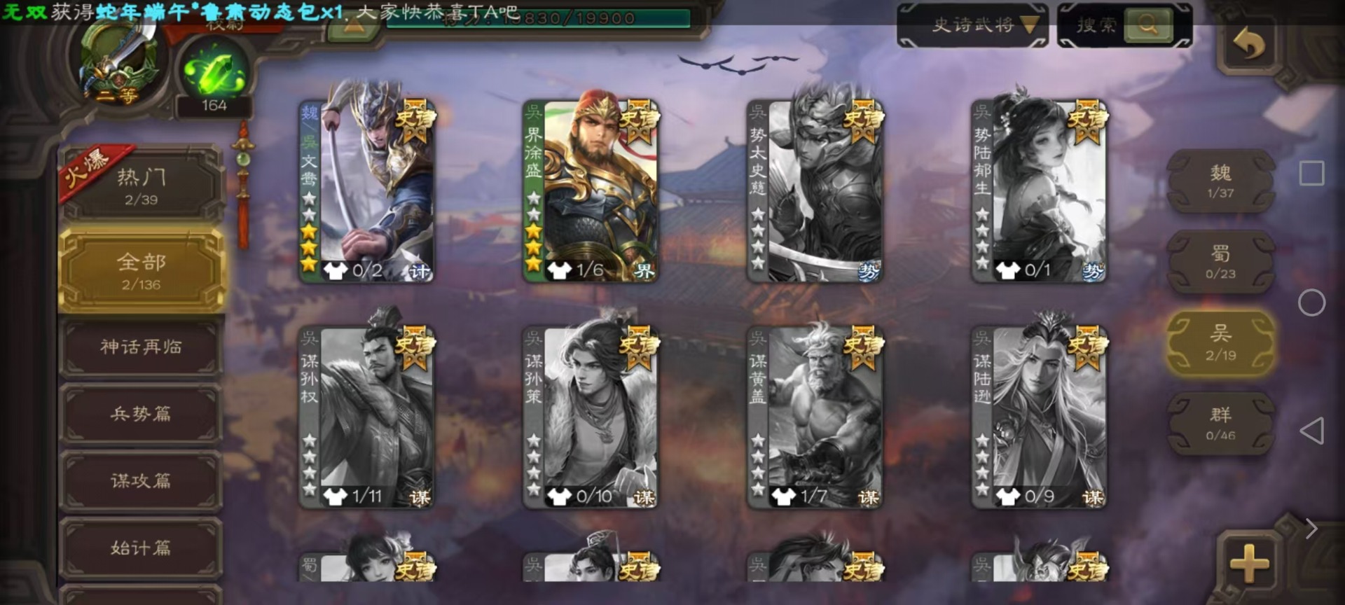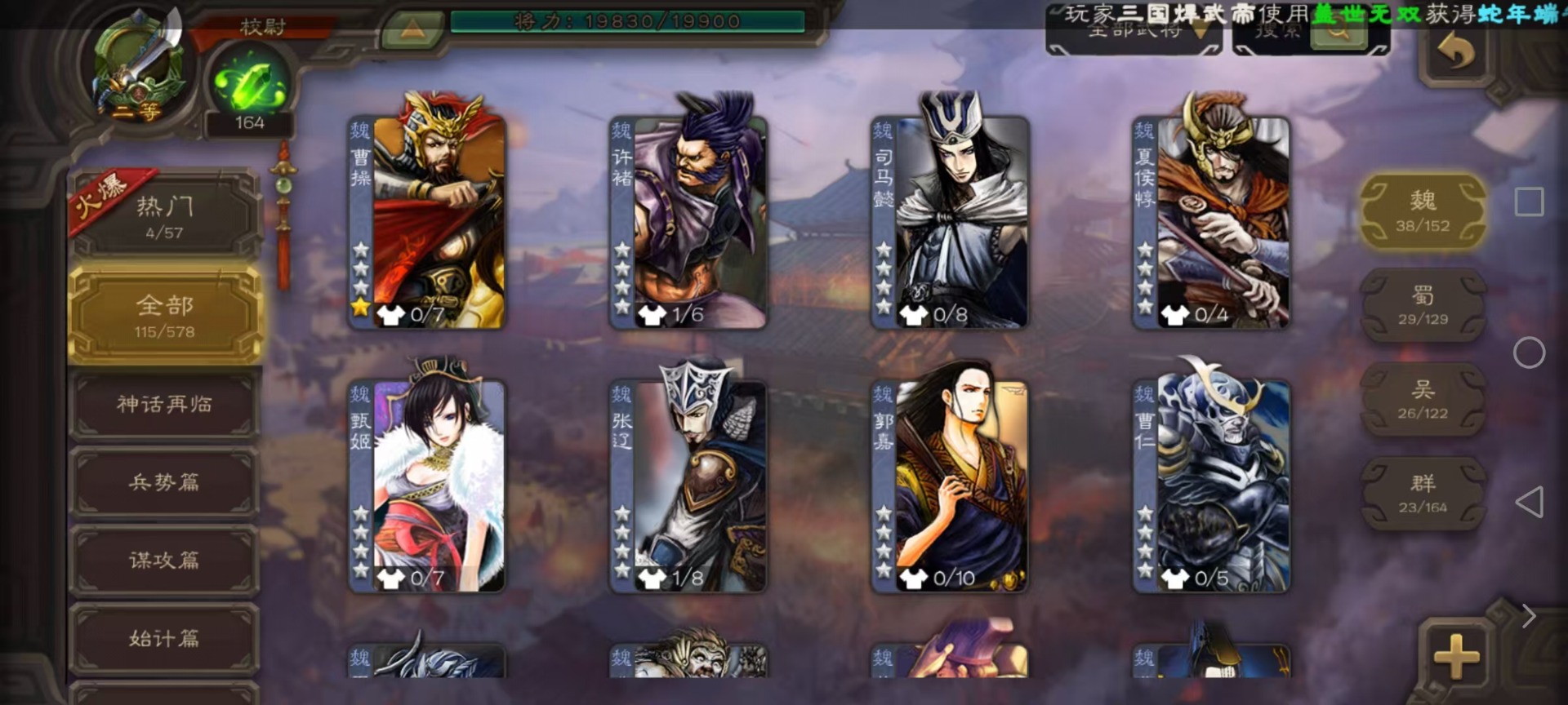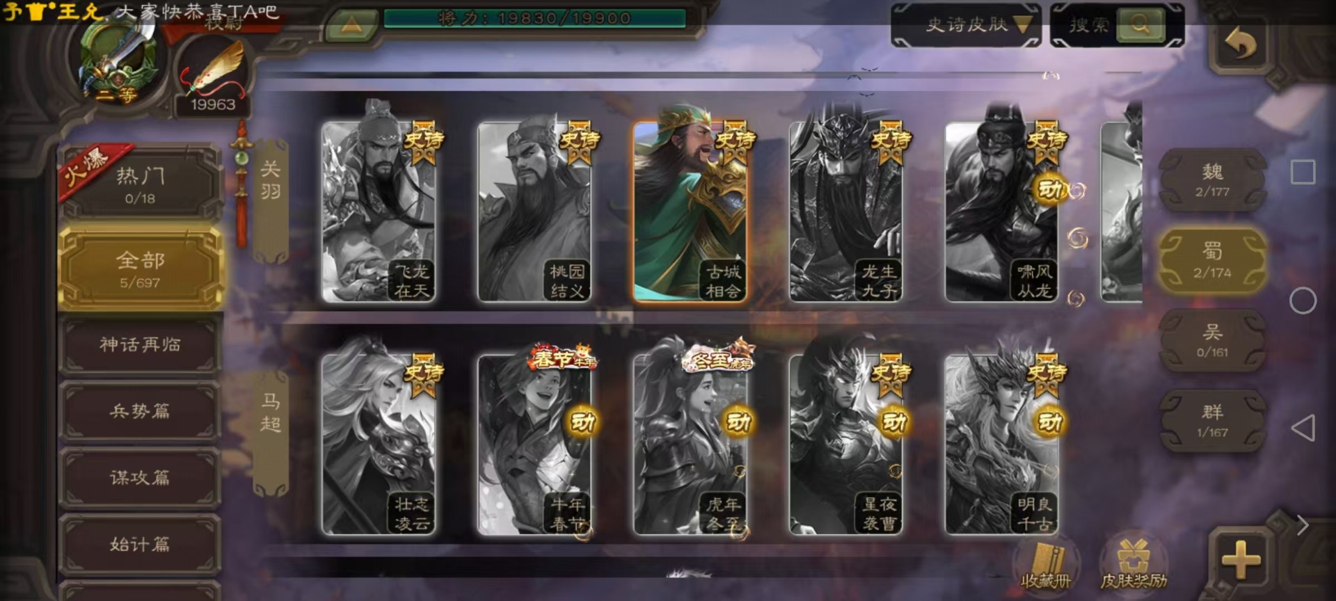 [16342731]vip2 校尉 115武将 2动态皮肤 2史诗武将 【魏国武将】:甄姬司马懿许褚夏侯惇郭嘉曹仁曹操张辽 【吴国武将】:文鸯界徐盛