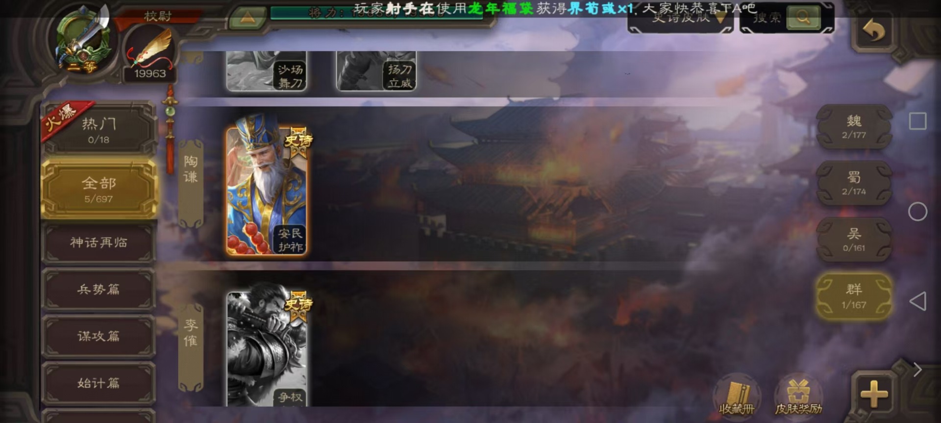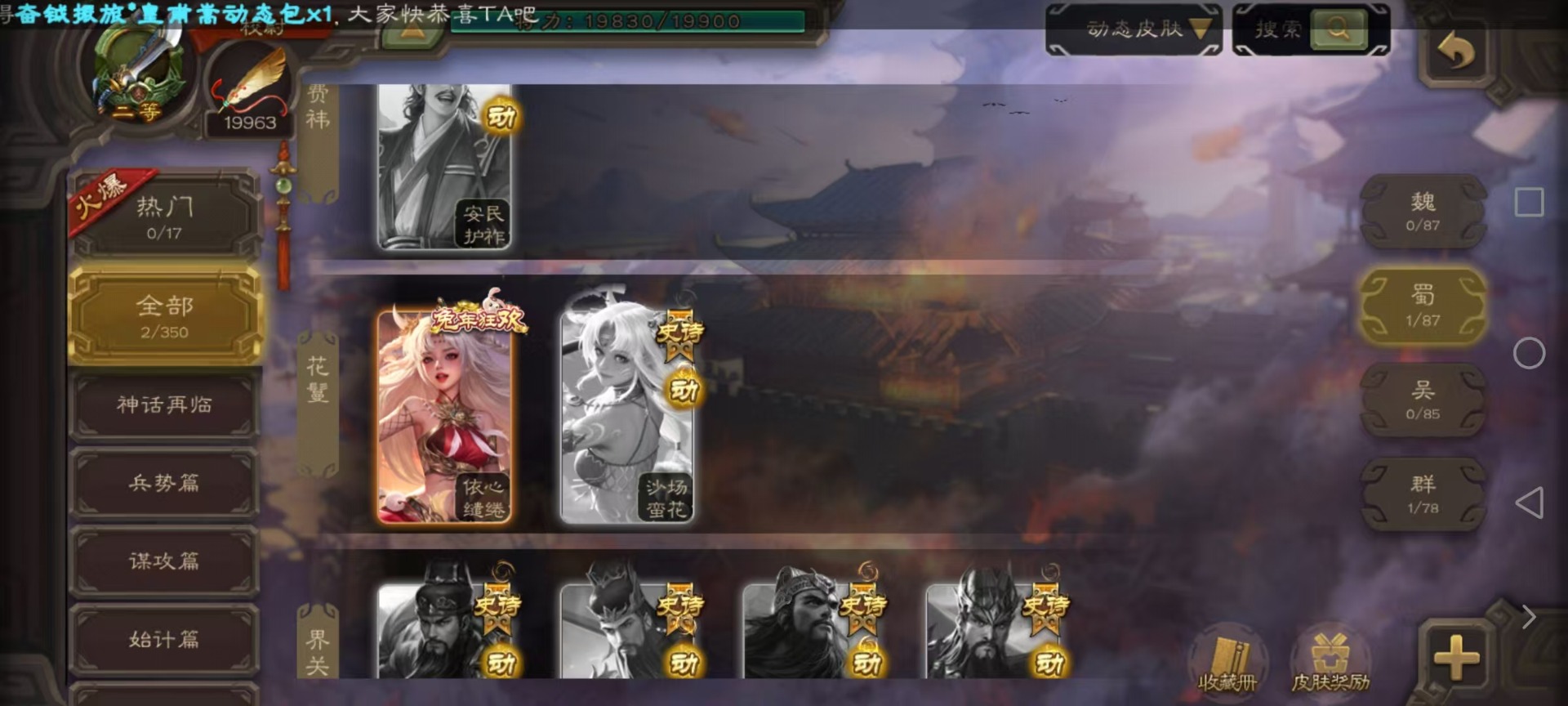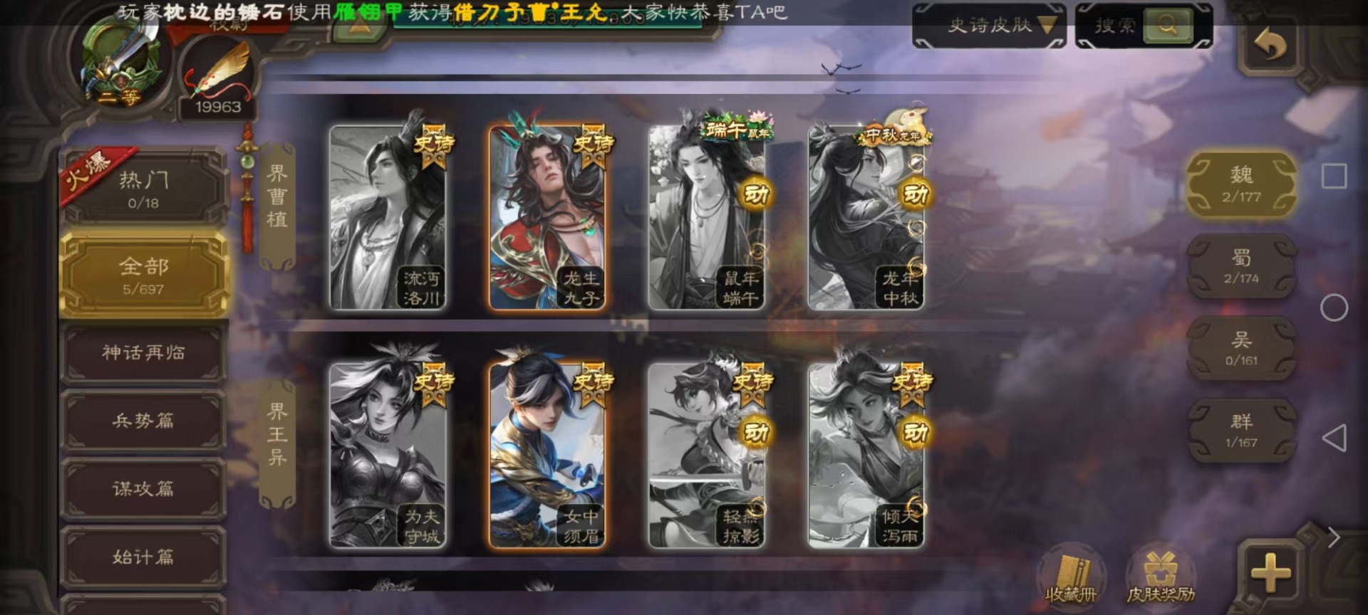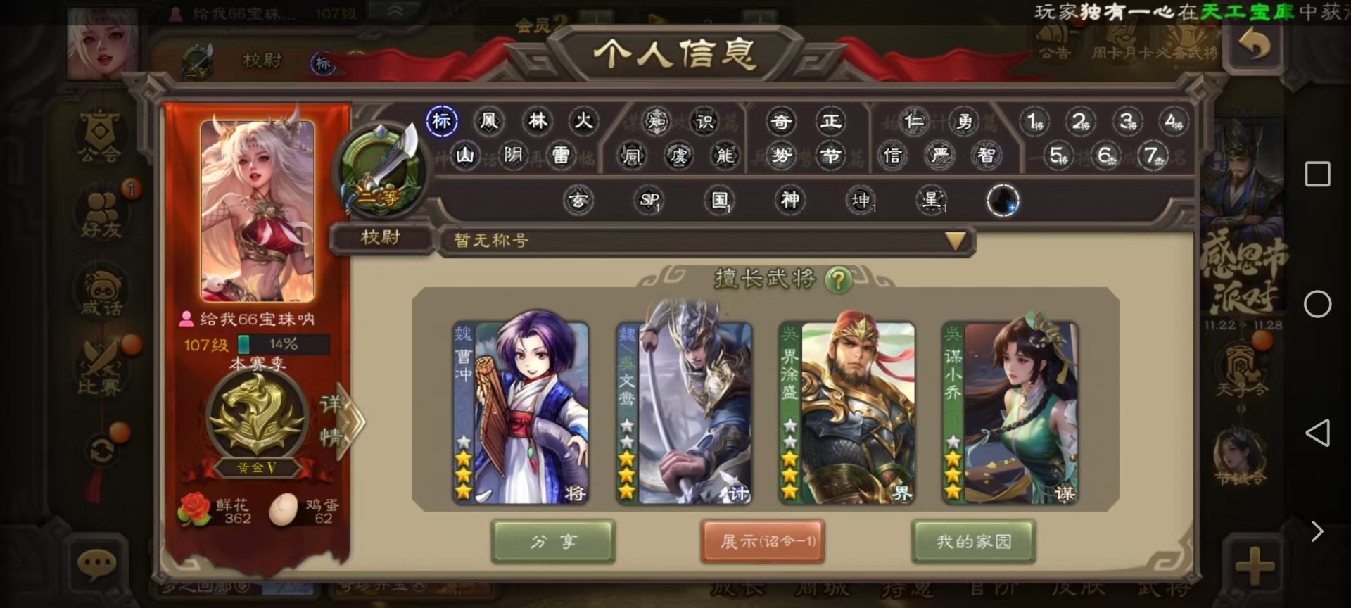 [16342731]vip2 校尉 115武将 2动态皮肤 2史诗武将 【魏国武将】:甄姬司马懿许褚夏侯惇郭嘉曹仁曹操张辽 【吴国武将】:文鸯界徐盛