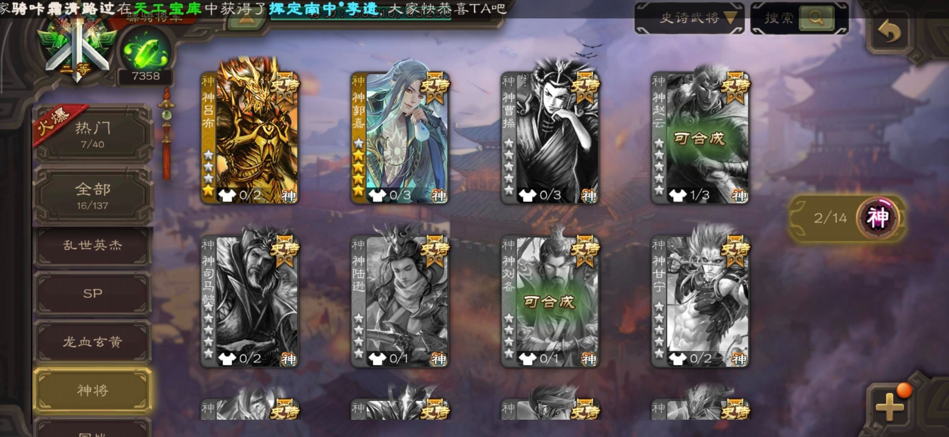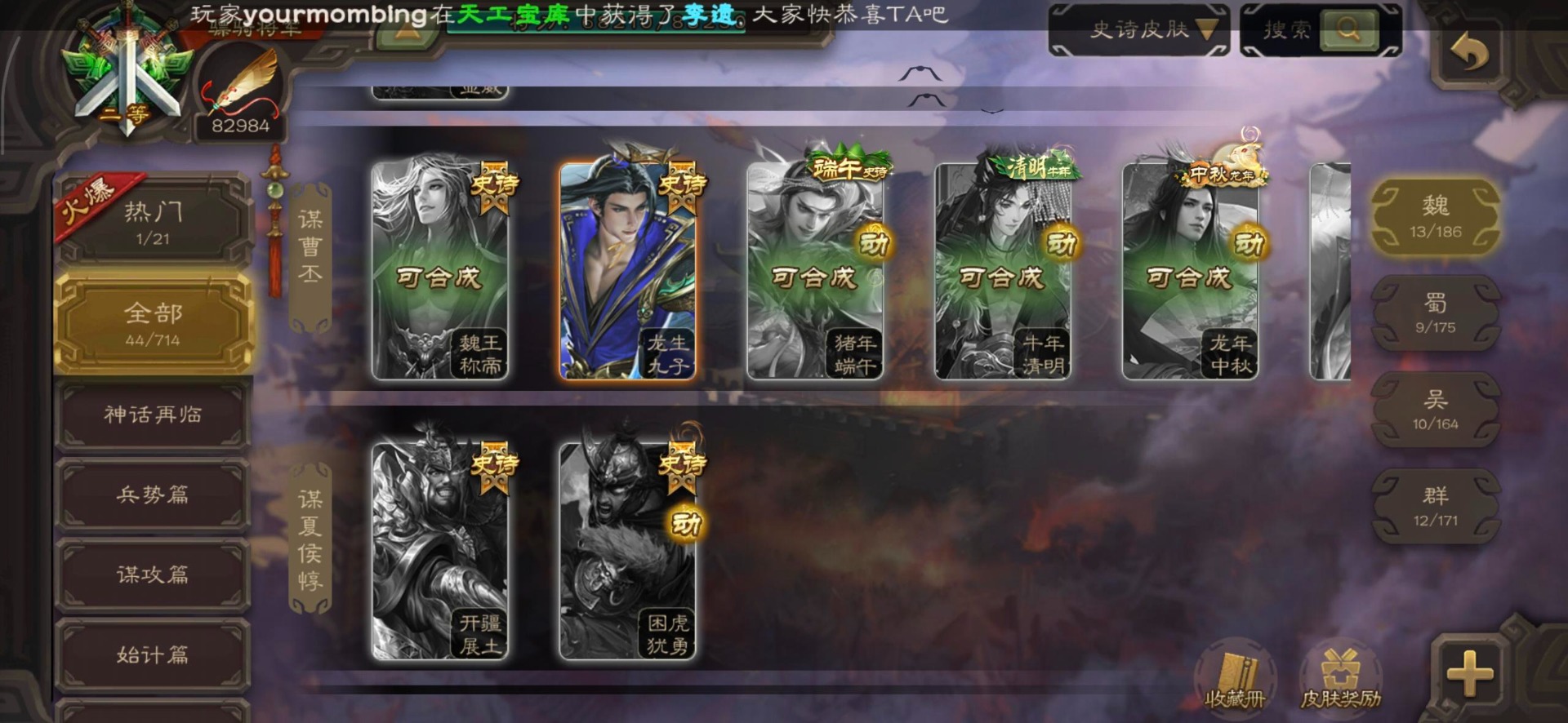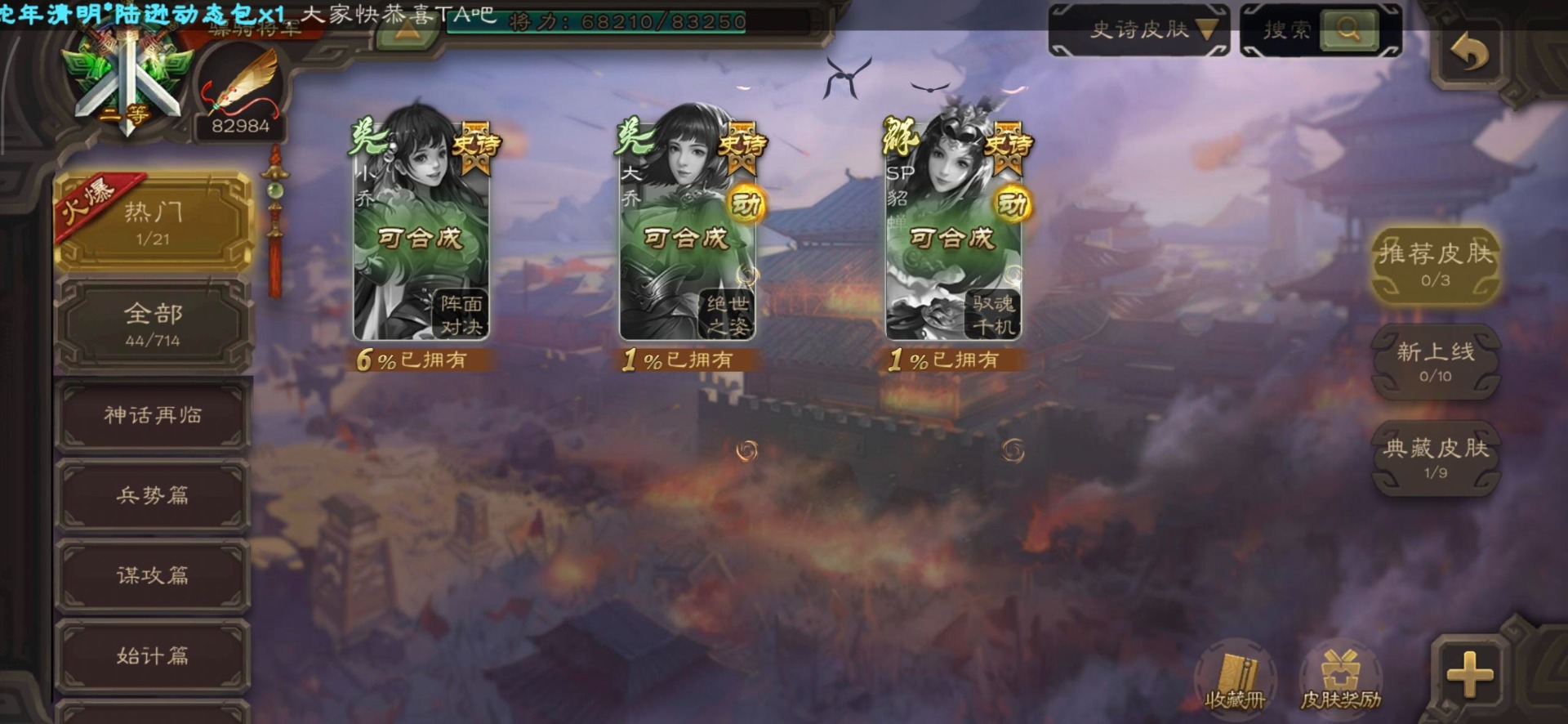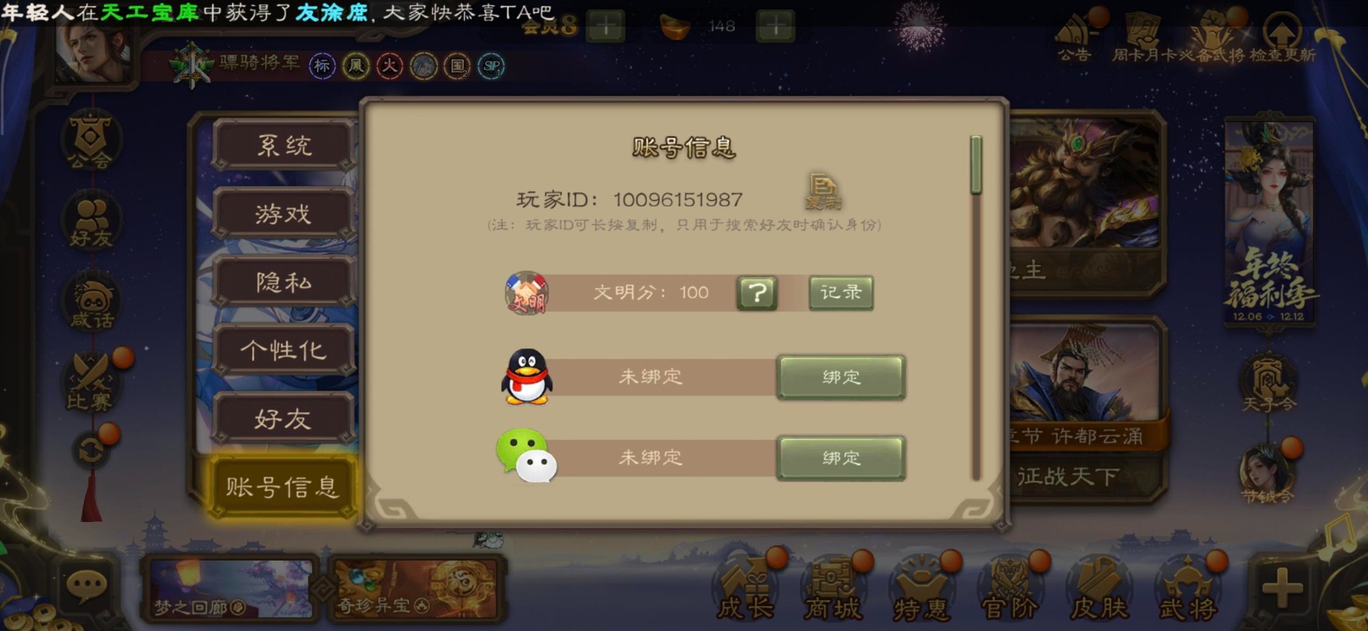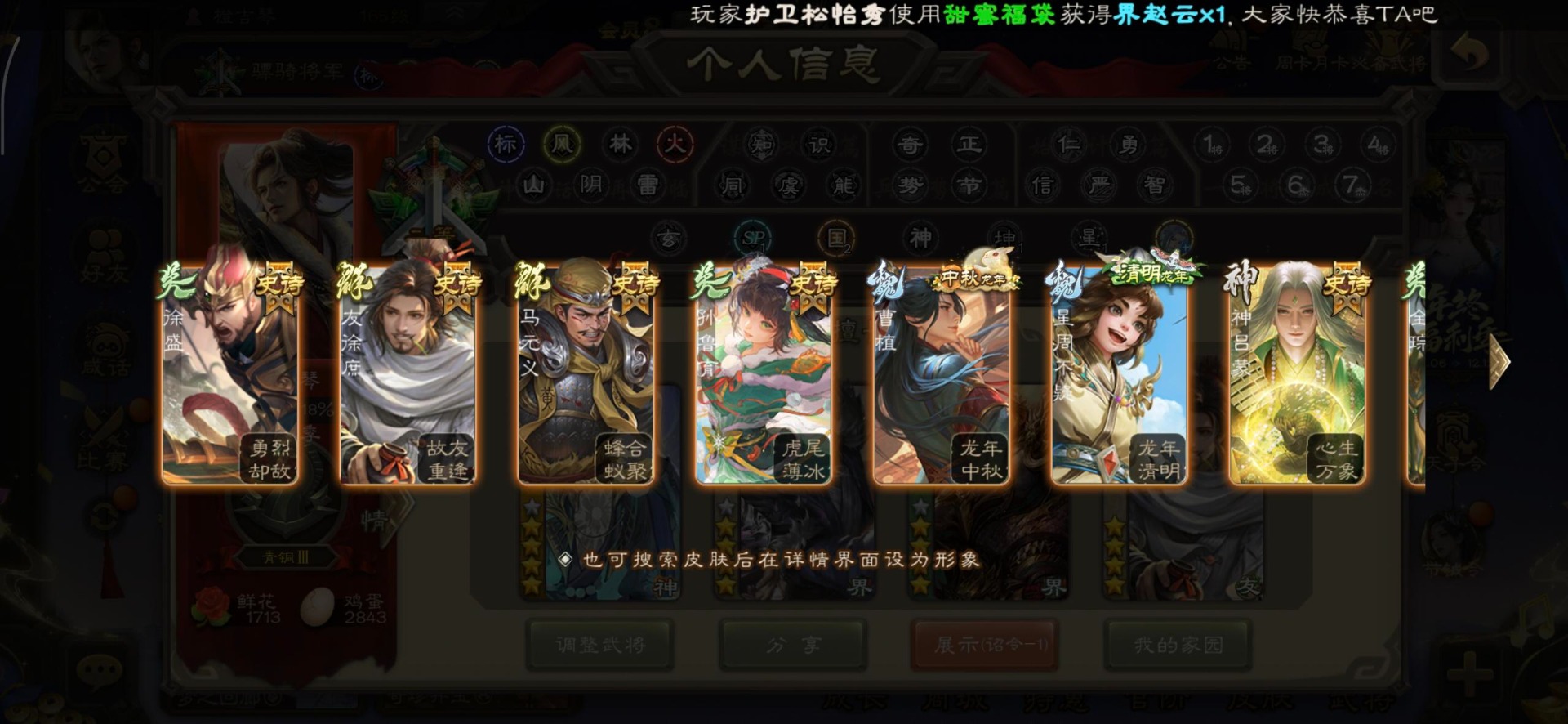 [16342824]vip0 骠骑将军 280武将 19动态皮肤 16史诗武将 【神将】:神吕布神郭嘉 【魏国武将】:清河公主郝昭程昱曹纯戏志才典韦甄姬司马懿张郃许褚夏侯惇荀彧曹仁曹操