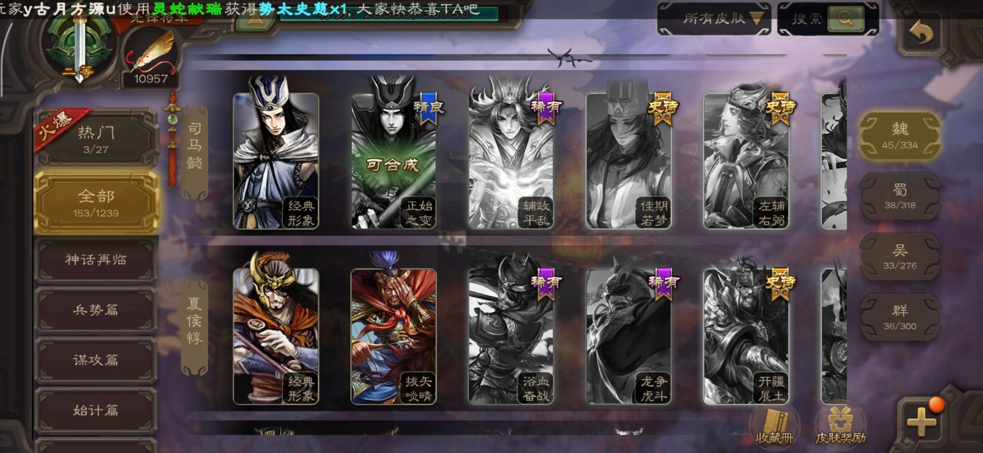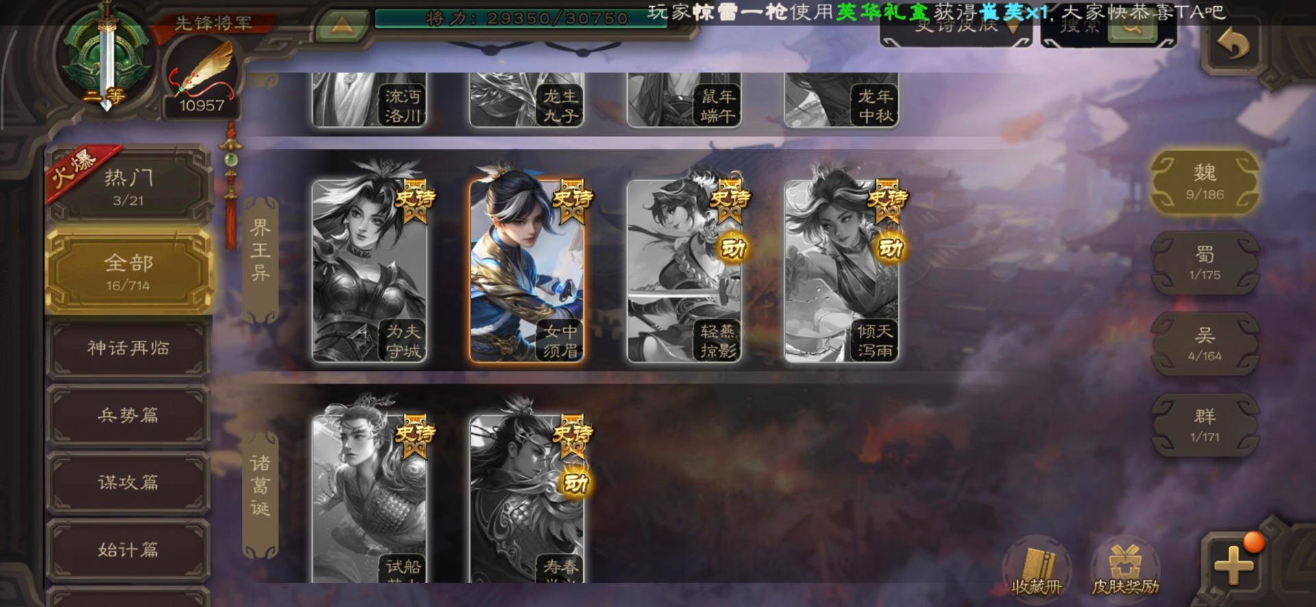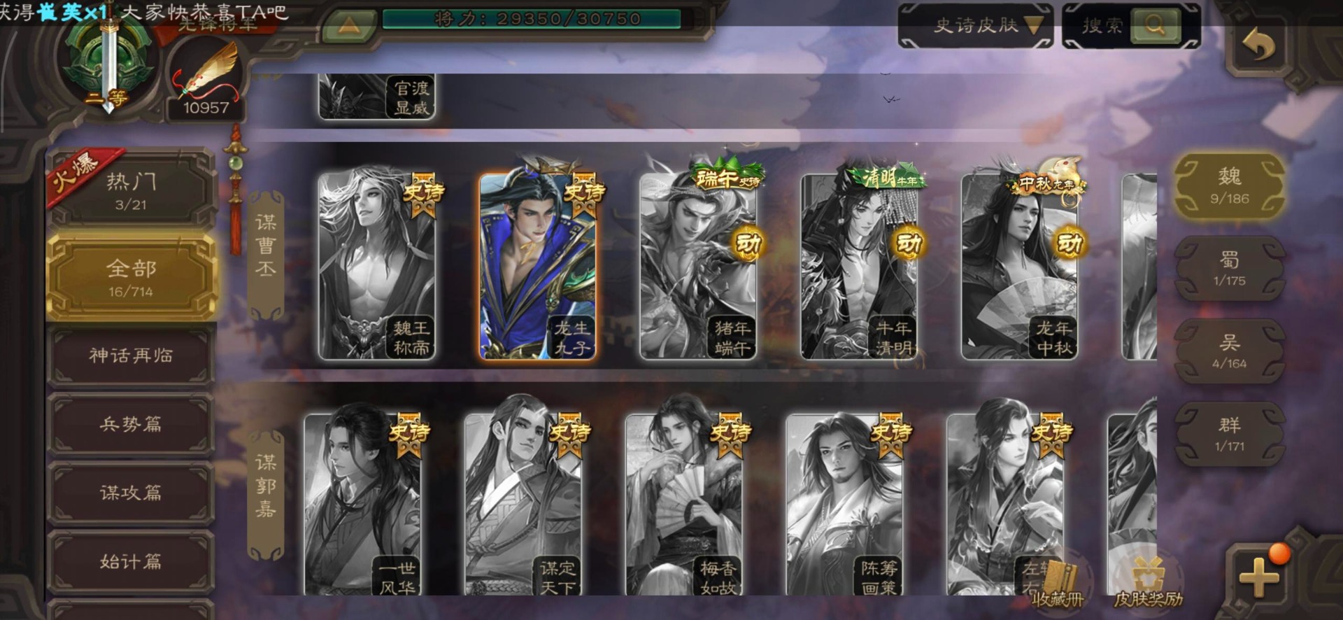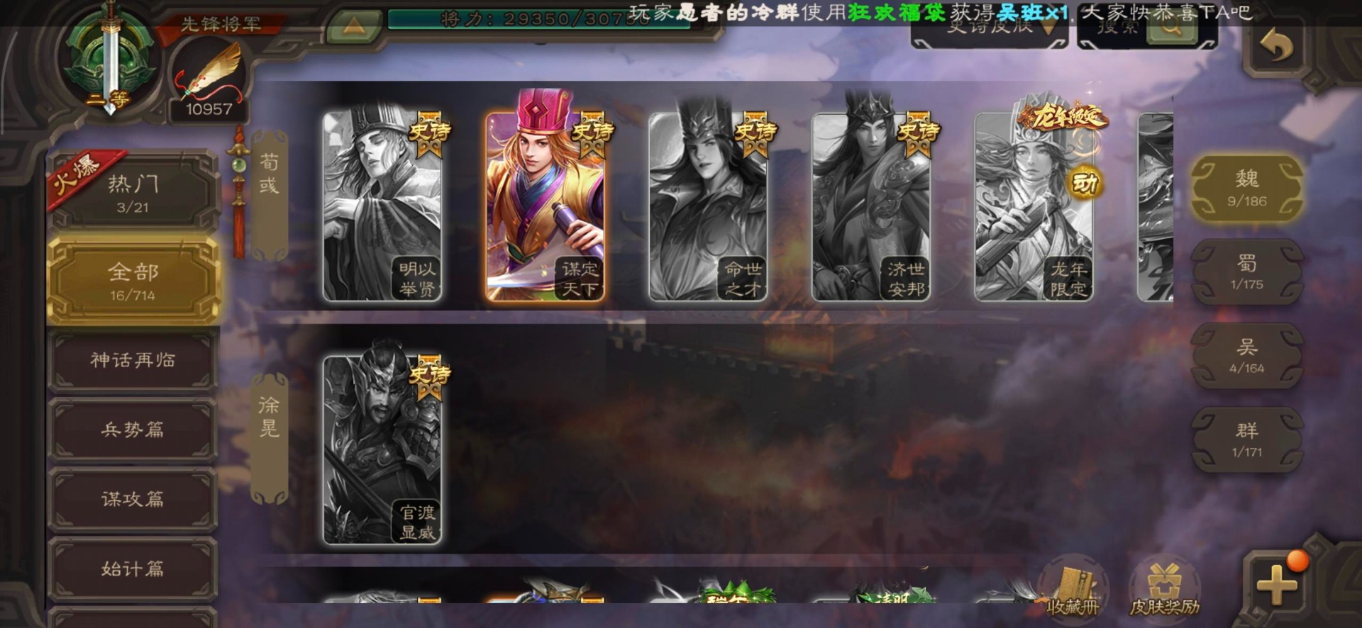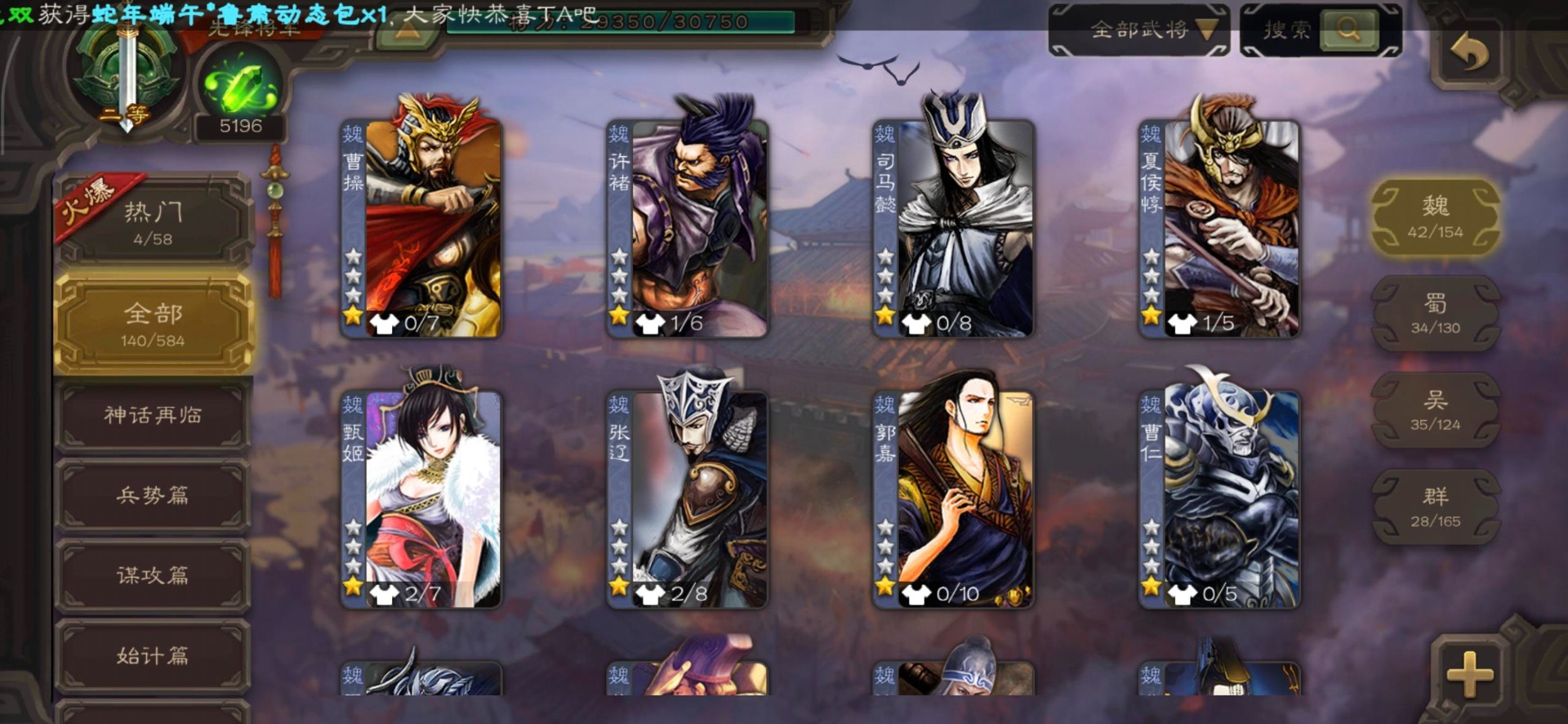 [16350490]vip3 先锋将军 140武将 3动态皮肤 2史诗武将 【神将】神司马懿 【魏国武将】界司马懿于禁界夏侯惇界张辽界曹操卞夫人邓艾张郃