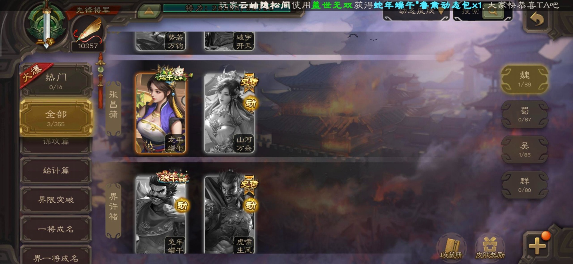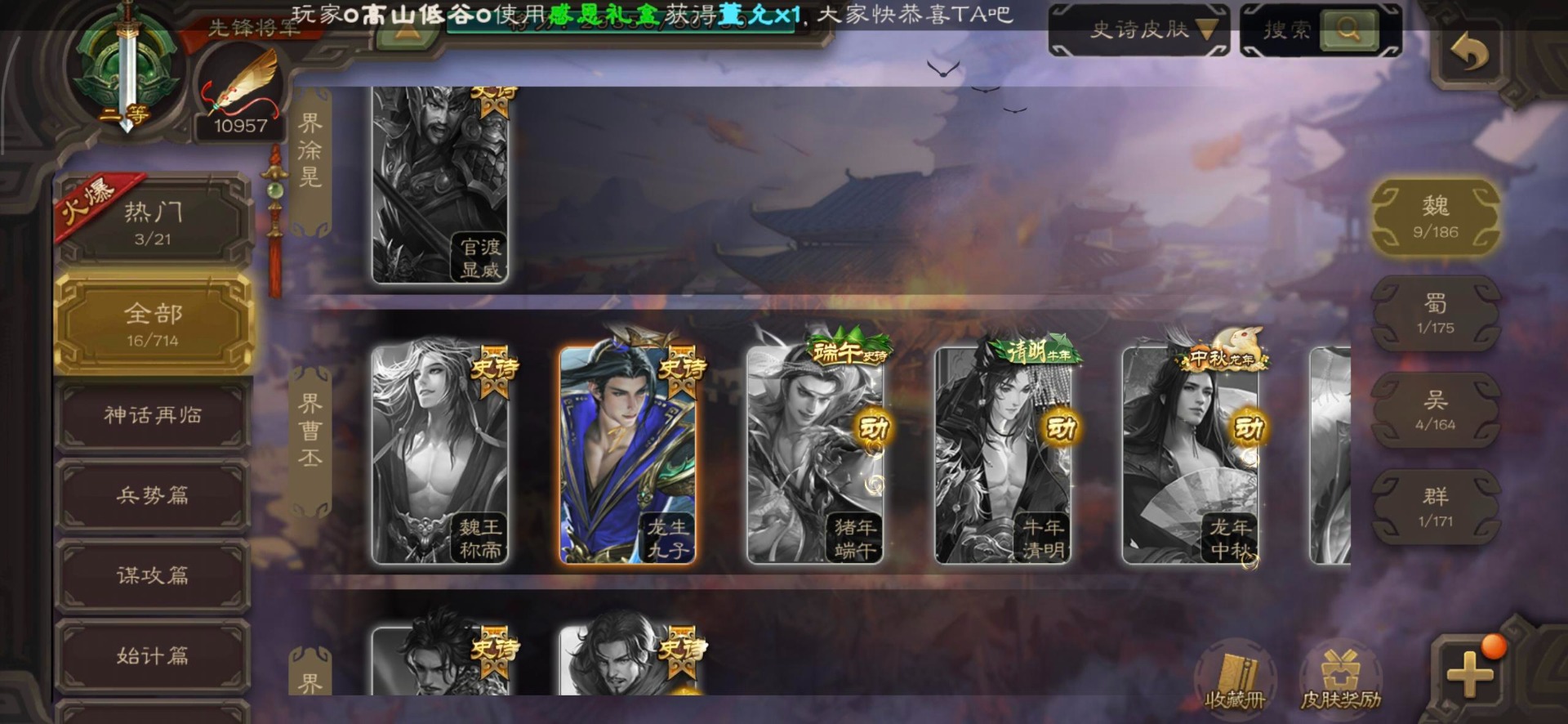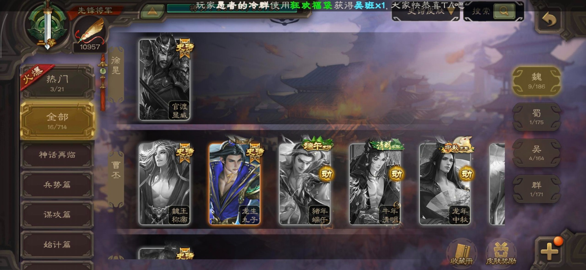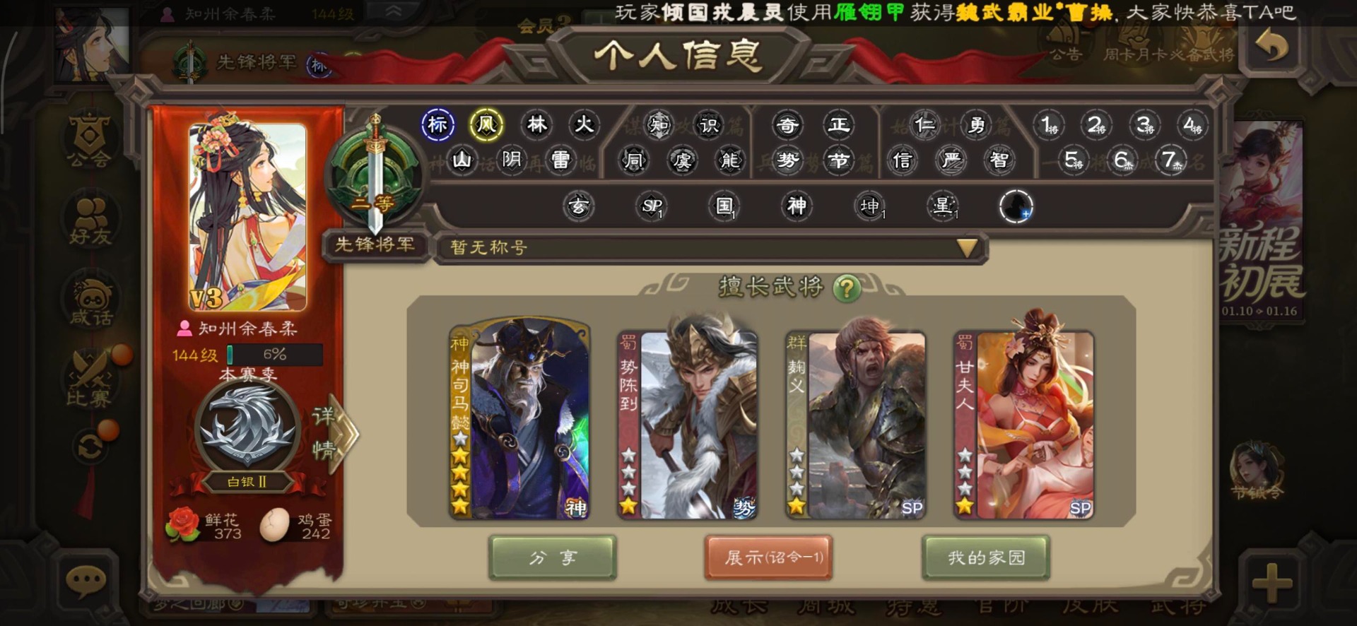 [16350490]vip3 先锋将军 140武将 3动态皮肤 2史诗武将 【神将】神司马懿 【魏国武将】界司马懿于禁界夏侯惇界张辽界曹操卞夫人邓艾张郃