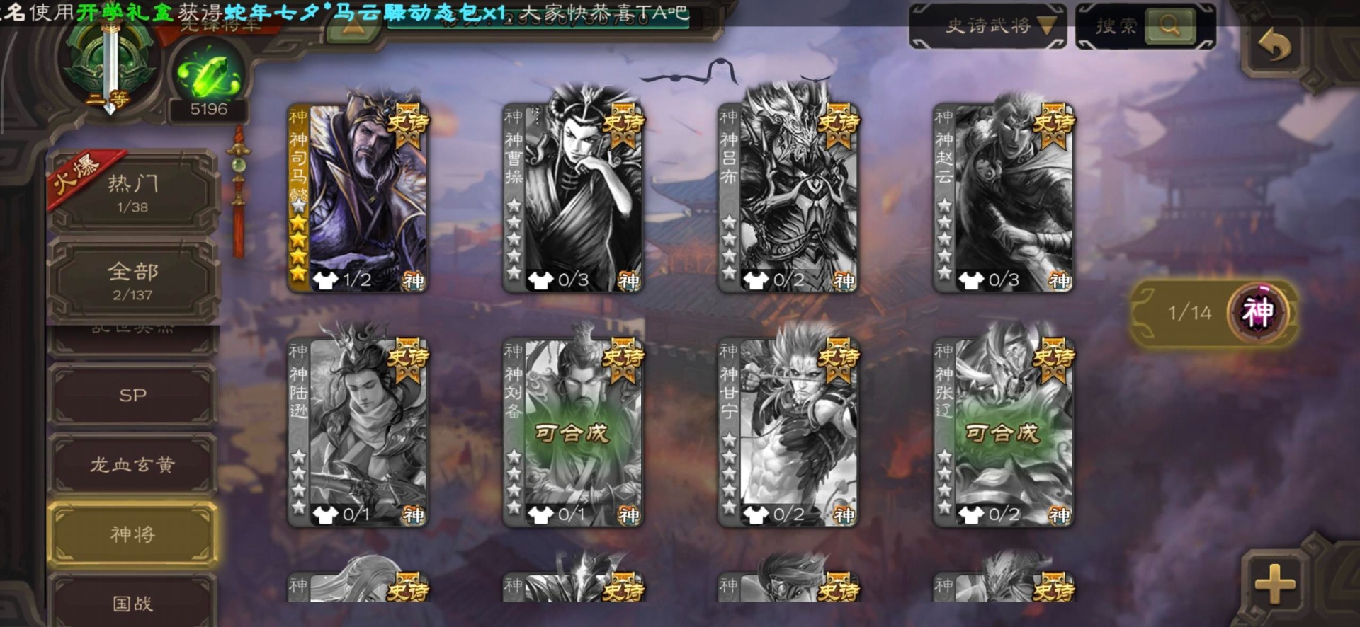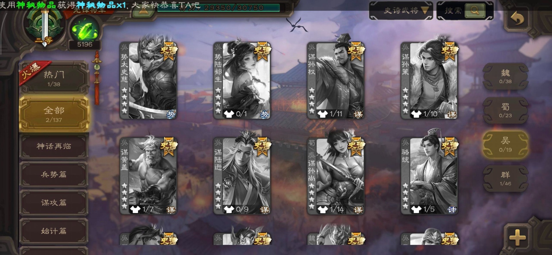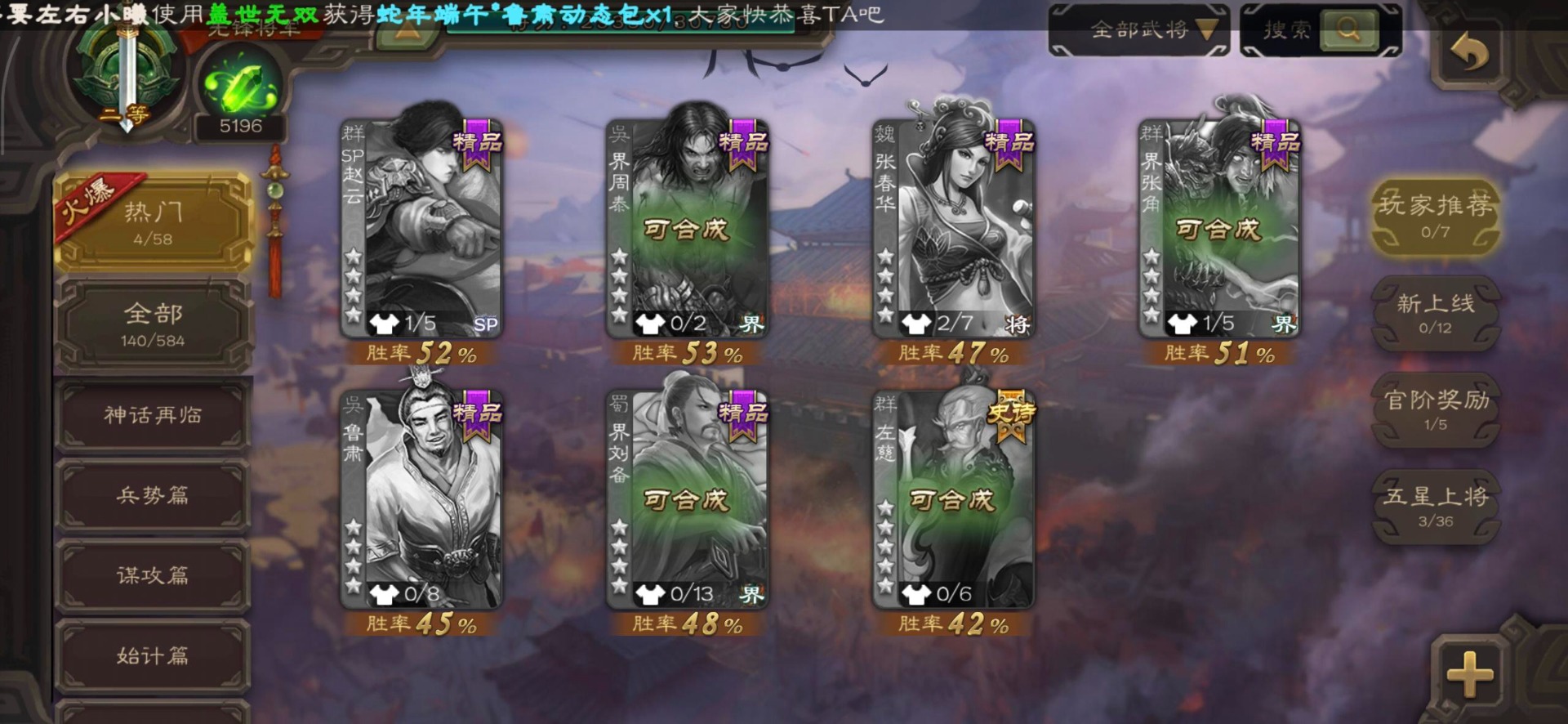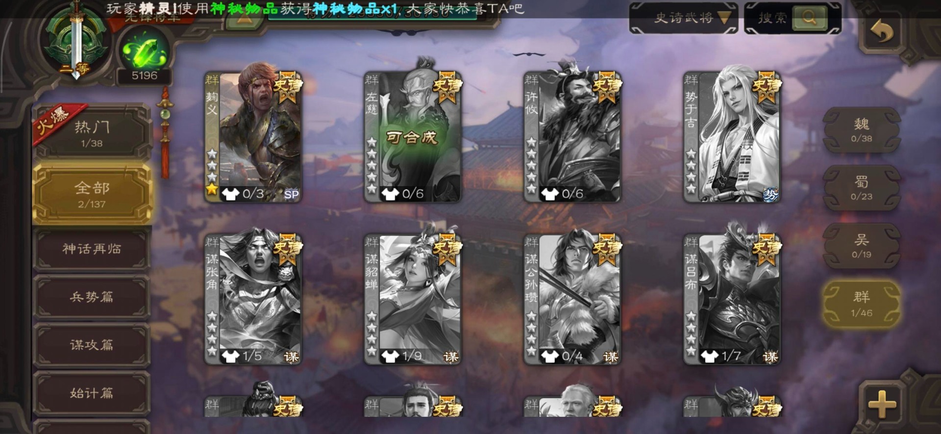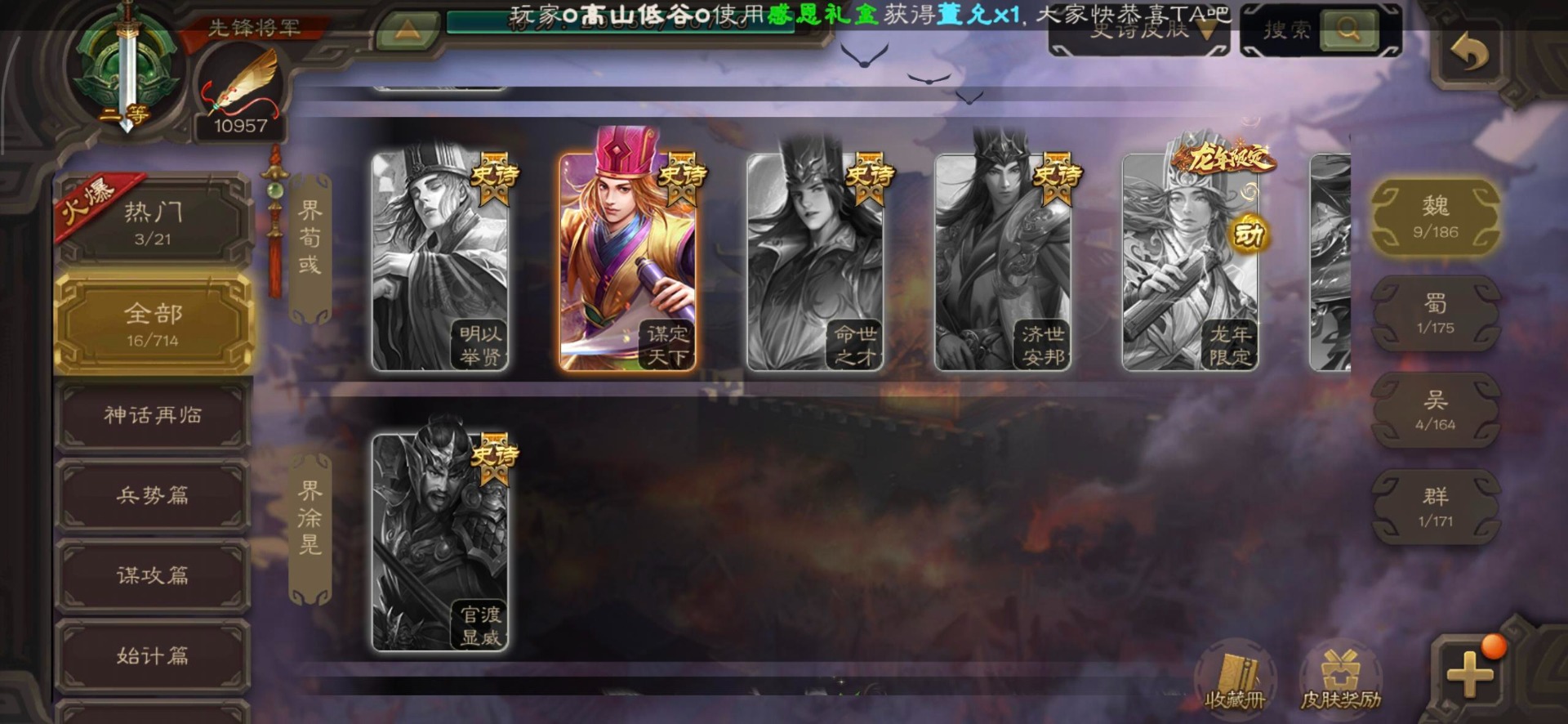 [16350490]vip3 先锋将军 140武将 3动态皮肤 2史诗武将 【神将】神司马懿 【魏国武将】界司马懿于禁界夏侯惇界张辽界曹操卞夫人邓艾张郃