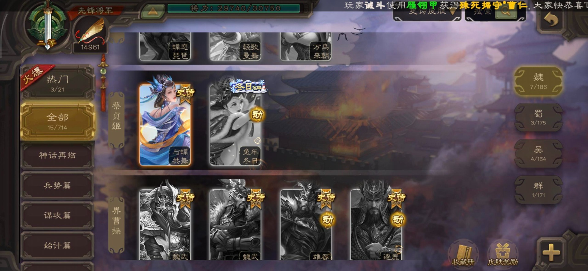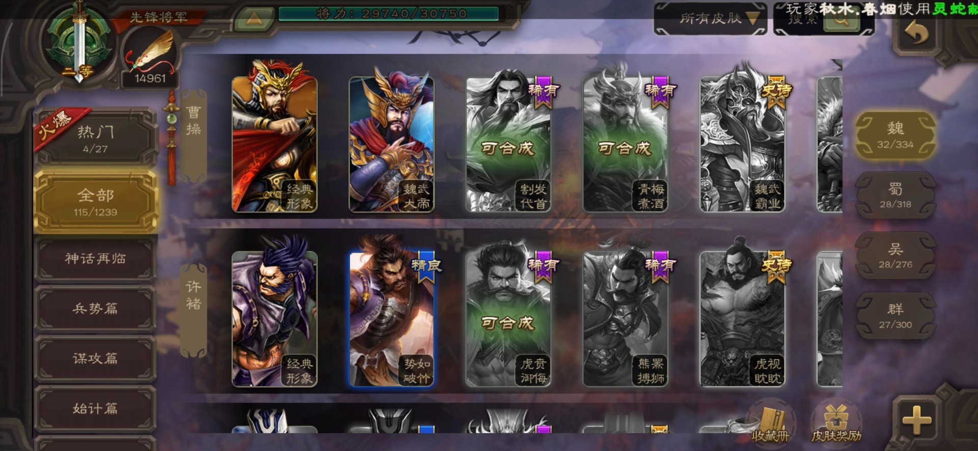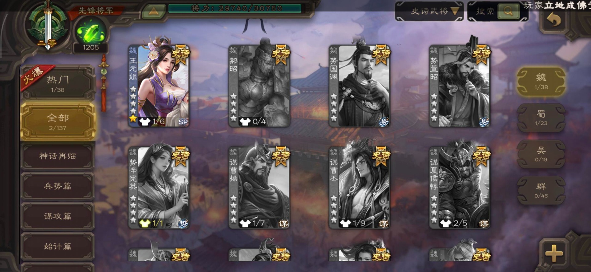 [16351586]vip8 先锋将军 154武将 5动态皮肤 2史诗武将 34宝珠 【魏国武将】王元姬甄姬司马懿许褚夏侯惇郭嘉曹仁曹操 【蜀国武将】势魏延