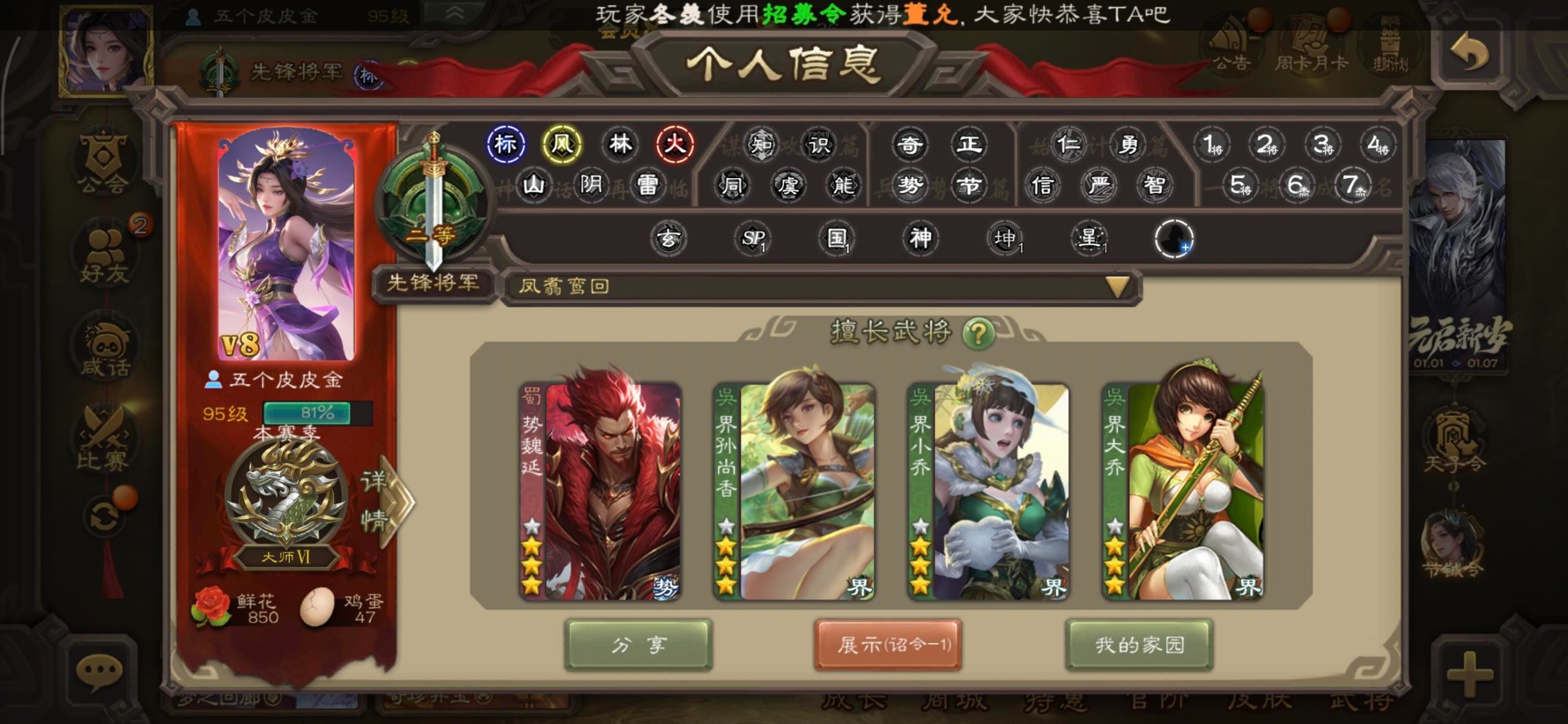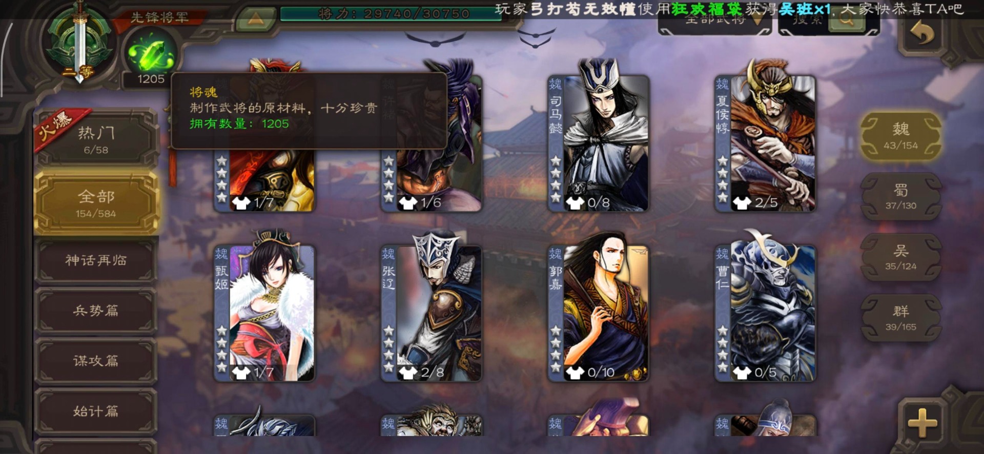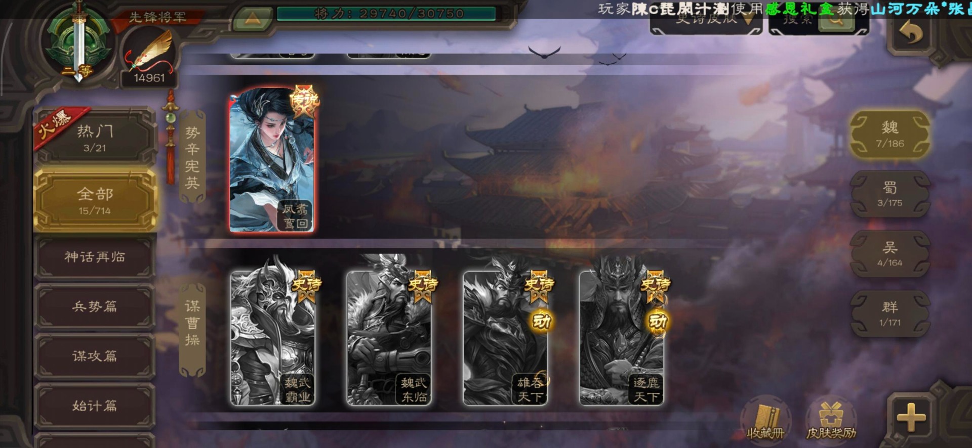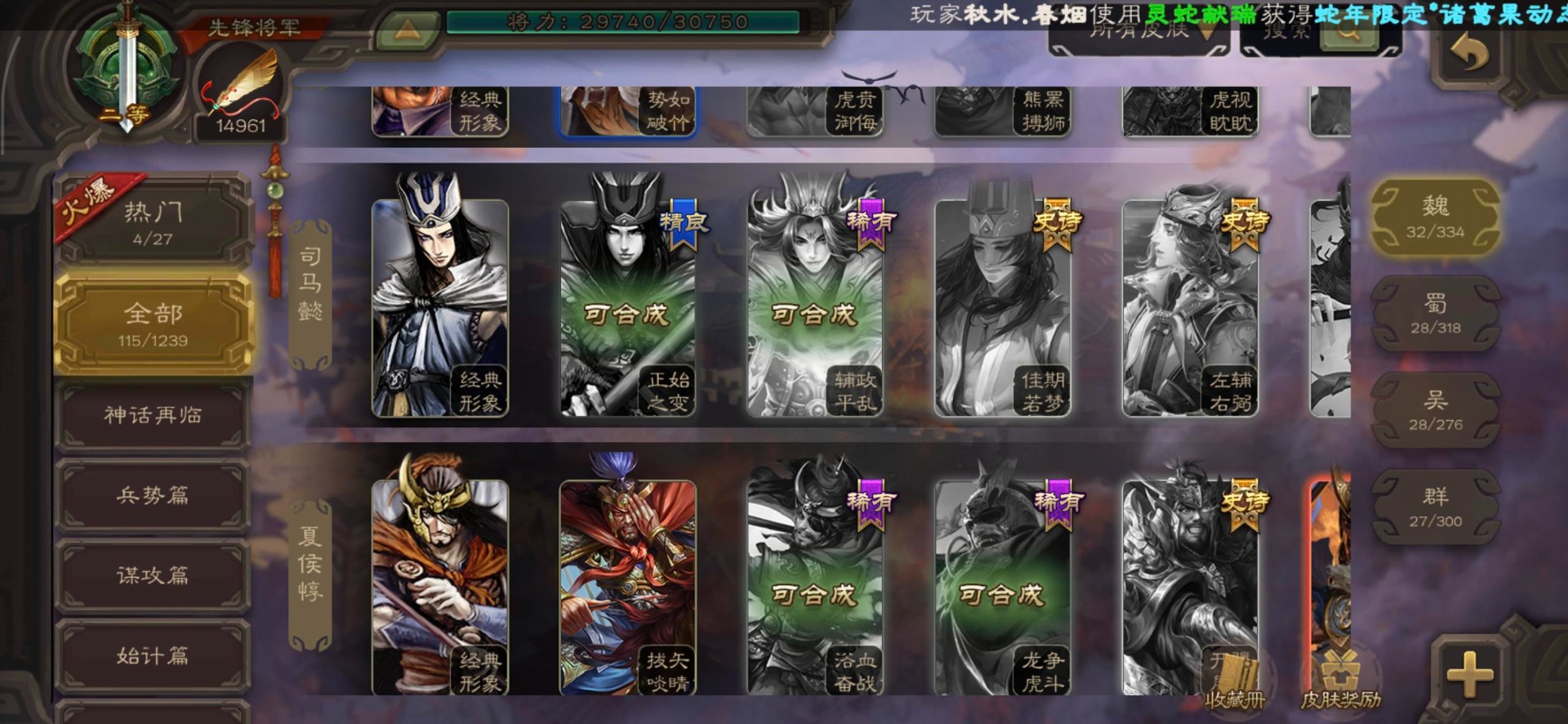 [16351586]vip8 先锋将军 154武将 5动态皮肤 2史诗武将 34宝珠 【魏国武将】王元姬甄姬司马懿许褚夏侯惇郭嘉曹仁曹操 【蜀国武将】势魏延