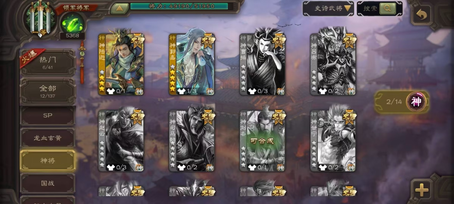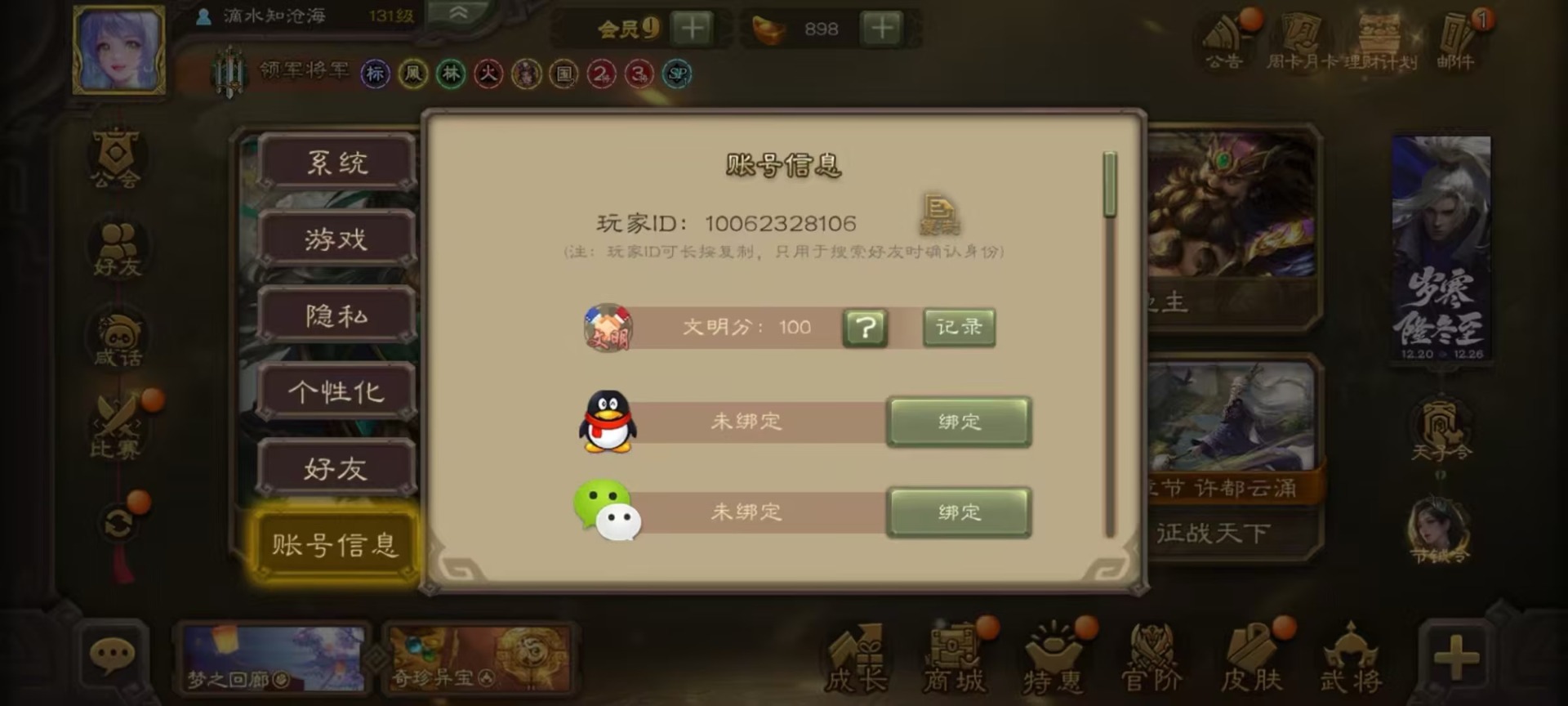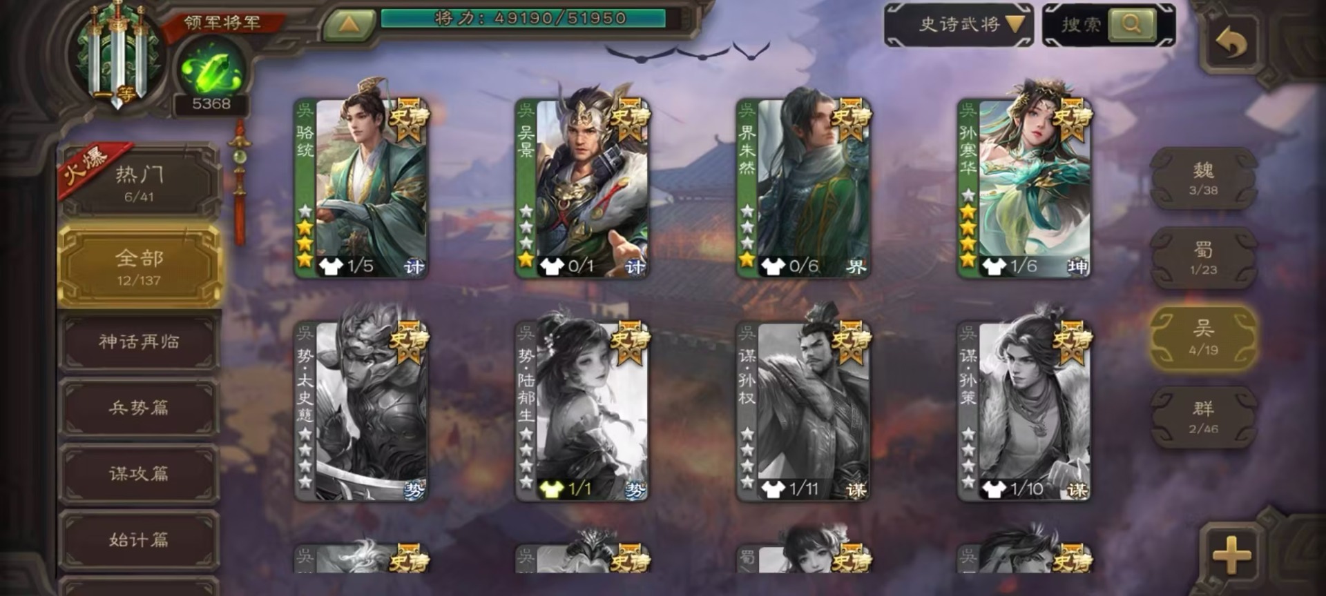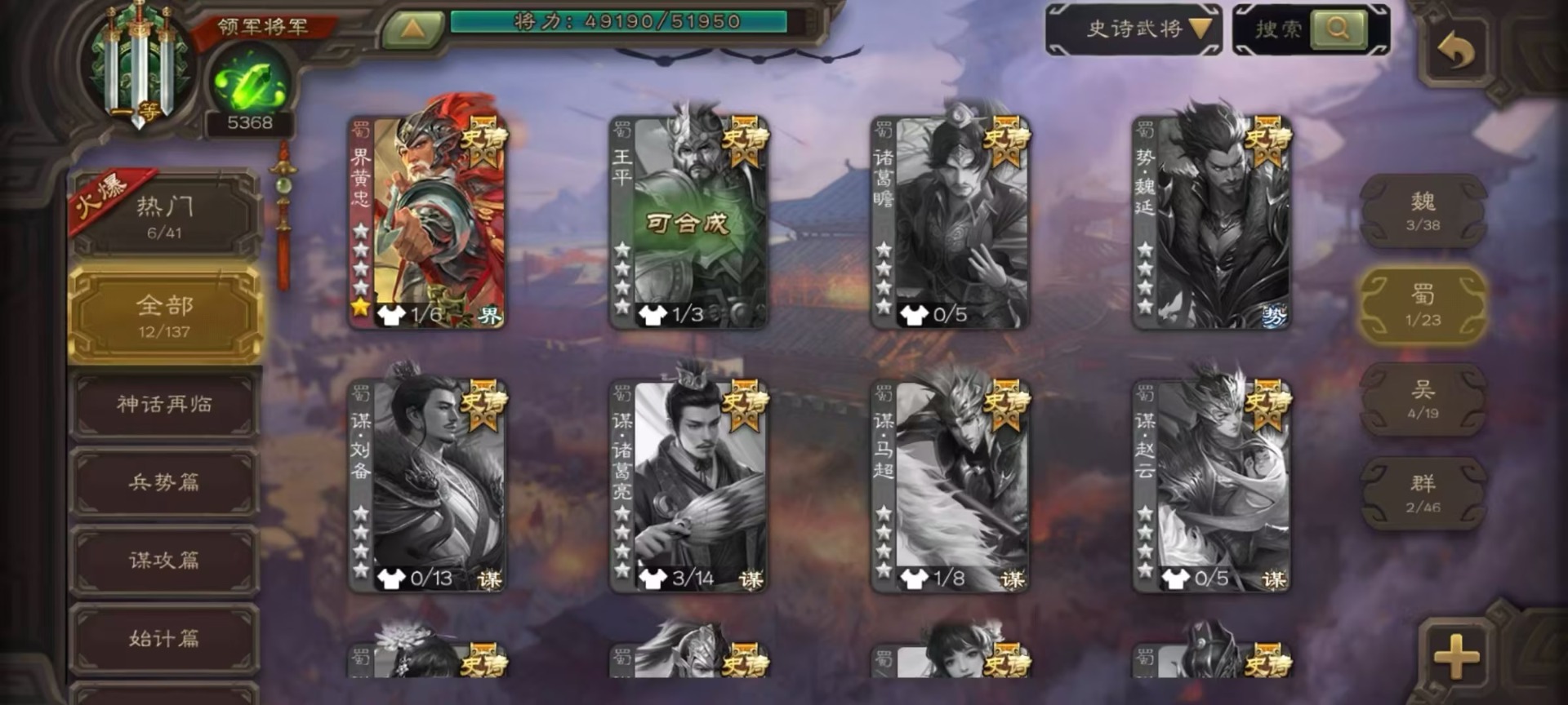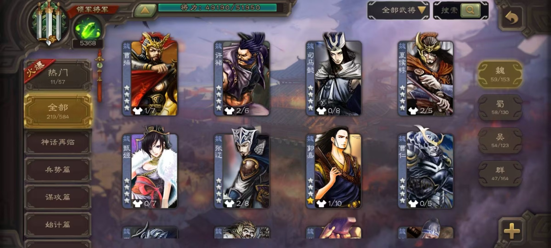[16352084]vip9 领军将军 219武将 7动态皮肤 12史诗武将 1宝珠 【神将】:神陆逊神郭嘉 【魏国武将】:羊徽瑜程昱曹纯甄姬司马懿许褚夏侯惇郭嘉曹仁曹操张辽 【蜀国武将】:界黄忠 【吴国武将】:吴景孙寒华骆统界朱然 【群国武将】:左慈司马徽