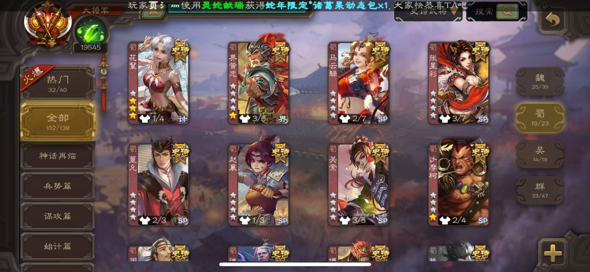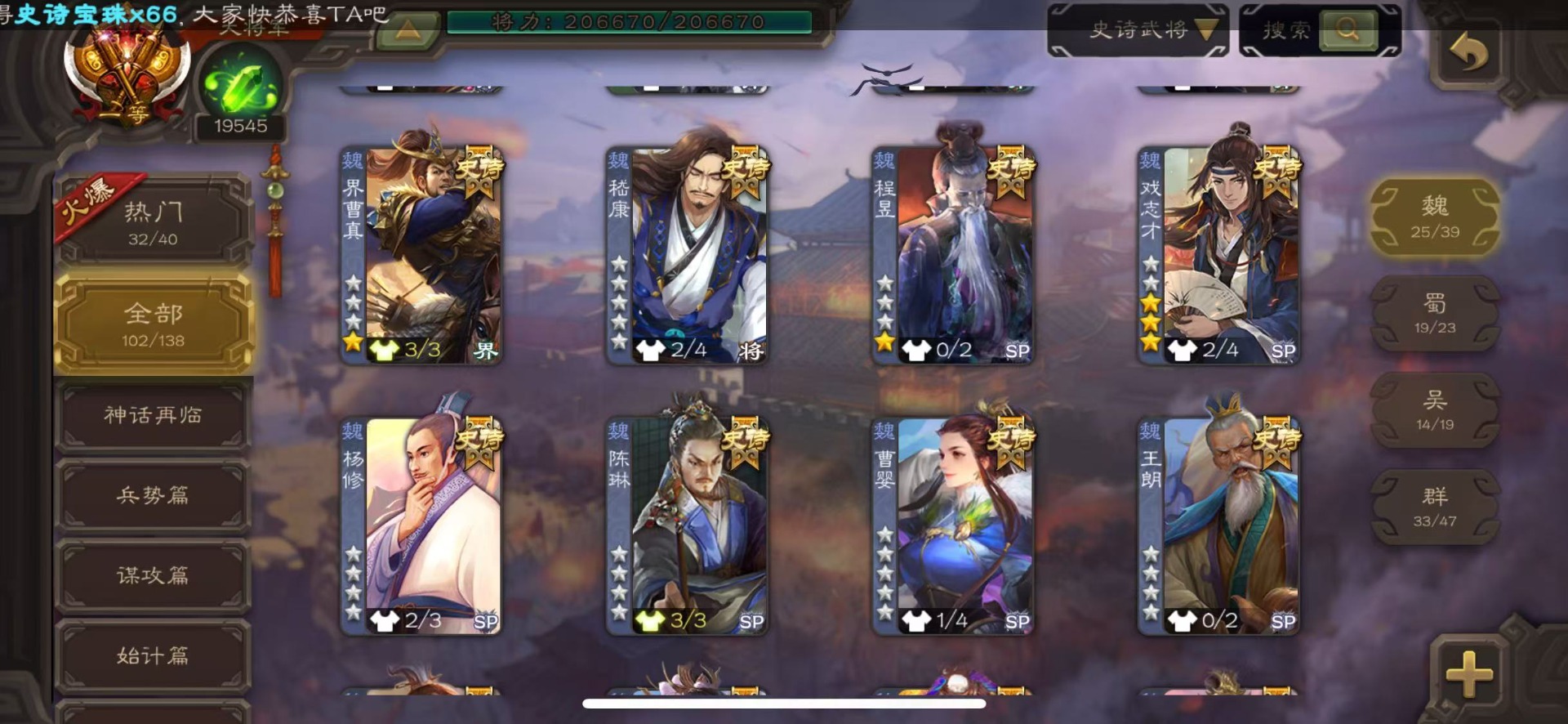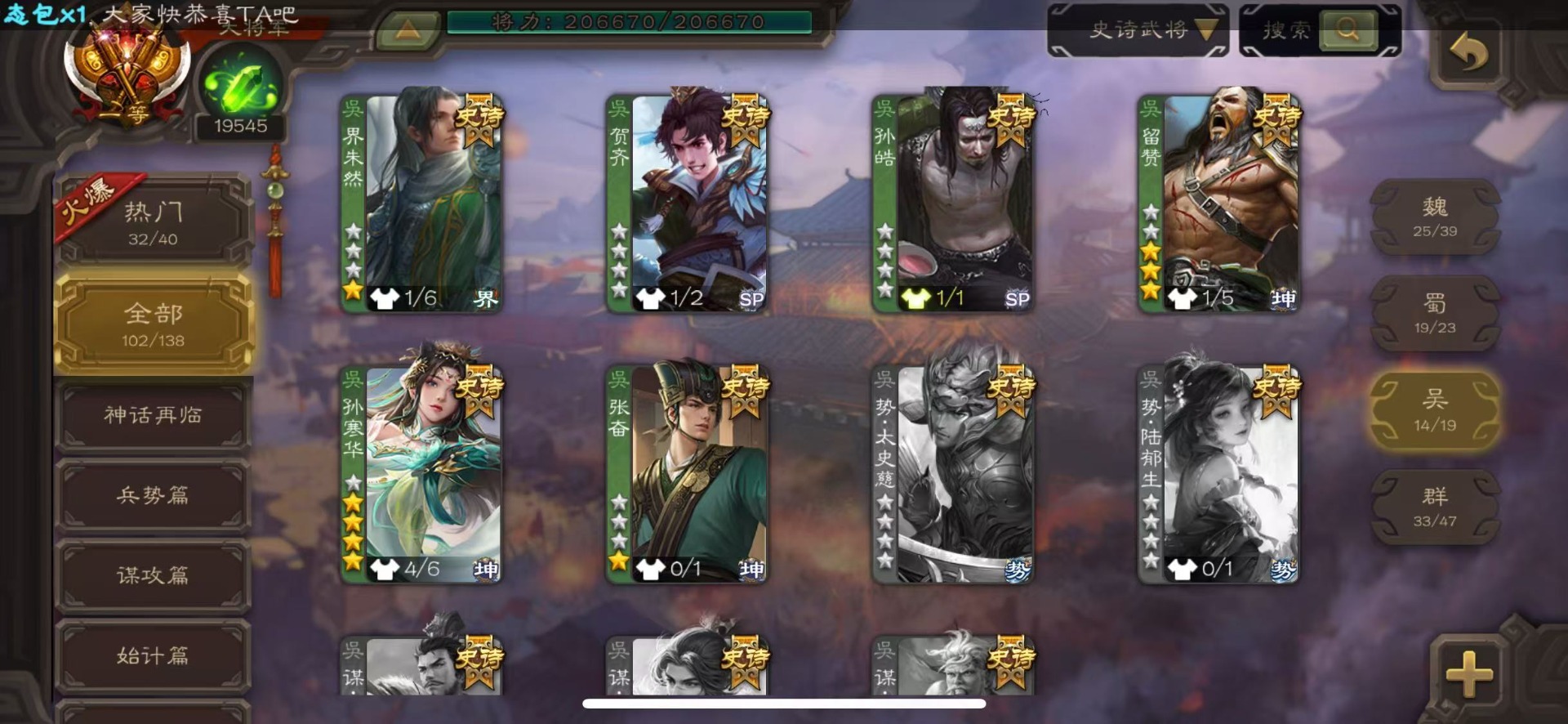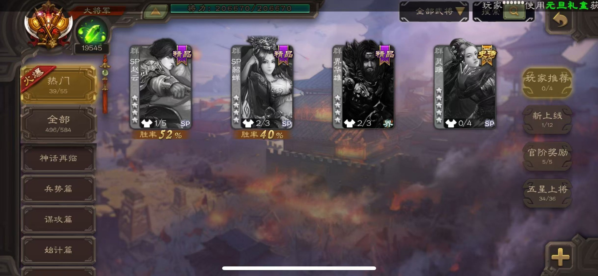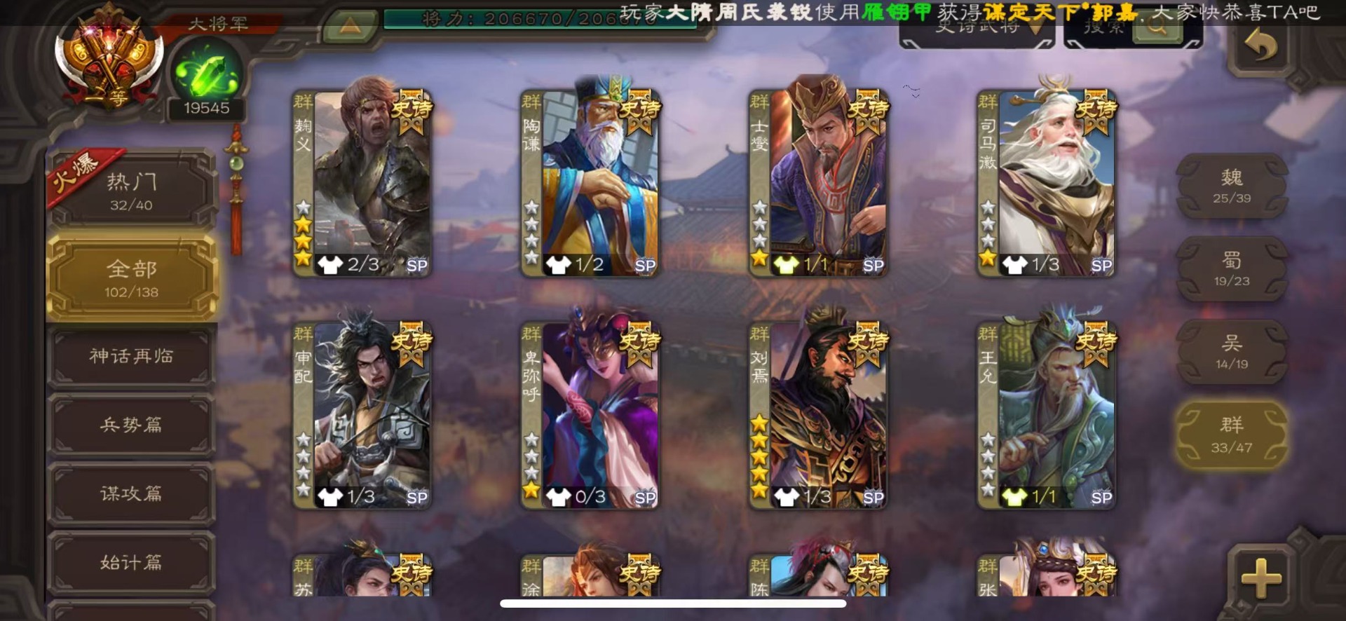 [16367808]vip16 大将军 496武将 87动态皮肤 102史诗武将 32宝珠 【神将】神曹操神吕布神赵云神陆逊神刘备神甘宁神张辽神郭嘉神太史慈神孙策神荀彧神华佗神鲁肃 【魏国武将】sp司马昭曹髦星周不疑谋曹仁王粲谋曹操杨修羊徽瑜文鸯王元姬王凌王朗魏-司马昭马钧界钟会界于禁界曹真嵇康郝昭程昱陈琳曹婴曹纯戏志才刘晔 【蜀国武将】谋诸葛亮马云騄蜀-谋孙尚香谋黄忠谋夏侯氏谋赵云谋马超诸葛瞻周群赵襄张星彩王平沙摩柯谯周傅佥界黄忠花鬘关索董允 【吴国武将】谋陆逊张奋文鸯吴-谋孙尚香周处吴景孙皓孙寒华骆统留赞界朱然界徐盛界步练师贺齐 【群国武将】友诸葛亮群-司马昭十常侍裴秀皇甫嵩左慈郑玄张让张琪瑛杨彪徐荣星黄忠星甘宁兀突骨王允陶谦苏飞司马徽士燮审配麹义庞德公南华老仙祢衡刘焉沮授界左慈界李儒公孙康杜预陈登卑弥呼许攸