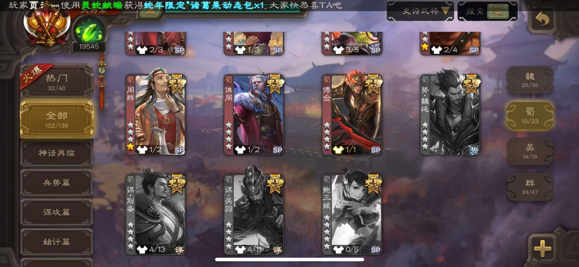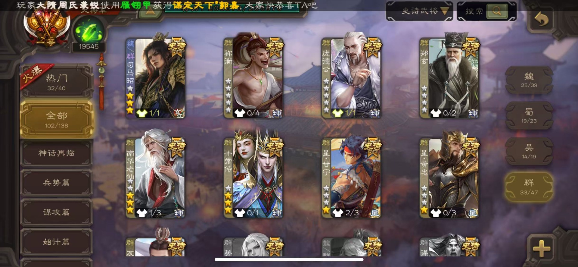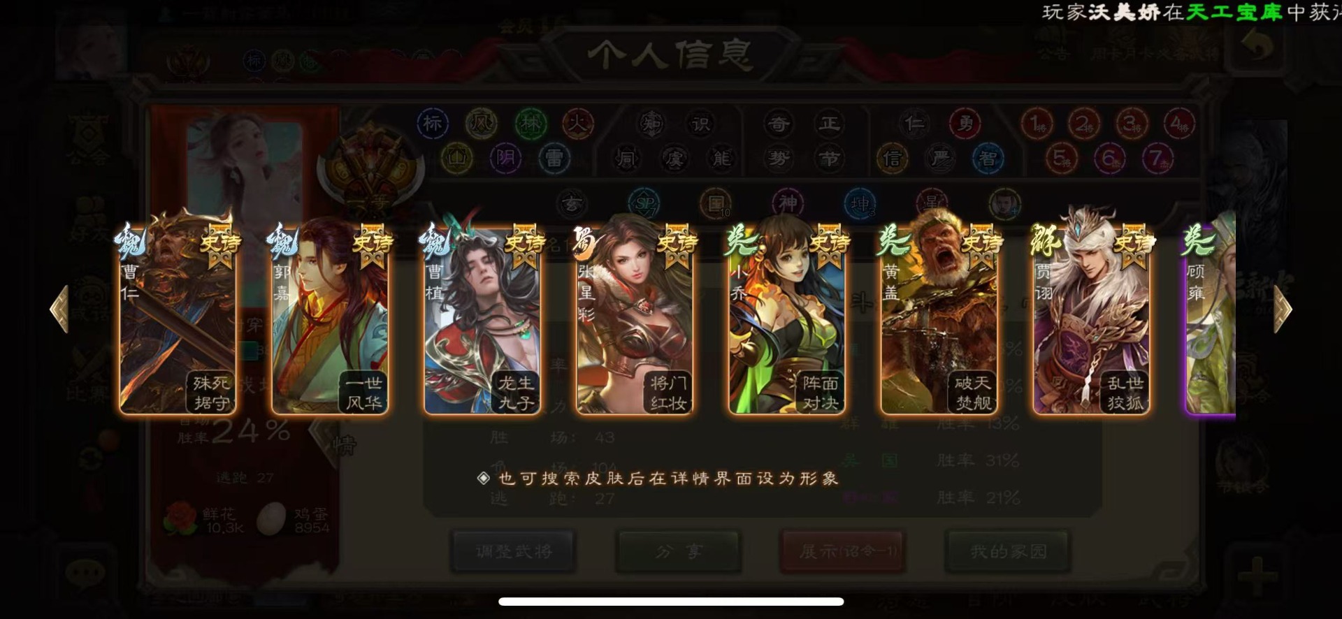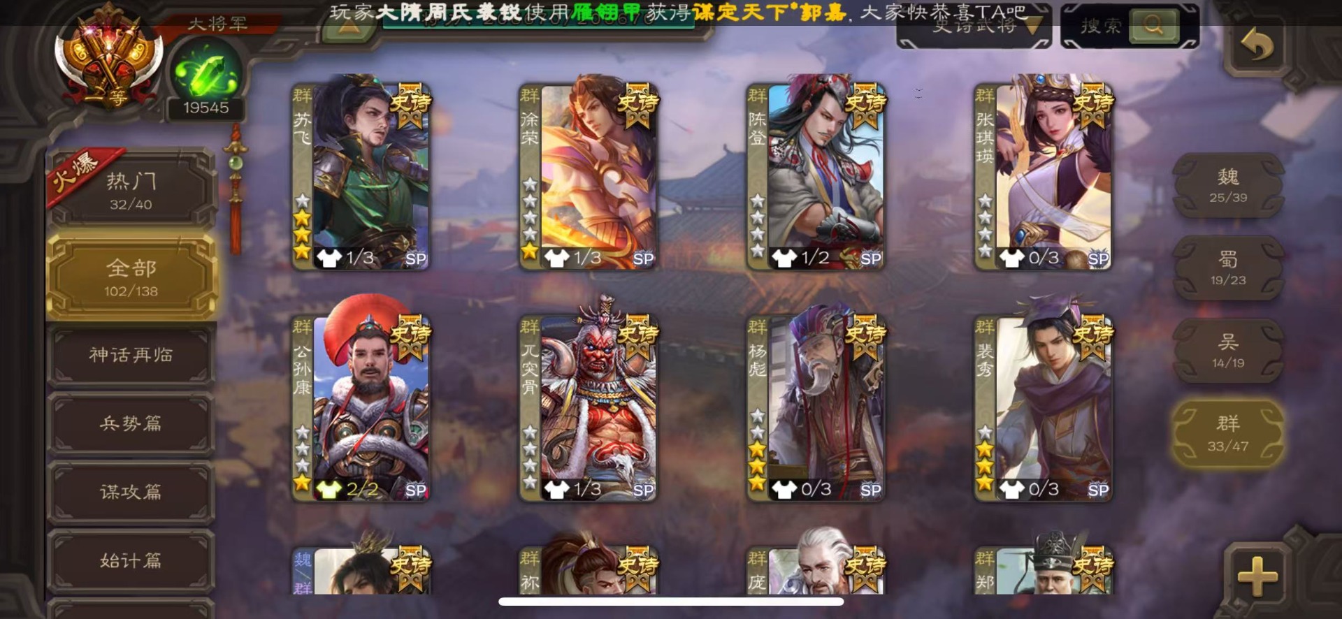 [16367808]vip16 大将军 496武将 87动态皮肤 102史诗武将 32宝珠 【神将】神曹操神吕布神赵云神陆逊神刘备神甘宁神张辽神郭嘉神太史慈神孙策神荀彧神华佗神鲁肃 【魏国武将】sp司马昭曹髦星周不疑谋曹仁王粲谋曹操杨修羊徽瑜文鸯王元姬王凌王朗魏-司马昭马钧界钟会界于禁界曹真嵇康郝昭程昱陈琳曹婴曹纯戏志才刘晔 【蜀国武将】谋诸葛亮马云騄蜀-谋孙尚香谋黄忠谋夏侯氏谋赵云谋马超诸葛瞻周群赵襄张星彩王平沙摩柯谯周傅佥界黄忠花鬘关索董允 【吴国武将】谋陆逊张奋文鸯吴-谋孙尚香周处吴景孙皓孙寒华骆统留赞界朱然界徐盛界步练师贺齐 【群国武将】友诸葛亮群-司马昭十常侍裴秀皇甫嵩左慈郑玄张让张琪瑛杨彪徐荣星黄忠星甘宁兀突骨王允陶谦苏飞司马徽士燮审配麹义庞德公南华老仙祢衡刘焉沮授界左慈界李儒公孙康杜预陈登卑弥呼许攸