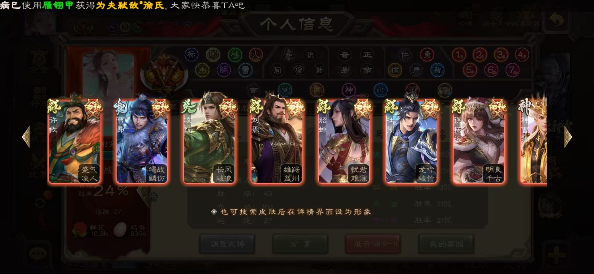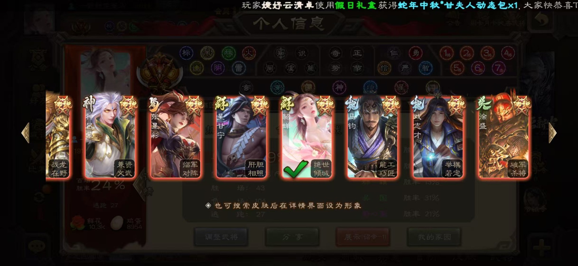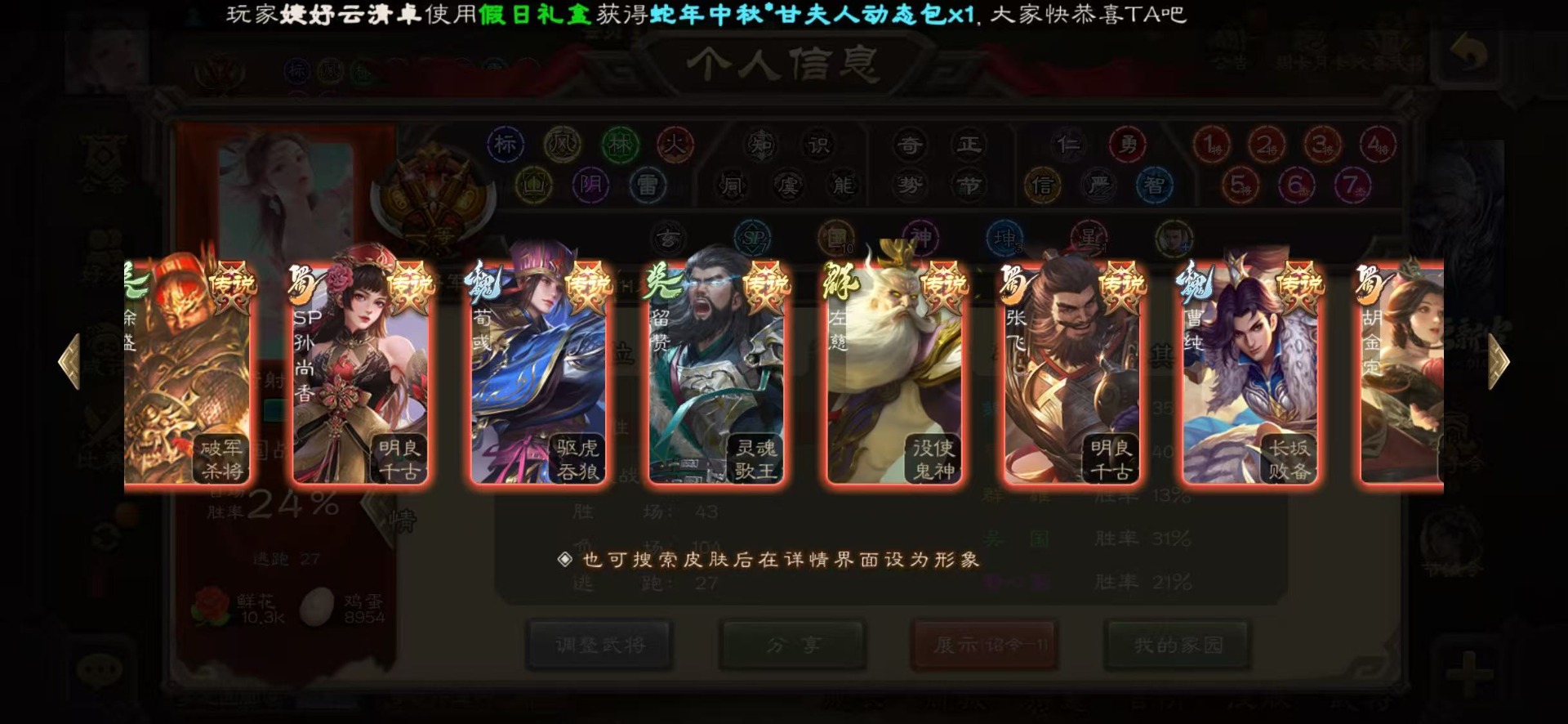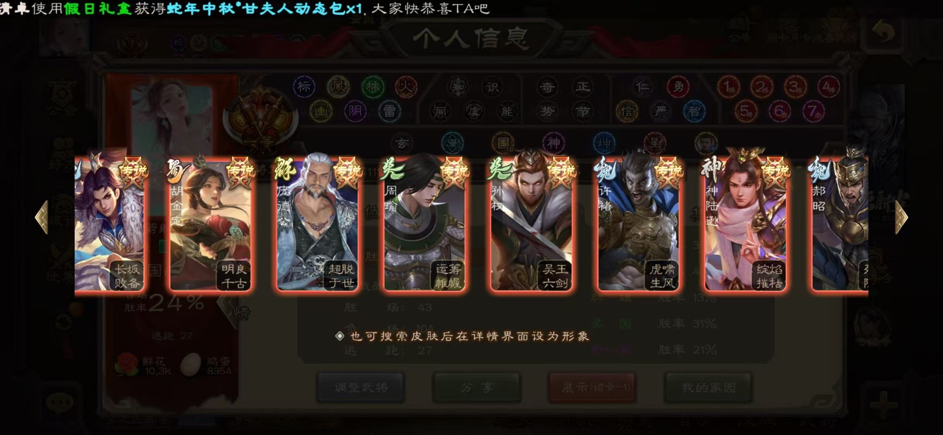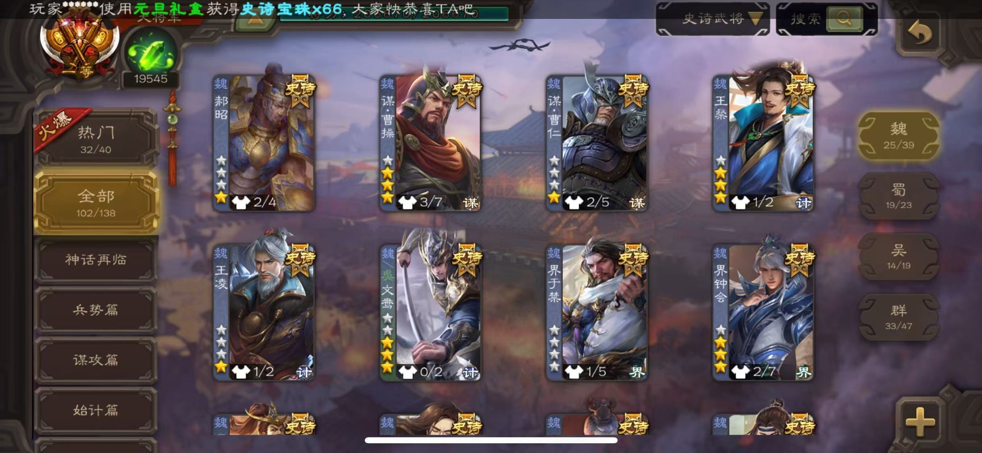 [16367808]vip16 大将军 496武将 87动态皮肤 102史诗武将 32宝珠 【神将】神曹操神吕布神赵云神陆逊神刘备神甘宁神张辽神郭嘉神太史慈神孙策神荀彧神华佗神鲁肃 【魏国武将】sp司马昭曹髦星周不疑谋曹仁王粲谋曹操杨修羊徽瑜文鸯王元姬王凌王朗魏-司马昭马钧界钟会界于禁界曹真嵇康郝昭程昱陈琳曹婴曹纯戏志才刘晔 【蜀国武将】谋诸葛亮马云騄蜀-谋孙尚香谋黄忠谋夏侯氏谋赵云谋马超诸葛瞻周群赵襄张星彩王平沙摩柯谯周傅佥界黄忠花鬘关索董允 【吴国武将】谋陆逊张奋文鸯吴-谋孙尚香周处吴景孙皓孙寒华骆统留赞界朱然界徐盛界步练师贺齐 【群国武将】友诸葛亮群-司马昭十常侍裴秀皇甫嵩左慈郑玄张让张琪瑛杨彪徐荣星黄忠星甘宁兀突骨王允陶谦苏飞司马徽士燮审配麹义庞德公南华老仙祢衡刘焉沮授界左慈界李儒公孙康杜预陈登卑弥呼许攸