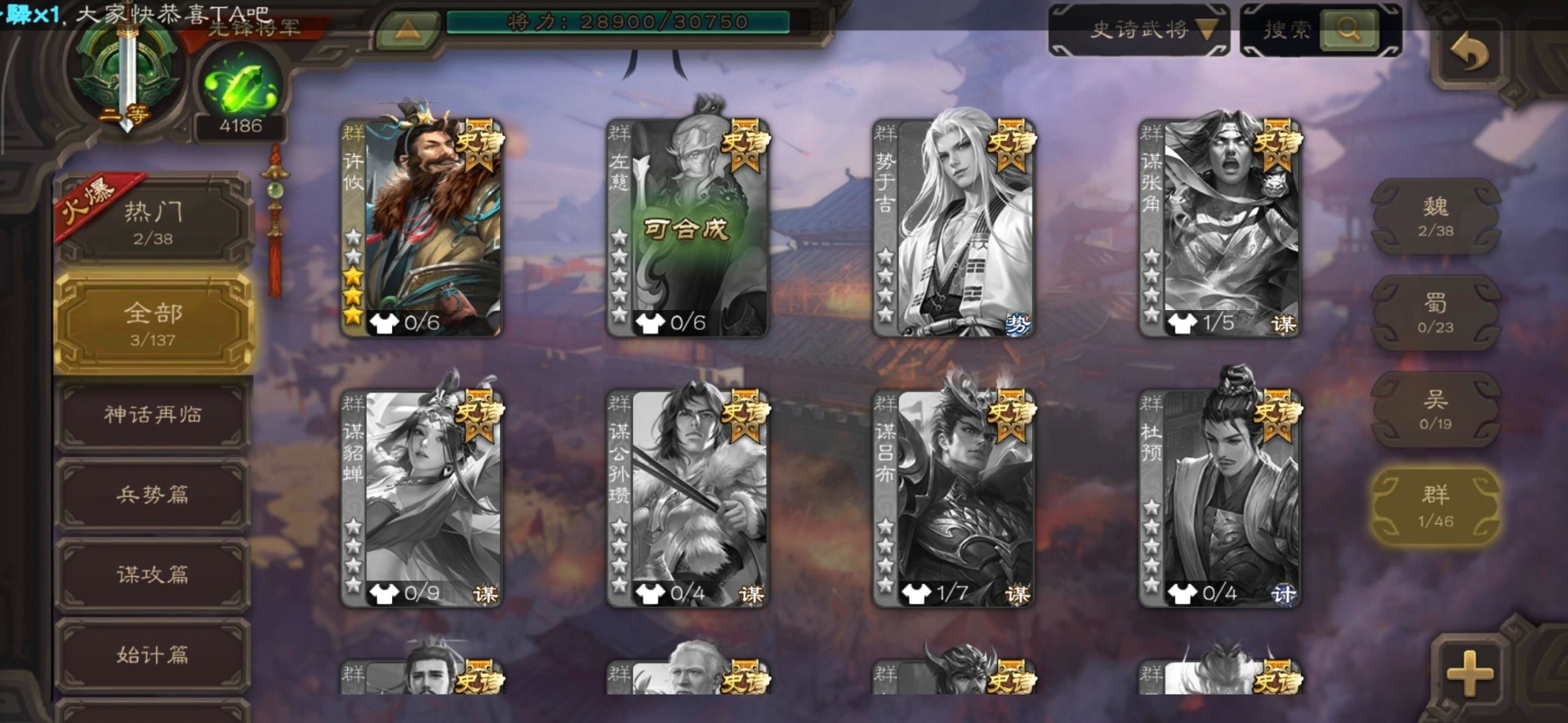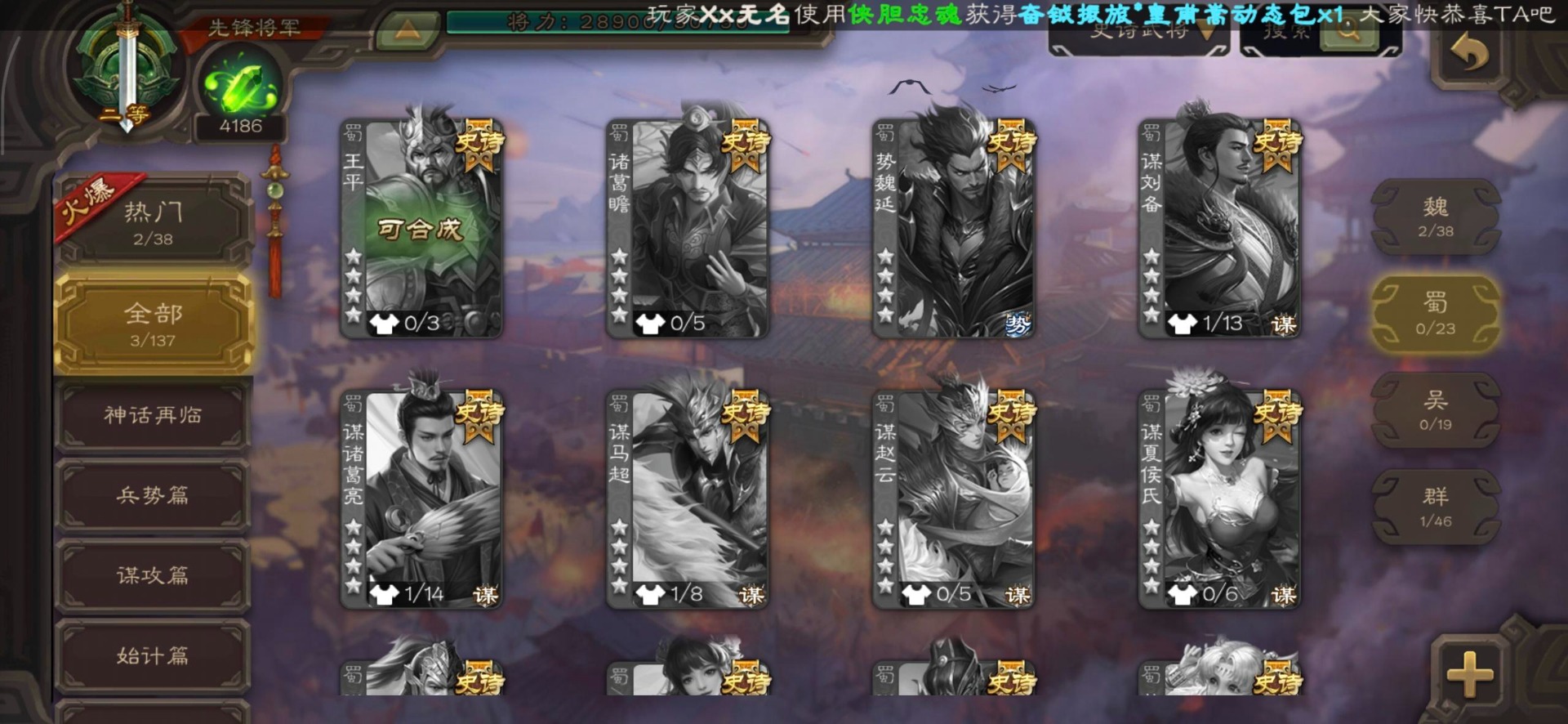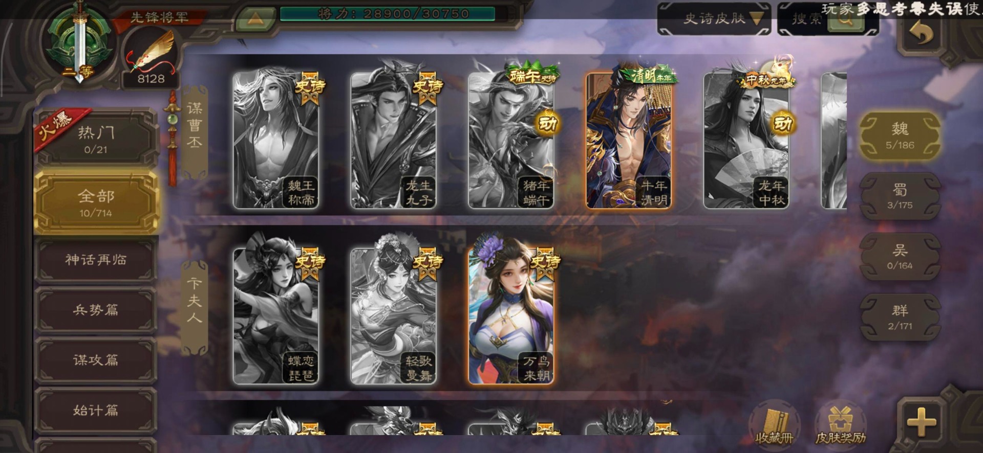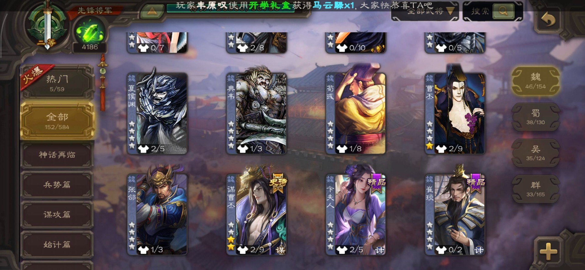 [16368151]vip4 先锋将军 152武将 5动态皮肤 3史诗武将 【魏国武将】王元姬谋曹丕甄姬司马懿许褚夏侯惇郭嘉曹仁曹操张辽 【群国武将】许攸