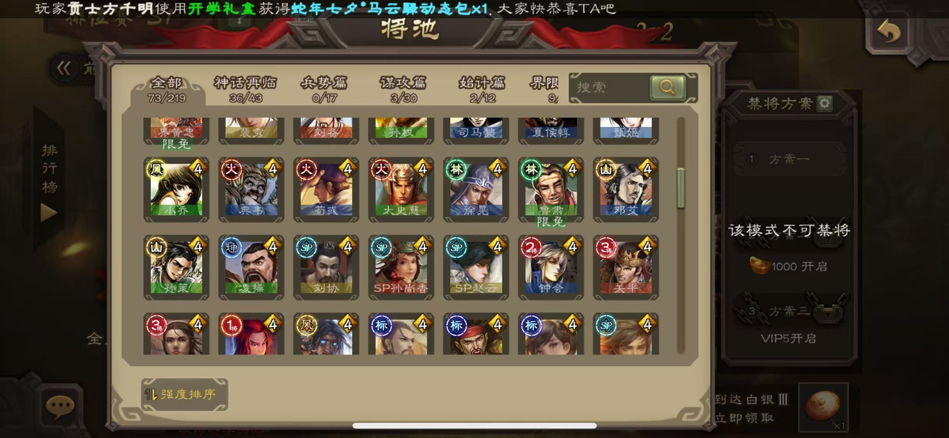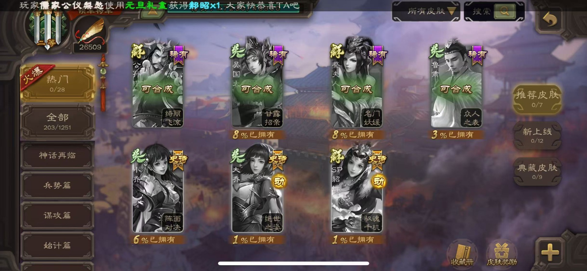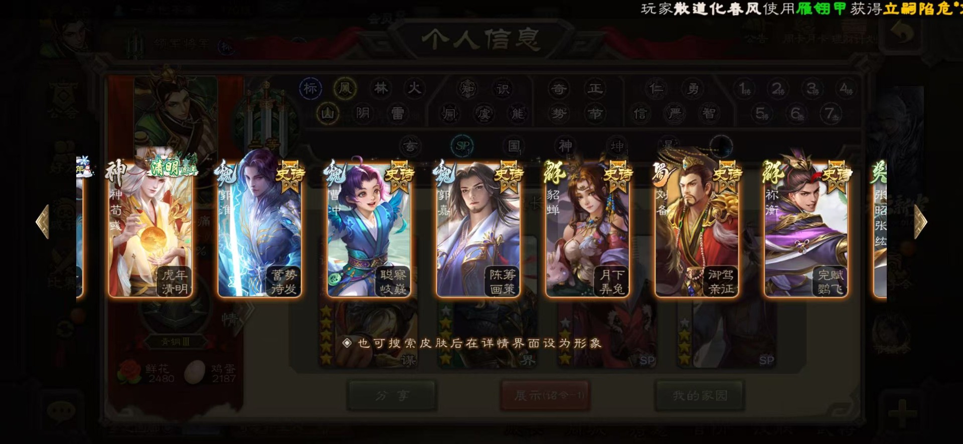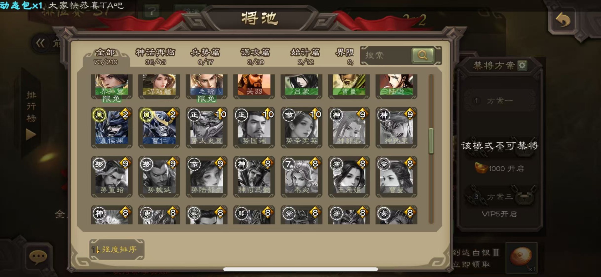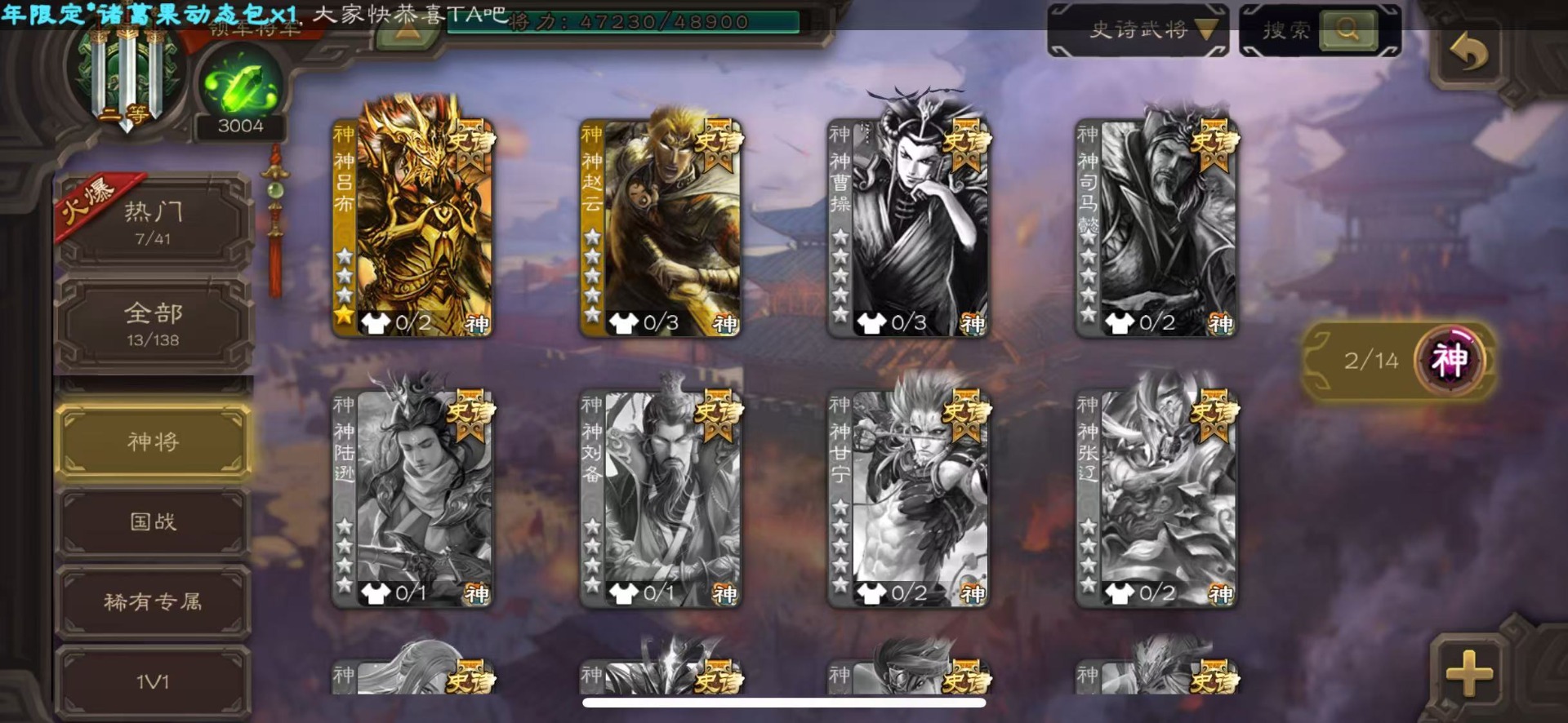 [16386020]vip8 领军将军 203武将 6动态皮肤 13史诗武将 【神将】神吕布神赵云 【魏国武将】星周不疑程昱曹纯 【蜀国武将】谋黄忠谋马超花鬘董允 【吴国武将】界徐盛 【群国武将】裴秀左慈许攸