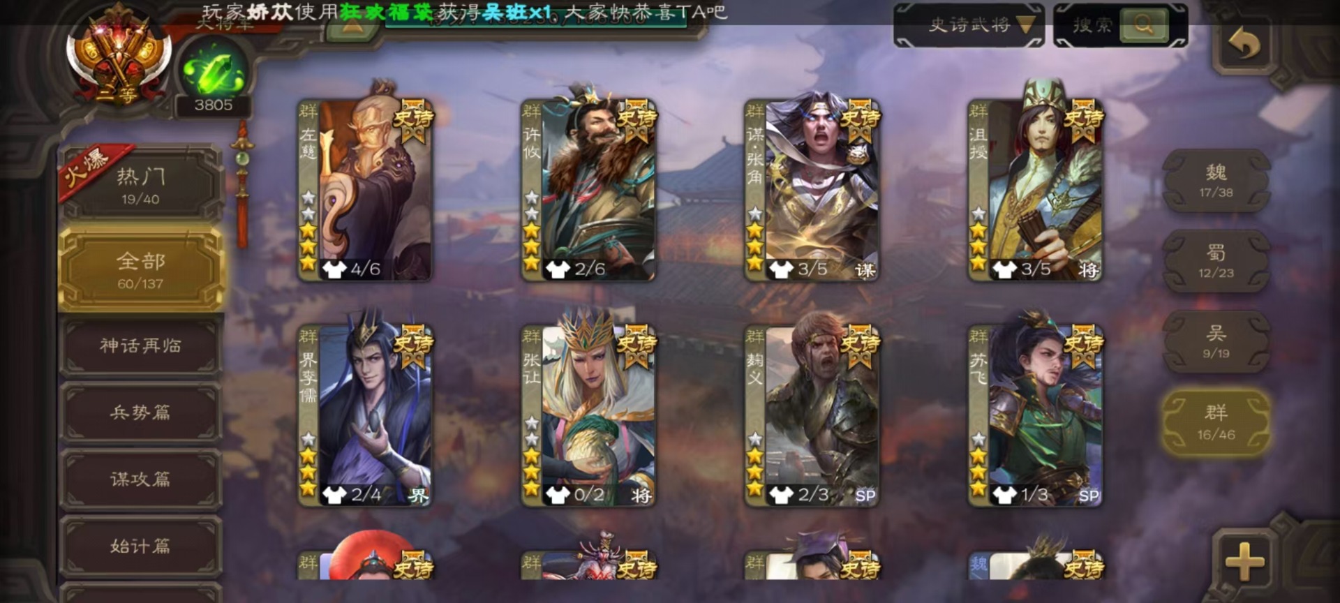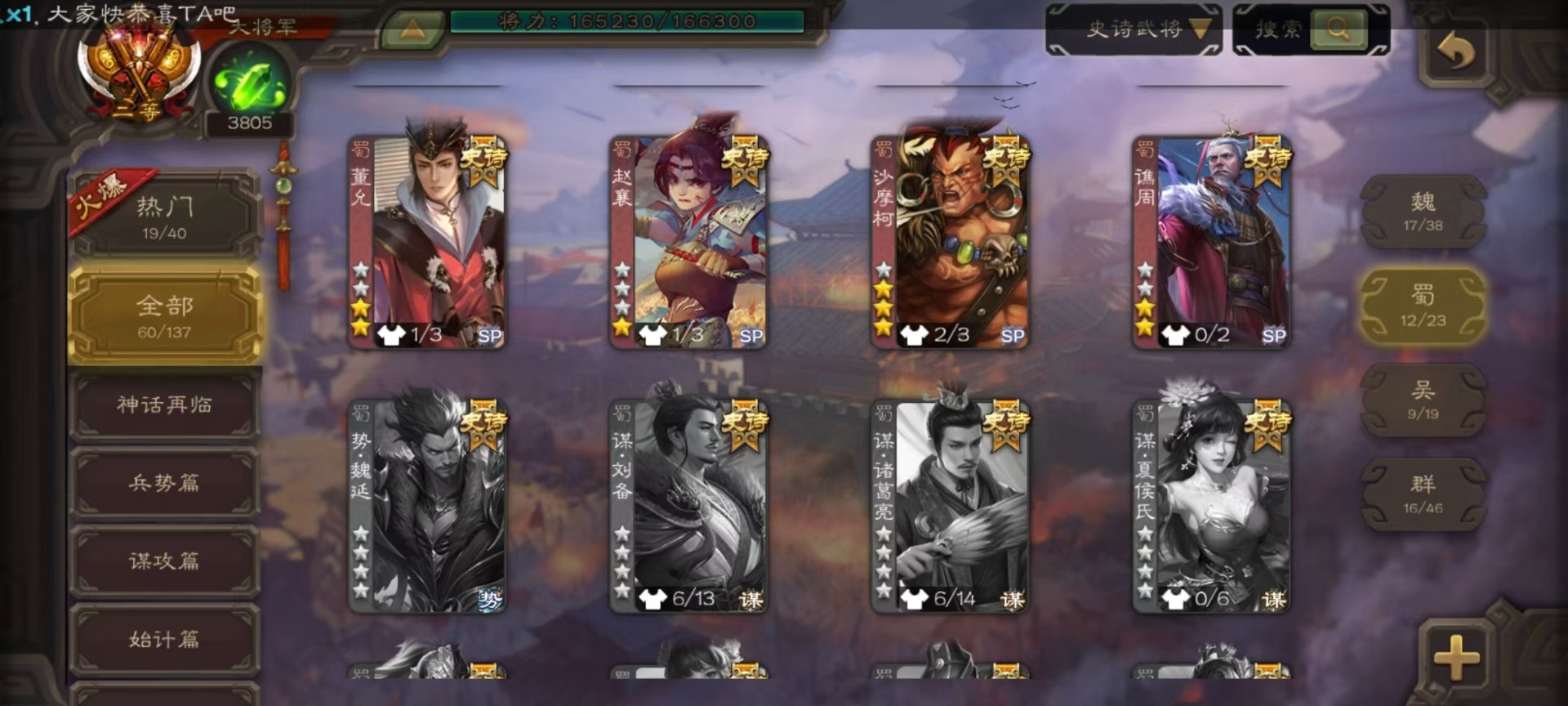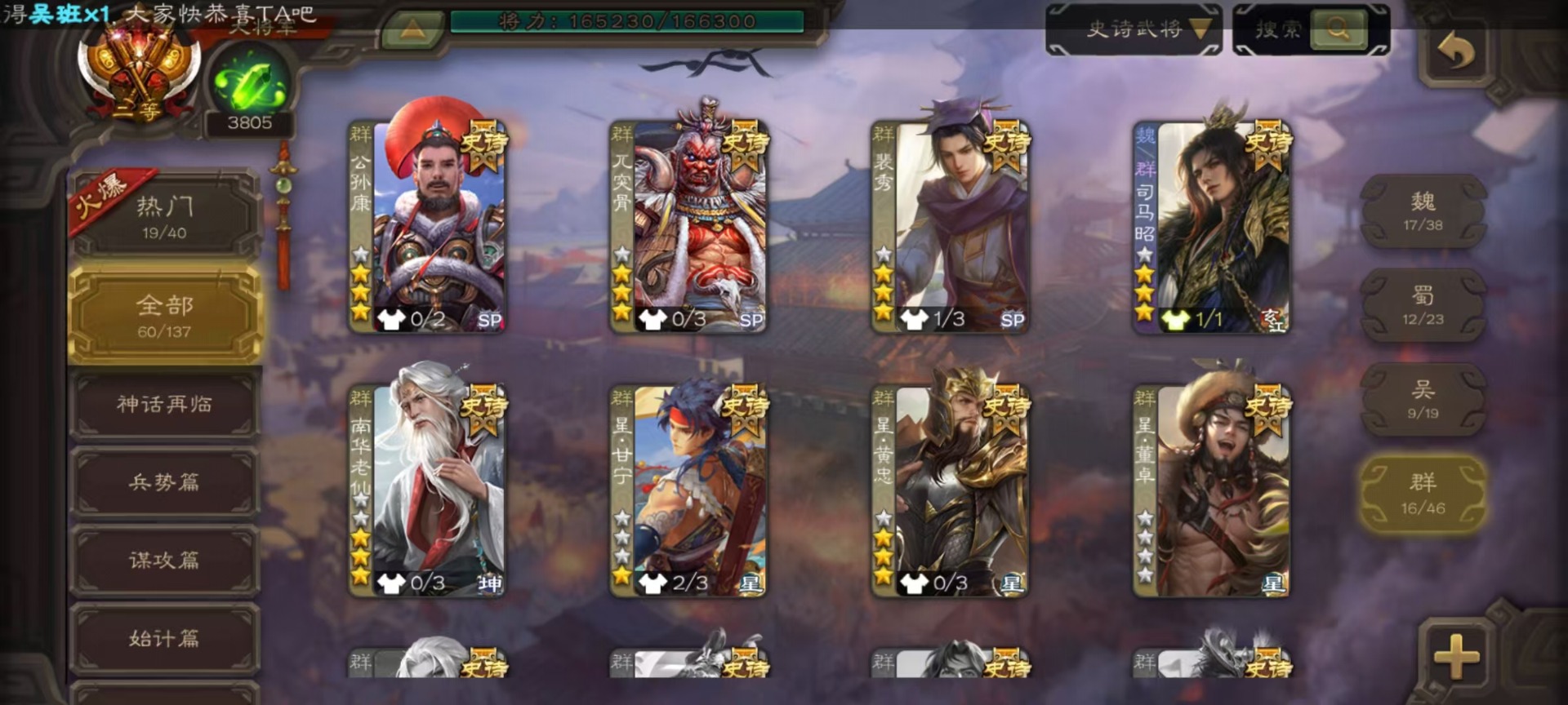 [16417833]vip9 大将军 427武将 69动态皮肤 60史诗武将 51宝珠 【神将】神吕布神赵云神司马懿神陆逊神张辽神郭嘉神太史慈神孙策 【魏国武将】sp司马昭星周不疑王元姬王朗魏-司马昭曹婴曹纯刘晔蒋干 【蜀国武将】马云騄谋赵云谋马超诸葛瞻赵襄张星彩王平沙摩柯谯周界黄忠花鬘董允 【吴国武将】势太史慈文鸯孙寒华骆统留赞界朱然界徐盛界步练师贺齐 【群国武将】星董卓群-司马昭裴秀左慈张让星黄忠星甘宁兀突骨苏飞麹义南华老仙沮授界李儒公孙康谋张角许攸