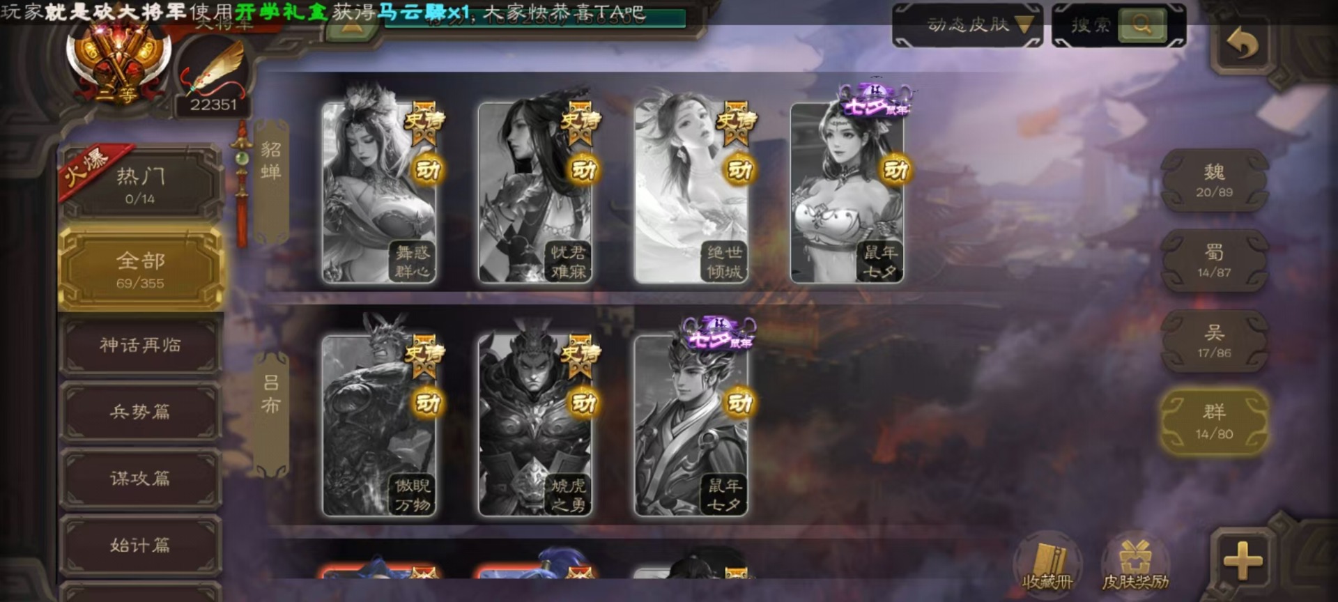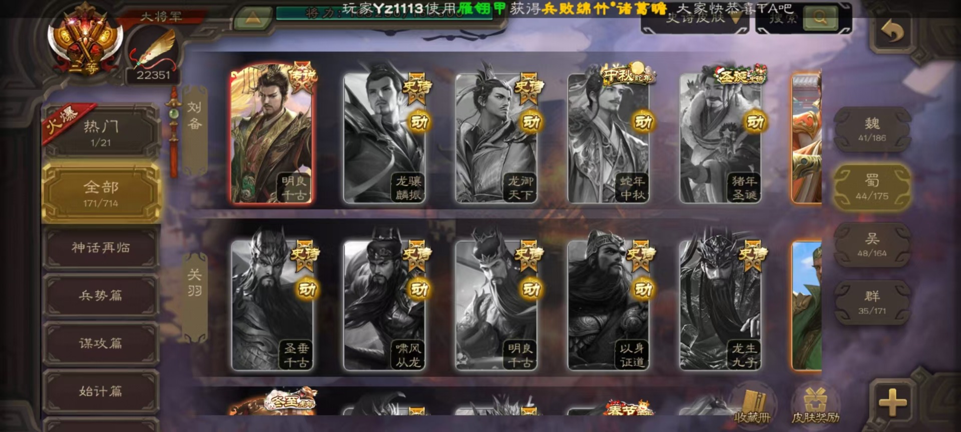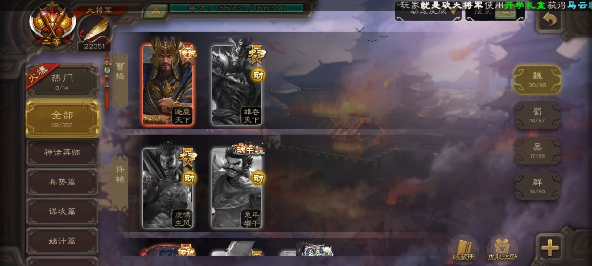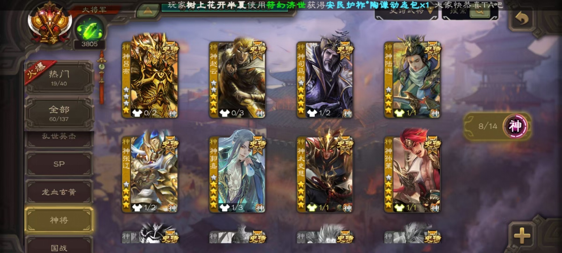 [16417833]vip9 大将军 427武将 69动态皮肤 60史诗武将 51宝珠 【神将】神吕布神赵云神司马懿神陆逊神张辽神郭嘉神太史慈神孙策 【魏国武将】sp司马昭星周不疑王元姬王朗魏-司马昭曹婴曹纯刘晔蒋干 【蜀国武将】马云騄谋赵云谋马超诸葛瞻赵襄张星彩王平沙摩柯谯周界黄忠花鬘董允 【吴国武将】势太史慈文鸯孙寒华骆统留赞界朱然界徐盛界步练师贺齐 【群国武将】星董卓群-司马昭裴秀左慈张让星黄忠星甘宁兀突骨苏飞麹义南华老仙沮授界李儒公孙康谋张角许攸