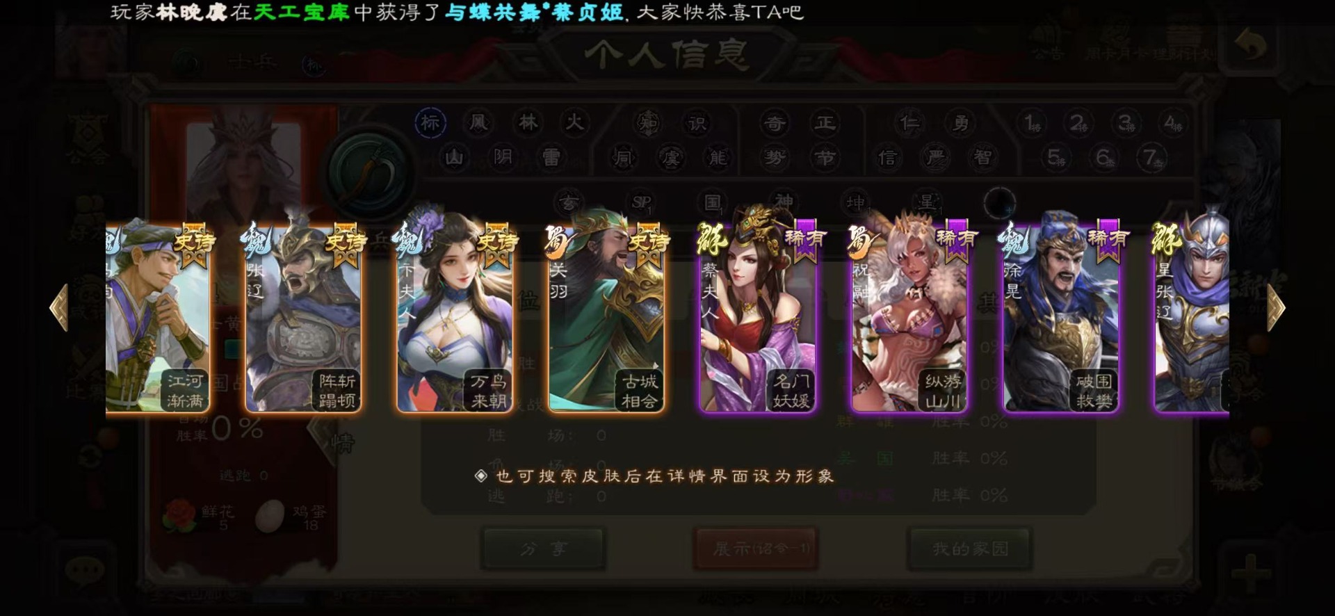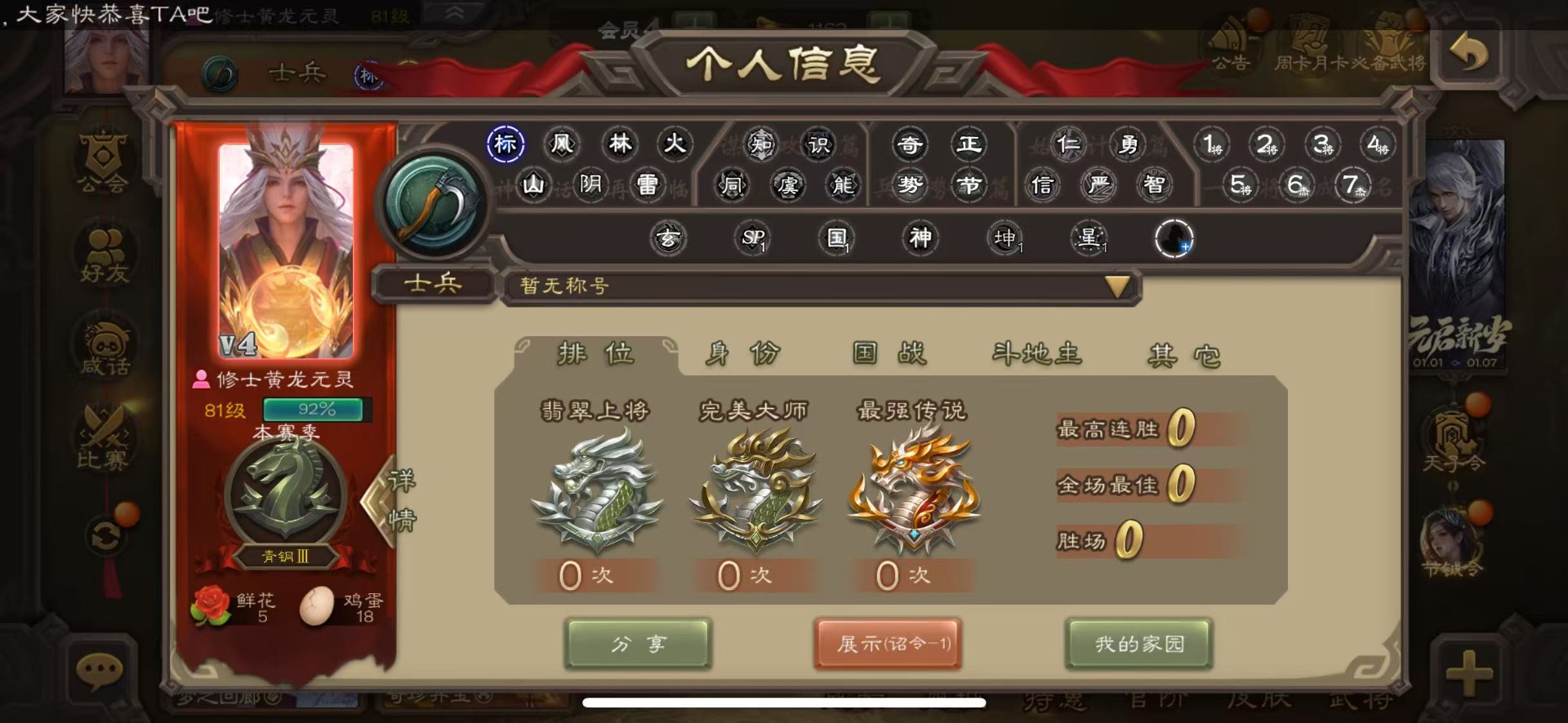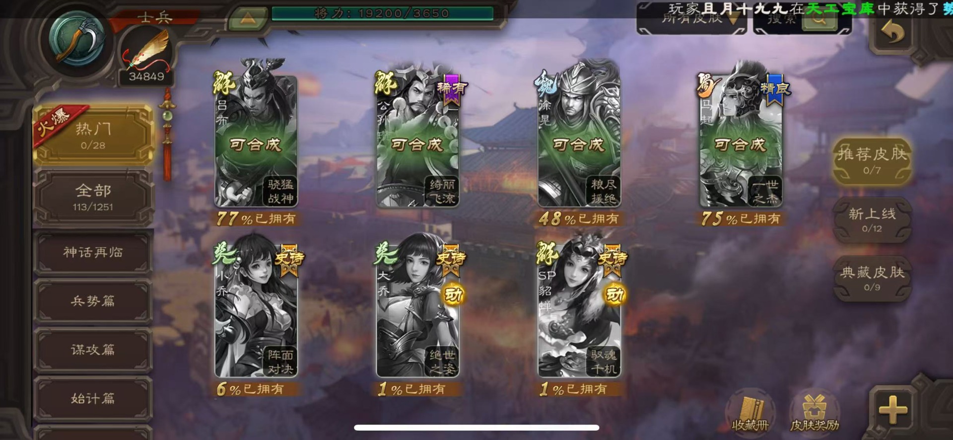 [16418263]vip4 士兵 86武将 2动态皮肤 3史诗武将 【神将】神刘备 【魏国武将】势国渊王元姬
