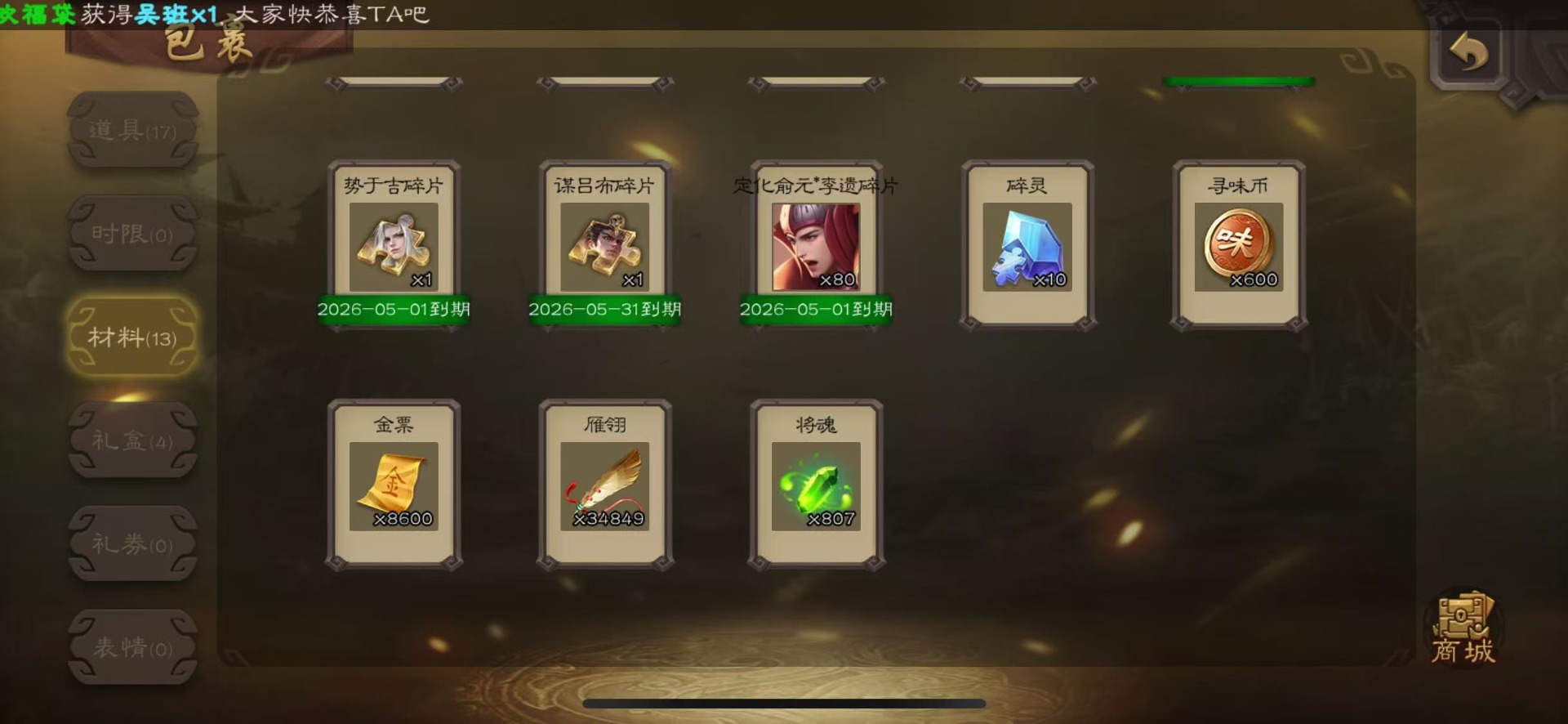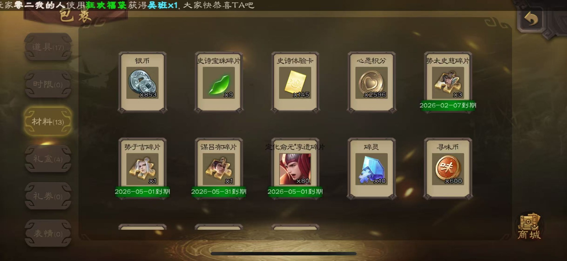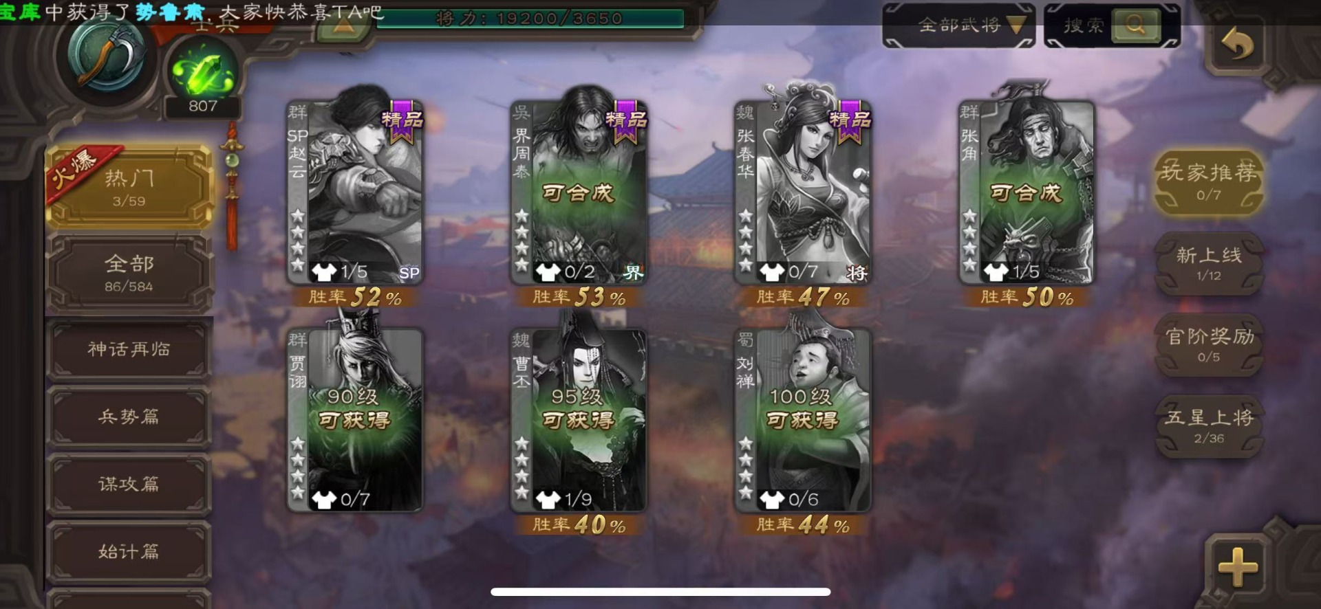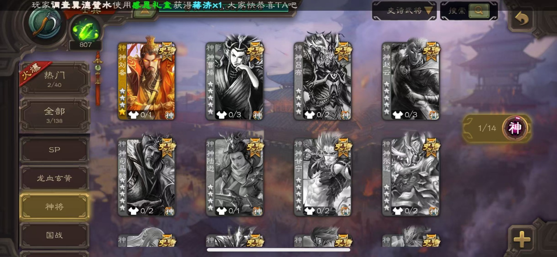 [16418263]vip4 士兵 86武将 2动态皮肤 3史诗武将 【神将】神刘备 【魏国武将】势国渊王元姬