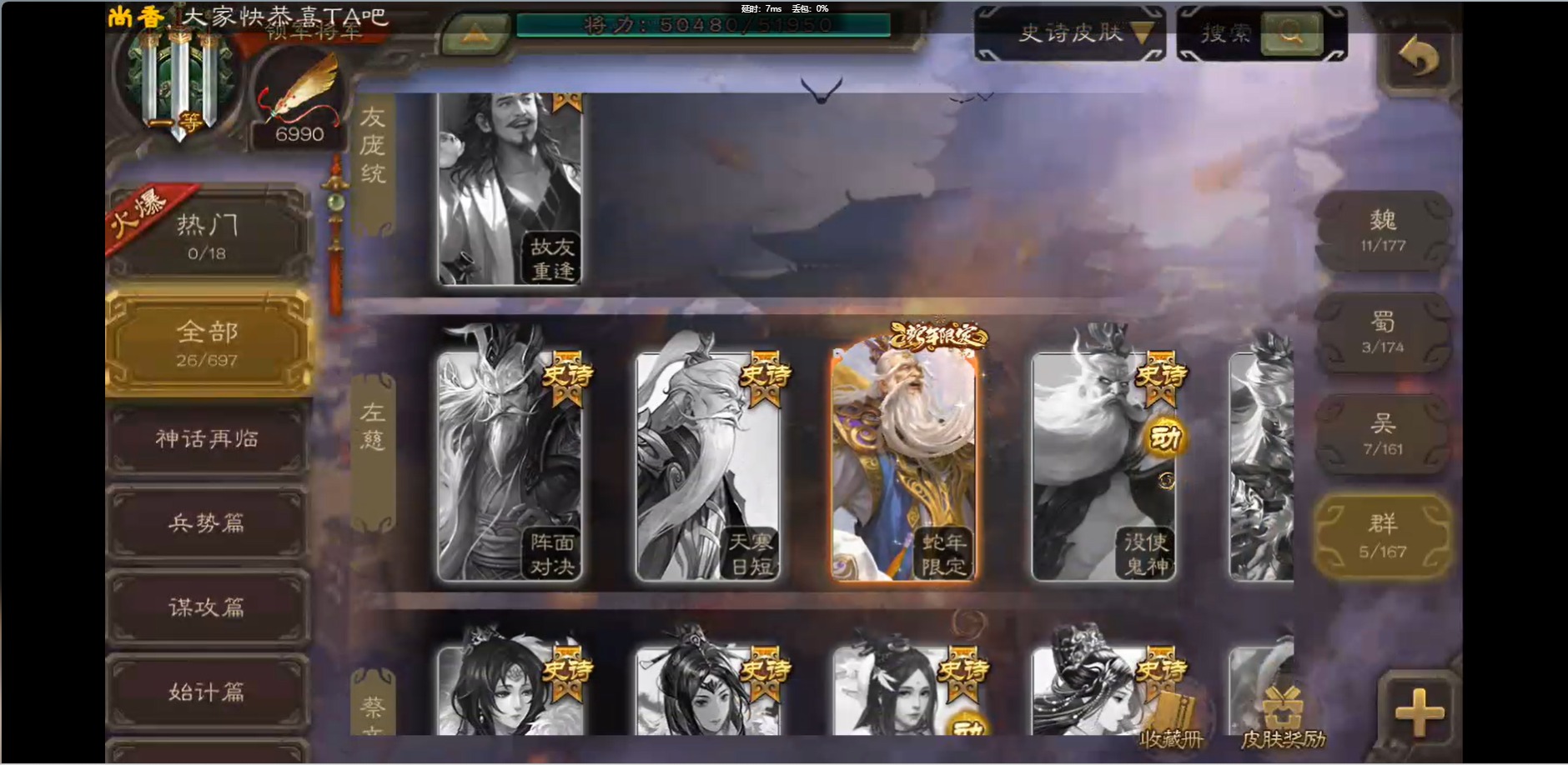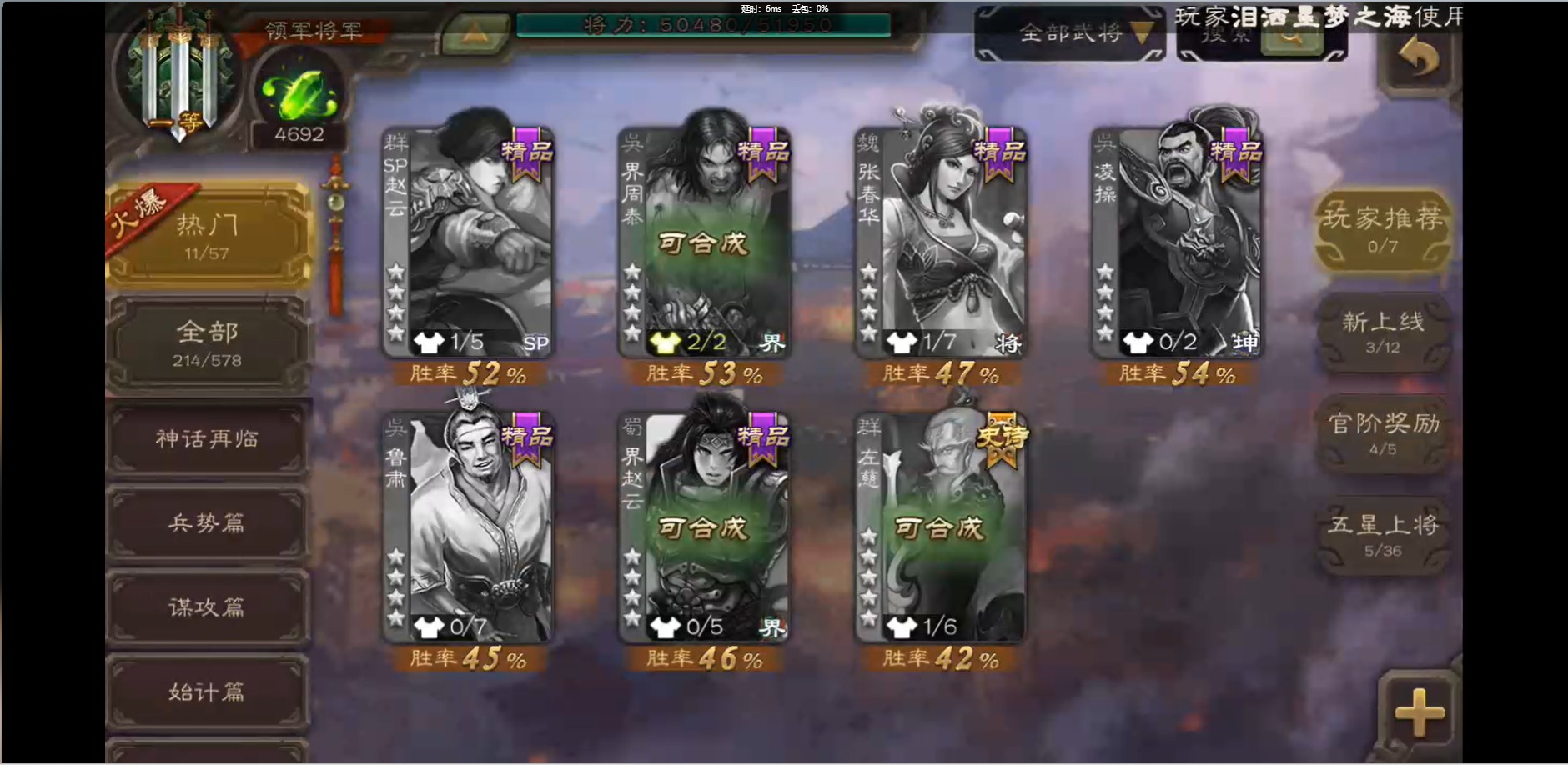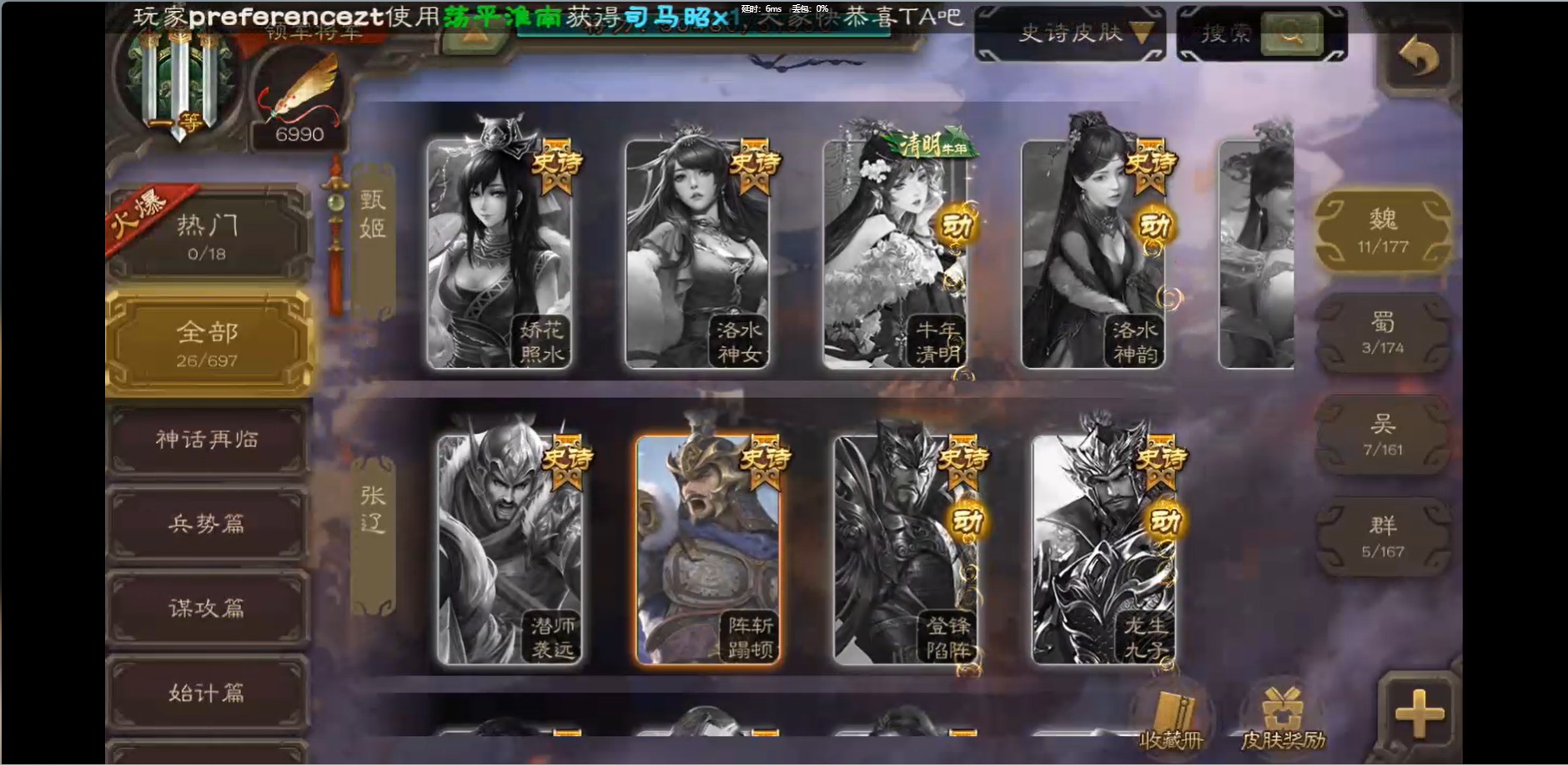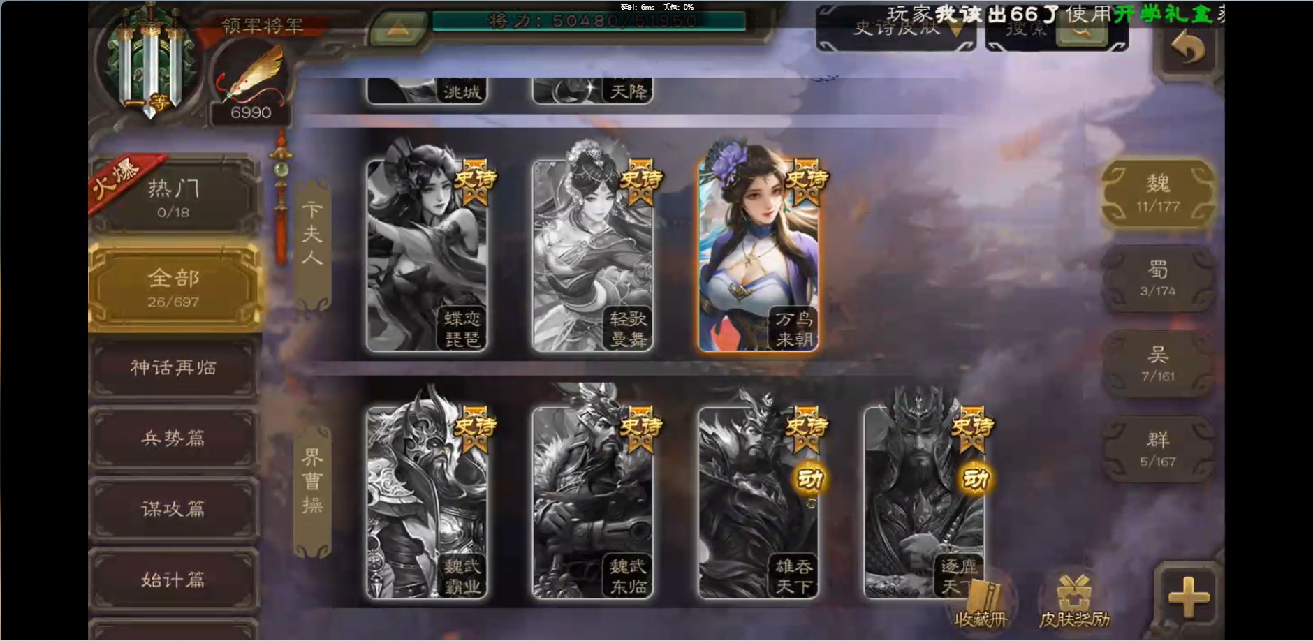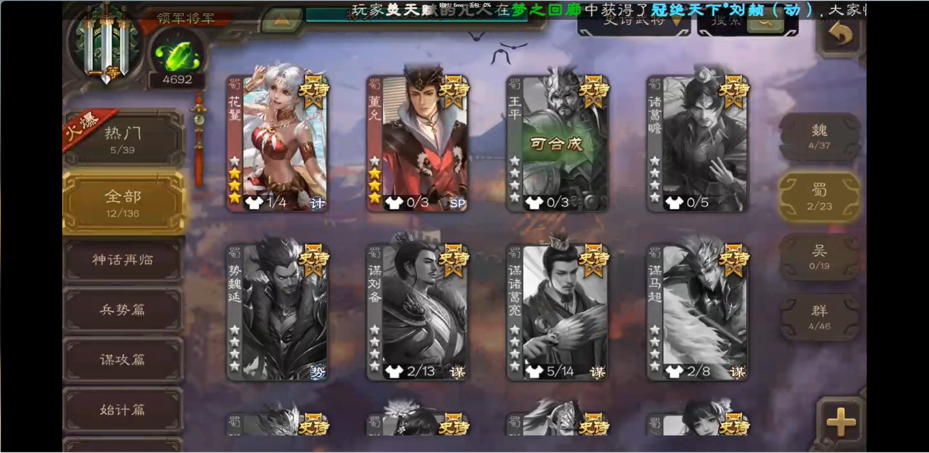 [16426275]vip1 领军将军 214武将 10动态皮肤 12史诗武将 38宝珠 【魏国武将】:界钟会程昱曹纯戏志才甄姬司马懿许褚夏侯惇郭嘉曹仁曹操张辽 【蜀国武将】:花鬘董允 【群国武将】:麹义刘焉沮授界李儒