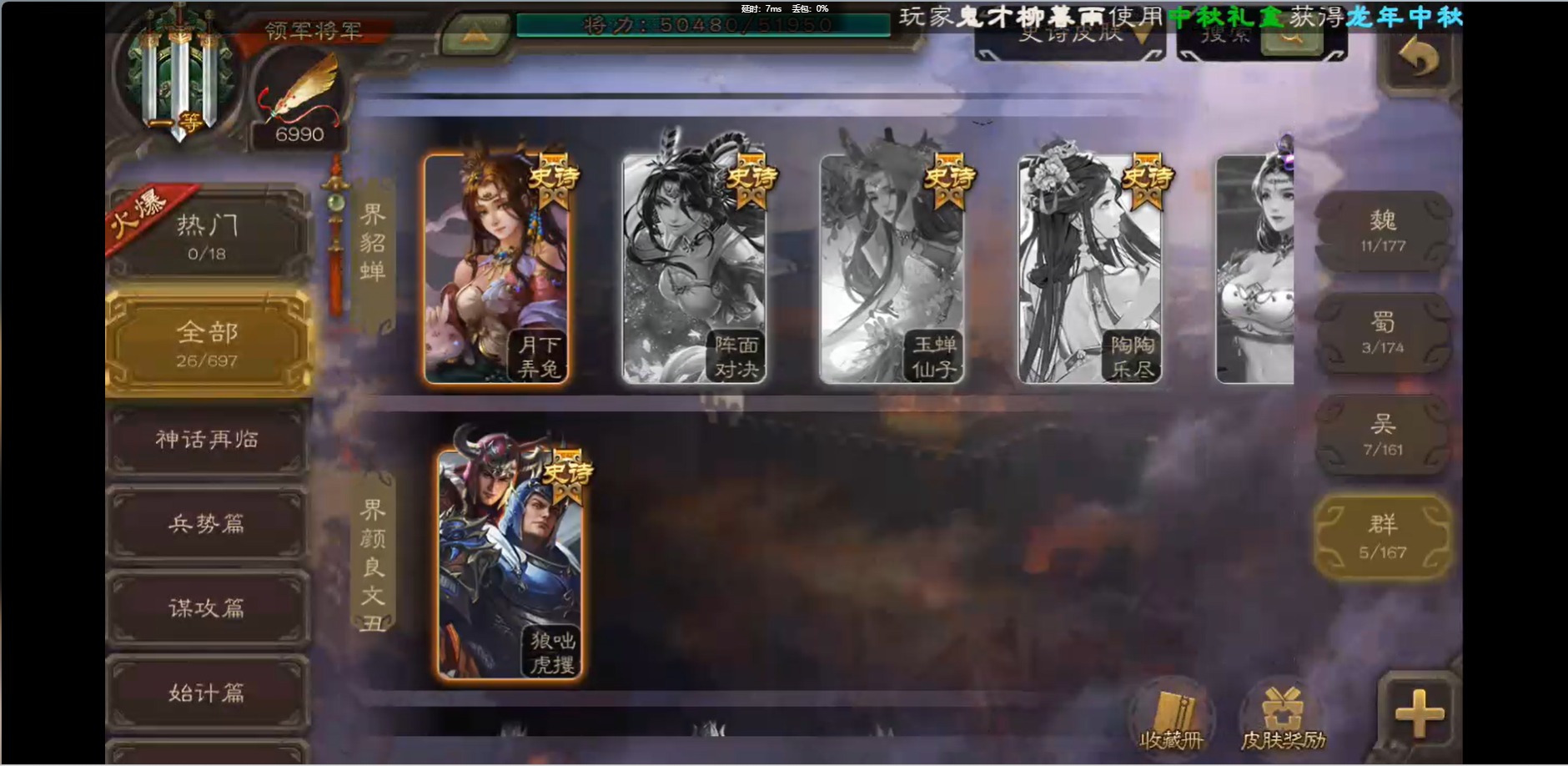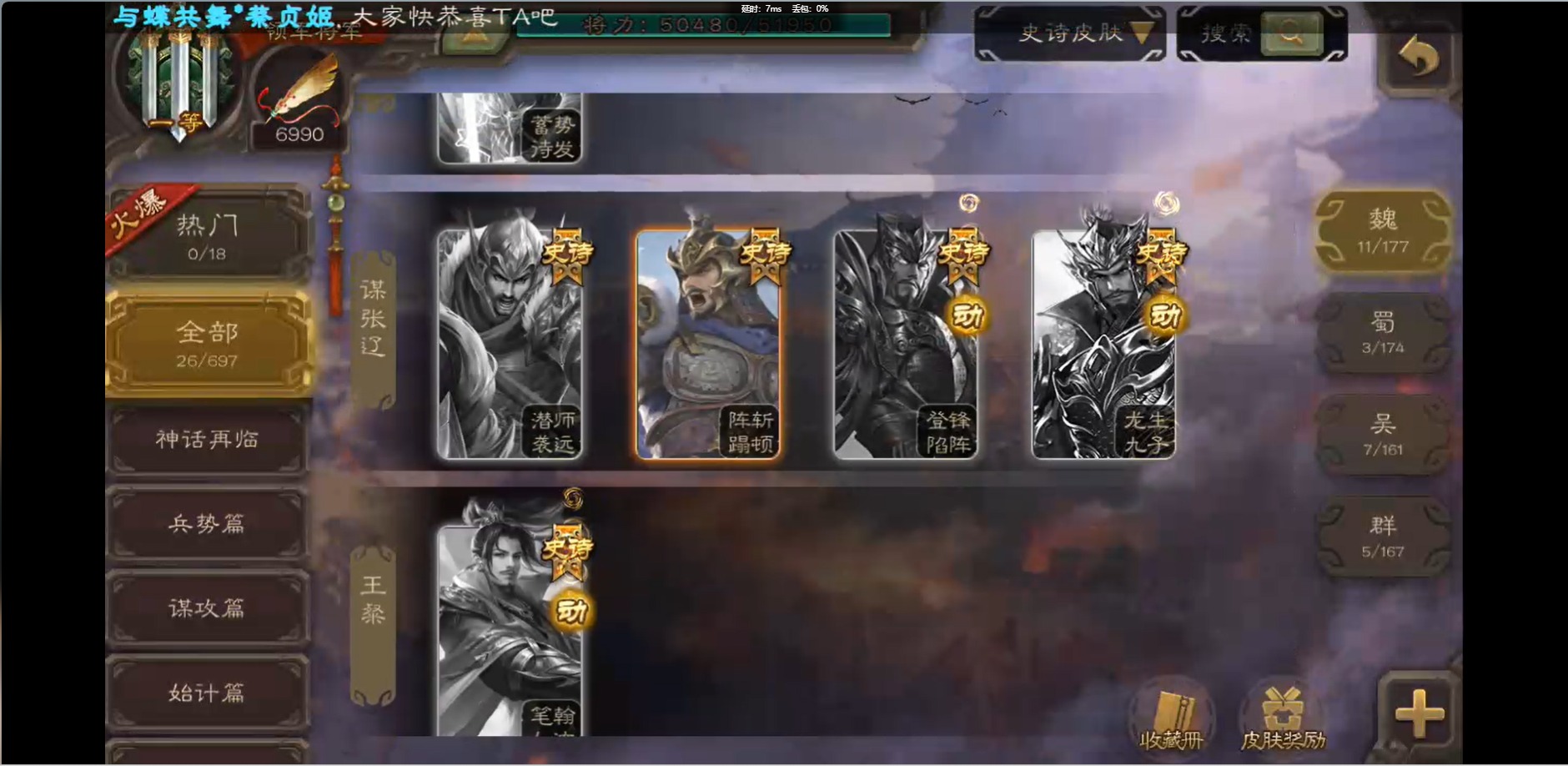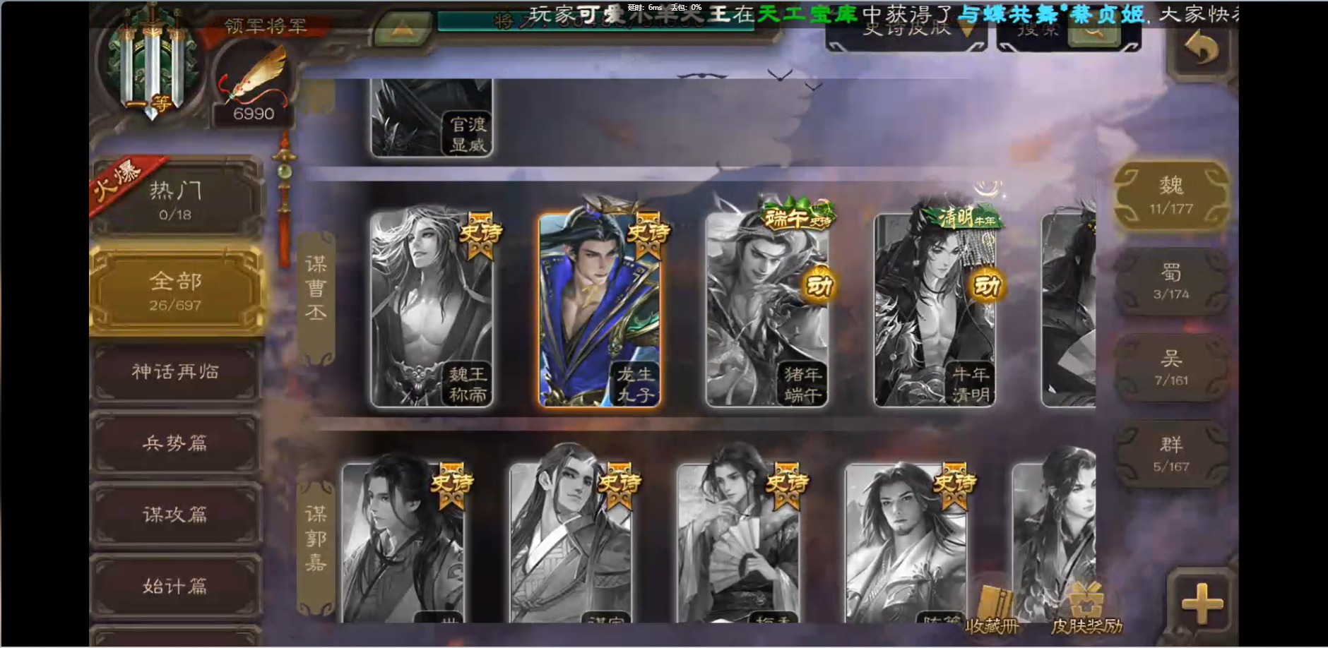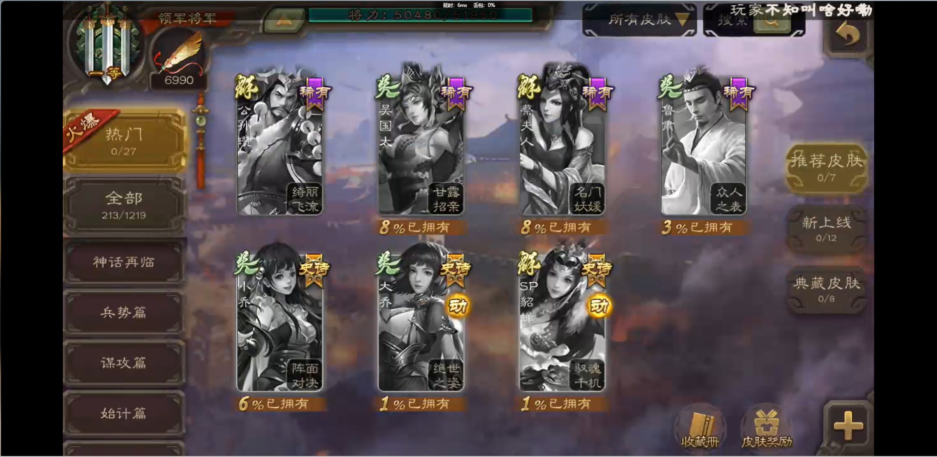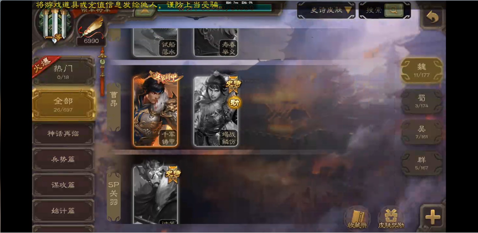[16426275]vip1 领军将军 214武将 10动态皮肤 12史诗武将 38宝珠 【魏国武将】:界钟会程昱曹纯戏志才甄姬司马懿许褚夏侯惇郭嘉曹仁曹操张辽 【蜀国武将】:花鬘董允 【群国武将】:麹义刘焉沮授界李儒