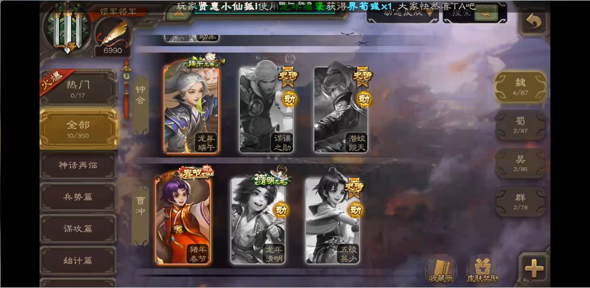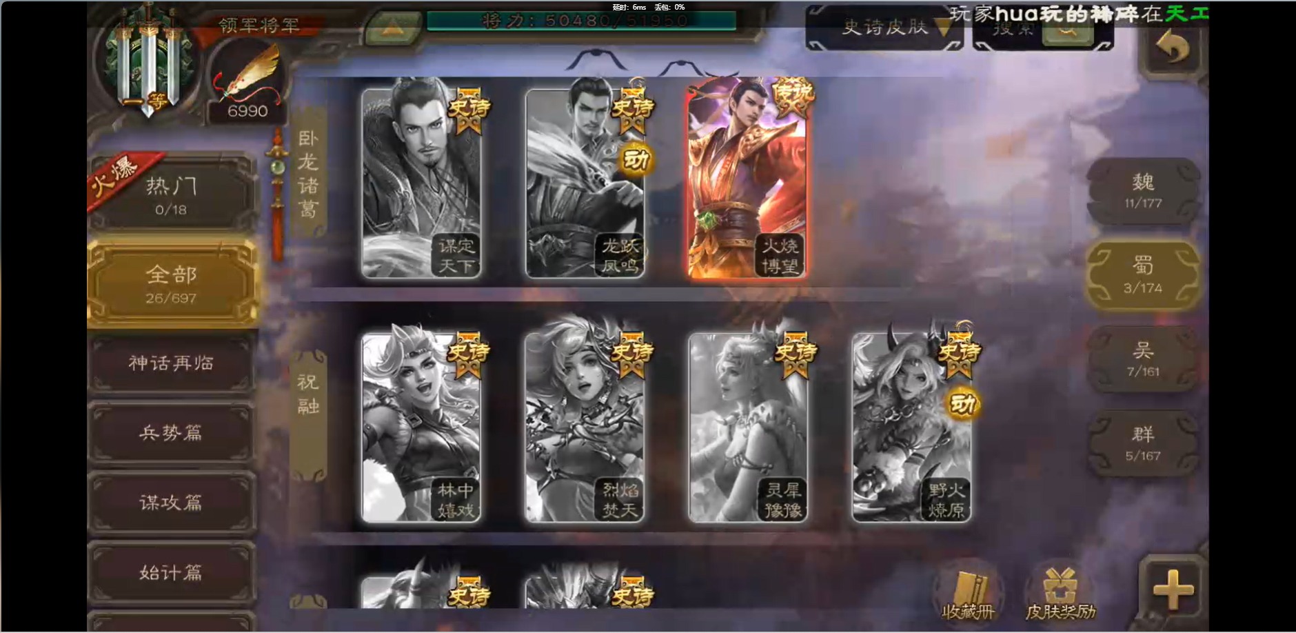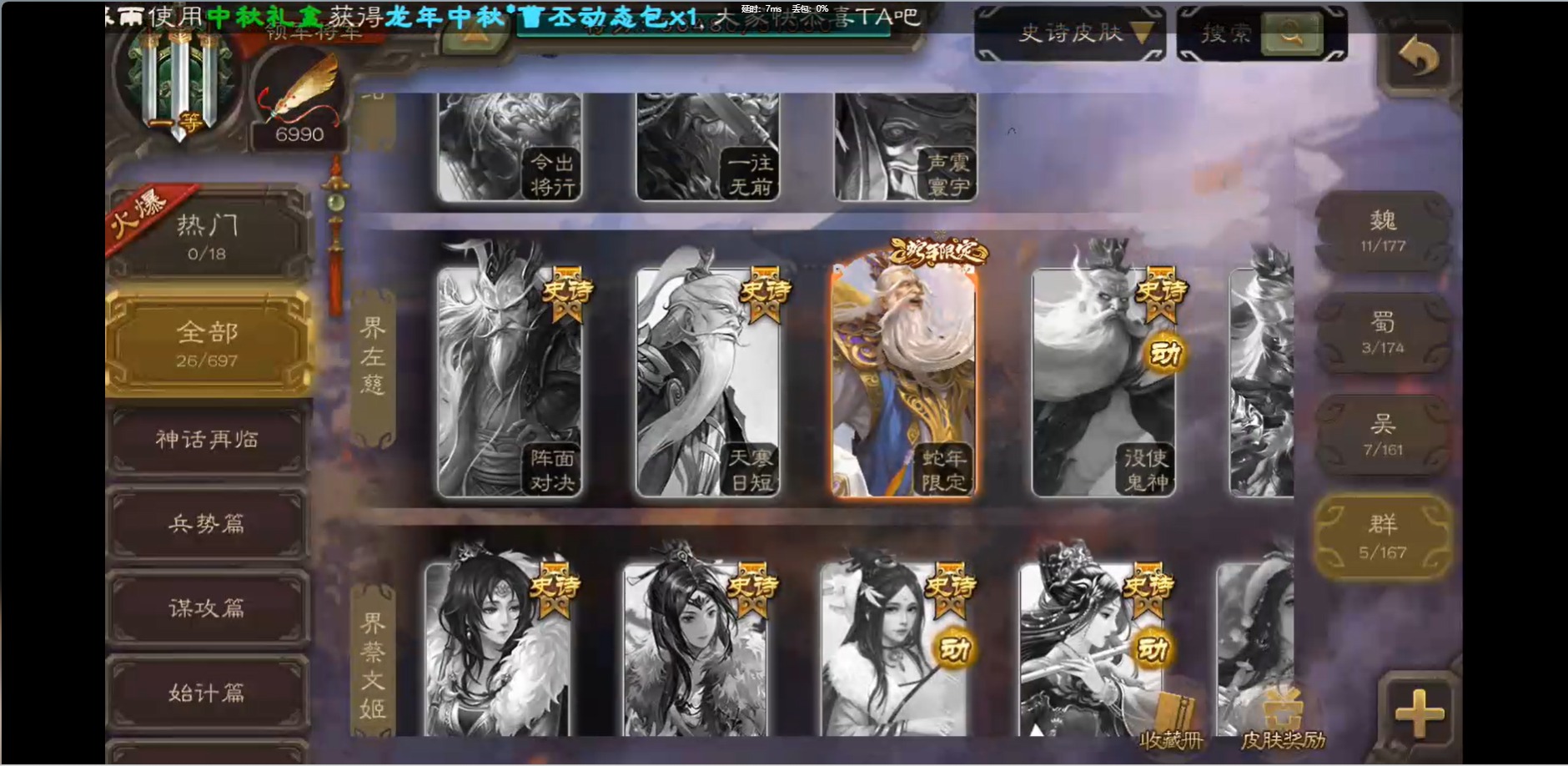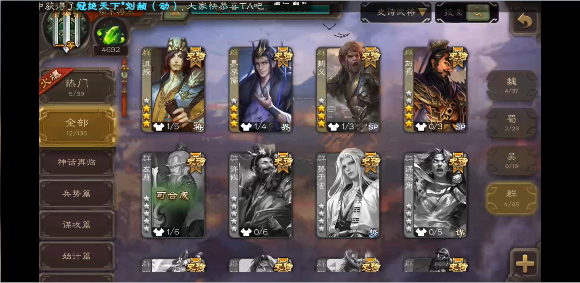 [16426275]vip1 领军将军 214武将 10动态皮肤 12史诗武将 38宝珠 【魏国武将】:界钟会程昱曹纯戏志才甄姬司马懿许褚夏侯惇郭嘉曹仁曹操张辽 【蜀国武将】:花鬘董允 【群国武将】:麹义刘焉沮授界李儒