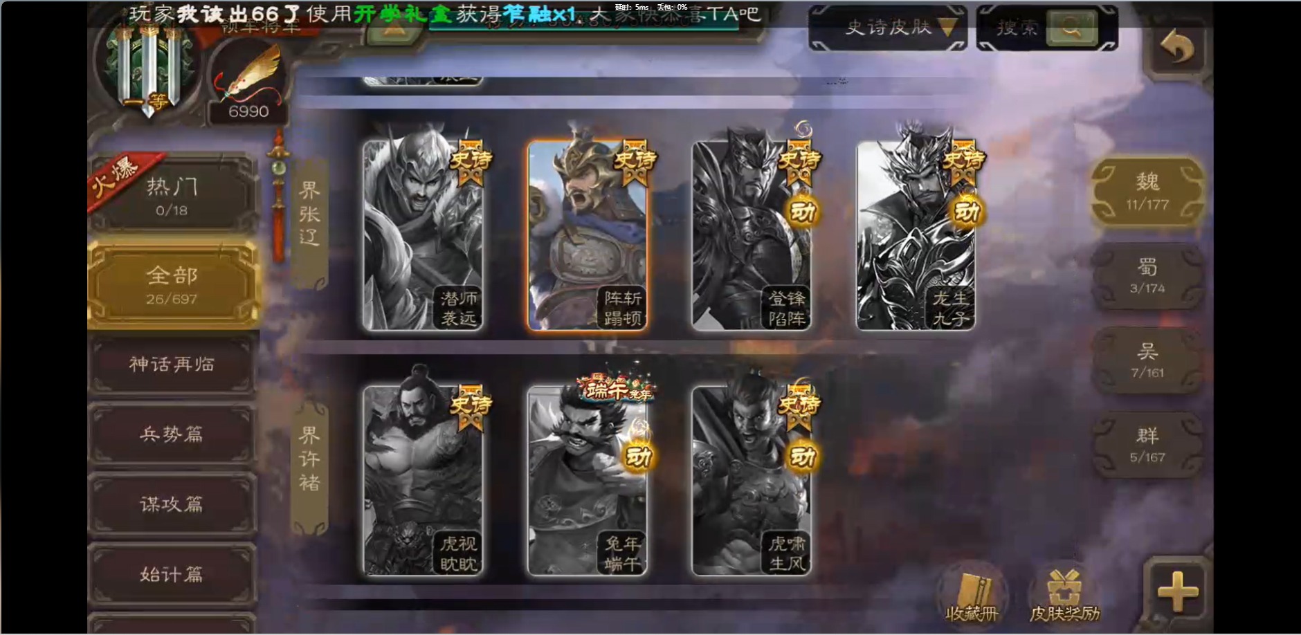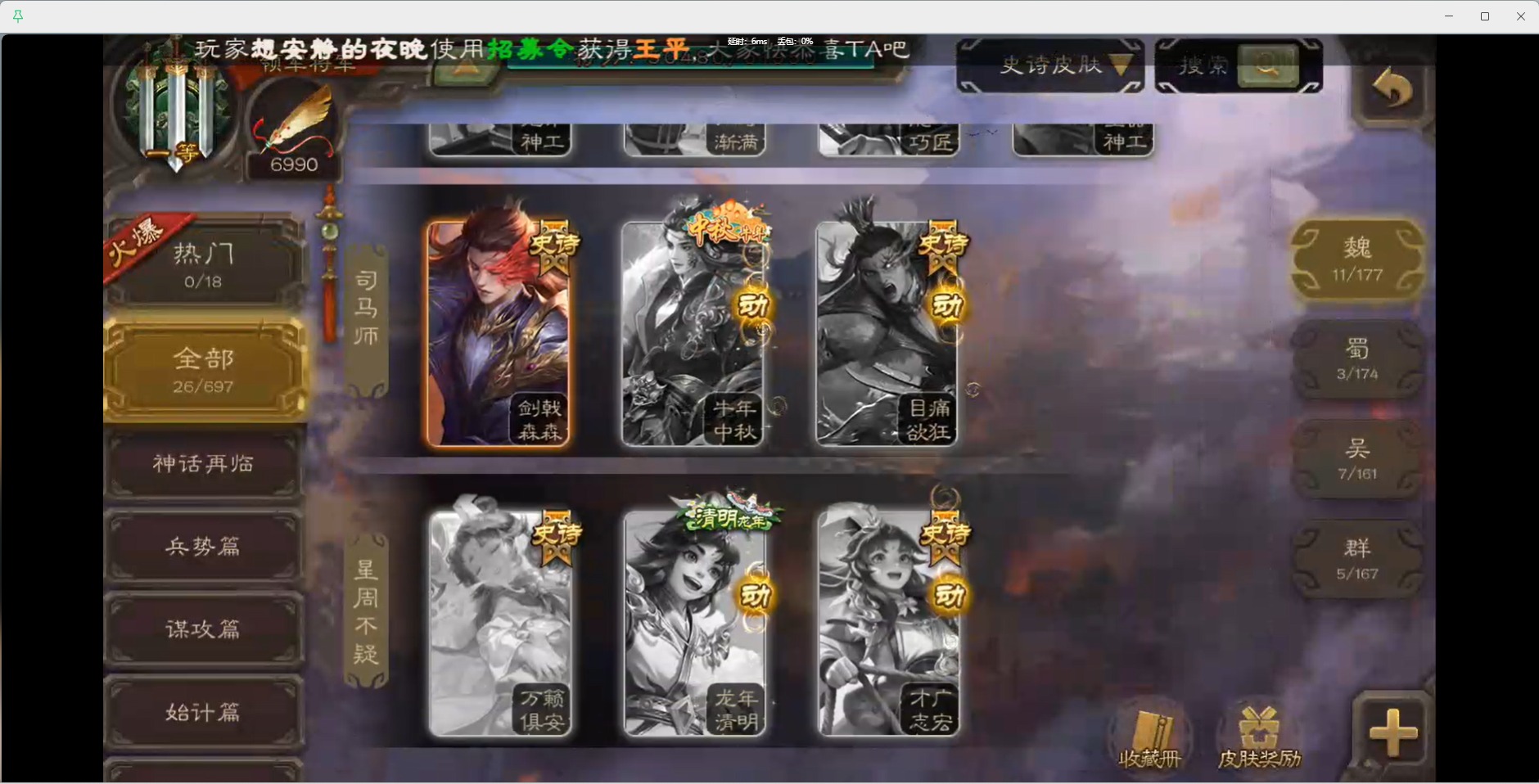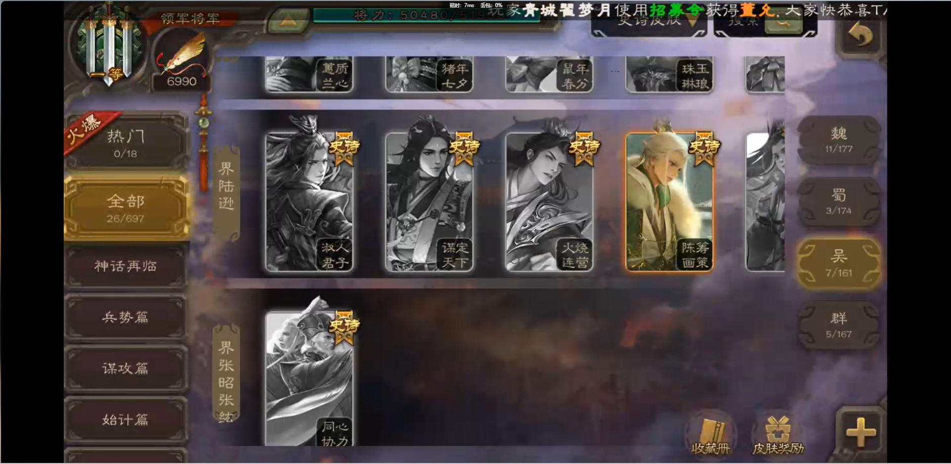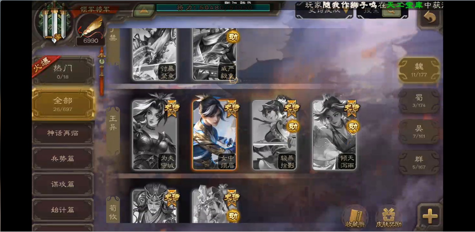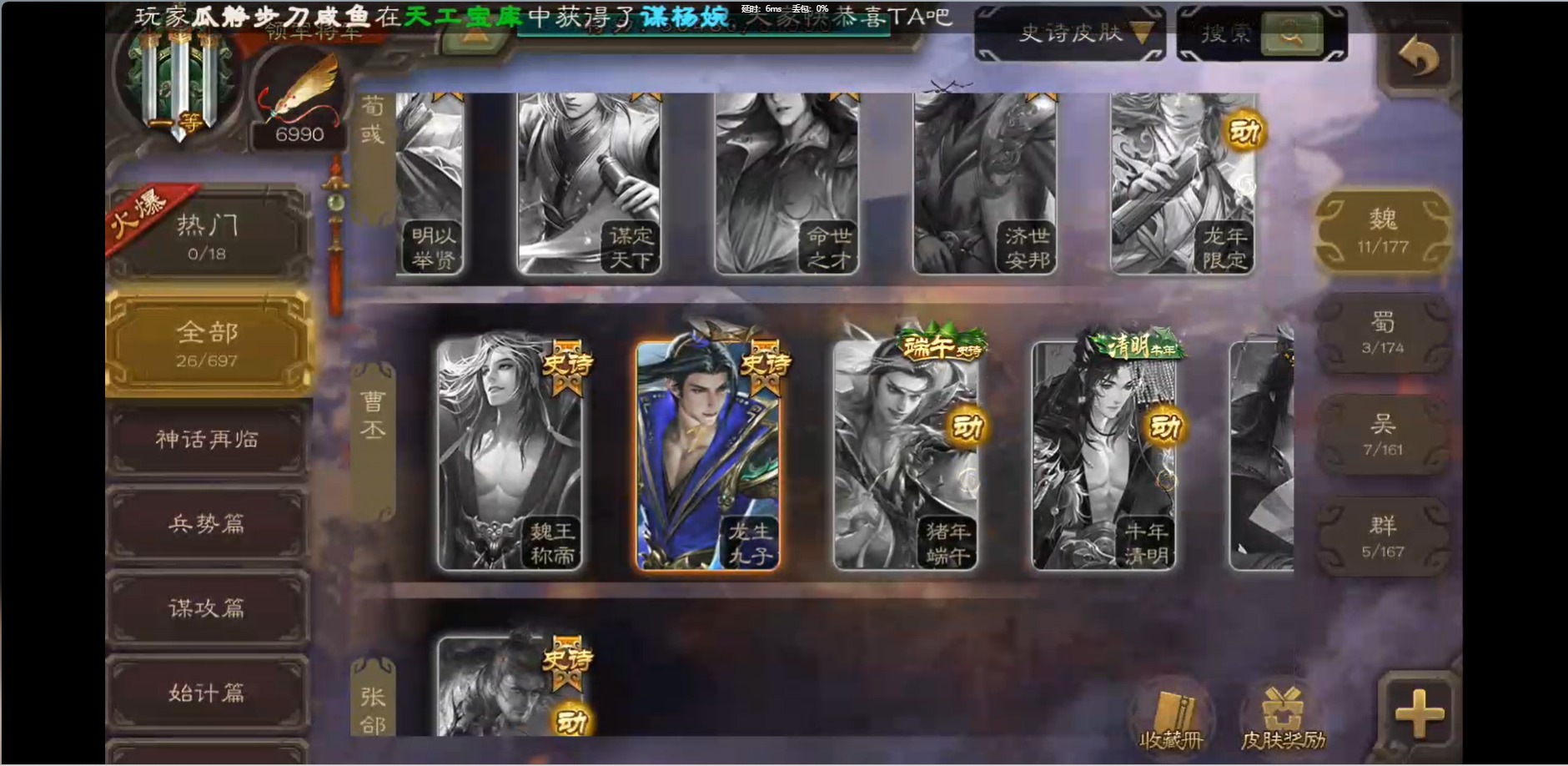 [16426275]vip1 领军将军 214武将 10动态皮肤 12史诗武将 38宝珠 【魏国武将】:界钟会程昱曹纯戏志才甄姬司马懿许褚夏侯惇郭嘉曹仁曹操张辽 【蜀国武将】:花鬘董允 【群国武将】:麹义刘焉沮授界李儒