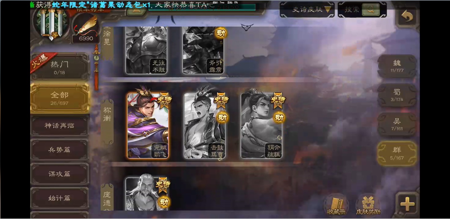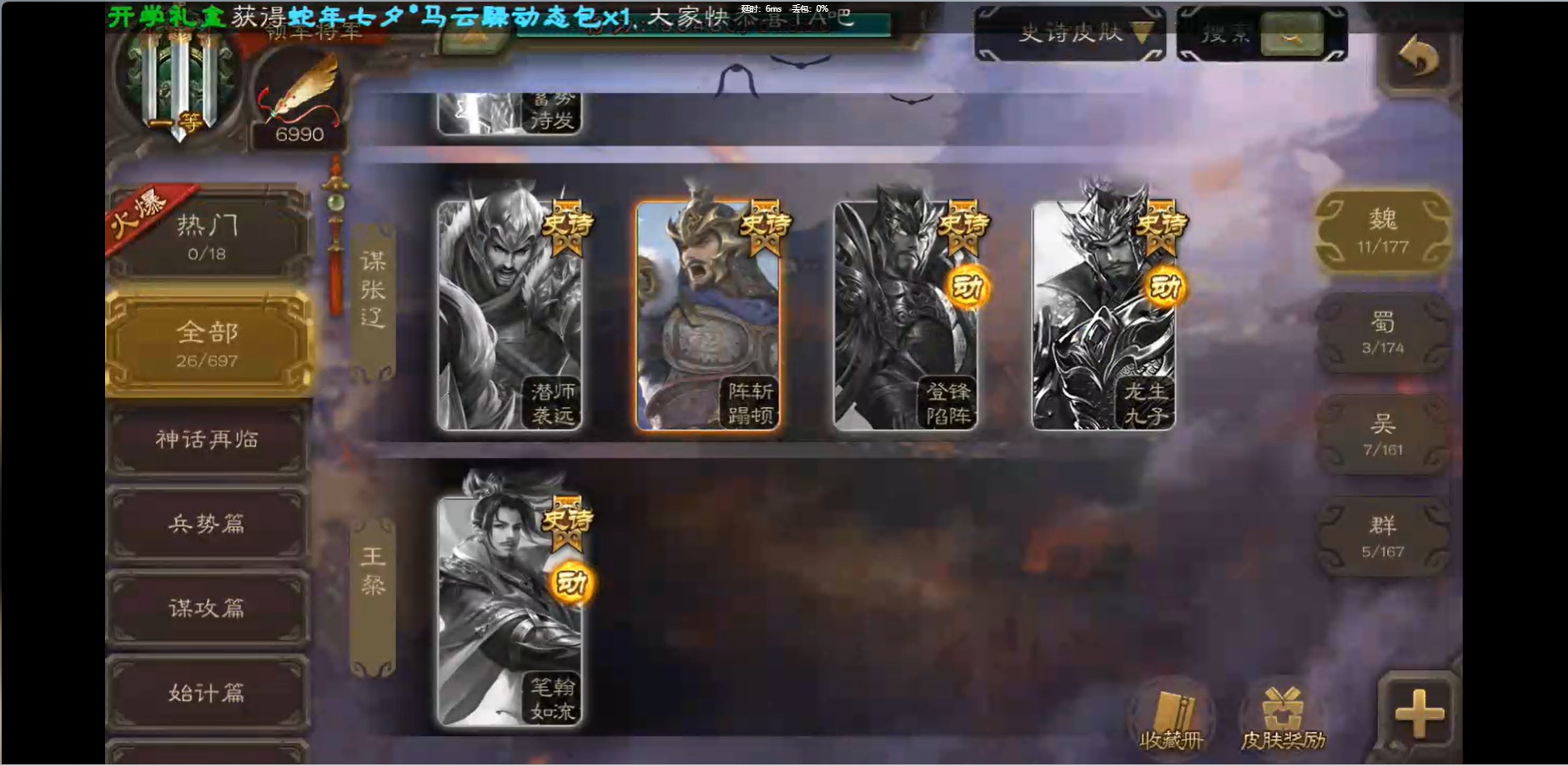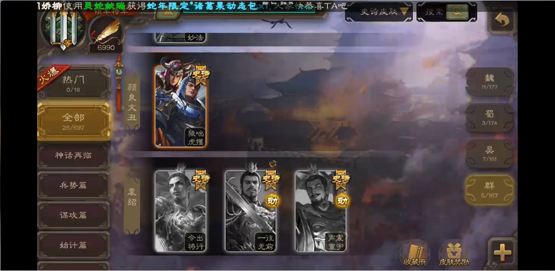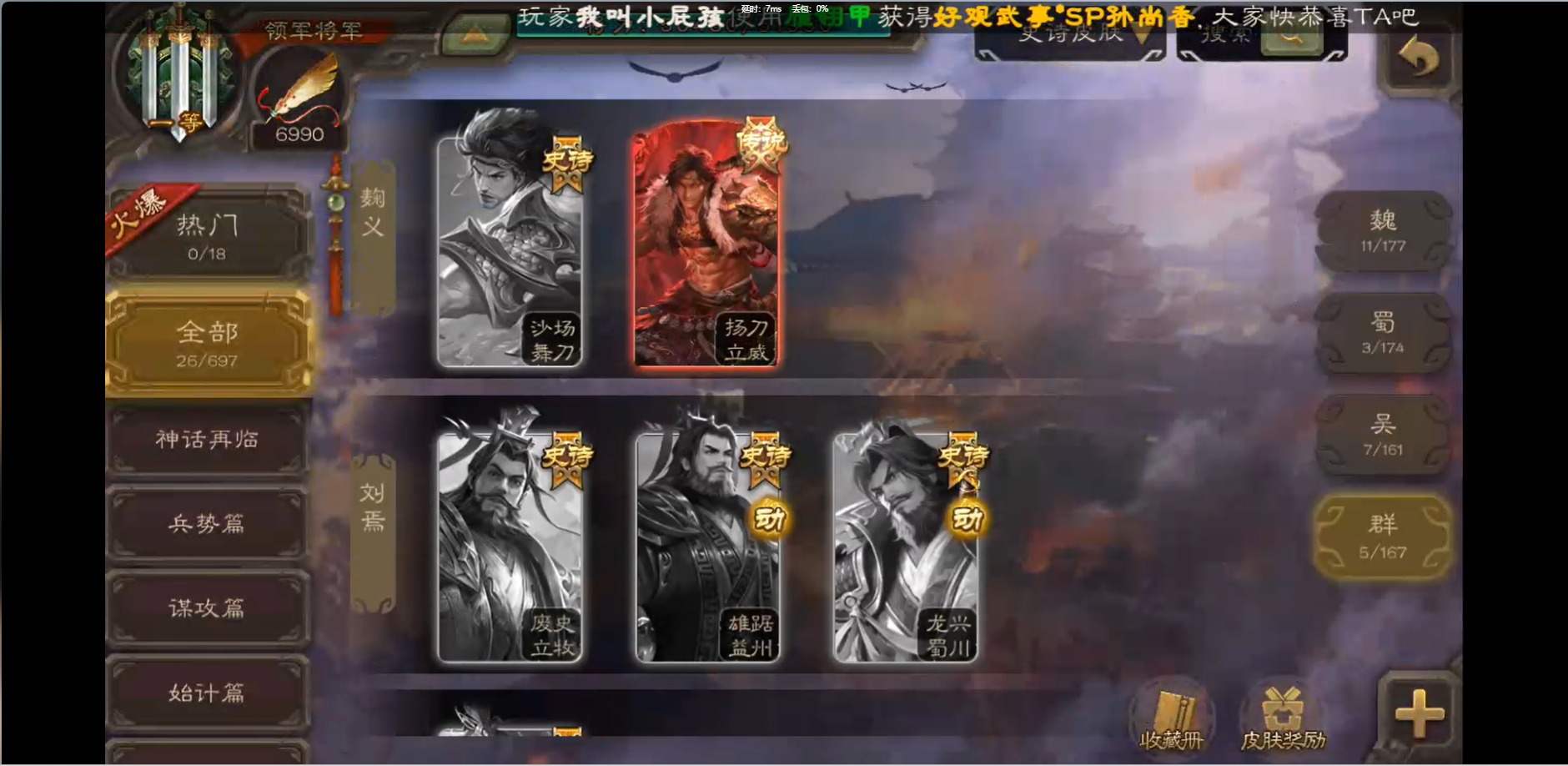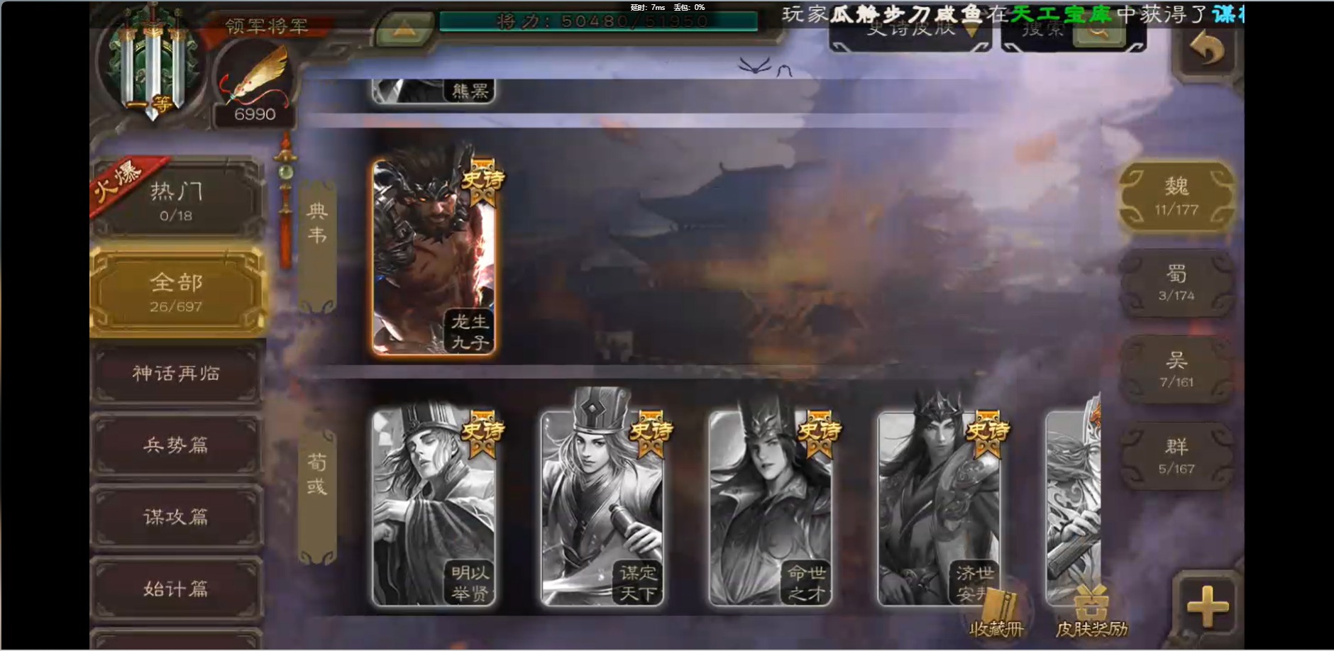 [16426275]vip1 领军将军 214武将 10动态皮肤 12史诗武将 38宝珠 【魏国武将】:界钟会程昱曹纯戏志才甄姬司马懿许褚夏侯惇郭嘉曹仁曹操张辽 【蜀国武将】:花鬘董允 【群国武将】:麹义刘焉沮授界李儒