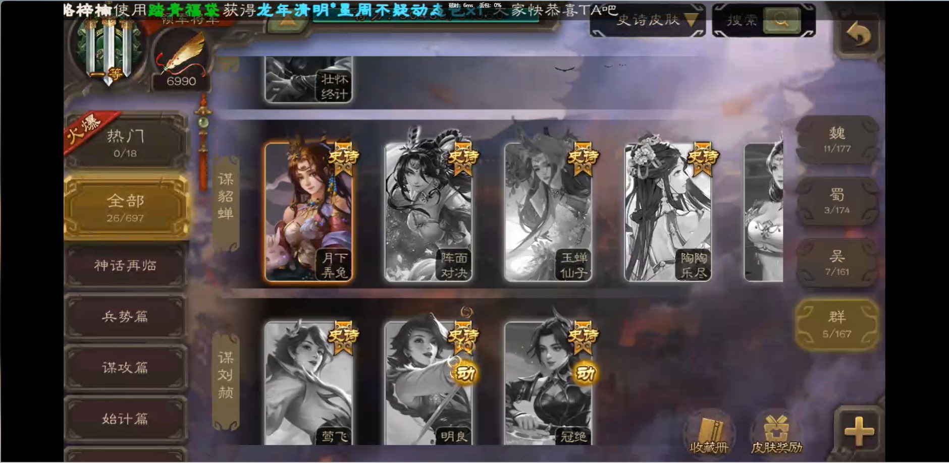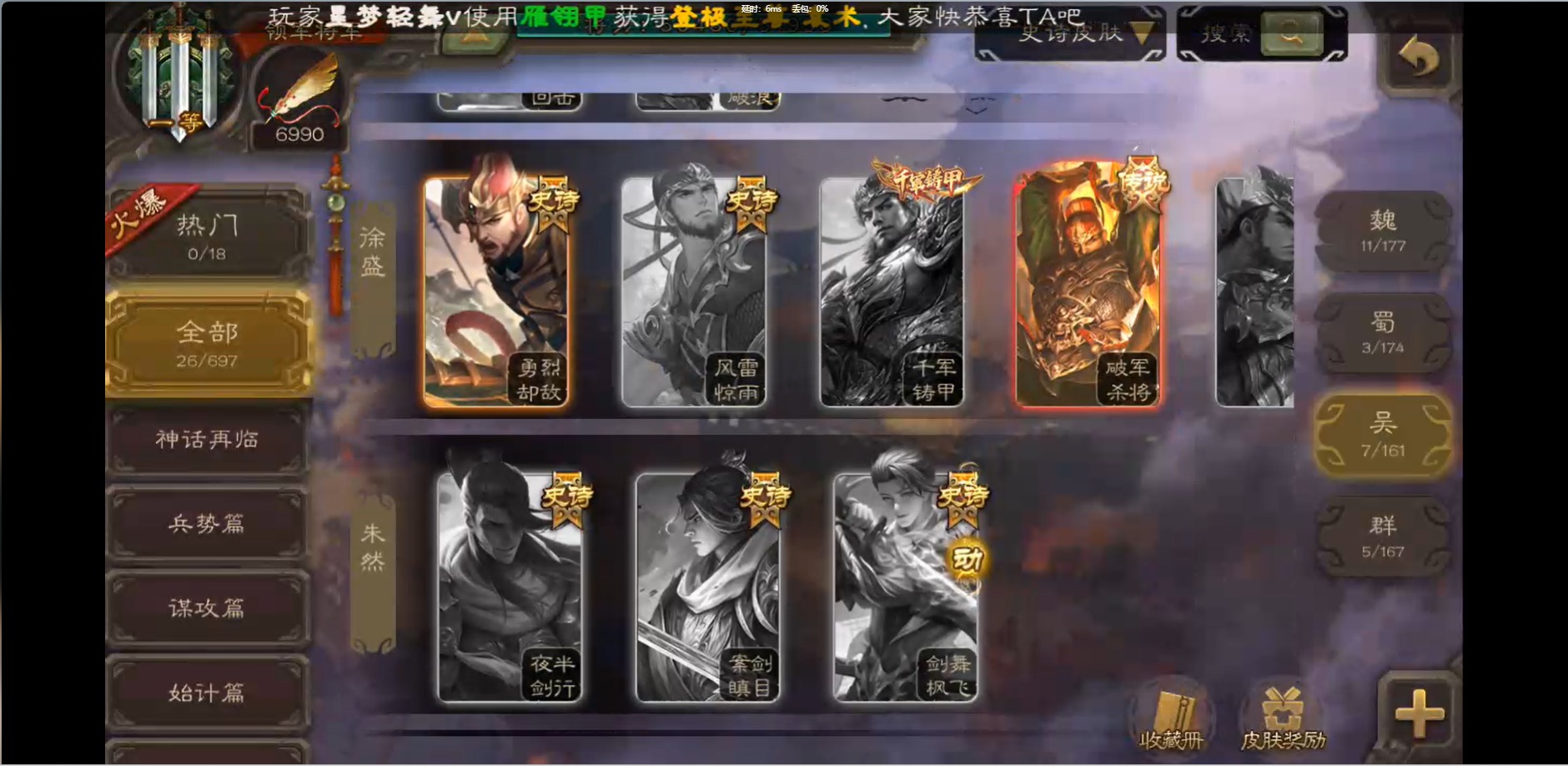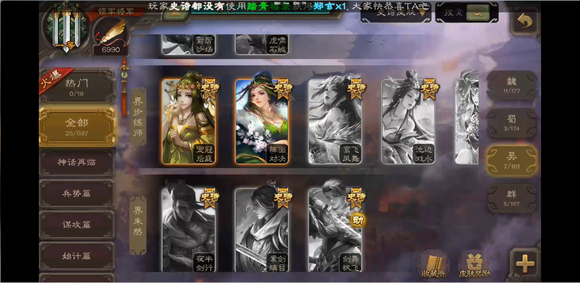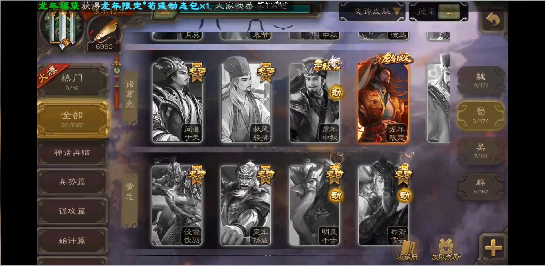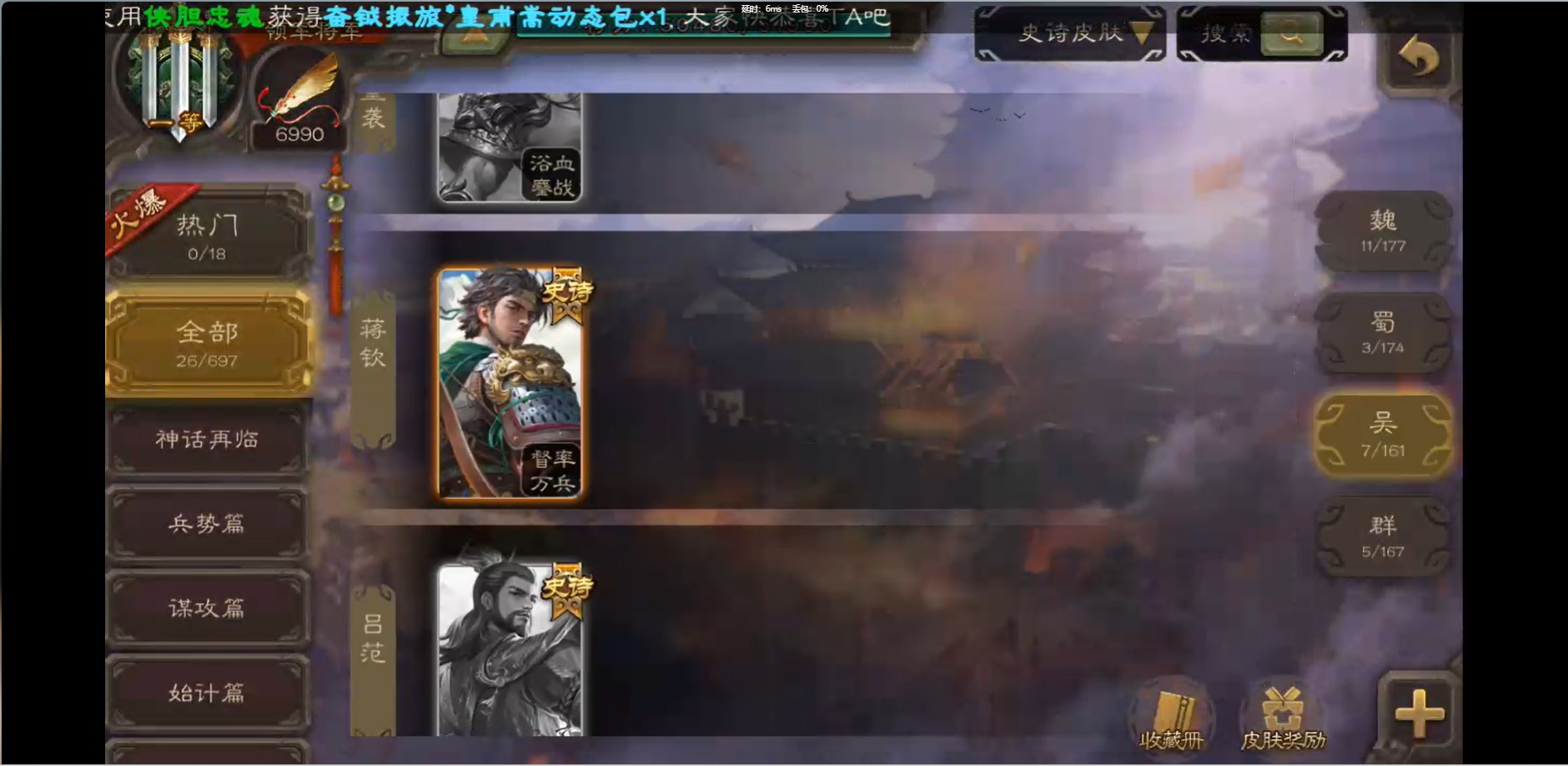 [16426275]vip1 领军将军 214武将 10动态皮肤 12史诗武将 38宝珠 【魏国武将】:界钟会程昱曹纯戏志才甄姬司马懿许褚夏侯惇郭嘉曹仁曹操张辽 【蜀国武将】:花鬘董允 【群国武将】:麹义刘焉沮授界李儒