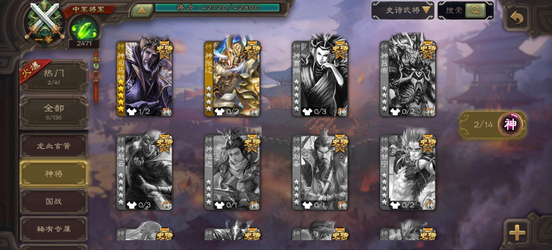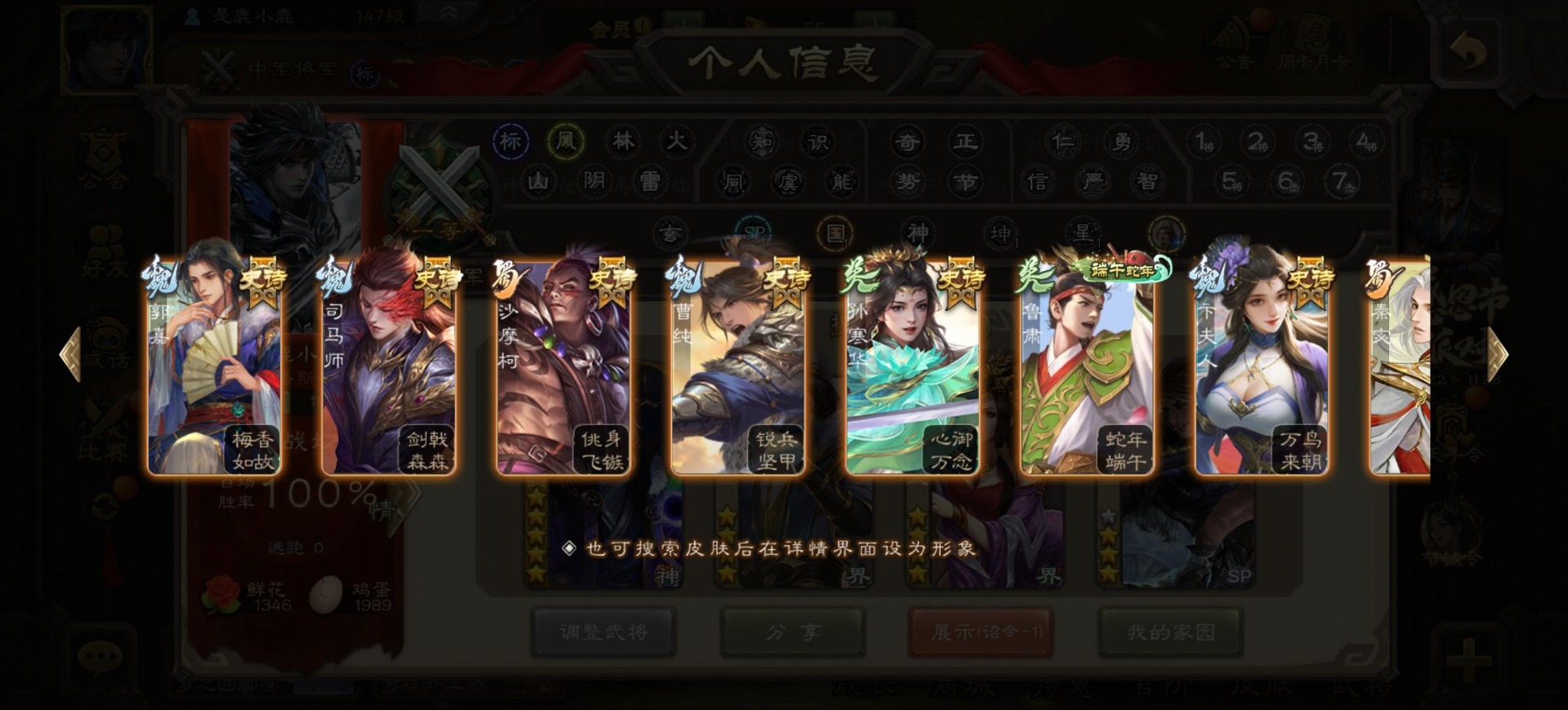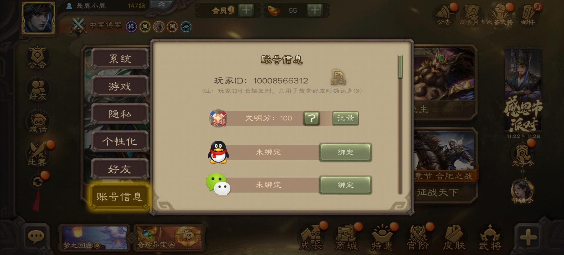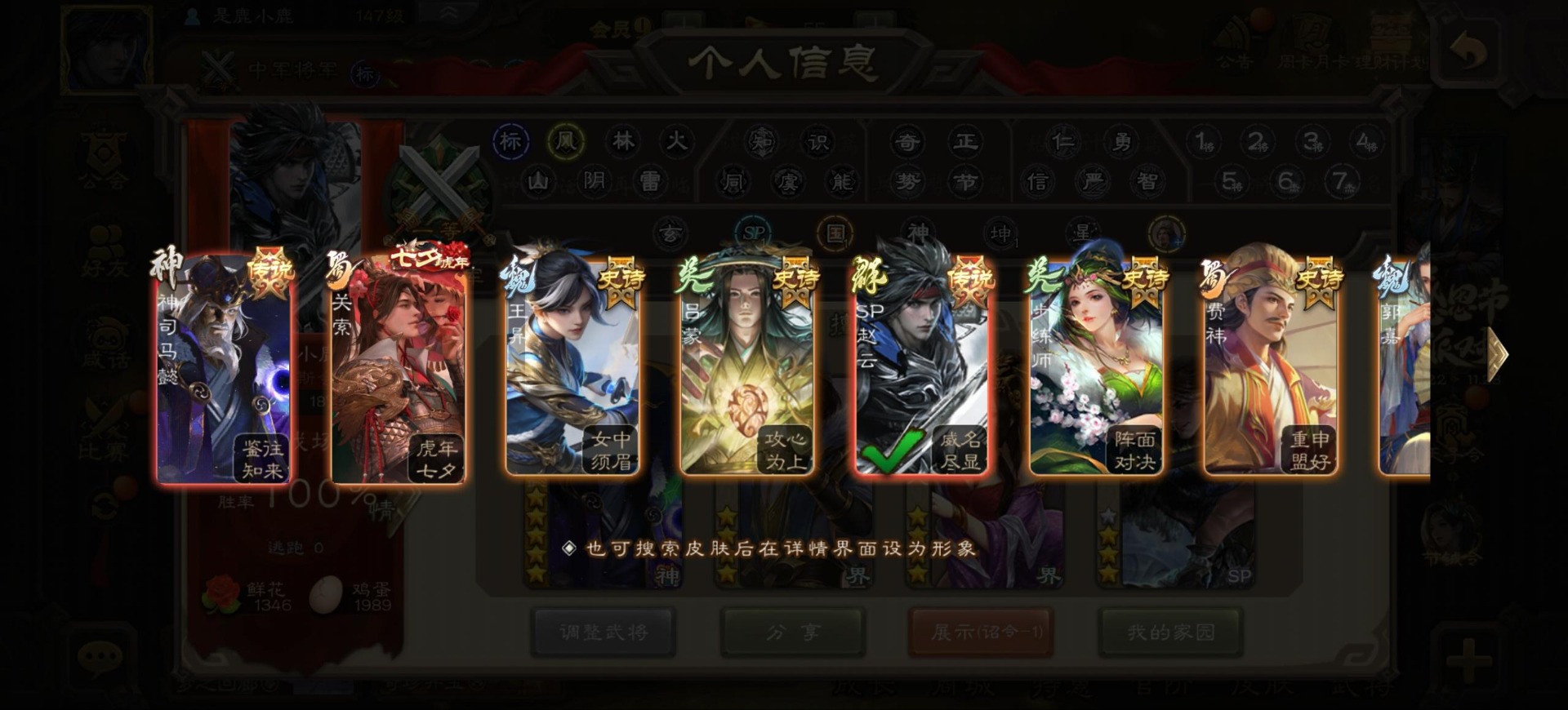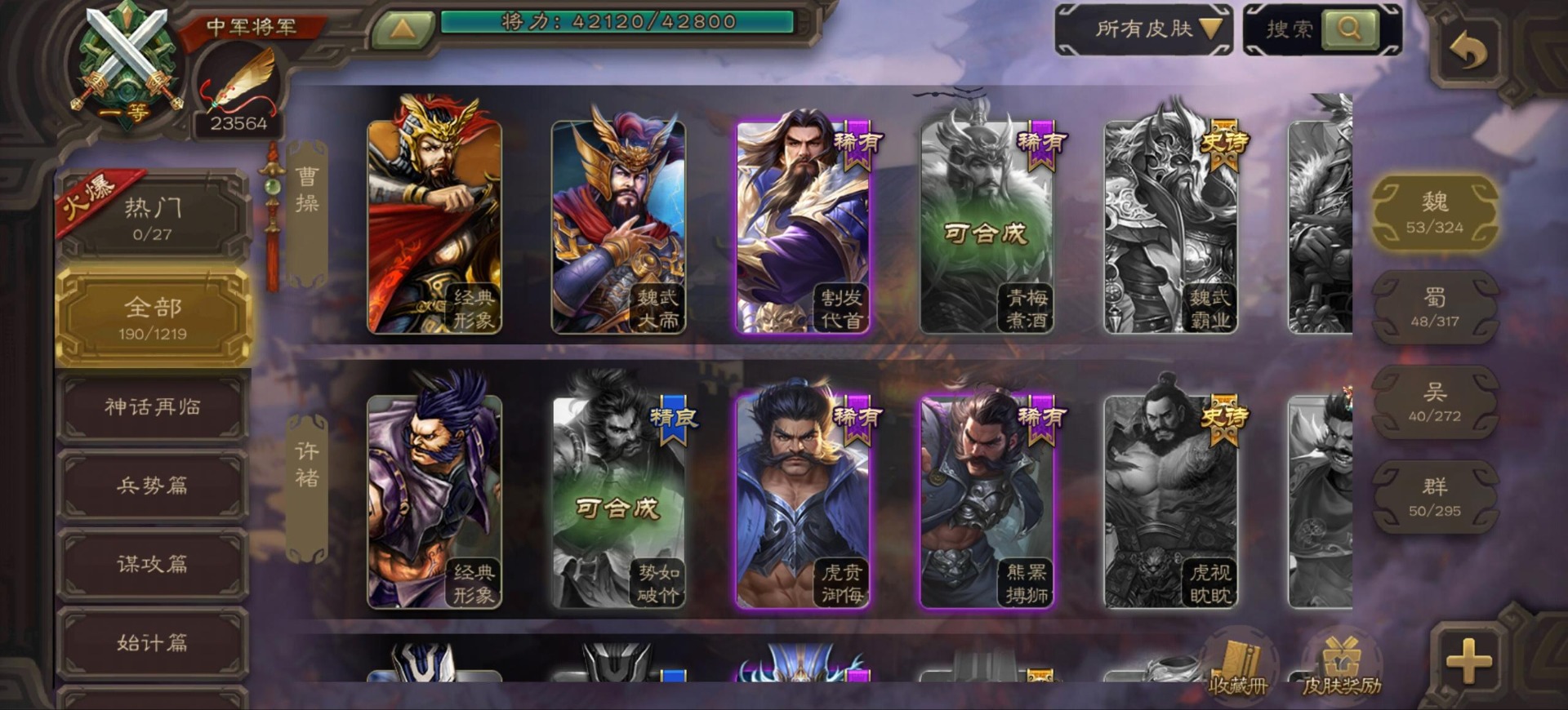 [16342723]vip9 中军将军 197武将 4动态皮肤 6史诗武将 【神将】:神司马懿神张辽 【魏国武将】:程昱甄姬司马懿许褚夏侯惇郭嘉曹仁曹操张辽 【蜀国武将】:谋赵云 【群国武将】:界沮授麹义