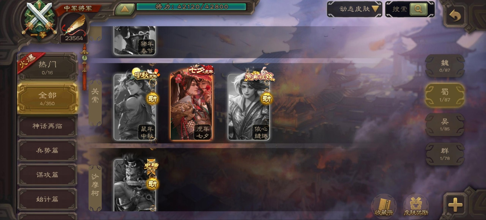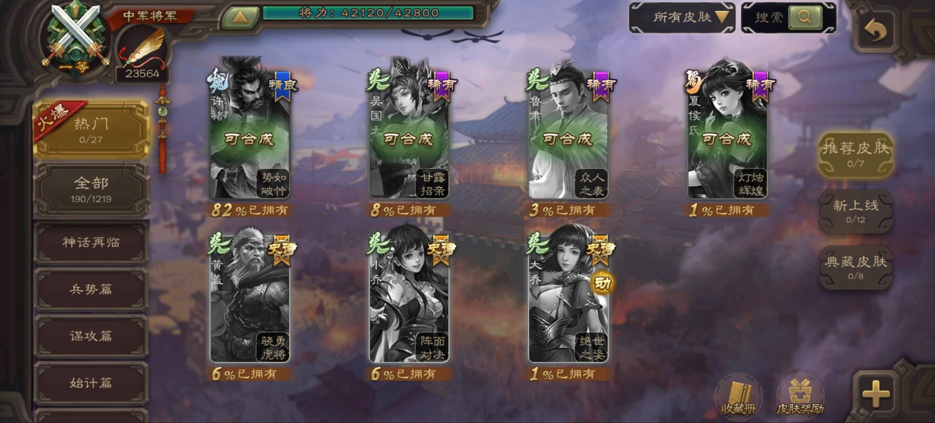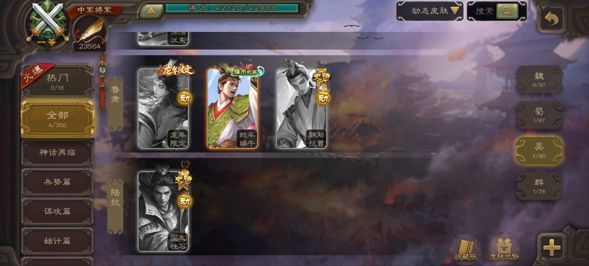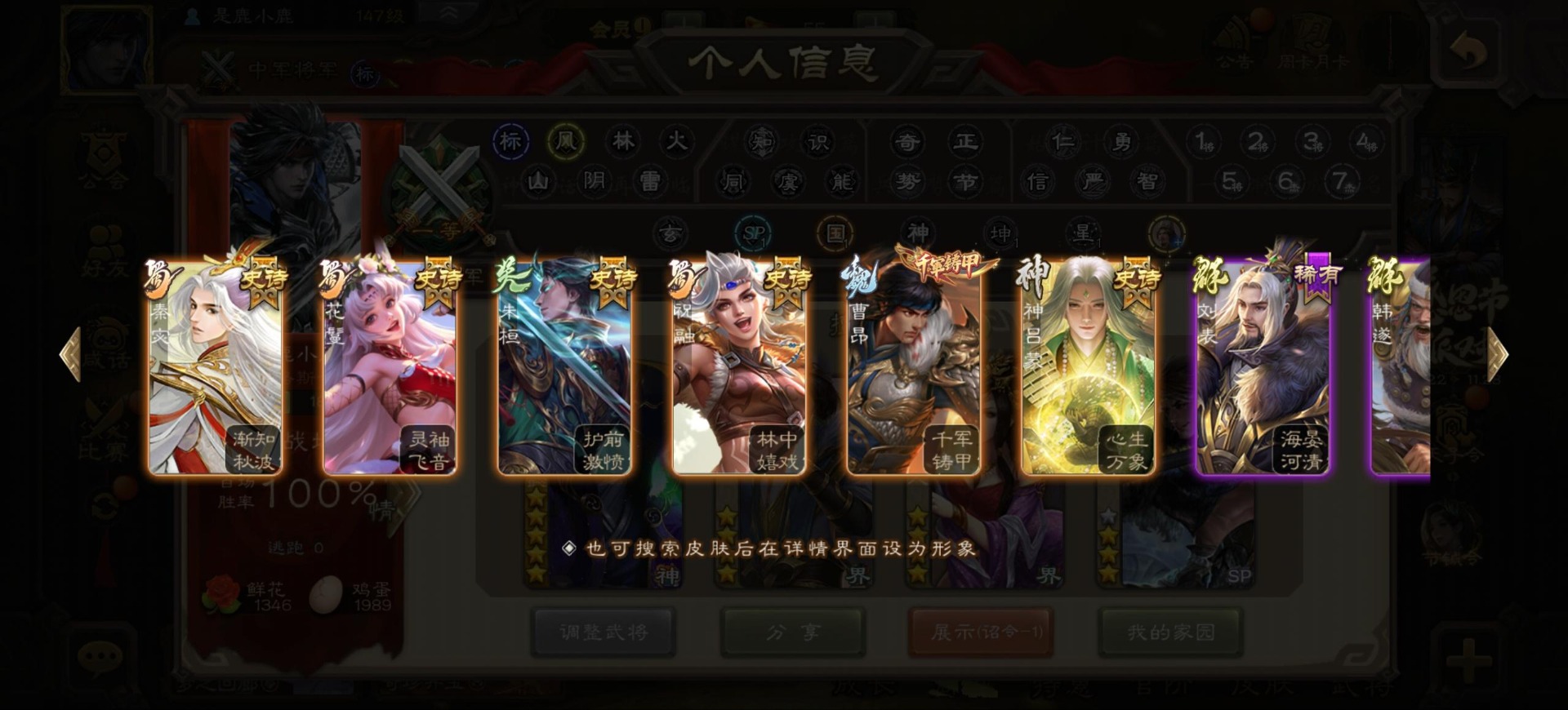 [16342723]vip9 中军将军 197武将 4动态皮肤 6史诗武将 【神将】:神司马懿神张辽 【魏国武将】:程昱甄姬司马懿许褚夏侯惇郭嘉曹仁曹操张辽 【蜀国武将】:谋赵云 【群国武将】:界沮授麹义