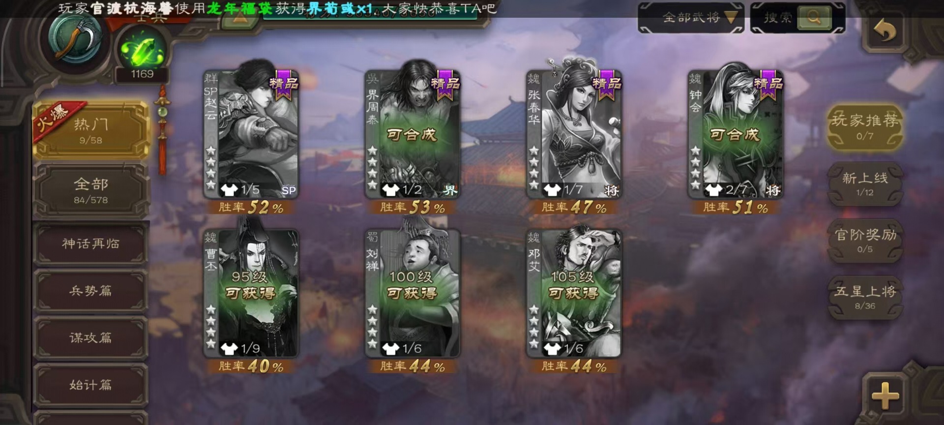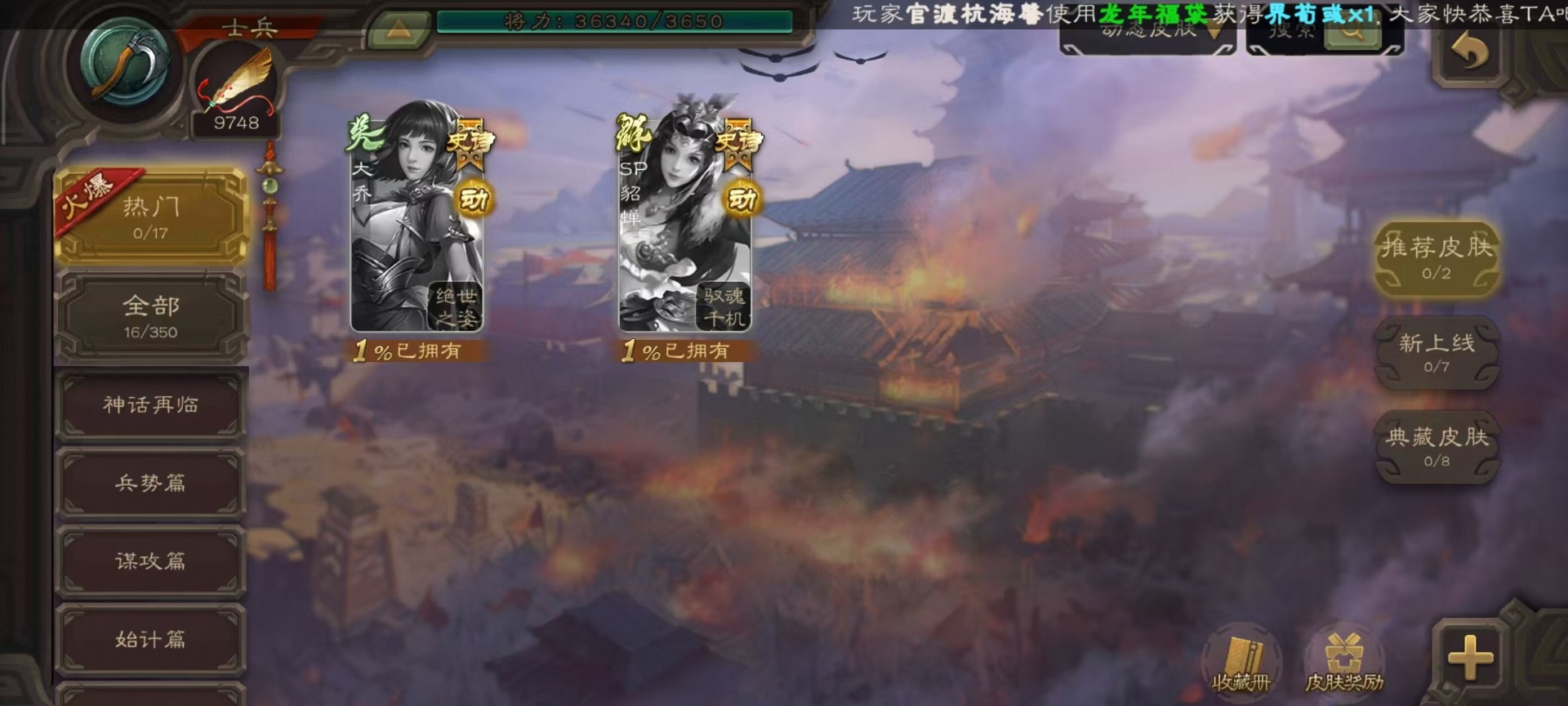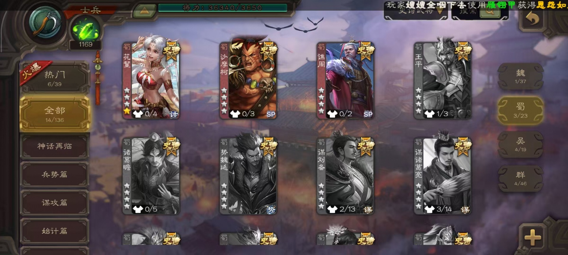 [16466692]vip8 士兵 84武将 16动态皮肤 14史诗武将 【神将】:神赵云神甘宁 【魏国武将】:王元姬 【蜀国武将】:沙摩柯谯周花鬘 【吴国武将】:孙寒华留赞界朱然界徐盛 【群国武将】:十常侍裴秀星黄忠界李儒