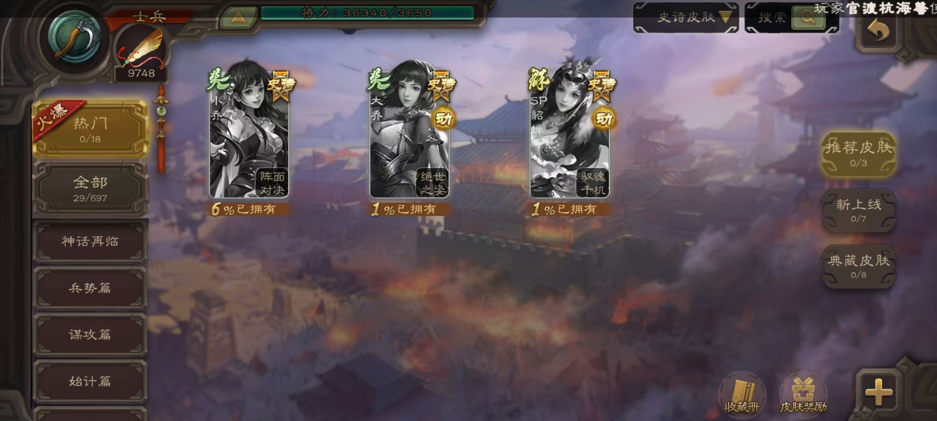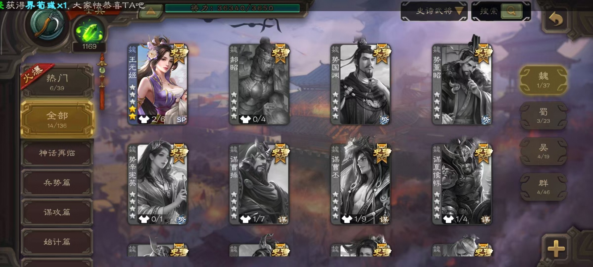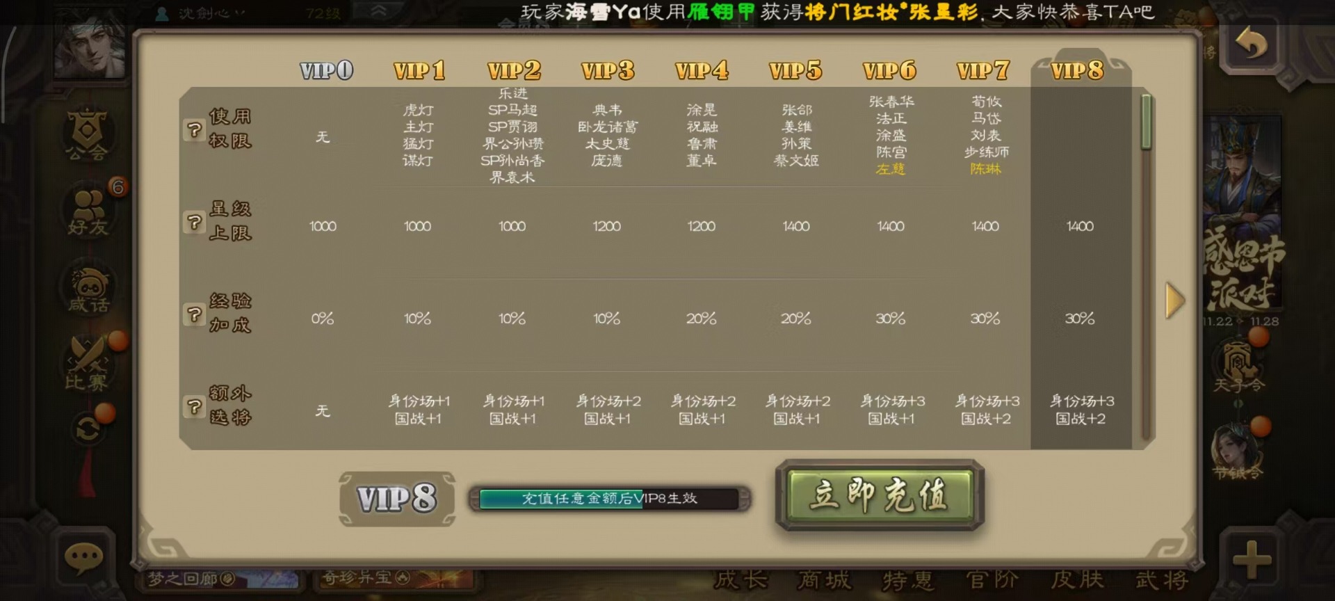 [16466692]vip8 士兵 84武将 16动态皮肤 14史诗武将 【神将】:神赵云神甘宁 【魏国武将】:王元姬 【蜀国武将】:沙摩柯谯周花鬘 【吴国武将】:孙寒华留赞界朱然界徐盛 【群国武将】:十常侍裴秀星黄忠界李儒
