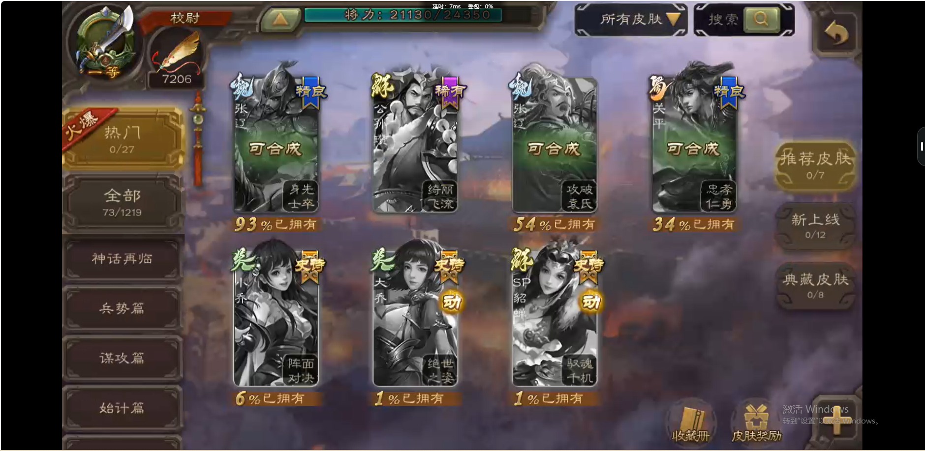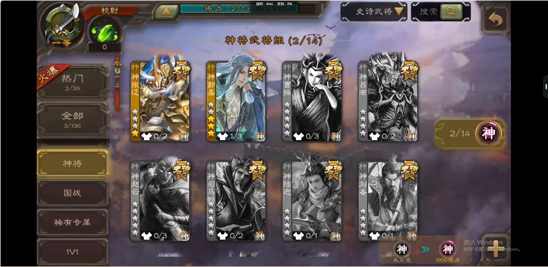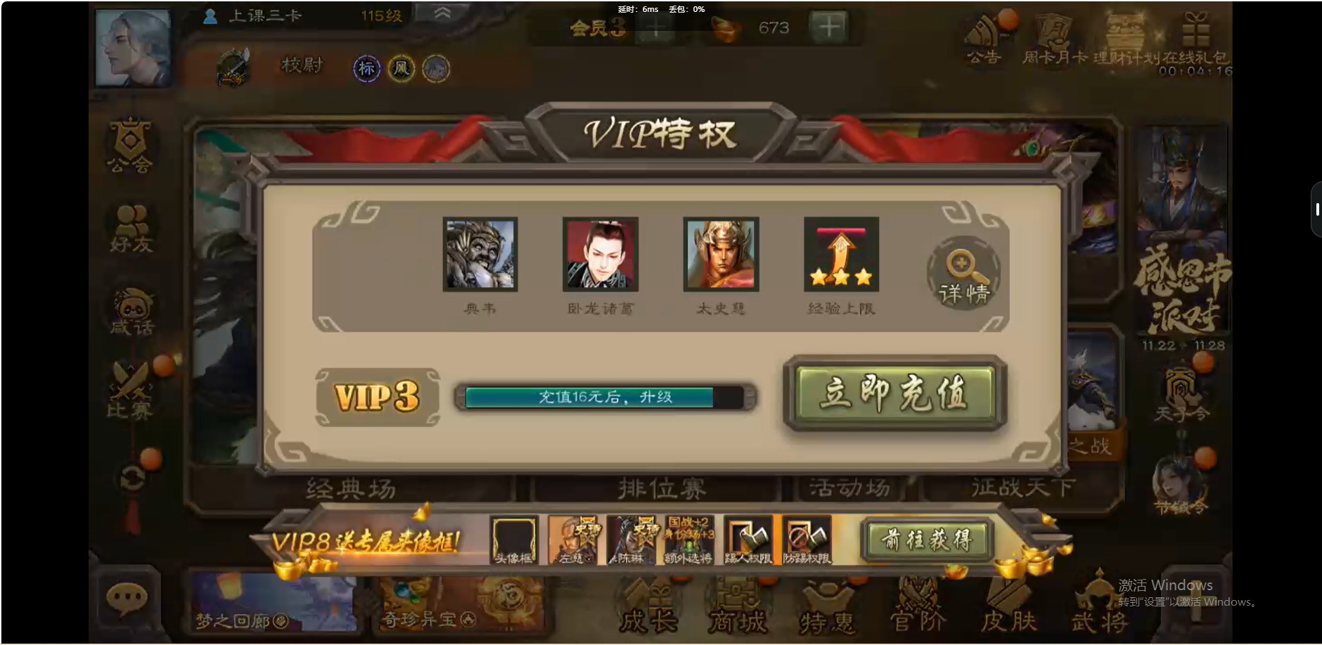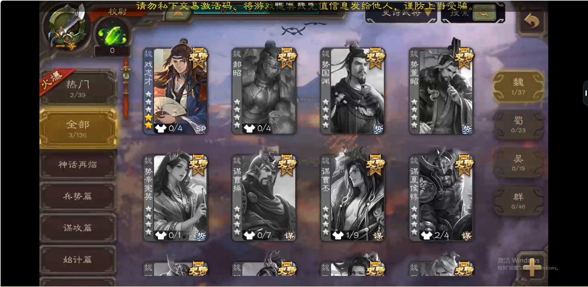 [16467116]vip3 校尉 128武将 2动态皮肤 3史诗武将 【神将】:神张辽神郭嘉 【魏国武将】:戏志才