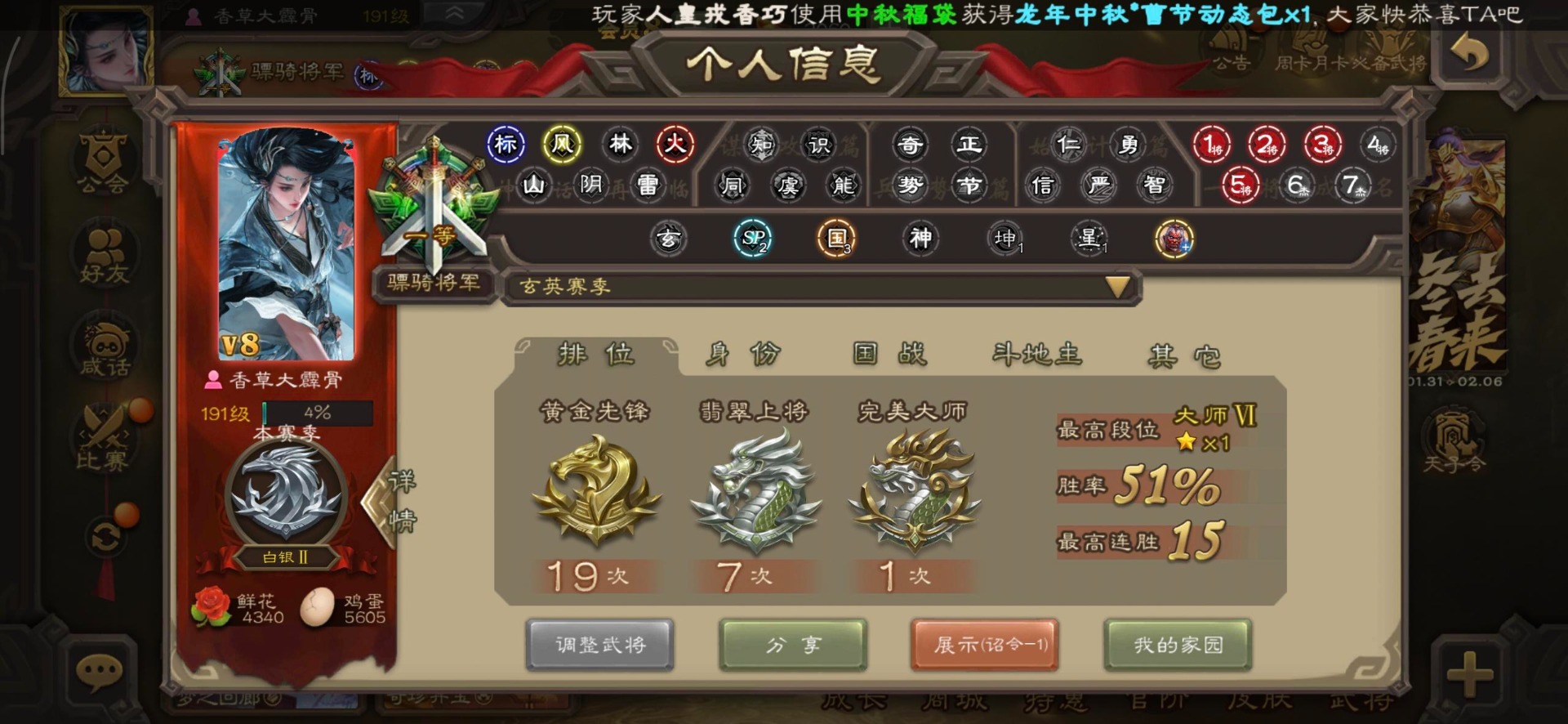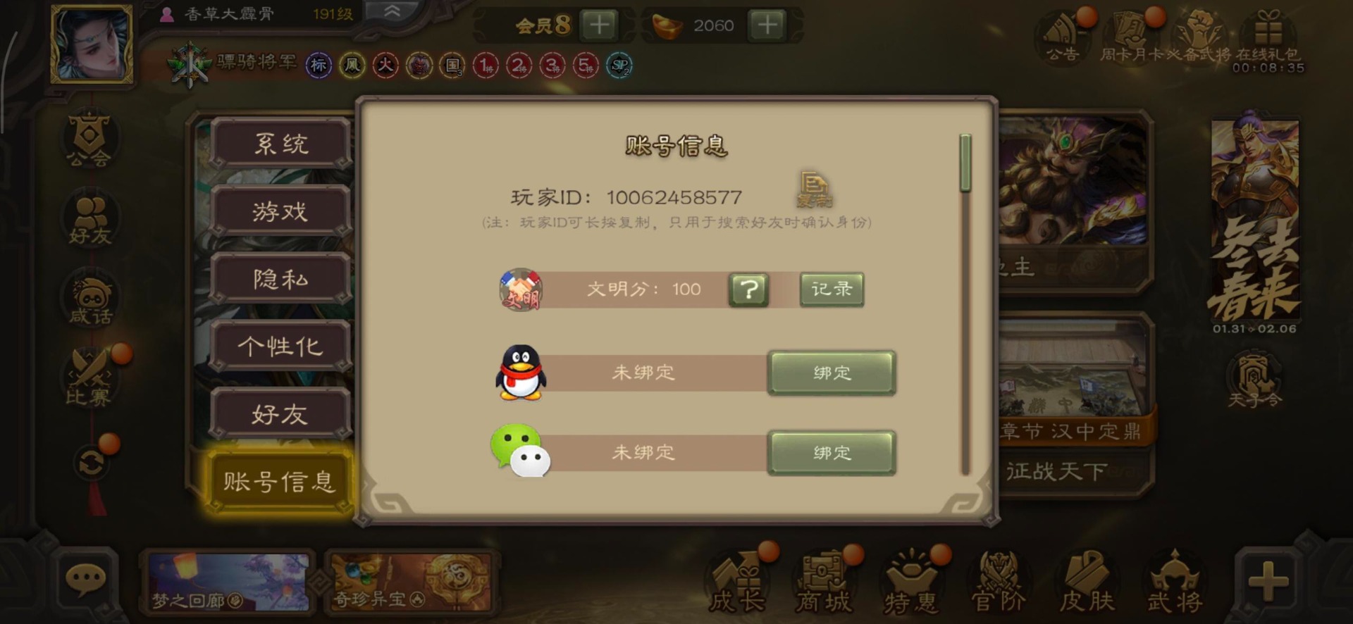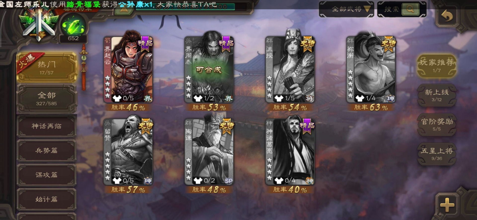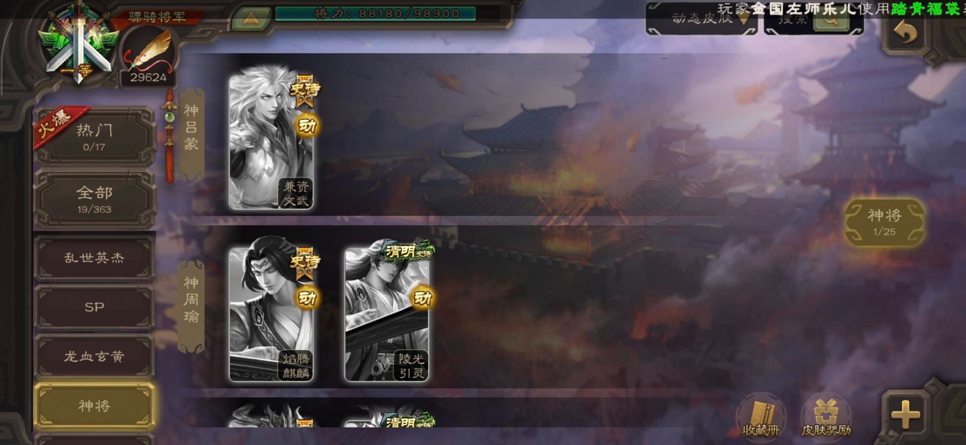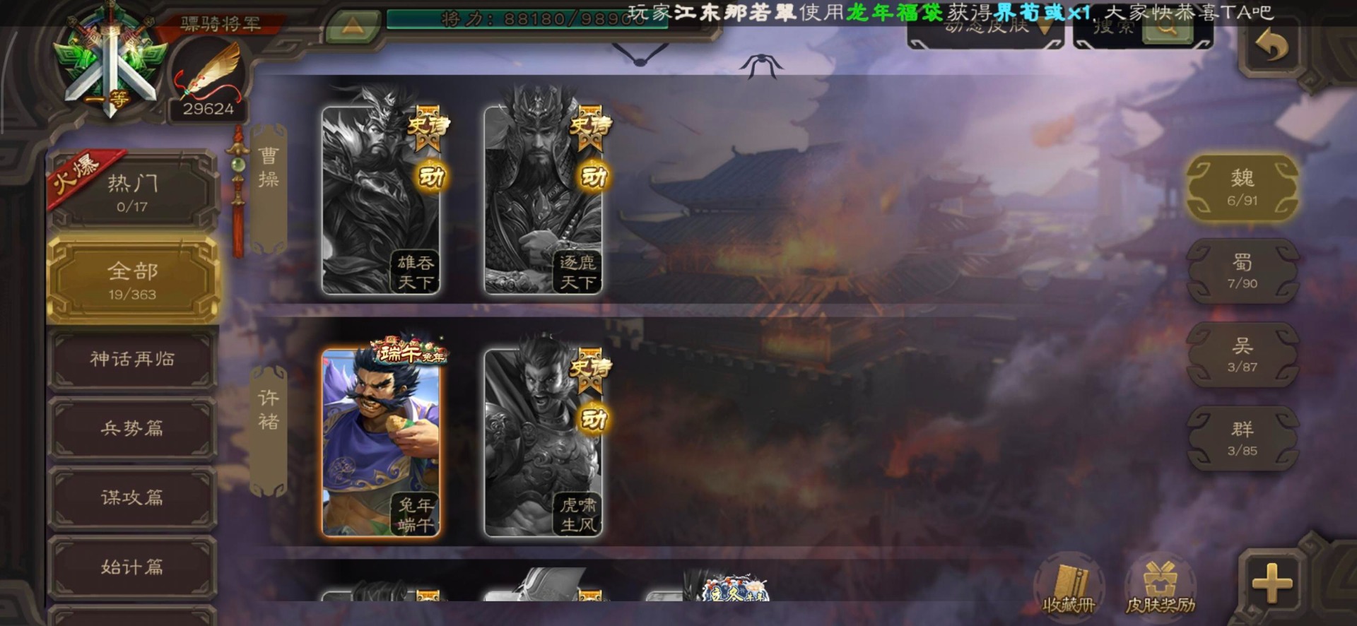 [16501254]vip8 骠骑将军 33武将 19动态皮肤 33史诗武将 【神将】神吕布神赵云神陆逊神刘备神张辽神孙策 【魏国武将】势国渊势辛宪英星周不疑杨修界钟会界于禁界曹真程昱曹纯戏志才谋荀彧许褚曹操 【蜀国武将】谋赵云谋马超沙摩柯谯周花鬘董允 【吴国武将】势陆郁生贺齐 【群国武将】谋吕布左慈星黄忠兀突骨麹义界李儒谋张角