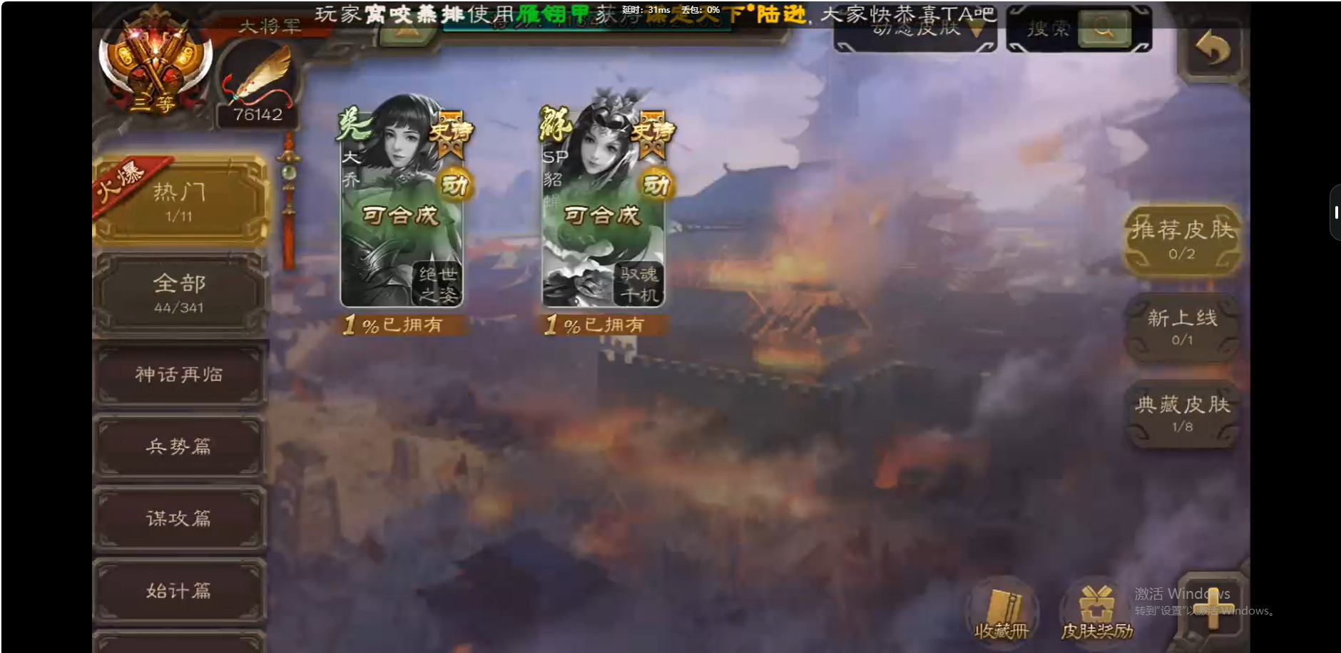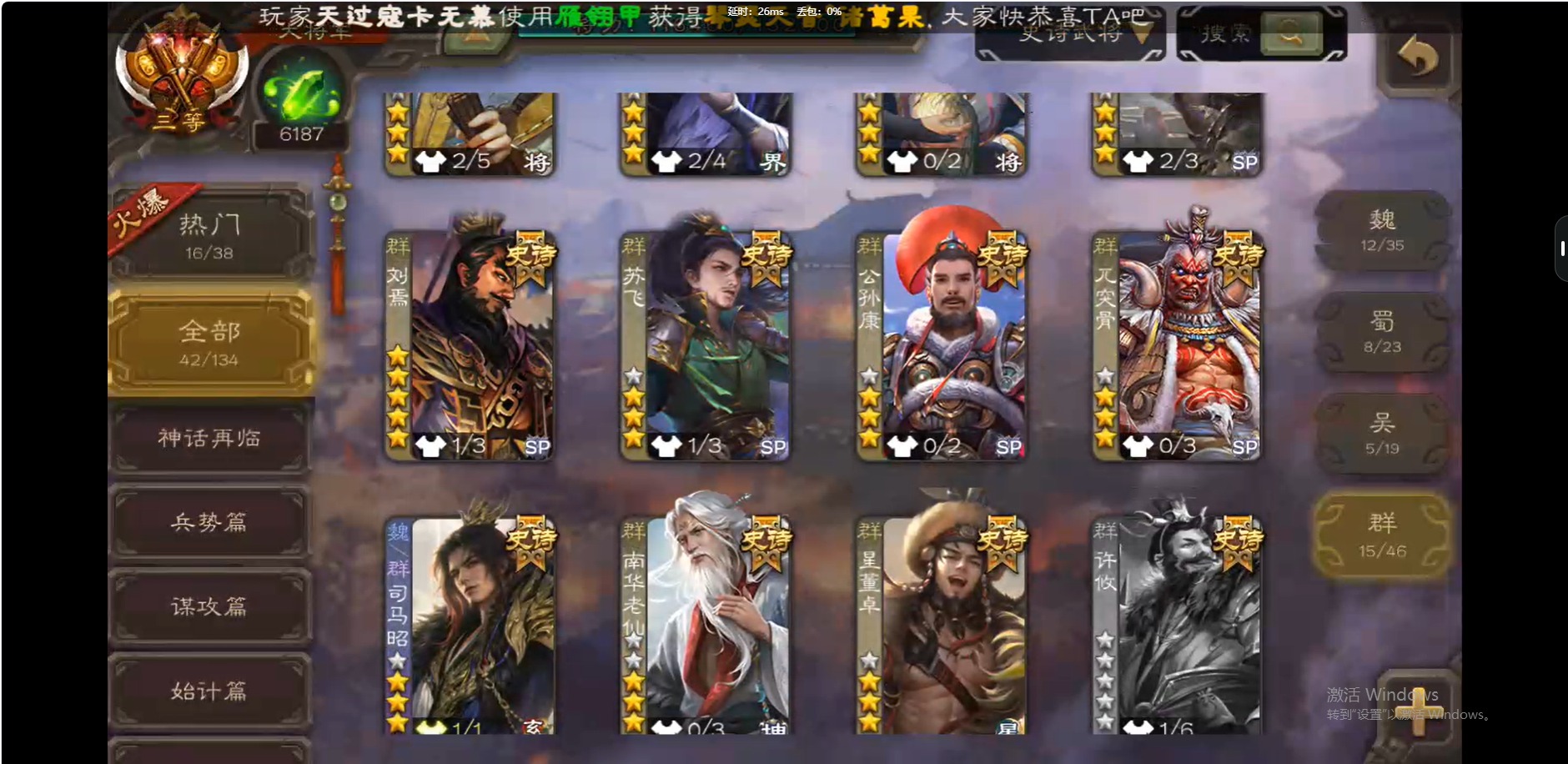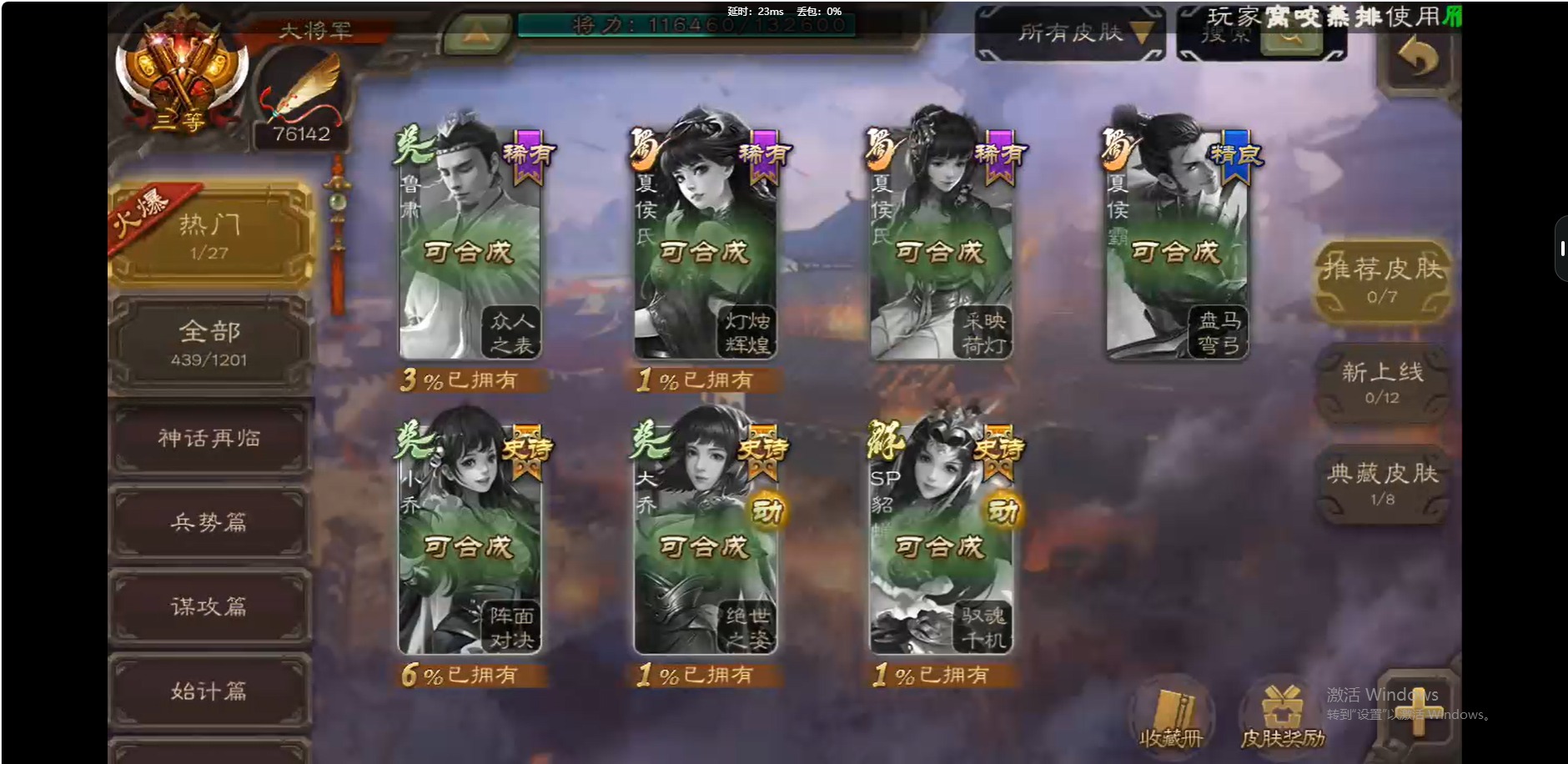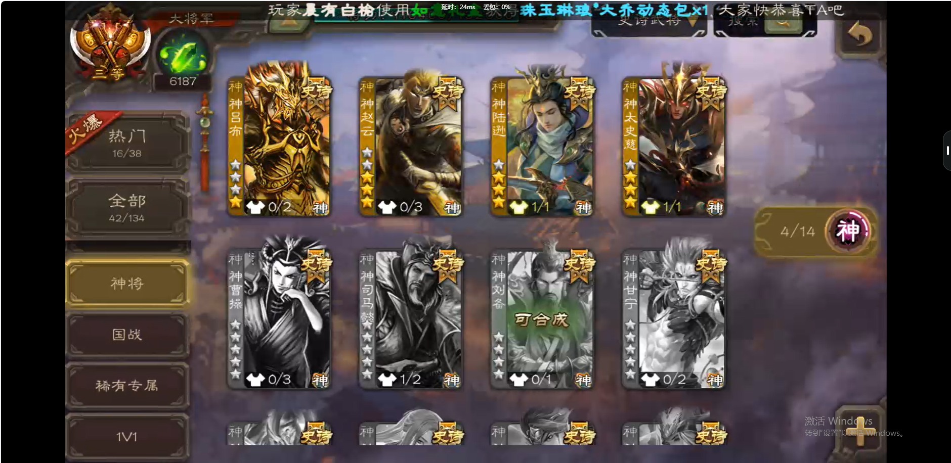 [16509462]vip10 大将军 339武将 44动态皮肤 42史诗武将 【神将】:神吕布神赵云神陆逊神太史慈 【魏国武将】:曹髦星周不疑杨修王元姬界钟会界曹真程昱曹婴戏志才 【蜀国武将】:谋赵云谋马超诸葛瞻赵襄沙摩柯谯周花鬘关索 【吴国武将】:文鸯吴景孙皓界徐盛 【群国武将】:星董卓左慈张让兀突骨苏飞麹义南华老仙刘焉沮授界左慈界李儒公孙康杜预谋张角
