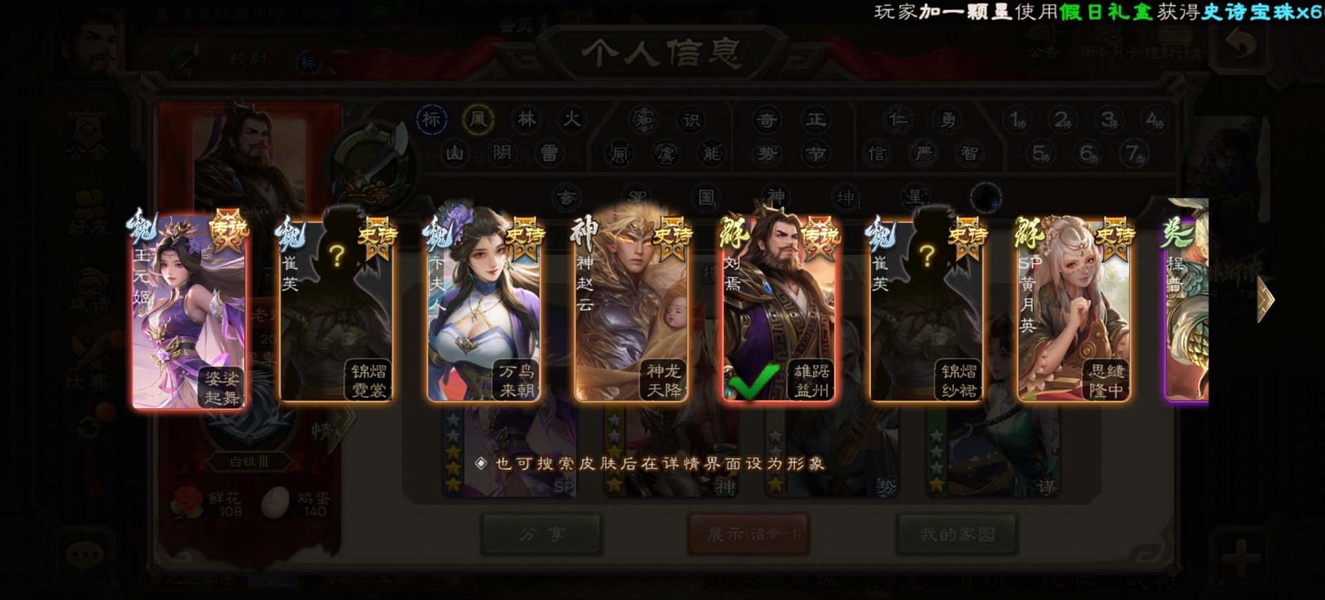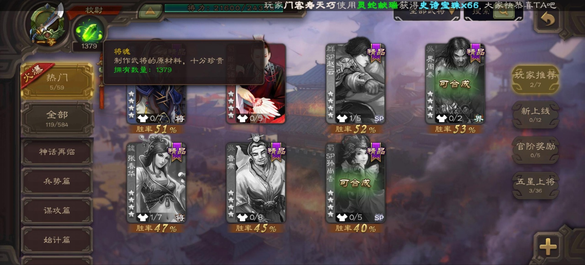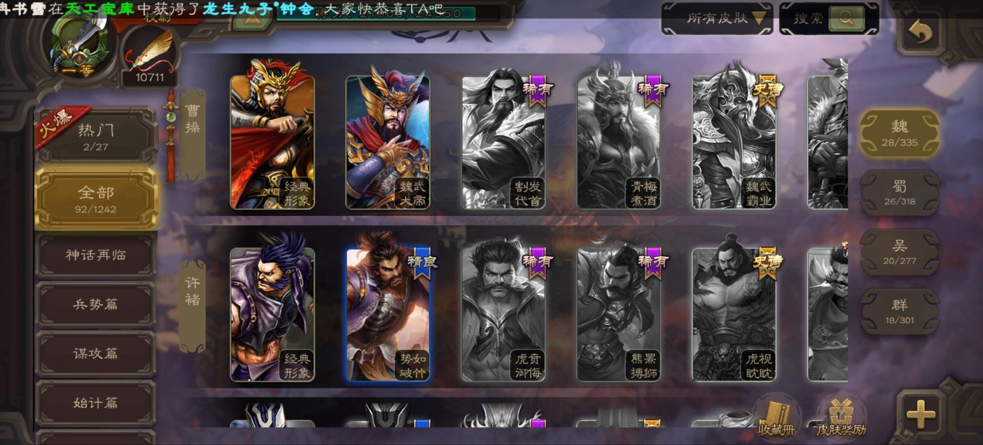 [16518206]vip1 校尉 119武将 2动态皮肤 2史诗武将 【神将】神孙策 【魏国武将】王元姬甄姬司马懿许褚夏侯惇郭嘉曹仁曹操张辽 【蜀国武将】卧龙诸葛